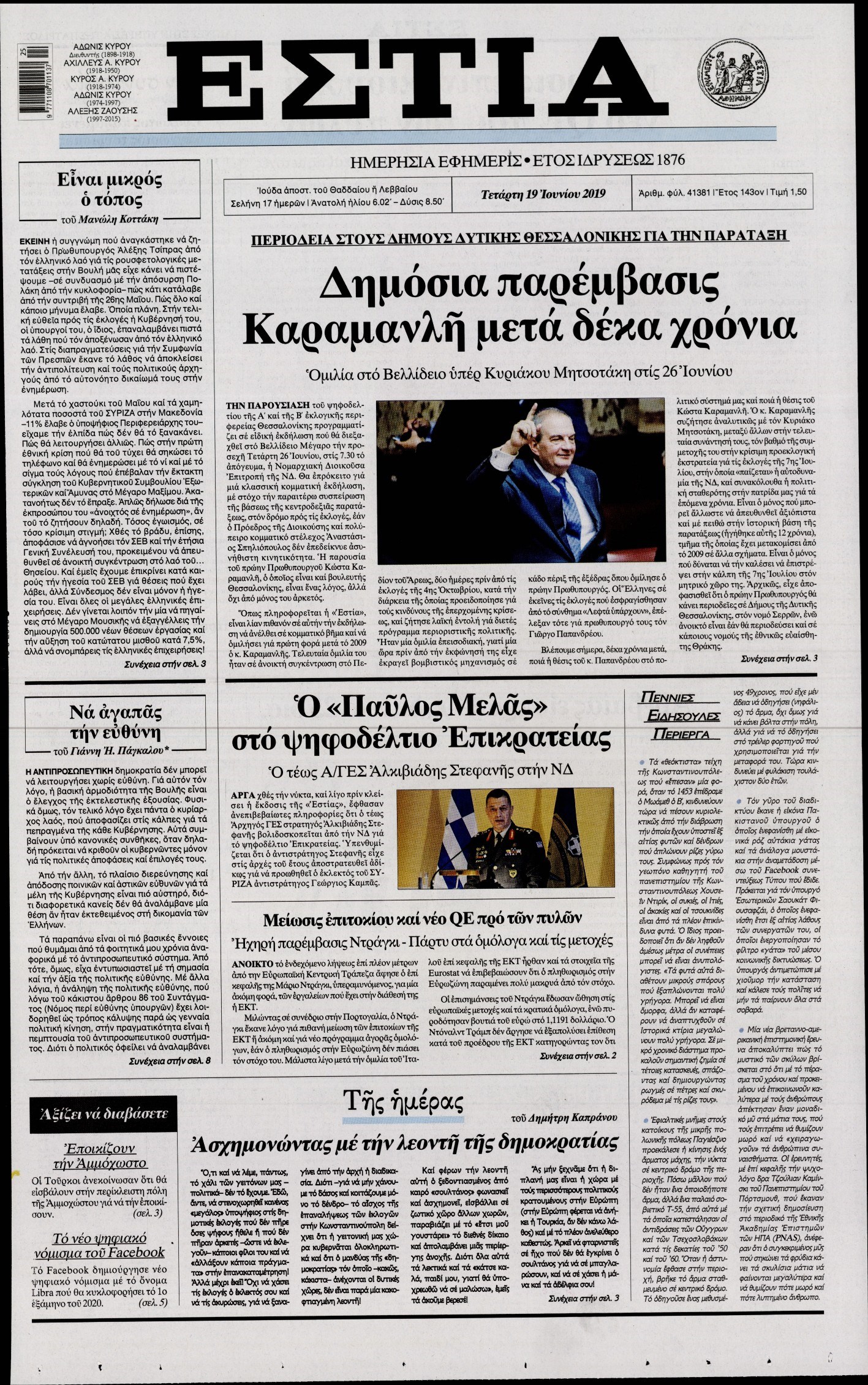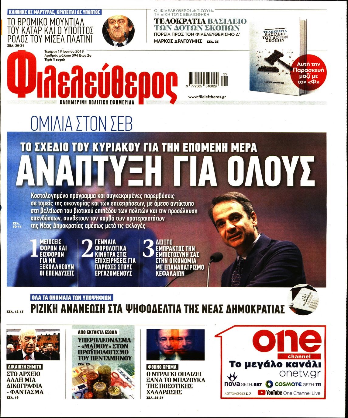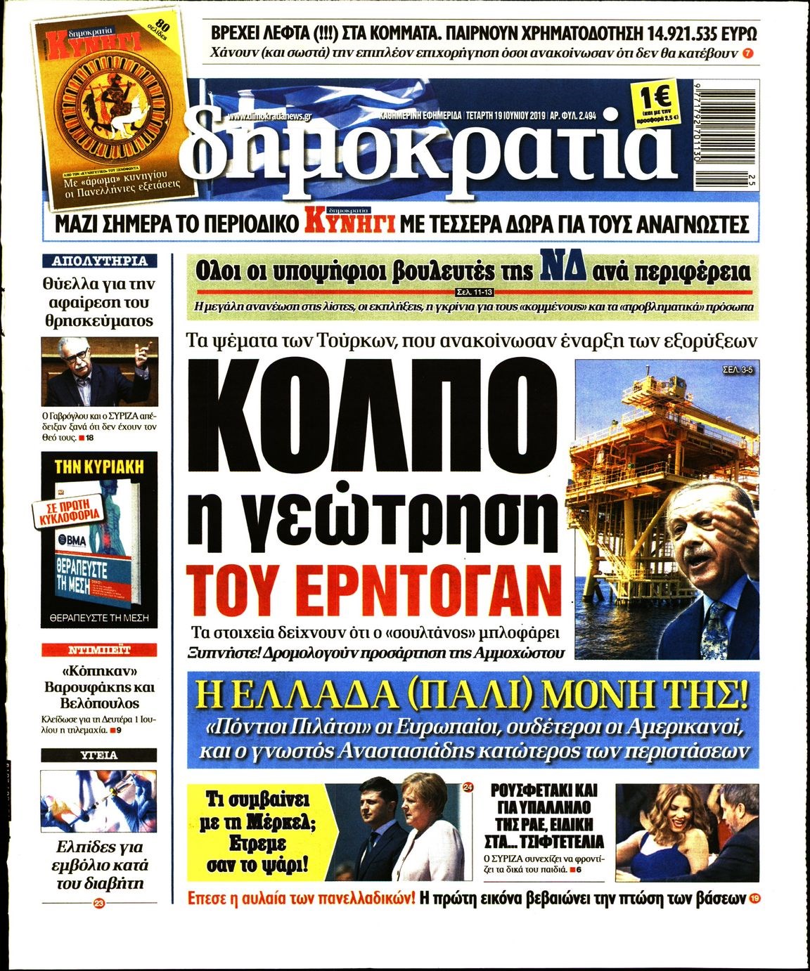 Οι πολιτικές εφημερίδες 19/6/2019 Enikos Newsroom 06:48, Τετάρτη 19 Ιουνίου 2019 Media Διαβάστε τα πρωτοσέλιδα των πολιτικών εφημερίδων: ΠΟΛΙΤΙΚΕΣ ΕΦΗΜΕΡΙΔΕΣ ΠΡΩΤΟΣΕΛΙΔΑ Μοιράσου το: σχολίασε κι εσύ (0 σχόλια) Ακολουθήστε το enikos.gr στο Google News και μάθετε πρώτοι όλες τις ειδήσεις Δείτε όλες τις τελευταίες ειδήσεις από την Ελλάδα και τον Κόσμο στο enikos.gr Ειδήσεις Ροή Ειδήσεων 5 ώρες πριν Χριστούγεννα στα μπλόκα: Επιμένουν στις κινητοποιήσεις τους οι αγρότες – Ανοίγουν τα διόδια το Σαββατοκύριακο 5 ώρες πριν Ουκρανία: Η άνευ προηγουμένου επίθεση σε ρωσικό τάνκερ στη Μεσόγειο και το μήνυμα προς στον Πούτιν – Το «μακρύ χέρι» του Κιέβου 4 ώρες πριν Πούτιν: Τα μηνύματα σε Ευρώπη και ΝΑΤΟ από το μαραθώνιο «σόου» του – Η απαίτηση για «σεβασμό» και η ειρήνη «με τους όρους» της Μόσχας 5 ώρες πριν Τραμπ: Δεν αποκλείει την πιθανότητα ενός πολέμου στη Βενεζουέλα – «Ο Μαδούρο ξέρει καλύτερα από τον καθένα τι ακριβώς θέλω» 6 ώρες πριν Συνεχίζει να προκαλεί ο Μίτσκοσκι: «Για μένα το όνομα Μακεδονία είναι ιερό» 4 ώρες πριν Ανακαλύφθηκαν αρχαία χρυσά νομίσματα 2.200 ετών που απεικονίζουν τον θεό Απόλλωνα – Η άγνωστη σύνδεση με τον Φίλιππο Β΄ της Μακεδονίας 5 ώρες πριν Ύπνος: Μια κρυφή κατάσταση του εγκεφάλου πριν από τον ύπνο μπορεί να είναι το “κλειδί” για υψηλή ευφυΐα και δημιουργικότητα 6 ώρες πριν Αριθμολογία: Οι άνθρωποι που έχουν γεννηθεί αυτές τις 4 ημερομηνίες, συχνά παρεξηγούνται – «Η καλοσύνη τους κρύβει τεράστια δύναμη» 7 ώρες πριν Ξεχάστε το καθάρισμα το Σαββατοκύριακο: Ο «κανόνας των 20 λεπτών» που θα σας λύσει τα χέρια 2 λεπτά πριν Ταμίλα Κουλίεβα: «Δεν θέλω να είμαι κάποια που πορεύεται συνεχώς με τις ίδιες αναφορές» 17 λεπτά πριν Η Ελλάδα προσχωρεί στη Διεθνή Επιτροπή Αποζημιώσεων για την Ουκρανία 32 λεπτά πριν GNTM: Η Ξένια Τσίρκοβα αναδείχθηκε μεγάλη νικήτρια και πήρε τις 50.000 ευρώ – Ποιος βρέθηκε σε απόσταση αναπνοής; 47 λεπτά πριν Θεσσαλονίκη: Εξαφανίστηκε 13χρονος από χώρο φιλοξενίας ασυνόδευτων ανηλίκων στο Ωραιόκαστρο 57 λεπτά πριν Ντόναλντ Τραμπ: «Πολύ βαριά αντίποινα» στη Συρία – «Πλήττουμε πολύ δυνατά οχυρά του Ισλαμικού Κράτους» ENIKOS NETWORK Το ΕΚΑΒ τιμήθηκε από την Ακαδημία Αθηνών για τα 40 χρόνια προσφοράς του Έχετε πραγματικά μεγάλη καρδιά; 10 χαρακτηριστικά όσων έχουν καλοσύνη Αναστολή μέτρων αναγκαστικής εκτέλεσης για κτηνοτρόφους που πλήττονται από την ευλογιά των αιγοπροβάτων Πλήρης επάρκεια προϊόντων στις λαϊκές της Αττικής, παρά τις αγροτικές κινητοποιήσεις – Τι απαντούν οι πωλητές Χαρτογραφώντας το «σημείο χωρίς επιστροφή»: Για πρώτη φορά αποκαλύπτεται με λεπτομέρεια το ακανθώδες όριο της ατμόσφαιρας τ... Η Google καταργεί τη λειτουργία «dark web report» – Πώς θα μπορούν οι χρήστες να διαγράφουν τα δεδομένα τους περισσότερα 02:50 , Σάββατο 20 Δεκεμβρίου 2025 GNTM: Η Ξένια Τσίρκοβα αναδείχθηκε μεγάλη νικήτρια και πήρε τις 50.000 ευρώ – Ποιος βρέθηκε σε απόσταση αναπνοής; Με φαντασμαγορικό τρόπο ολοκληρώθηκε το βράδυ της Παρασκευής ο μεγάλος τελικός του GNTM, μέσα ... 22:42 , Παρασκευή 19 Δεκεμβρίου 2025 Γιώργος Γιαννόπουλος για “Το σόι σου”: “Είναι ευτυχία και ευλογία αυτή η σειρά” «Είναι ευτυχία και ευλογία η συγκυρία αυτής της σειράς», θα πει ο Γιώργος Γιαννόπουλος -ο αγαπ... 20:37 , Παρασκευή 19 Δεκεμβρίου 2025 Don’t Forget The Lyrics: Η Έλλη Κοκκίνου υποδέχεται 4 παίκτες που θα κάνουν τα πάντα για να μη χάσουν ούτε… μισή λέξη από τους στίχους Το «Don’t Forget The Lyrics» επιστρέφει απόψε, Παρασκευ