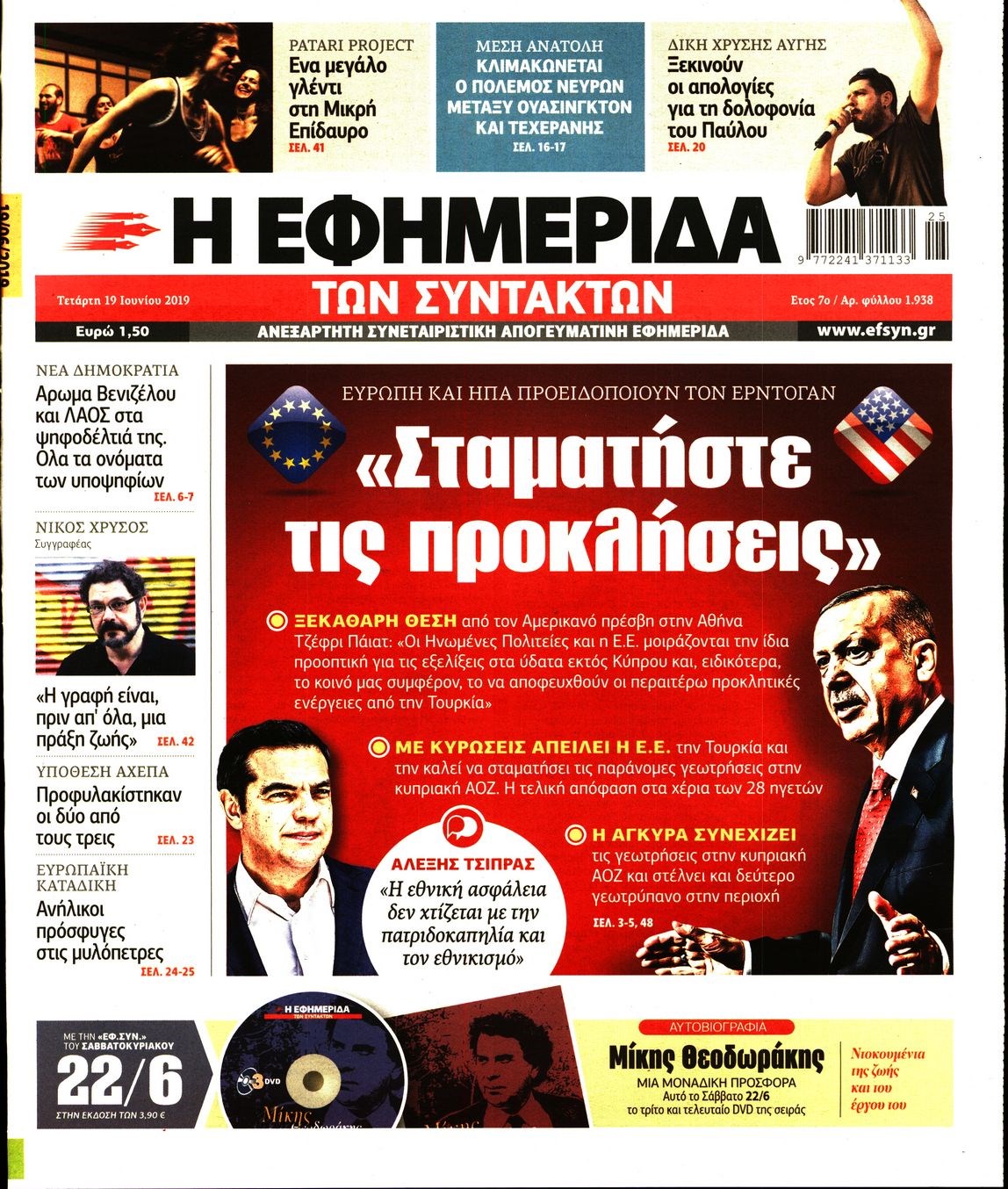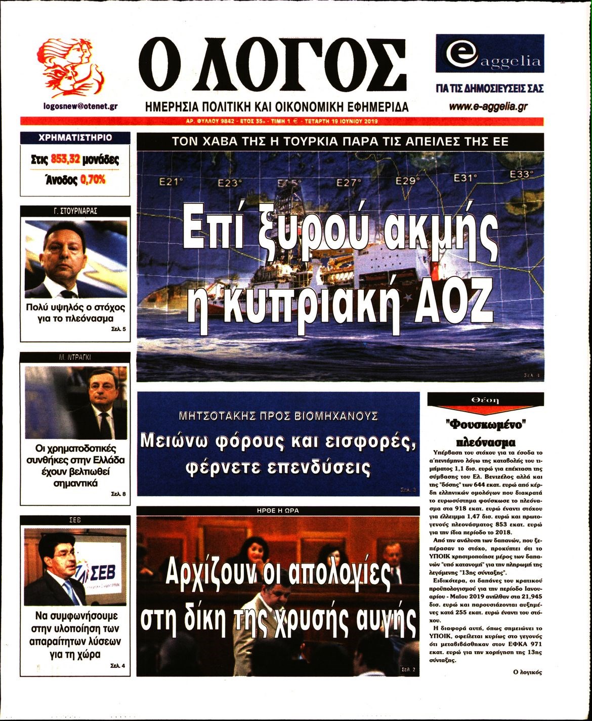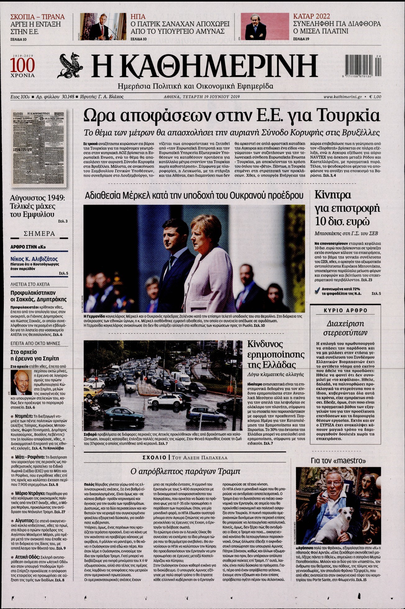 Οι πολιτικές εφημερίδες 19/6/2019 Enikos Newsroom 06:48, Τετάρτη 19 Ιουνίου 2019 Media Διαβάστε τα πρωτοσέλιδα των πολιτικών εφημερίδων: ΠΟΛΙΤΙΚΕΣ ΕΦΗΜΕΡΙΔΕΣ ΠΡΩΤΟΣΕΛΙΔΑ Μοιράσου το: σχολίασε κι εσύ (0 σχόλια) Ακολουθήστε το enikos.gr στο Google News και μάθετε πρώτοι όλες τις ειδήσεις Δείτε όλες τις τελευταίες ειδήσεις από την Ελλάδα και τον Κόσμο στο enikos.gr Ειδήσεις Ροή Ειδήσεων 5 ώρες πριν Χριστούγεννα στα μπλόκα: Επιμένουν στις κινητοποιήσεις τους οι αγρότες – Ανοίγουν τα διόδια το Σαββατοκύριακο 5 ώρες πριν Ουκρανία: Η άνευ προηγουμένου επίθεση σε ρωσικό τάνκερ στη Μεσόγειο και το μήνυμα προς στον Πούτιν – Το «μακρύ χέρι» του Κιέβου 4 ώρες πριν Πούτιν: Τα μηνύματα σε Ευρώπη και ΝΑΤΟ από το μαραθώνιο «σόου» του – Η απαίτηση για «σεβασμό» και η ειρήνη «με τους όρους» της Μόσχας 5 ώρες πριν Τραμπ: Δεν αποκλείει την πιθανότητα ενός πολέμου στη Βενεζουέλα – «Ο Μαδούρο ξέρει καλύτερα από τον καθένα τι ακριβώς θέλω» 6 ώρες πριν Συνεχίζει να προκαλεί ο Μίτσκοσκι: «Για μένα το όνομα Μακεδονία είναι ιερό» 4 ώρες πριν Ανακαλύφθηκαν αρχαία χρυσά νομίσματα 2.200 ετών που απεικονίζουν τον θεό Απόλλωνα – Η άγνωστη σύνδεση με τον Φίλιππο Β΄ της Μακεδονίας 5 ώρες πριν Ύπνος: Μια κρυφή κατάσταση του εγκεφάλου πριν από τον ύπνο μπορεί να είναι το “κλειδί” για υψηλή ευφυΐα και δημιουργικότητα 6 ώρες πριν Αριθμολογία: Οι άνθρωποι που έχουν γεννηθεί αυτές τις 4 ημερομηνίες, συχνά παρεξηγούνται – «Η καλοσύνη τους κρύβει τεράστια δύναμη» 7 ώρες πριν Ξεχάστε το καθάρισμα το Σαββατοκύριακο: Ο «κανόνας των 20 λεπτών» που θα σας λύσει τα χέρια 2 λεπτά πριν Ταμίλα Κουλίεβα: «Δεν θέλω να είμαι κάποια που πορεύεται συνεχώς με τις ίδιες αναφορές» 17 λεπτά πριν Η Ελλάδα προσχωρεί στη Διεθνή Επιτροπή Αποζημιώσεων για την Ουκρανία 32 λεπτά πριν GNTM: Η Ξένια Τσίρκοβα αναδείχθηκε μεγάλη νικήτρια και πήρε τις 50.000 ευρώ – Ποιος βρέθηκε σε απόσταση αναπνοής; 47 λεπτά πριν Θεσσαλονίκη: Εξαφανίστηκε 13χρονος από χώρο φιλοξενίας ασυνόδευτων ανηλίκων στο Ωραιόκαστρο 57 λεπτά πριν Ντόναλντ Τραμπ: «Πολύ βαριά αντίποινα» στη Συρία – «Πλήττουμε πολύ δυνατά οχυρά του Ισλαμικού Κράτους» ENIKOS NETWORK Το ΕΚΑΒ τιμήθηκε από την Ακαδημία Αθηνών για τα 40 χρόνια προσφοράς του Έχετε πραγματικά μεγάλη καρδιά; 10 χαρακτηριστικά όσων έχουν καλοσύνη Αναστολή μέτρων αναγκαστικής εκτέλεσης για κτηνοτρόφους που πλήττονται από την ευλογιά των αιγοπροβάτων Πλήρης επάρκεια προϊόντων στις λαϊκές της Αττικής, παρά τις αγροτικές κινητοποιήσεις – Τι απαντούν οι πωλητές Χαρτογραφώντας το «σημείο χωρίς επιστροφή»: Για πρώτη φορά αποκαλύπτεται με λεπτομέρεια το ακανθώδες όριο της ατμόσφαιρας τ... Η Google καταργεί τη λειτουργία «dark web report» – Πώς θα μπορούν οι χρήστες να διαγράφουν τα δεδομένα τους περισσότερα 02:50 , Σάββατο 20 Δεκεμβρίου 2025 GNTM: Η Ξένια Τσίρκοβα αναδείχθηκε μεγάλη νικήτρια και πήρε τις 50.000 ευρώ – Ποιος βρέθηκε σε απόσταση αναπνοής; Με φαντασμαγορικό τρόπο ολοκληρώθηκε το βράδυ της Παρασκευής ο μεγάλος τελικός του GNTM, μέσα ... 22:42 , Παρασκευή 19 Δεκεμβρίου 2025 Γιώργος Γιαννόπουλος για “Το σόι σου”: “Είναι ευτυχία και ευλογία αυτή η σειρά” «Είναι ευτυχία και ευλογία η συγκυρία αυτής της σειράς», θα πει ο Γιώργος Γιαννόπουλος -ο αγαπ... 20:37 , Παρασκευή 19 Δεκεμβρίου 2025 Don’t Forget The Lyrics: Η Έλλη Κοκκίνου υποδέχεται 4 παίκτες που θα κάνουν τα πάντα για να μη χάσουν ούτε… μισή λέξη από τους στίχους Το «Don’t Forget The Lyrics» επιστρέφει απόψε, Παρασκευ