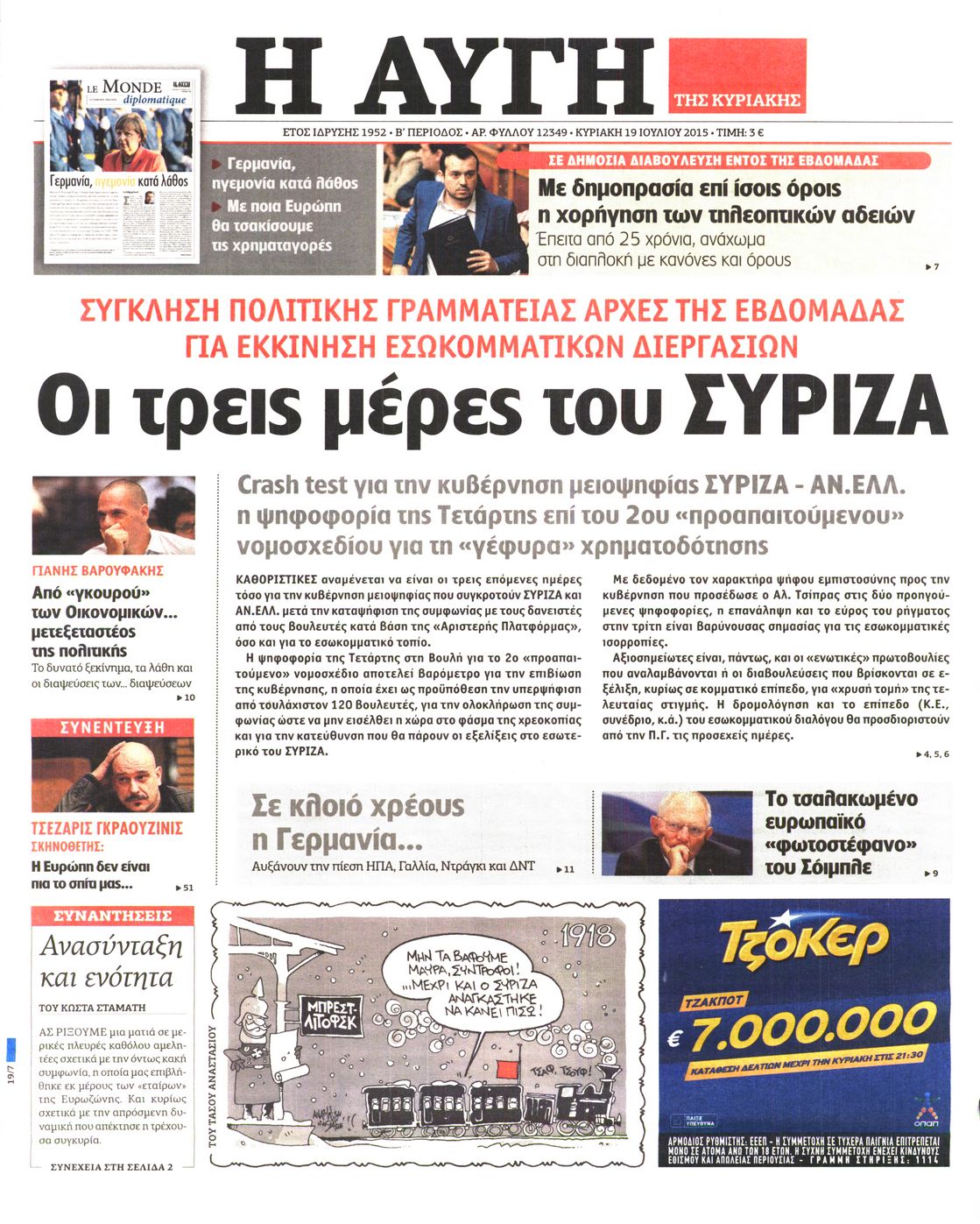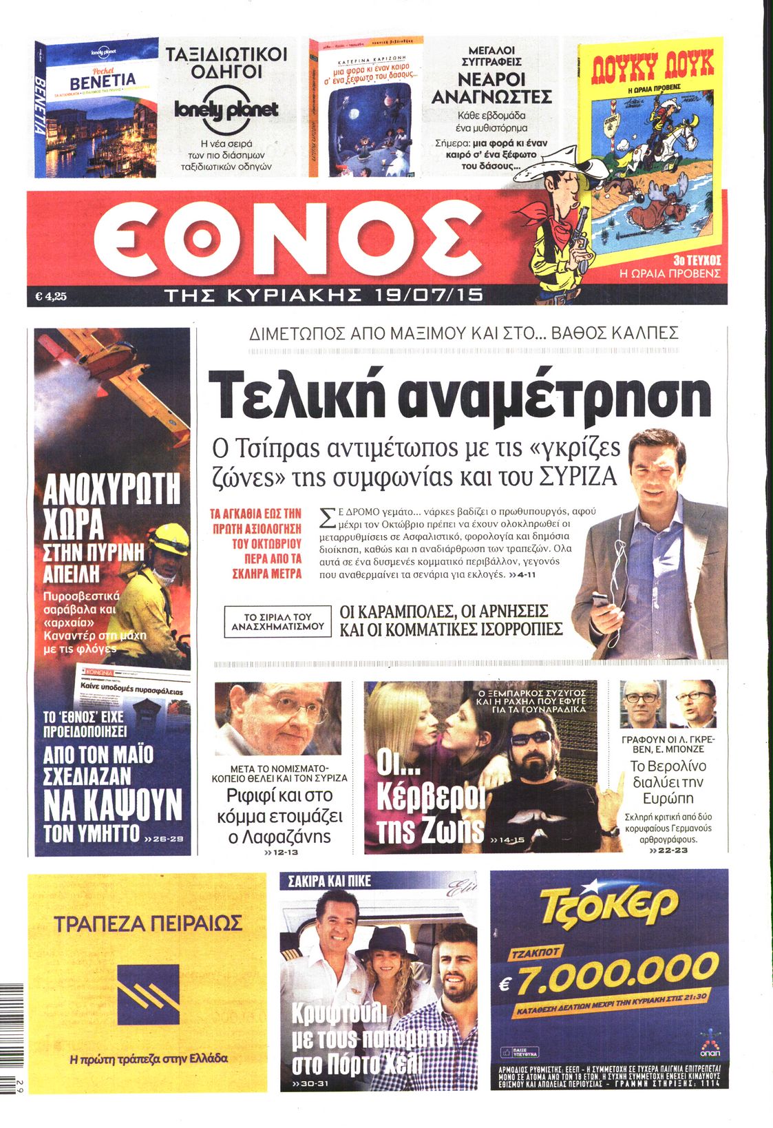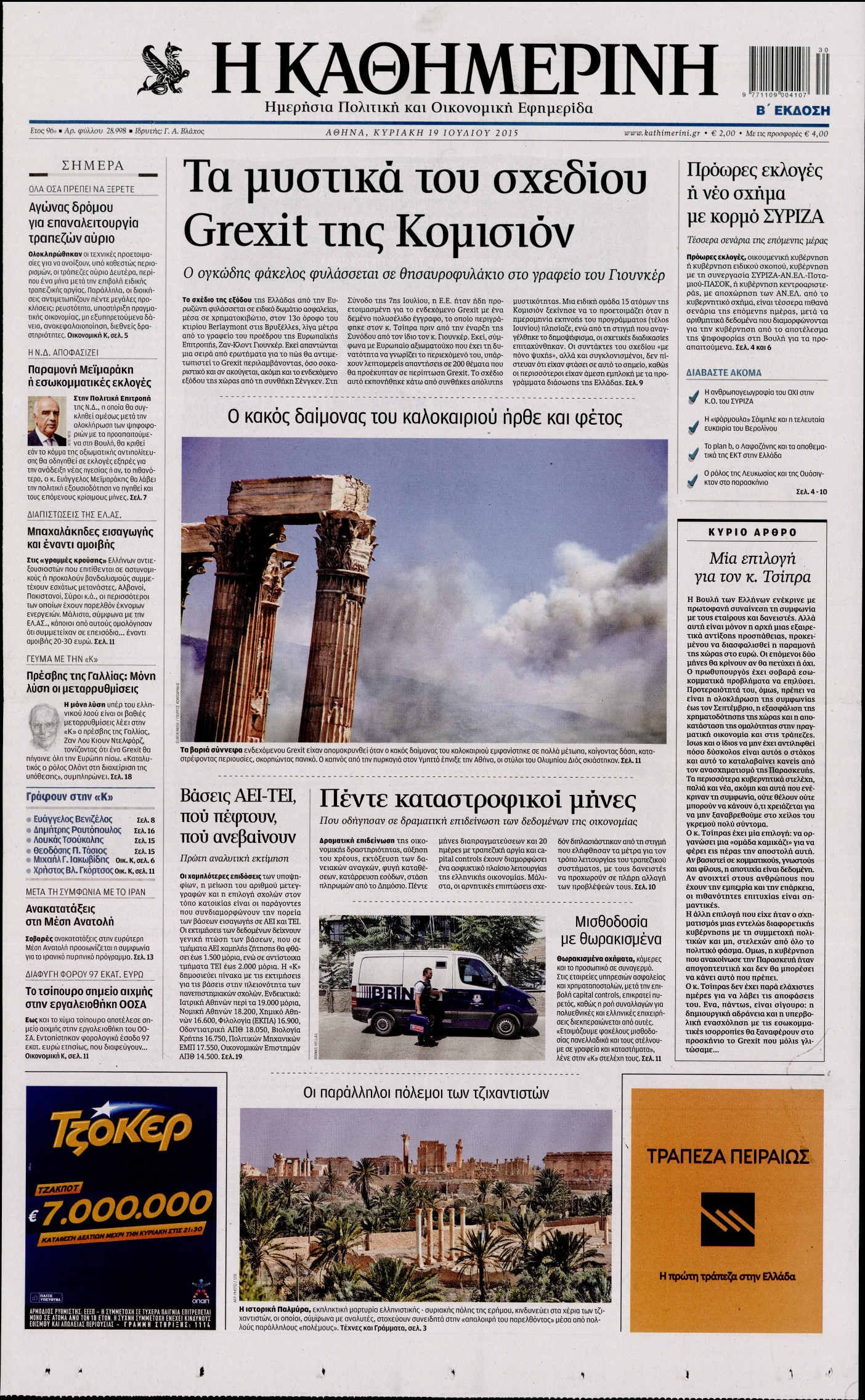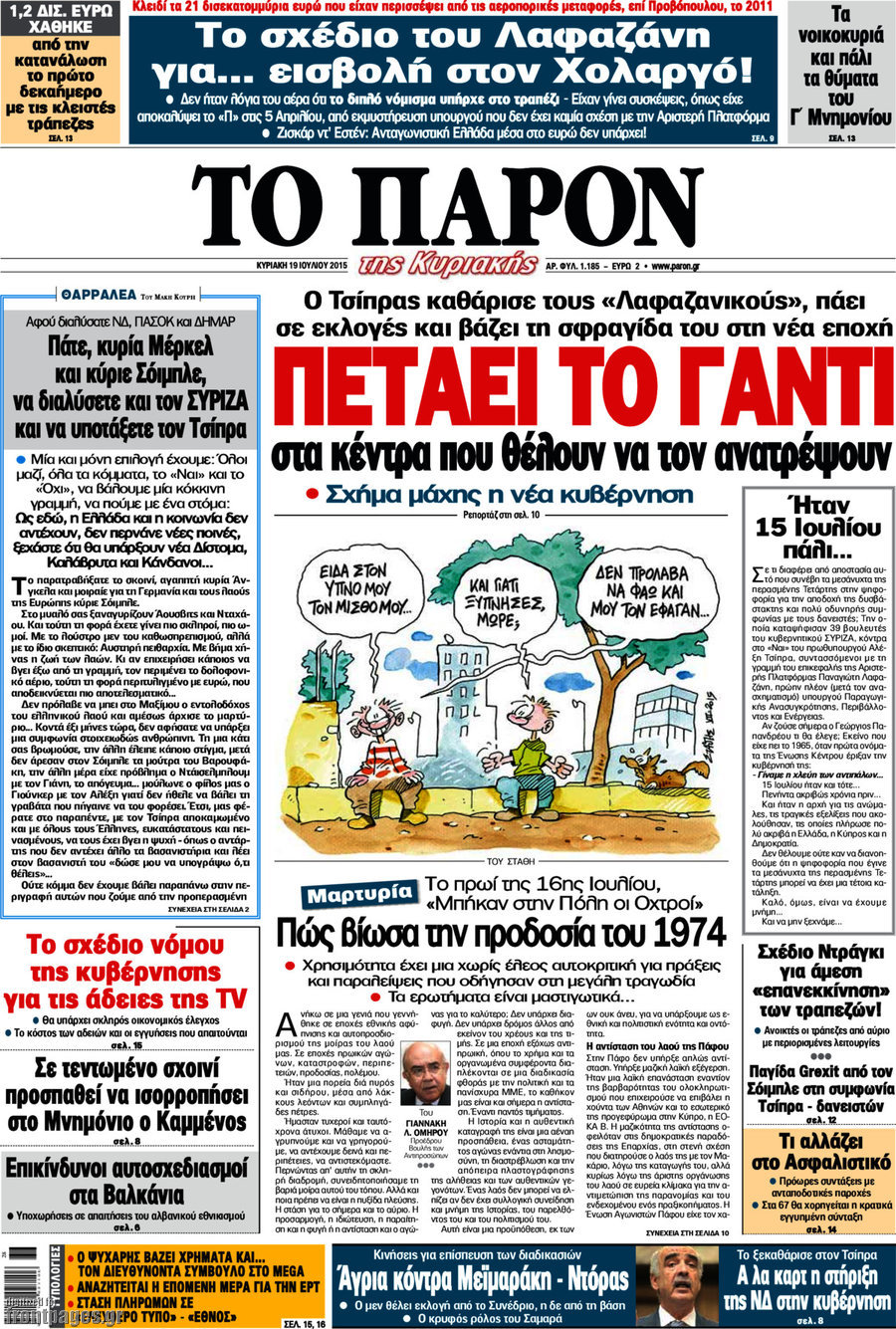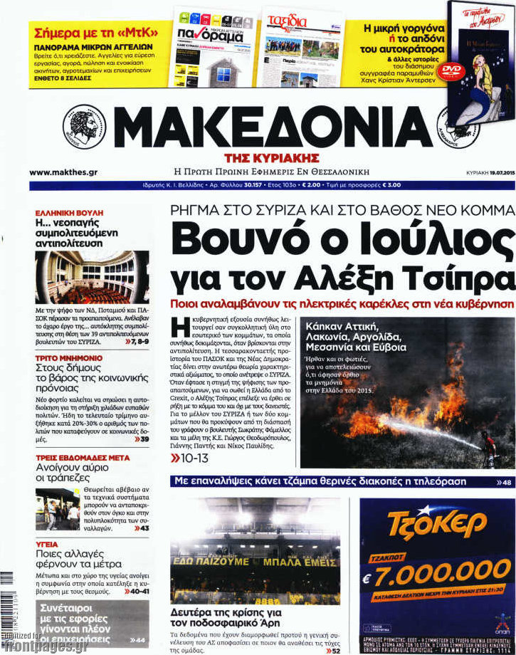 Οι πολιτικές εφημερίδες 19/7/2015 Enikos Newsroom 06:52, Κυριακή 19 Ιουλίου 2015 Media Διαβάστε τα σημερινά πρωτοσέλιδα των πολιτικών εφημερίδων: ΠΟΛΙΤΙΚΕΣ ΕΦΗΜΕΡΙΔΕΣ ΠΡΩΤΟΣΕΛΙΔΑ Μοιράσου το: σχολίασε κι εσύ (0 σχόλια) Ακολουθήστε το enikos.gr στο Google News και μάθετε πρώτοι όλες τις ειδήσεις Δείτε όλες τις τελευταίες ειδήσεις από την Ελλάδα και τον Κόσμο στο enikos.gr Ειδήσεις Ροή Ειδήσεων 2 ώρες πριν Η Ουκρανία χτύπησε τάνκερ του σκιώδους στόλου της Ρωσίας στη Μεσόγειο – Έπλεε νότια της Κρήτης 4 ώρες πριν Πούτιν: Η Ουκρανία δεν είναι έτοιμη για ειρηνευτικές συνομιλίες – Ο ρωσικός στρατός προελαύνει σε όλα τα μέτωπα 45 λεπτά πριν Θεσσαλονίκη: Στη φυλακή ο 44χρονος που κατηγορείται ότι προσπάθησε να πνίξει με κορδόνι την 34χρονη σύντροφό του 1 ώρα πριν Εξώδικο επιχειρηματία στον Γιώργο Μαζωνάκη – Τι απαντά στις καταγγελίες του τραγουδιστή 2 ώρες πριν Βουλή: Υπερψηφίστηκε το νομοσχέδιο για την ένταξη του ΟΠΕΚΕΠΕ στην ΑΑΔΕ 6 ώρες πριν Αλλαγή σελίδας για 3 ζώδια – «Μία δύσκολη περίοδος φτάνει στο τέλος της» 2 ημέρες πριν 20 χρόνια τα Χριστούγεννα ξεκινούν στα Public με μεγάλη ποικιλία σε δώρα! 5 ώρες πριν Γεμάτος νεροχύτης; 5 σοβαρές ευθύνες που «φοβίζουν» όσους αφήνουν άπλυτα πιάτα 4 ώρες πριν Ειδικός μοιράζεται 6 κόλπα για να διατηρείστε σε φόρμα με πάνω από 40 ώρες εργασίας την εβδομάδα: «Προπονηθείτε πριν από τη δουλειά, όχι μετά» 7 λεπτά πριν Πούτιν: Σαρκαστικά μηνύματα, παράπονα και απρόοπτα στη συνέντευξη Τύπου – Η πρόταση γάμου on air και οι ερωτήσεις για τα αγγούρια και τους… εξωγήινους 14 λεπτά πριν Κρήτη: Ένοχος ο 54χρονος «ερευνητής» για απάτη στην υπόθεση του 33χρονου γιατρού που αγνοείται 15 λεπτά πριν Νίκος Κούρκουλος: Αυτός ο αλύγιστος και ασυμβίβαστος «Αστραπόγιαννος» 20 λεπτά πριν Παναθηναϊκός: Θα προτείνει στη Λάτσιο 4 εκατ. ευρώ και συνιδιοκτησία για τον Μανδά 26 λεπτά πριν Η απάντηση της κυβέρνησης στα αιτήματα των αγροτών: 16+4 υλοποιούνται ή βρίσκονται υπό επεξεργασία για να βρεθεί λύση – 7 δεν μπορούν να επιλυθούν ENIKOS NETWORK Τάξη στις ιατρικές διαφημίσεις για την προστασία των πολιτών βάζει ο ΙΣΑ Μακροζωία: Τι παίζει πιο σημαντικό ρόλο ακόμα και από την διατροφή και την άσκηση, σύμφωνα με μελέτη Βουλή: Υπερψηφίστηκε το νομοσχέδιο για τη μετάβαση του ΟΠΕΚΕΠΕ στην ΑΑΔΕ ΕΥΔΑΠ: Οδηγός για τις αλλαγές στα τιμολόγια του νερού – 17 ερωτήσεις και απαντήσεις Χαρτογραφώντας το «σημείο χωρίς επιστροφή»: Για πρώτη φορά αποκαλύπτεται με λεπτομέρεια το ακανθώδες όριο της ατμόσφαιρας τ... Η Google καταργεί τη λειτουργία «dark web report» – Πώς θα μπορούν οι χρήστες να διαγράφουν τα δεδομένα τους περισσότερα 15:15 , Παρασκευή 19 Δεκεμβρίου 2025 Την Κυριακή με τη Realnews: Ό,τι και αν αγοράσεις, σκανάρεις και κερδίζεις! Την Κυριακή με τη Realnews: Ό,τι και αν αγοράσεις, σκανάρεις και κερδίζεις! Με το PADU app, το... 08:00 , Παρασκευή 19 Δεκεμβρίου 2025 Την Κυριακή με τη Realnews: Δωροεπιταγή 10€ Δωροεπιταγή αξίας 10€ για αγορές άνω των 60€ από τα πολυκαταστήματα FactoryOutlet H προσφορά ι... 05:48 , Παρασκευή 19 Δεκεμβρίου 2025 Οι οικονομικές εφημερίδες 19/12/2025 Διαβάστε τα πρωτοσέλιδα από τις οικονομικές εφημερίδες, σήμερα 19/12/2025. 05:43 , Παρασκευή 19 Δεκεμβρίου 2025 Οι αθλητικές εφημερίδες 19/12/2025 Διαβάστε τα πρωτοσέλιδα από τις αθλητικές εφημερίδες, σήμερα 19/12/2025. ΤΕΛΕΥΤΑΙΕΣ ΕΙΔΗΣΕΙΣ 7 λεπτά πριν Πούτιν: Σαρκαστικά μηνύματα, παράπονα και απρόοπτα... 14 λεπτά πριν Κρήτη: Ένοχος ο 54χρονος «ερευνητής» για απάτη στην... 15 λεπτά πριν Νίκος Κούρκουλος: Αυτ
