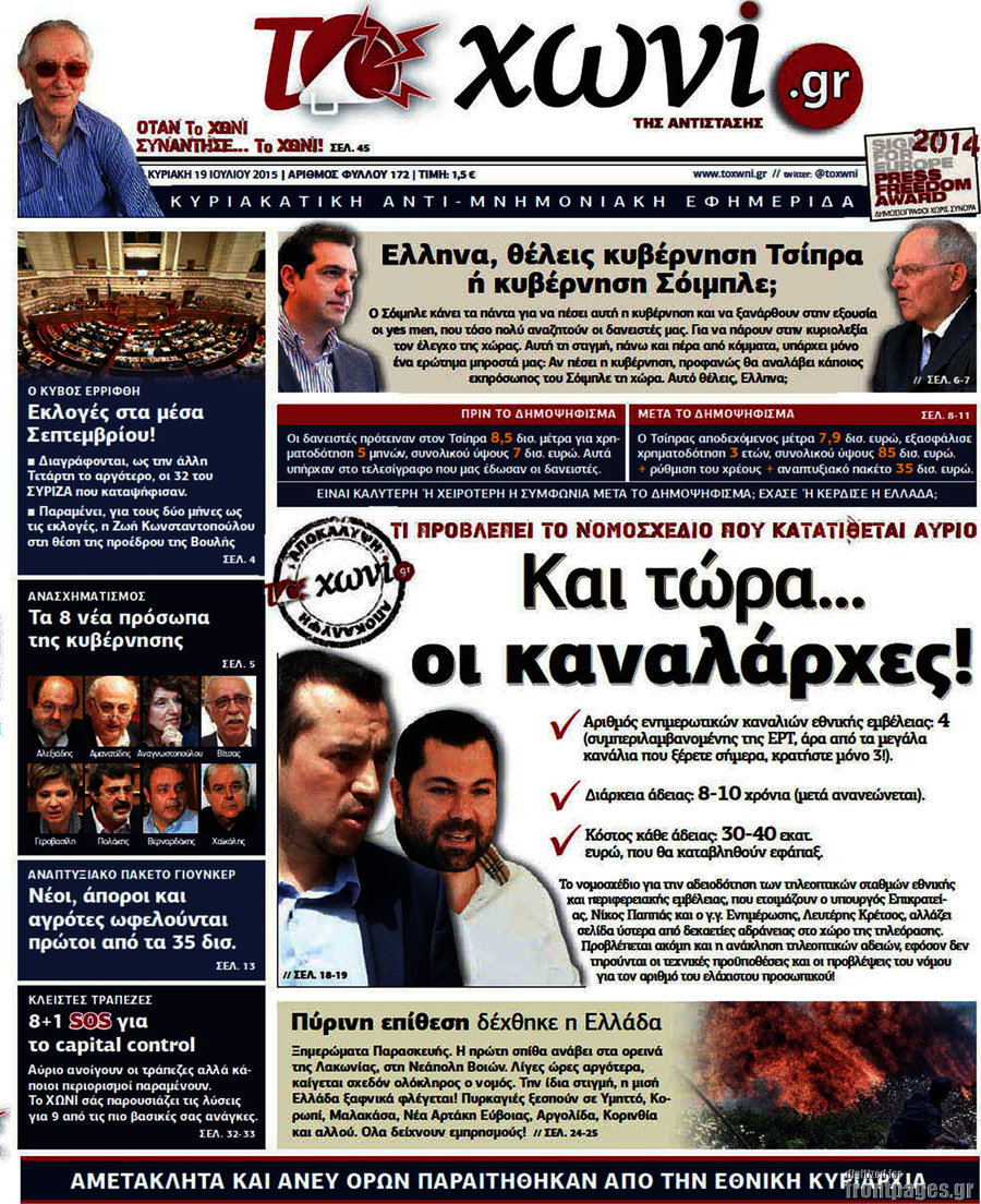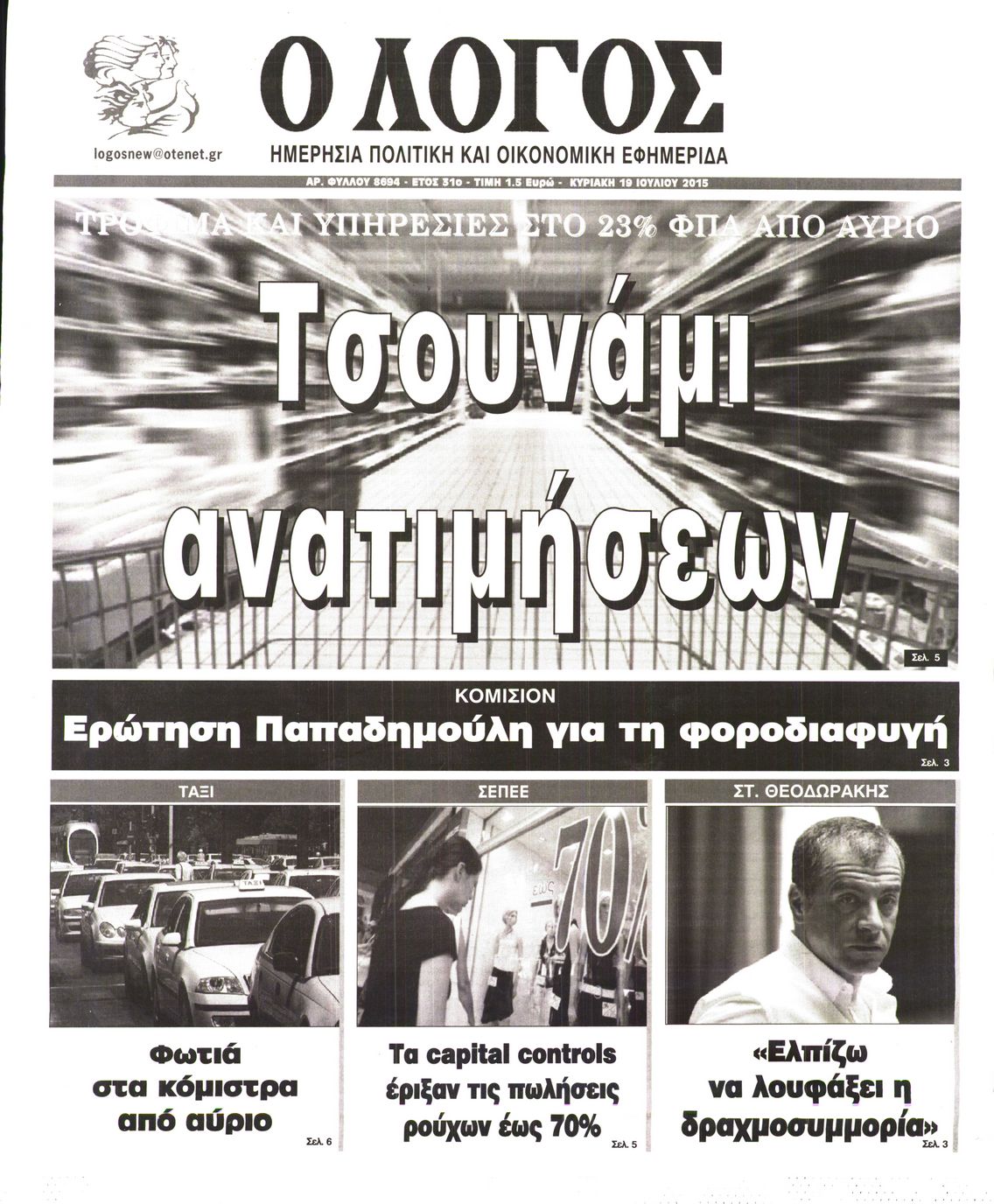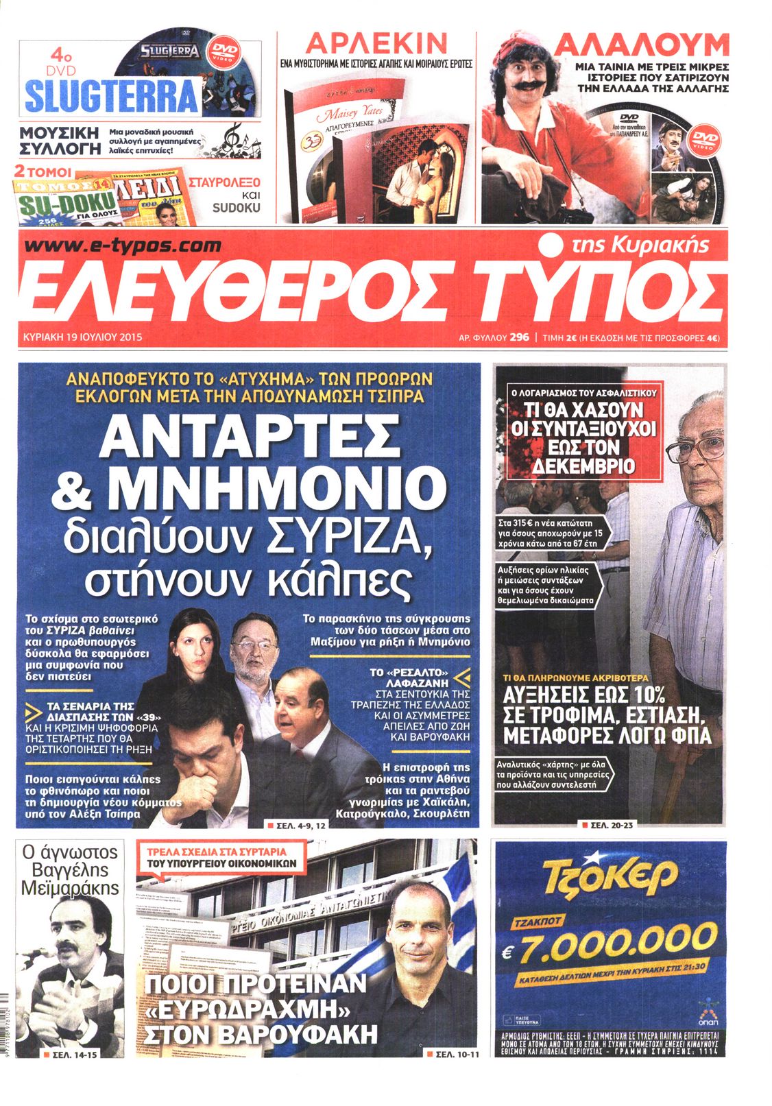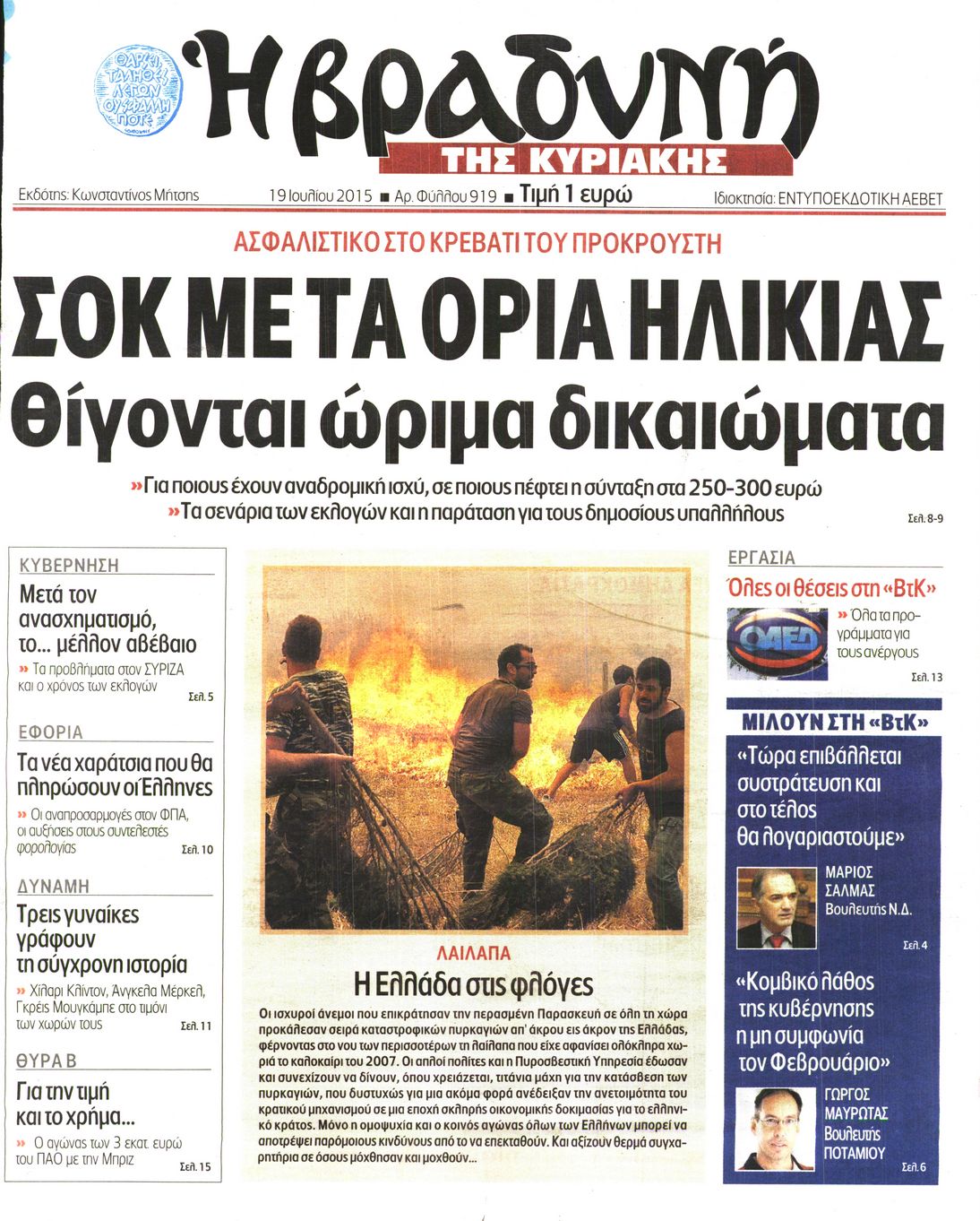 Οι πολιτικές εφημερίδες 19/7/2015 Enikos Newsroom 06:52, Κυριακή 19 Ιουλίου 2015 Media Διαβάστε τα σημερινά πρωτοσέλιδα των πολιτικών εφημερίδων: ΠΟΛΙΤΙΚΕΣ ΕΦΗΜΕΡΙΔΕΣ ΠΡΩΤΟΣΕΛΙΔΑ Μοιράσου το: σχολίασε κι εσύ (0 σχόλια) Ακολουθήστε το enikos.gr στο Google News και μάθετε πρώτοι όλες τις ειδήσεις Δείτε όλες τις τελευταίες ειδήσεις από την Ελλάδα και τον Κόσμο στο enikos.gr Ειδήσεις Ροή Ειδήσεων 2 ώρες πριν Η Ουκρανία χτύπησε τάνκερ του σκιώδους στόλου της Ρωσίας στη Μεσόγειο – Έπλεε νότια της Κρήτης 4 ώρες πριν Πούτιν: Η Ουκρανία δεν είναι έτοιμη για ειρηνευτικές συνομιλίες – Ο ρωσικός στρατός προελαύνει σε όλα τα μέτωπα 45 λεπτά πριν Θεσσαλονίκη: Στη φυλακή ο 44χρονος που κατηγορείται ότι προσπάθησε να πνίξει με κορδόνι την 34χρονη σύντροφό του 1 ώρα πριν Εξώδικο επιχειρηματία στον Γιώργο Μαζωνάκη – Τι απαντά στις καταγγελίες του τραγουδιστή 2 ώρες πριν Βουλή: Υπερψηφίστηκε το νομοσχέδιο για την ένταξη του ΟΠΕΚΕΠΕ στην ΑΑΔΕ 6 ώρες πριν Αλλαγή σελίδας για 3 ζώδια – «Μία δύσκολη περίοδος φτάνει στο τέλος της» 2 ημέρες πριν 20 χρόνια τα Χριστούγεννα ξεκινούν στα Public με μεγάλη ποικιλία σε δώρα! 5 ώρες πριν Γεμάτος νεροχύτης; 5 σοβαρές ευθύνες που «φοβίζουν» όσους αφήνουν άπλυτα πιάτα 4 ώρες πριν Ειδικός μοιράζεται 6 κόλπα για να διατηρείστε σε φόρμα με πάνω από 40 ώρες εργασίας την εβδομάδα: «Προπονηθείτε πριν από τη δουλειά, όχι μετά» 7 λεπτά πριν Πούτιν: Σαρκαστικά μηνύματα, παράπονα και απρόοπτα στη συνέντευξη Τύπου – Η πρόταση γάμου on air και οι ερωτήσεις για τα αγγούρια και τους… εξωγήινους 14 λεπτά πριν Κρήτη: Ένοχος ο 54χρονος «ερευνητής» για απάτη στην υπόθεση του 33χρονου γιατρού που αγνοείται 15 λεπτά πριν Νίκος Κούρκουλος: Αυτός ο αλύγιστος και ασυμβίβαστος «Αστραπόγιαννος» 20 λεπτά πριν Παναθηναϊκός: Θα προτείνει στη Λάτσιο 4 εκατ. ευρώ και συνιδιοκτησία για τον Μανδά 26 λεπτά πριν Η απάντηση της κυβέρνησης στα αιτήματα των αγροτών: 16+4 υλοποιούνται ή βρίσκονται υπό επεξεργασία για να βρεθεί λύση – 7 δεν μπορούν να επιλυθούν ENIKOS NETWORK Τάξη στις ιατρικές διαφημίσεις για την προστασία των πολιτών βάζει ο ΙΣΑ Μακροζωία: Τι παίζει πιο σημαντικό ρόλο ακόμα και από την διατροφή και την άσκηση, σύμφωνα με μελέτη Βουλή: Υπερψηφίστηκε το νομοσχέδιο για τη μετάβαση του ΟΠΕΚΕΠΕ στην ΑΑΔΕ ΕΥΔΑΠ: Οδηγός για τις αλλαγές στα τιμολόγια του νερού – 17 ερωτήσεις και απαντήσεις Χαρτογραφώντας το «σημείο χωρίς επιστροφή»: Για πρώτη φορά αποκαλύπτεται με λεπτομέρεια το ακανθώδες όριο της ατμόσφαιρας τ... Η Google καταργεί τη λειτουργία «dark web report» – Πώς θα μπορούν οι χρήστες να διαγράφουν τα δεδομένα τους περισσότερα 15:15 , Παρασκευή 19 Δεκεμβρίου 2025 Την Κυριακή με τη Realnews: Ό,τι και αν αγοράσεις, σκανάρεις και κερδίζεις! Την Κυριακή με τη Realnews: Ό,τι και αν αγοράσεις, σκανάρεις και κερδίζεις! Με το PADU app, το... 08:00 , Παρασκευή 19 Δεκεμβρίου 2025 Την Κυριακή με τη Realnews: Δωροεπιταγή 10€ Δωροεπιταγή αξίας 10€ για αγορές άνω των 60€ από τα πολυκαταστήματα FactoryOutlet H προσφορά ι... 05:48 , Παρασκευή 19 Δεκεμβρίου 2025 Οι οικονομικές εφημερίδες 19/12/2025 Διαβάστε τα πρωτοσέλιδα από τις οικονομικές εφημερίδες, σήμερα 19/12/2025. 05:43 , Παρασκευή 19 Δεκεμβρίου 2025 Οι αθλητικές εφημερίδες 19/12/2025 Διαβάστε τα πρωτοσέλιδα από τις αθλητικές εφημερίδες, σήμερα 19/12/2025. ΤΕΛΕΥΤΑΙΕΣ ΕΙΔΗΣΕΙΣ 7 λεπτά πριν Πούτιν: Σαρκαστικά μηνύματα, παράπονα και απρόοπτα... 14 λεπτά πριν Κρήτη: Ένοχος ο 54χρονος «ερευνητής» για απάτη στην... 15 λεπτά πριν Νίκος Κούρκουλος: Αυτ