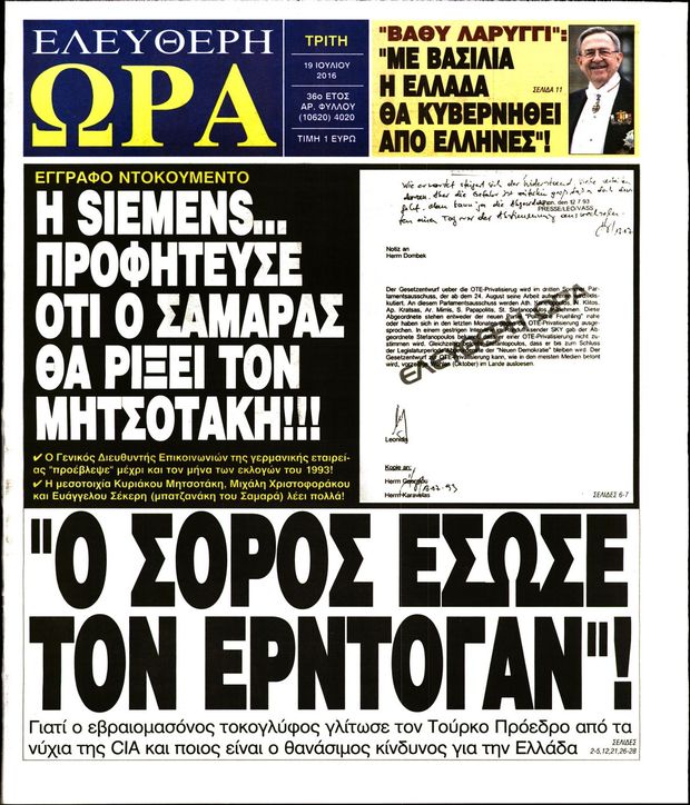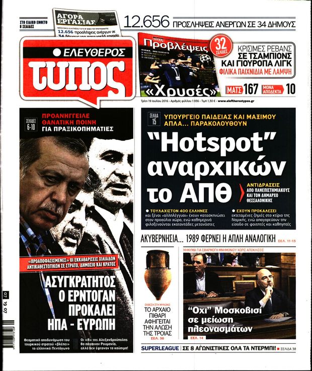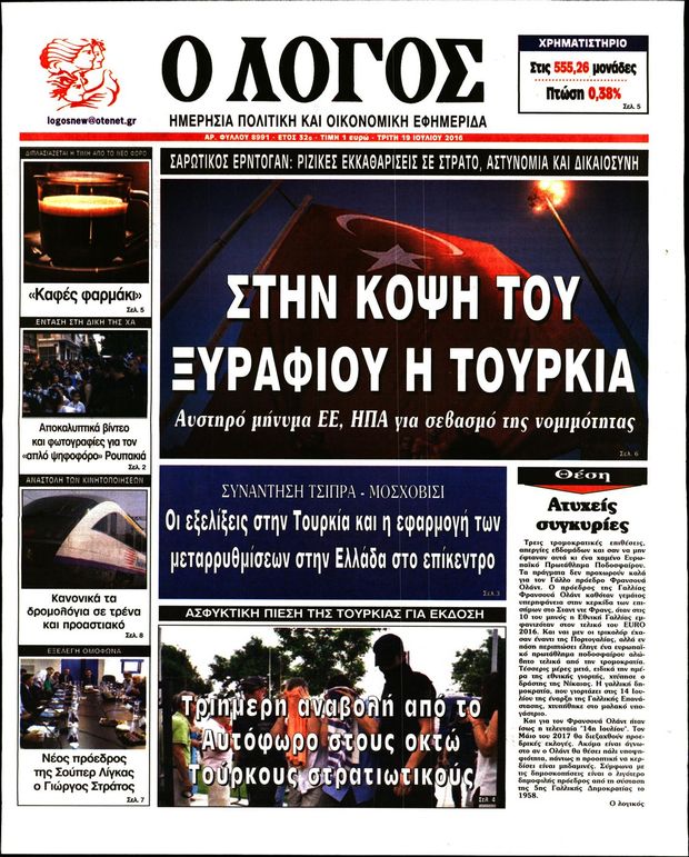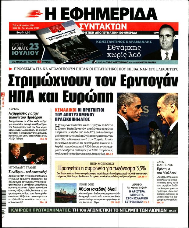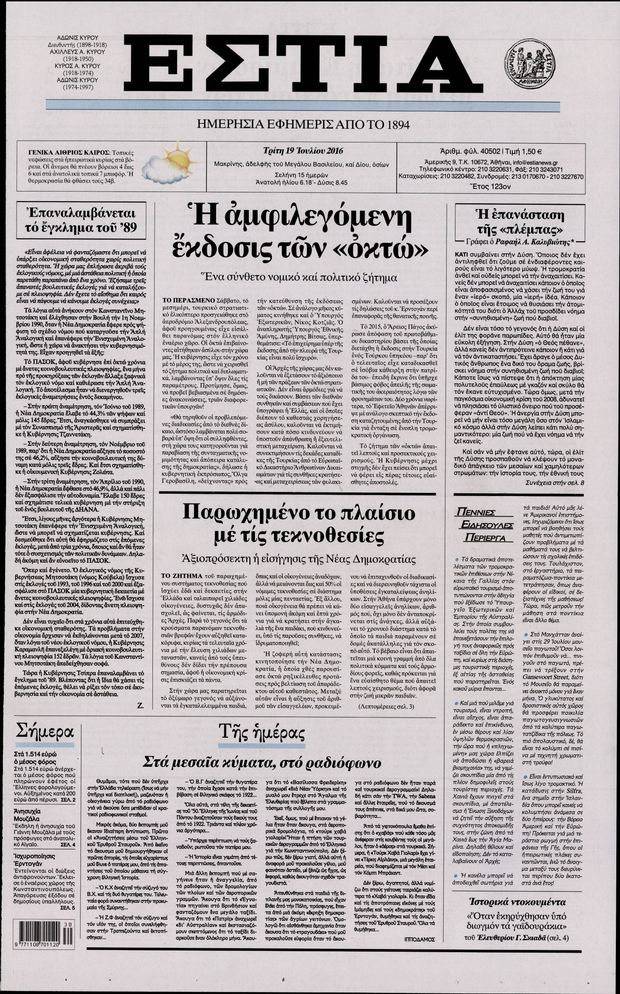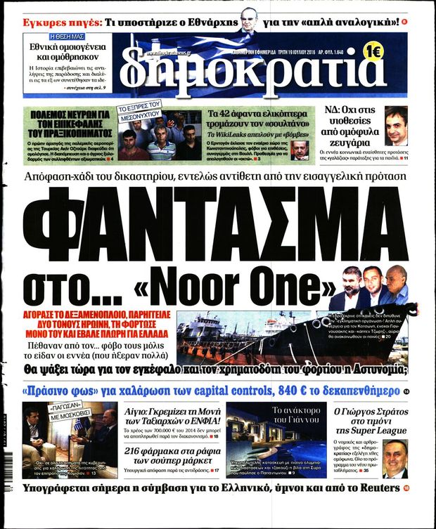 Οι πολιτικές εφημερίδες 19/7/2016 Enikos Newsroom 06:14, Τρίτη 19 Ιουλίου 2016 Media Διαβάστε τα σημερινά πρωτοσέλιδα των πολιτικών εφημερίδων: ΠΟΛΙΤΙΚΕΣ ΕΦΗΜΕΡΙΔΕΣ ΠΡΩΤΟΣΕΛΙΔΑ Μοιράσου το: σχολίασε κι εσύ (0 σχόλια) Ακολουθήστε το enikos.gr στο Google News και μάθετε πρώτοι όλες τις ειδήσεις Δείτε όλες τις τελευταίες ειδήσεις από την Ελλάδα και τον Κόσμο στο enikos.gr Ειδήσεις Ροή Ειδήσεων 4 ώρες πριν Αυξάνουν την πίεση προς την κυβέρνηση οι αγρότες: Κλείνουν παρακαμπτήριους και ανοίγουν διόδια – Τι θα γίνει τις γιορτές 3 ώρες πριν ΟΠΕΚΕΠΕ: Προφυλακιστέος ο φερόμενος αρχηγός και ο λογιστής της εγκληματικής οργάνωσης 4 ώρες πριν Φοινικούντα: Το Σάββατο απολογείται ο 30χρονος γιος γνωστού επιχειρηματία της Πλάκας που παραδόθηκε – Όσα είπε στους αστυνομικούς και ο ρόλος του στο έγκλημα 4 ώρες πριν Μπορεί ο Μαδούρο να αντέξει τον αποκλεισμό του Τραμπ; Τι θα χρειαστεί η Ουάσινγκτον για να τον ανατρέψει 3 ώρες πριν ΑΕΚ – Κραϊόβα 3-2: Επική ανατροπή και πρόκριση στους «16» του Conference League η Ένωση 4 ώρες πριν Αρχαιολόγοι ανακάλυψαν ρωμαϊκά τεχνουργήματα από μια πόλη που δεν υπήρξε ποτέ – Τα τρία εντυπωσιακά κτίρια και ο αμφορέας με τις… σαρδέλες 5 ώρες πριν Ύπνος: Η απλή βραδινή ρουτίνα για να προστατεύσετε τα μαλλιά σας από το κρύο κατά τη διάρκεια του χειμώνα 6 ώρες πριν Manifesting: Πώς να συναντήσετε τον σύντροφο της ζωής σας, ανάλογα με τον μήνα γέννησής σας 2 ημέρες πριν 20 χρόνια τα Χριστούγεννα ξεκινούν στα Public με μεγάλη ποικιλία σε δώρα! 16 λεπτά πριν Πόλεμος στην Ουκρανία: Ρωσικά drones έπληξαν την Οδησσό – Μία νεκρή και ζημιές σε ενεργειακές υποδομές 23 λεπτά πριν ΑΕΚ-Κραϊόβα: Τα highlights της μυθικής ανατροπής της «Ένωσης» 38 λεπτά πριν Μιχάλης Χρυσοχοΐδης από την Κωνσταντινούπολη: Κοινές επιχειρήσεις Ελλάδας – Τουρκίας ενάντια στο οργανωμένο έγκλημα 1 ώρα πριν Μάρκο Νίκολιτς: «Είμαι περήφανος για τους παίκτες μου, όποιος αντίπαλος και να έρθει θα προετοιμαστούμε» 1 ώρα πριν ΟΗΕ: Την εκλογή του νέου ύπατου αρμοστή για τους Πρόσφυγες Μπαρχάμ Άχμεντ Σαλίχ χαιρέτησε ο Αντόνιο Γκουτέρες ENIKOS NETWORK Σε περίοδο αυξημένης δραστηριότητας η γρίπη στην Ελλάδα-Μέτρα προστασίας από τον ΕΟΔΥ Σκέφτεστε συνέχεια συζητήσεις που έχετε κάνει; Τι σημαίνει αυτό, σύμφωνα με ειδικό Στεγαστικό: Τι λέει η ΠΟΜΙΔΑ για τα νέα μέτρα που ανακοίνωσε ο Κυριάκος Μητσοτάκης Λαγκάρντ: Αισιόδοξη για την ανάπτυξη της Ευρωζώνης, αβέβαιη για τον πληθωρισμό Χαρτογραφώντας το «σημείο χωρίς επιστροφή»: Για πρώτη φορά αποκαλύπτεται με λεπτομέρεια το ακανθώδες όριο της ατμόσφαιρας τ... Η Google καταργεί τη λειτουργία «dark web report» – Πώς θα μπορούν οι χρήστες να διαγράφουν τα δεδομένα τους περισσότερα 17:45 , Πέμπτη 18 Δεκεμβρίου 2025 ROUK ZOUK: Εορταστικό επεισόδιο με καλεσμένους τους πρωταγωνιστές του «Γιατί ρε πατέρα» Το Σάββατο 20 Δεκεμβρίου στις 21:00, η Ζέτα Μακρυπούλια υποδέχεται εκλεκτούς ηθοποιούς που όλο... 17:20 , Πέμπτη 18 Δεκεμβρίου 2025 Άγιος έρωτας: Η Χριστίνα εξομολογείται στον πατέρα Νικόλαο, απόψε στις 21:00 στον Alpha Η Νότα αποφασίζει να εκδικηθεί τον Πέτρο και τον Στέφανο, για χάρη του Λούη, όμως τα πράγματα ... 16:50 , Πέμπτη 18 Δεκεμβρίου 2025 Να μ’ αγαπάς: Ζωή και Φωτεινή συμφιλιώνονται ως μάνα με κόρη, απόψε στις 20:00 Η ταυτότητα του Άγγελου αποκαλύπτεται στο νέο επεισόδιο της σειράς “Να μ’ αγαπάς... 15:52 , Πέμπτη 18 Δεκεμβρίου 2025 Το Σπίτι Δίπλα Στο Ποτάμι: Το καθηλωτικό τελευταίο επεισόδιο για το 2025 απόψε στις 22:30 Καθηλώνει το σημερινό επεισόδιο