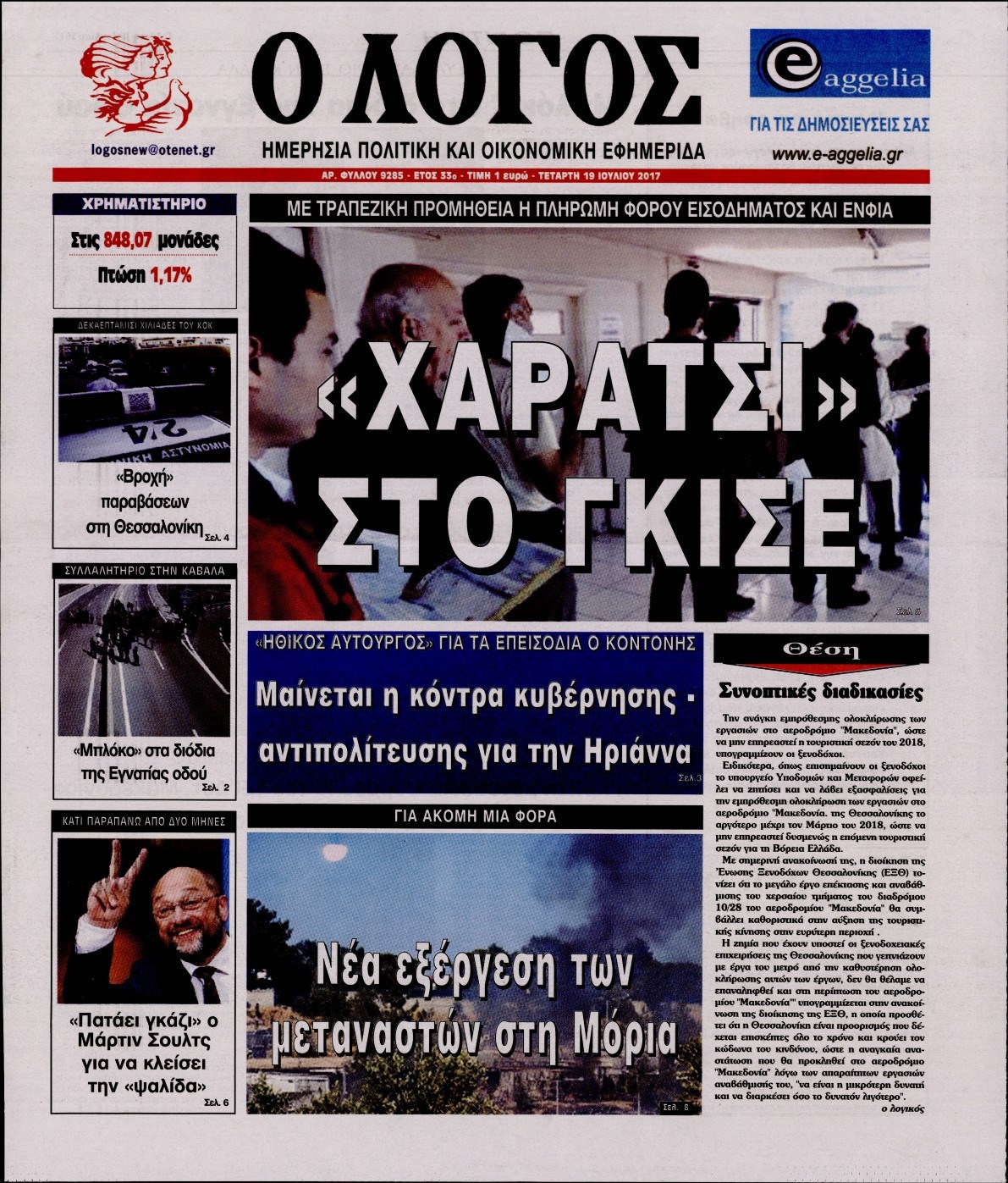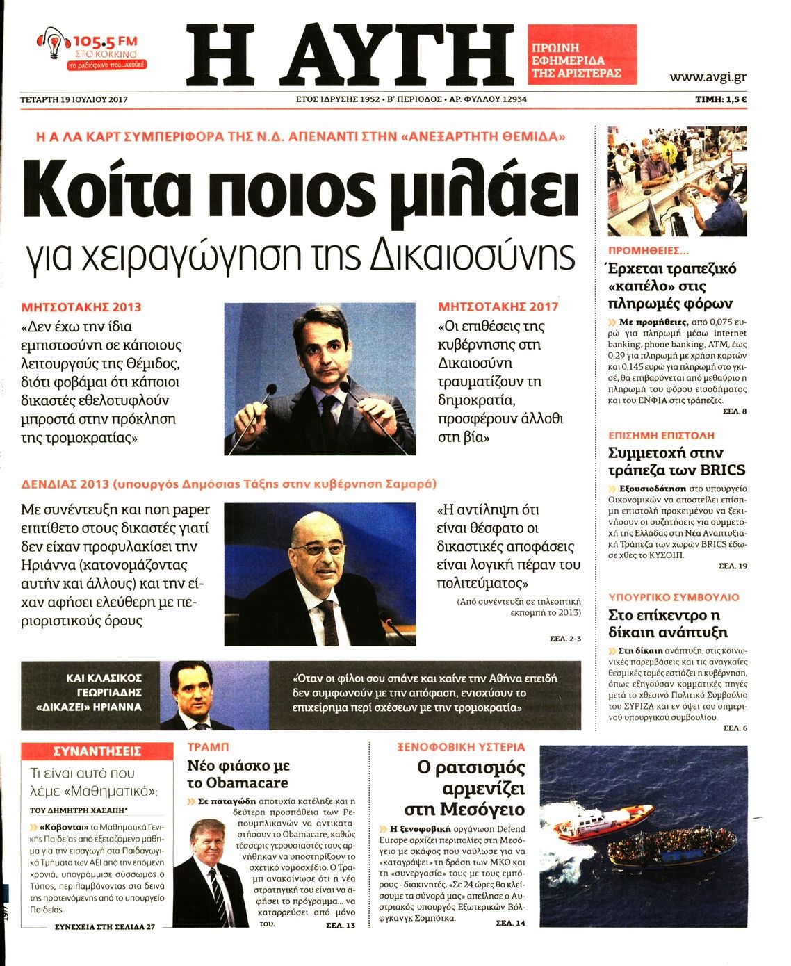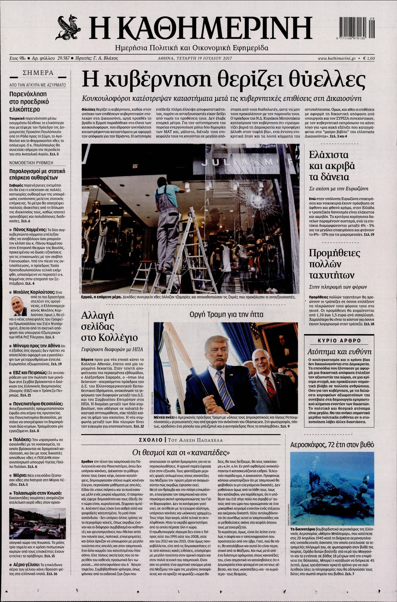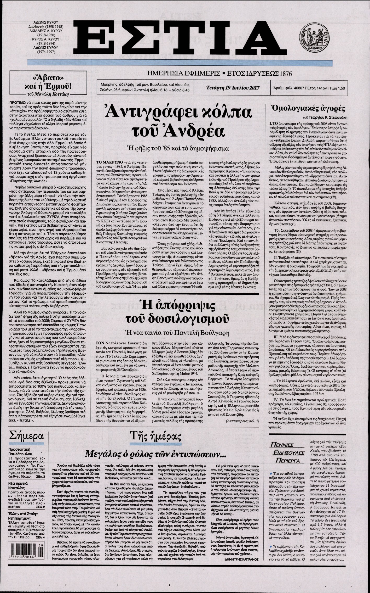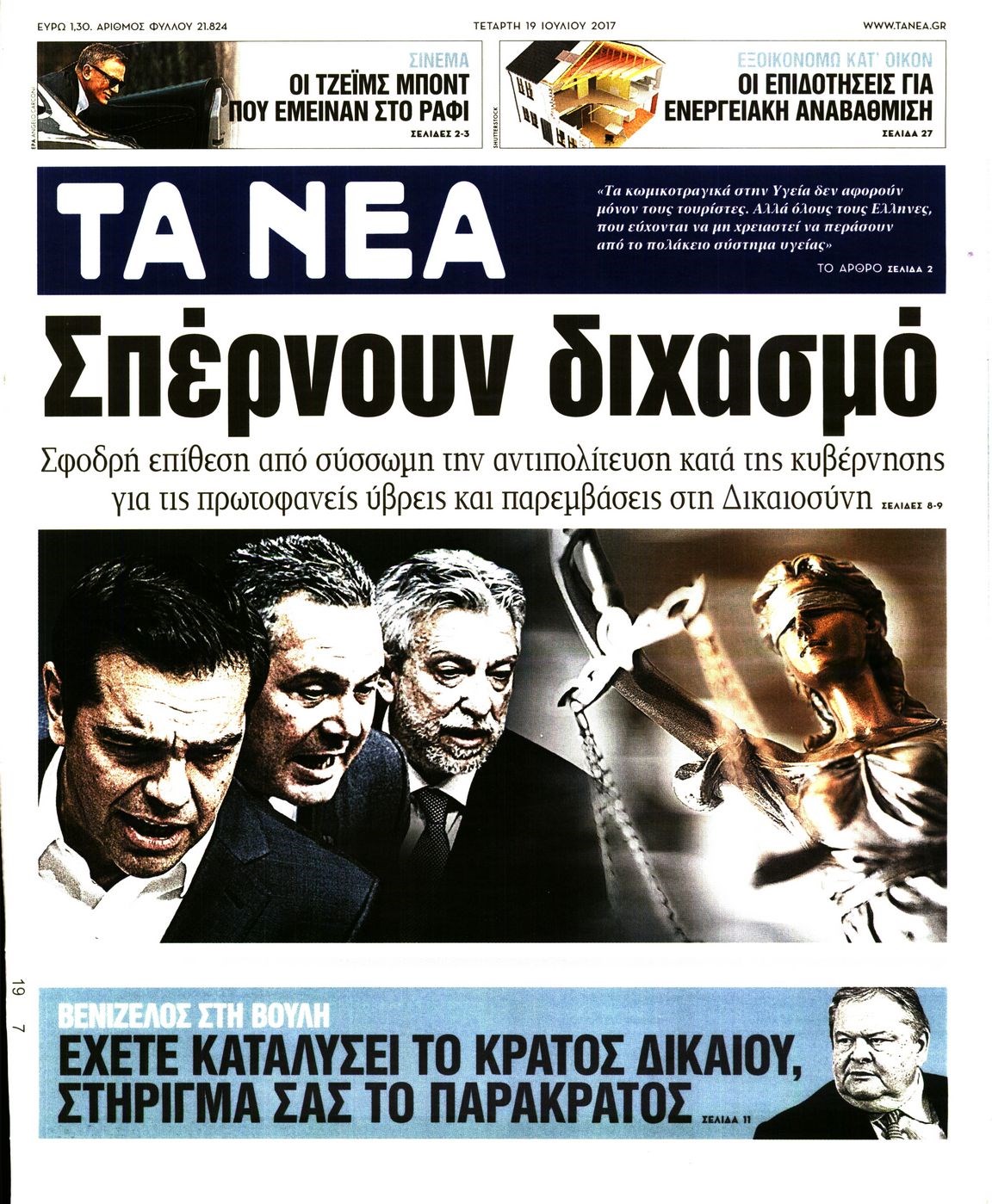 Οι πολιτικές εφημερίδες 19/7/2017 Enikos Newsroom 07:24, Τετάρτη 19 Ιουλίου 2017 Media Διαβάστε τα σημερινά πρωτοσέλιδα των πολιτικών εφημερίδων: ΠΟΛΙΤΙΚΕΣ ΕΦΗΜΕΡΙΔΕΣ ΠΡΩΤΟΣΕΛΙΔΑ Μοιράσου το: σχολίασε κι εσύ (0 σχόλια) Ακολουθήστε το enikos.gr στο Google News και μάθετε πρώτοι όλες τις ειδήσεις Δείτε όλες τις τελευταίες ειδήσεις από την Ελλάδα και τον Κόσμο στο enikos.gr Ειδήσεις Ροή Ειδήσεων 6 ώρες πριν Χριστούγεννα στα μπλόκα: Επιμένουν στις κινητοποιήσεις τους οι αγρότες – Ανοίγουν τα διόδια το Σαββατοκύριακο 7 ώρες πριν Ουκρανία: Η άνευ προηγουμένου επίθεση σε ρωσικό τάνκερ στη Μεσόγειο και το μήνυμα προς στον Πούτιν – Το «μακρύ χέρι» του Κιέβου 6 ώρες πριν Πούτιν: Τα μηνύματα σε Ευρώπη και ΝΑΤΟ από το μαραθώνιο «σόου» του – Η απαίτηση για «σεβασμό» και η ειρήνη «με τους όρους» της Μόσχας 7 ώρες πριν Τραμπ: Δεν αποκλείει την πιθανότητα ενός πολέμου στη Βενεζουέλα – «Ο Μαδούρο ξέρει καλύτερα από τον καθένα τι ακριβώς θέλω» 7 ώρες πριν Συνεχίζει να προκαλεί ο Μίτσκοσκι: «Για μένα το όνομα Μακεδονία είναι ιερό» 6 ώρες πριν Ανακαλύφθηκαν αρχαία χρυσά νομίσματα 2.200 ετών που απεικονίζουν τον θεό Απόλλωνα – Η άγνωστη σύνδεση με τον Φίλιππο Β΄ της Μακεδονίας 7 ώρες πριν Ύπνος: Μια κρυφή κατάσταση του εγκεφάλου πριν από τον ύπνο μπορεί να είναι το “κλειδί” για υψηλή ευφυΐα και δημιουργικότητα 8 ώρες πριν Αριθμολογία: Οι άνθρωποι που έχουν γεννηθεί αυτές τις 4 ημερομηνίες, συχνά παρεξηγούνται – «Η καλοσύνη τους κρύβει τεράστια δύναμη» 9 ώρες πριν Ξεχάστε το καθάρισμα το Σαββατοκύριακο: Ο «κανόνας των 20 λεπτών» που θα σας λύσει τα χέρια 9 λεπτά πριν Μοχάμεντ Σαλάχ: Ζήτησε «συγγνώμη» από τους συμπαίκτες του στη Λίβερπουλ για το ξέσπασμά του 24 λεπτά πριν Μάρκο Ρούμπιο: Ανθρωπιστική κατάπαυση του πυρός στο Σουδάν ζητά ο Αμερικανός υπουργός Εξωτερικών 39 λεπτά πριν Αγγελική Νικολούλη: Τα συλλυπητήρια για την απώλεια της Ειρήνης Μαρινάκη 54 λεπτά πριν Βολιβία: Μαζική διαδηλώσεις εναντίον της κατάργησης των επιδοτήσεων των τιμών των καυσίμων 1 ώρα πριν Φως στο Τούνελ: Έφτασε η ώρα της αλήθειας για την δολοφονία της χήρας του πρώην υπουργού στο Κολωνάκι ENIKOS NETWORK Το ΕΚΑΒ τιμήθηκε από την Ακαδημία Αθηνών για τα 40 χρόνια προσφοράς του Έχετε πραγματικά μεγάλη καρδιά; 10 χαρακτηριστικά όσων έχουν καλοσύνη Αναστολή μέτρων αναγκαστικής εκτέλεσης για κτηνοτρόφους που πλήττονται από την ευλογιά των αιγοπροβάτων Πλήρης επάρκεια προϊόντων στις λαϊκές της Αττικής, παρά τις αγροτικές κινητοποιήσεις – Τι απαντούν οι πωλητές Χαρτογραφώντας το «σημείο χωρίς επιστροφή»: Για πρώτη φορά αποκαλύπτεται με λεπτομέρεια το ακανθώδες όριο της ατμόσφαιρας τ... Η Google καταργεί τη λειτουργία «dark web report» – Πώς θα μπορούν οι χρήστες να διαγράφουν τα δεδομένα τους περισσότερα 04:20 , Σάββατο 20 Δεκεμβρίου 2025 Αγγελική Νικολούλη: Τα συλλυπητήρια για την απώλεια της Ειρήνης Μαρινάκη Τα συλληπητήρια στον πρόεδρο του Mega, τον Βαγγέλη Μαρινάκη, για την απώλεια της μητέρας του Ε... 02:50 , Σάββατο 20 Δεκεμβρίου 2025 GNTM: Η Ξένια Τσίρκοβα αναδείχθηκε μεγάλη νικήτρια και πήρε τις 50.000 ευρώ – Ποιος βρέθηκε σε απόσταση αναπνοής; Με φαντασμαγορικό τρόπο ολοκληρώθηκε το βράδυ της Παρασκευής ο μεγάλος τελικός του GNTM, μέσα ... 22:42 , Παρασκευή 19 Δεκεμβρίου 2025 Γιώργος Γιαννόπουλος για “Το σόι σου”: “Είναι ευτυχία και ευλογία αυτή η σειρά” «Είναι ευτυχία και ευλογία η συγκυρία αυτής της σειράς», θα πει ο Γιώργος Γιαννόπουλος -ο αγαπ... 20:37 , 