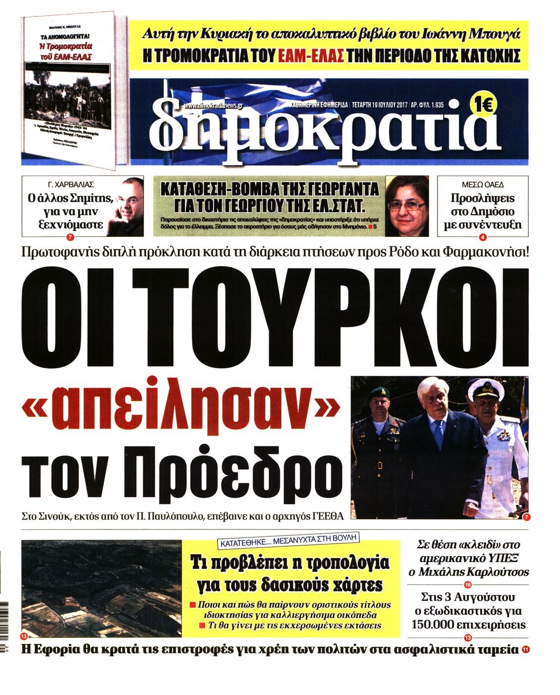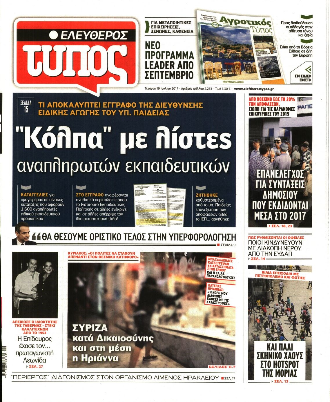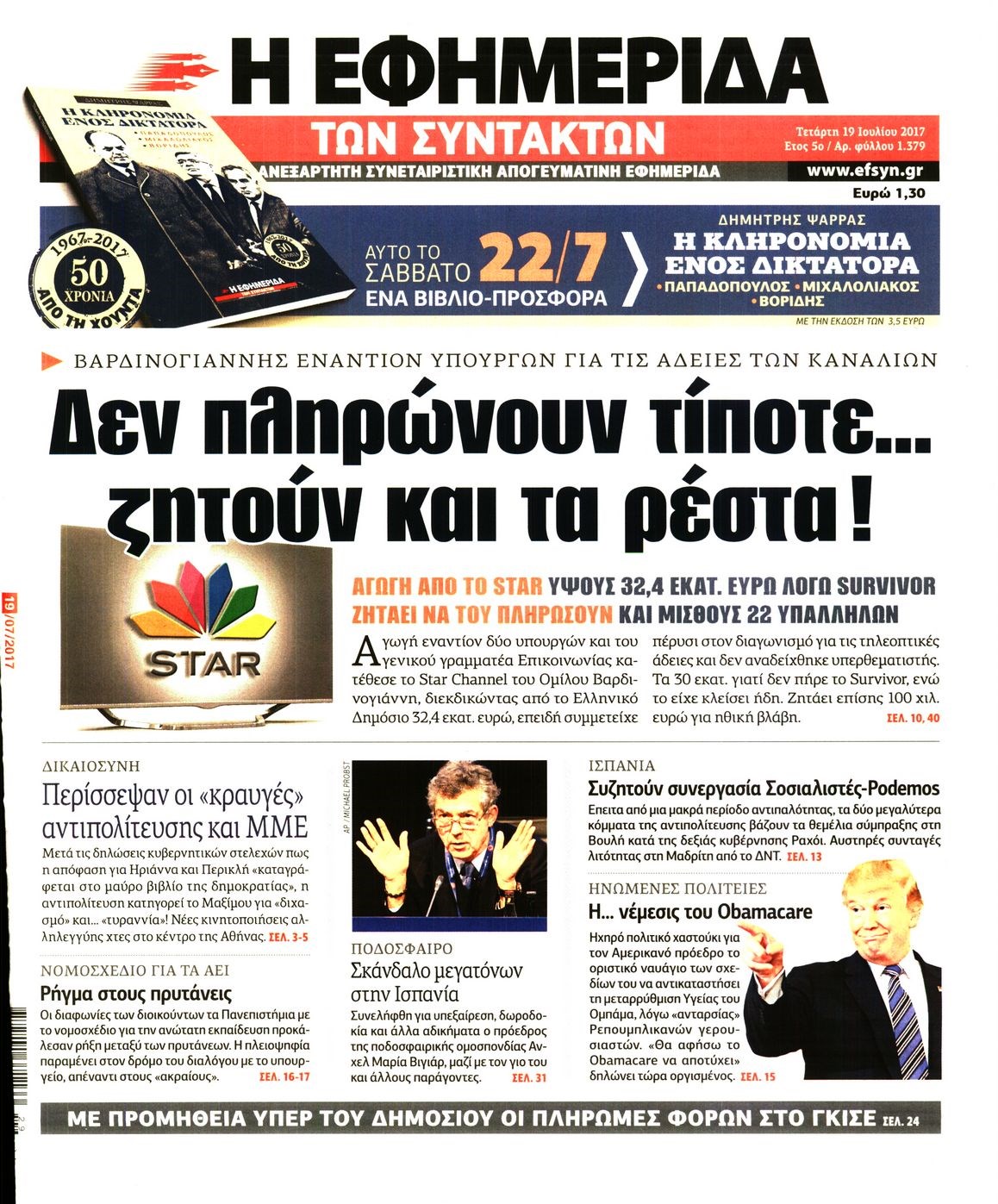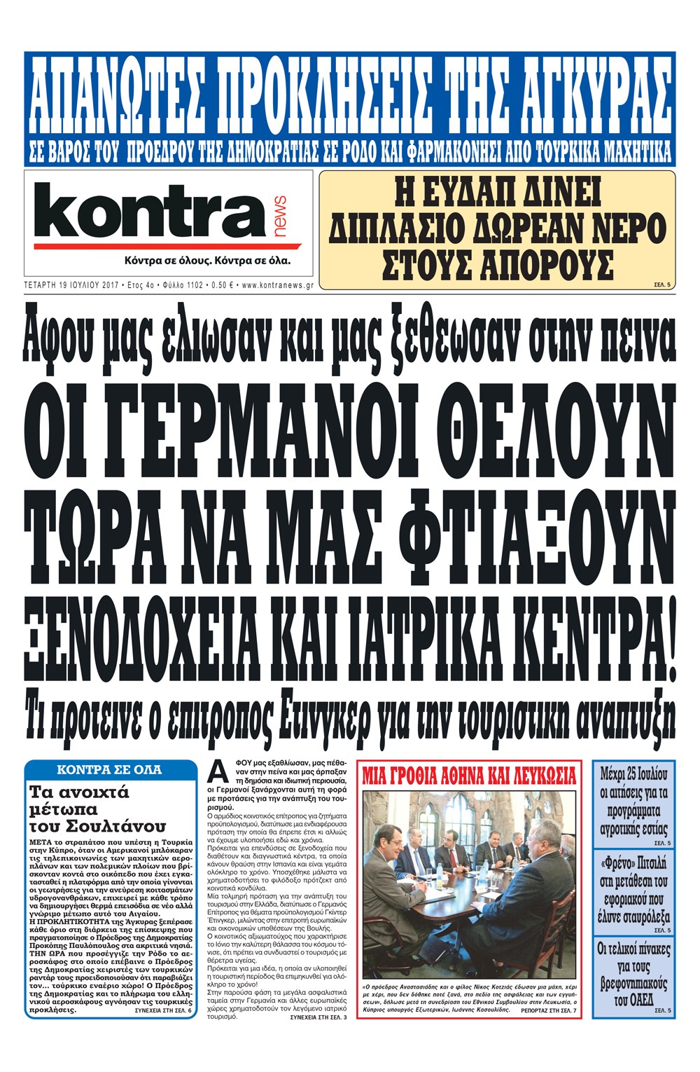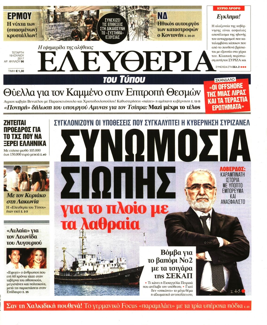 Οι πολιτικές εφημερίδες 19/7/2017 Enikos Newsroom 07:24, Τετάρτη 19 Ιουλίου 2017 Media Διαβάστε τα σημερινά πρωτοσέλιδα των πολιτικών εφημερίδων: ΠΟΛΙΤΙΚΕΣ ΕΦΗΜΕΡΙΔΕΣ ΠΡΩΤΟΣΕΛΙΔΑ Μοιράσου το: σχολίασε κι εσύ (0 σχόλια) Ακολουθήστε το enikos.gr στο Google News και μάθετε πρώτοι όλες τις ειδήσεις Δείτε όλες τις τελευταίες ειδήσεις από την Ελλάδα και τον Κόσμο στο enikos.gr Ειδήσεις Ροή Ειδήσεων 6 ώρες πριν Χριστούγεννα στα μπλόκα: Επιμένουν στις κινητοποιήσεις τους οι αγρότες – Ανοίγουν τα διόδια το Σαββατοκύριακο 7 ώρες πριν Ουκρανία: Η άνευ προηγουμένου επίθεση σε ρωσικό τάνκερ στη Μεσόγειο και το μήνυμα προς στον Πούτιν – Το «μακρύ χέρι» του Κιέβου 6 ώρες πριν Πούτιν: Τα μηνύματα σε Ευρώπη και ΝΑΤΟ από το μαραθώνιο «σόου» του – Η απαίτηση για «σεβασμό» και η ειρήνη «με τους όρους» της Μόσχας 7 ώρες πριν Τραμπ: Δεν αποκλείει την πιθανότητα ενός πολέμου στη Βενεζουέλα – «Ο Μαδούρο ξέρει καλύτερα από τον καθένα τι ακριβώς θέλω» 7 ώρες πριν Συνεχίζει να προκαλεί ο Μίτσκοσκι: «Για μένα το όνομα Μακεδονία είναι ιερό» 6 ώρες πριν Ανακαλύφθηκαν αρχαία χρυσά νομίσματα 2.200 ετών που απεικονίζουν τον θεό Απόλλωνα – Η άγνωστη σύνδεση με τον Φίλιππο Β΄ της Μακεδονίας 7 ώρες πριν Ύπνος: Μια κρυφή κατάσταση του εγκεφάλου πριν από τον ύπνο μπορεί να είναι το “κλειδί” για υψηλή ευφυΐα και δημιουργικότητα 8 ώρες πριν Αριθμολογία: Οι άνθρωποι που έχουν γεννηθεί αυτές τις 4 ημερομηνίες, συχνά παρεξηγούνται – «Η καλοσύνη τους κρύβει τεράστια δύναμη» 9 ώρες πριν Ξεχάστε το καθάρισμα το Σαββατοκύριακο: Ο «κανόνας των 20 λεπτών» που θα σας λύσει τα χέρια 9 λεπτά πριν Μοχάμεντ Σαλάχ: Ζήτησε «συγγνώμη» από τους συμπαίκτες του στη Λίβερπουλ για το ξέσπασμά του 24 λεπτά πριν Μάρκο Ρούμπιο: Ανθρωπιστική κατάπαυση του πυρός στο Σουδάν ζητά ο Αμερικανός υπουργός Εξωτερικών 39 λεπτά πριν Αγγελική Νικολούλη: Τα συλλυπητήρια για την απώλεια της Ειρήνης Μαρινάκη 54 λεπτά πριν Βολιβία: Μαζική διαδηλώσεις εναντίον της κατάργησης των επιδοτήσεων των τιμών των καυσίμων 1 ώρα πριν Φως στο Τούνελ: Έφτασε η ώρα της αλήθειας για την δολοφονία της χήρας του πρώην υπουργού στο Κολωνάκι ENIKOS NETWORK Το ΕΚΑΒ τιμήθηκε από την Ακαδημία Αθηνών για τα 40 χρόνια προσφοράς του Έχετε πραγματικά μεγάλη καρδιά; 10 χαρακτηριστικά όσων έχουν καλοσύνη Αναστολή μέτρων αναγκαστικής εκτέλεσης για κτηνοτρόφους που πλήττονται από την ευλογιά των αιγοπροβάτων Πλήρης επάρκεια προϊόντων στις λαϊκές της Αττικής, παρά τις αγροτικές κινητοποιήσεις – Τι απαντούν οι πωλητές Χαρτογραφώντας το «σημείο χωρίς επιστροφή»: Για πρώτη φορά αποκαλύπτεται με λεπτομέρεια το ακανθώδες όριο της ατμόσφαιρας τ... Η Google καταργεί τη λειτουργία «dark web report» – Πώς θα μπορούν οι χρήστες να διαγράφουν τα δεδομένα τους περισσότερα 04:20 , Σάββατο 20 Δεκεμβρίου 2025 Αγγελική Νικολούλη: Τα συλλυπητήρια για την απώλεια της Ειρήνης Μαρινάκη Τα συλληπητήρια στον πρόεδρο του Mega, τον Βαγγέλη Μαρινάκη, για την απώλεια της μητέρας του Ε... 02:50 , Σάββατο 20 Δεκεμβρίου 2025 GNTM: Η Ξένια Τσίρκοβα αναδείχθηκε μεγάλη νικήτρια και πήρε τις 50.000 ευρώ – Ποιος βρέθηκε σε απόσταση αναπνοής; Με φαντασμαγορικό τρόπο ολοκληρώθηκε το βράδυ της Παρασκευής ο μεγάλος τελικός του GNTM, μέσα ... 22:42 , Παρασκευή 19 Δεκεμβρίου 2025 Γιώργος Γιαννόπουλος για “Το σόι σου”: “Είναι ευτυχία και ευλογία αυτή η σειρά” «Είναι ευτυχία και ευλογία η συγκυρία αυτής της σειράς», θα πει ο Γιώργος Γιαννόπουλος -ο αγαπ... 20:37 , 