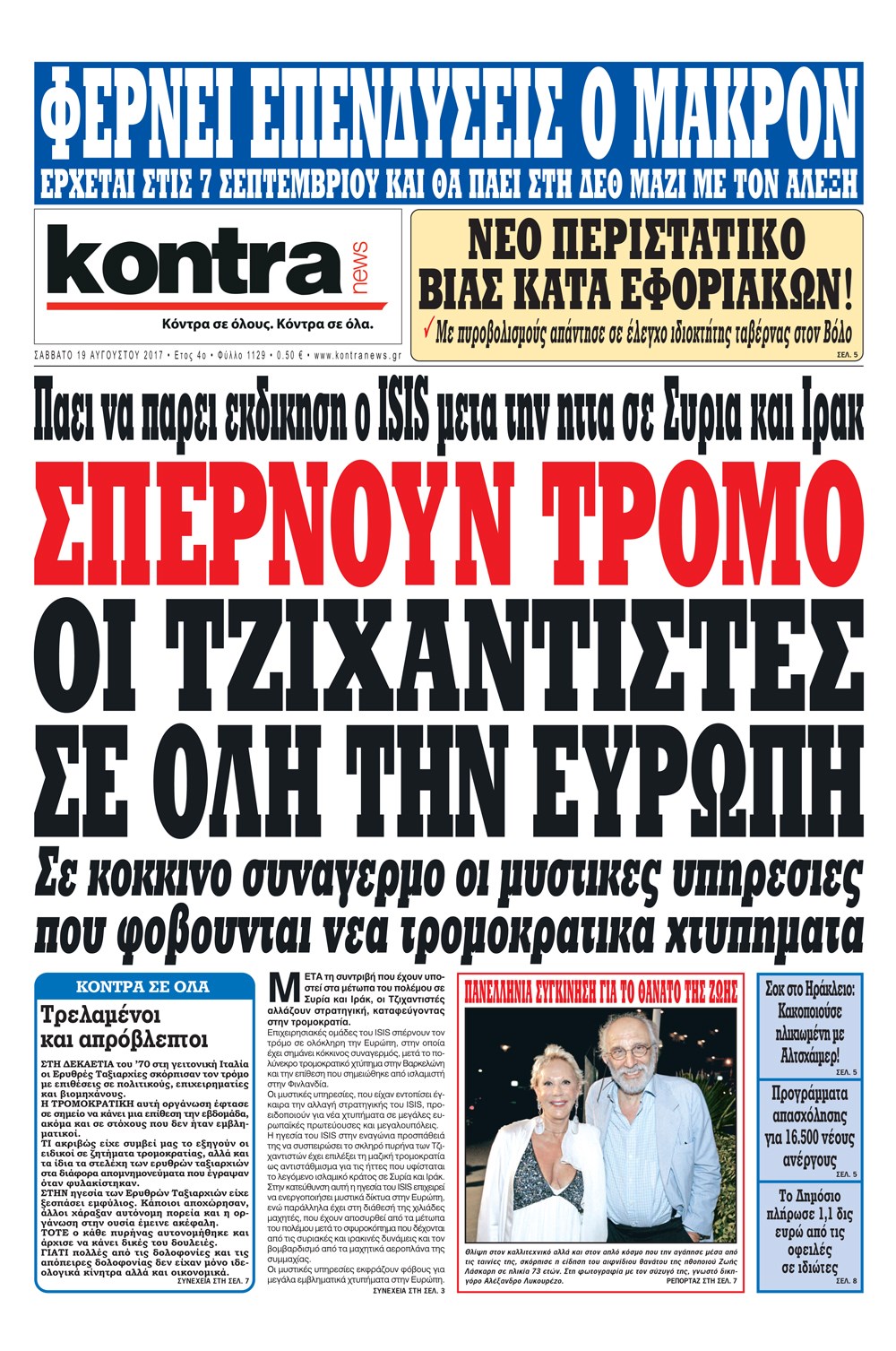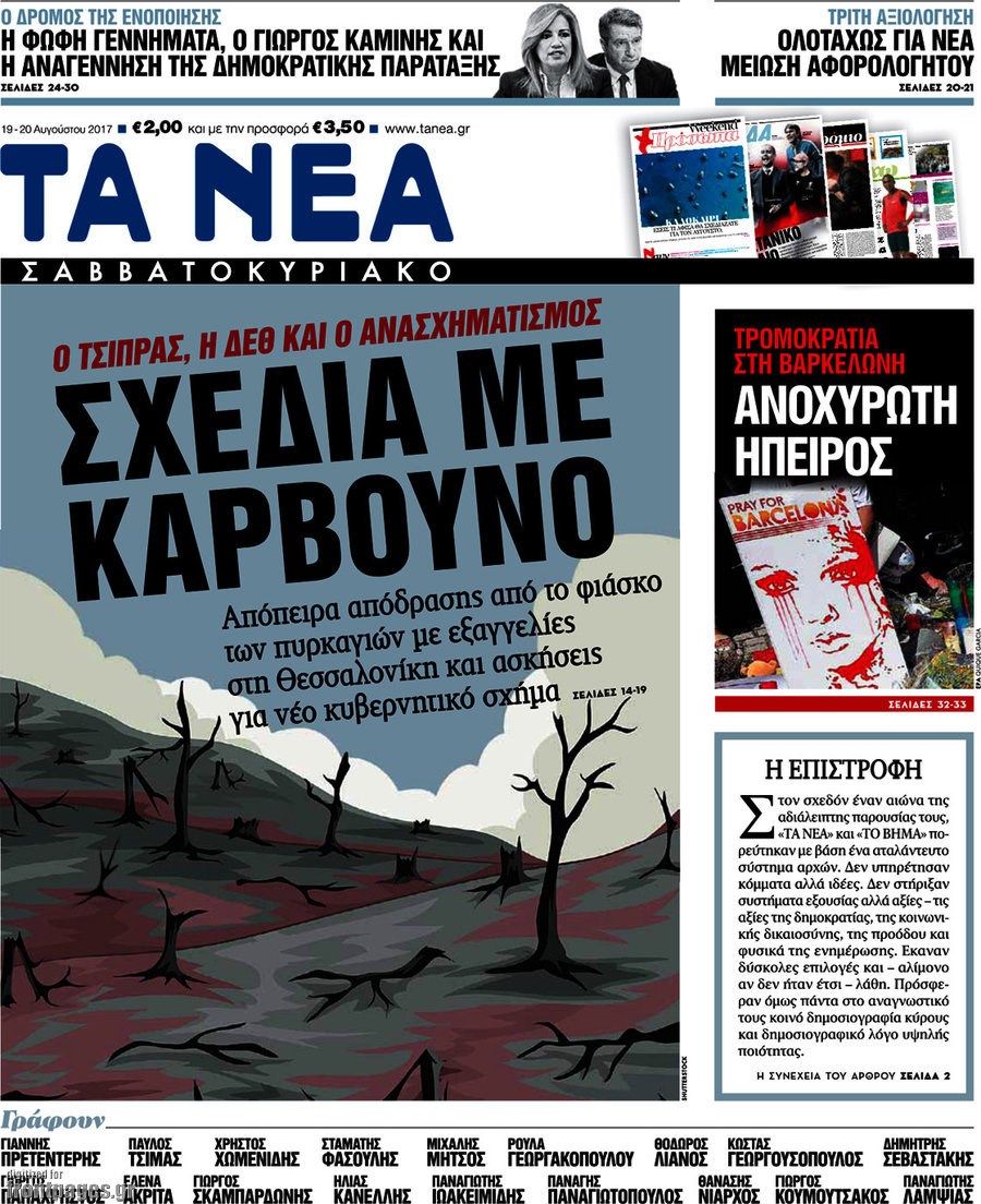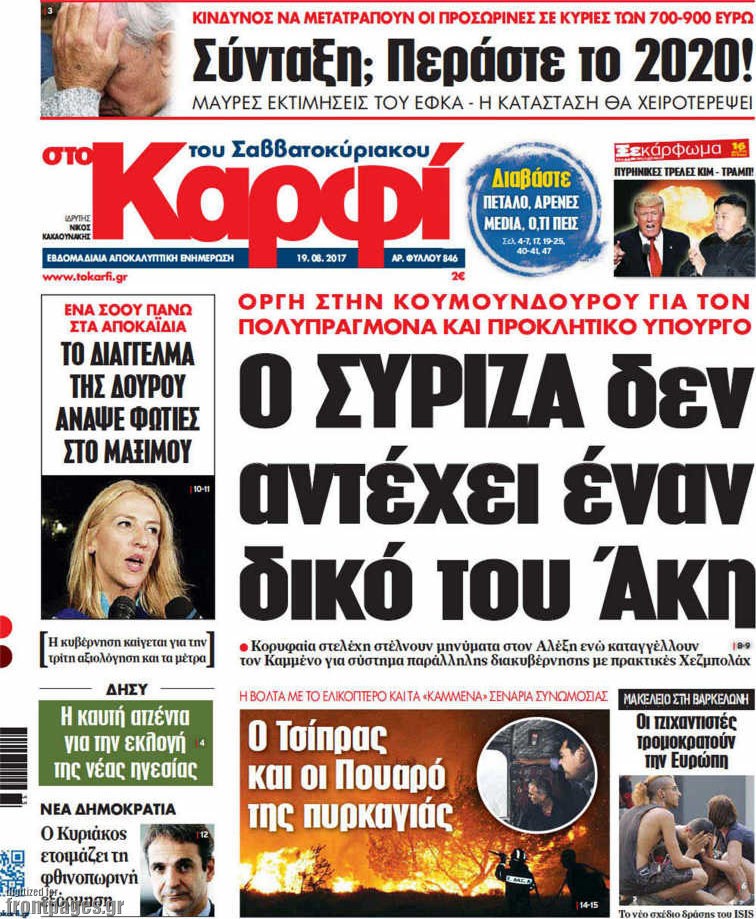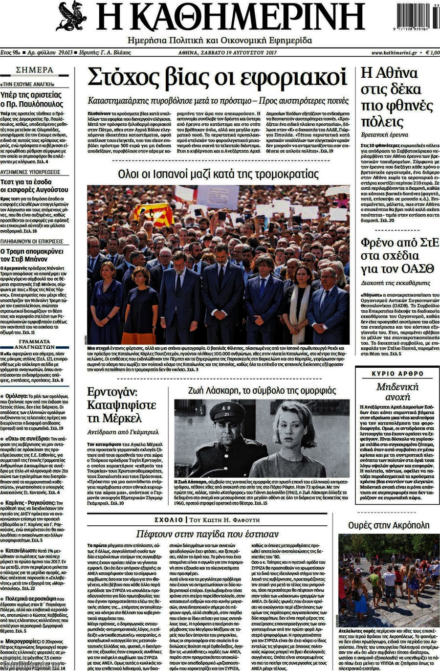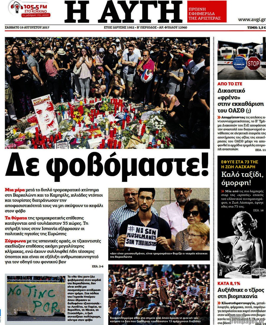 Οι πολιτικές εφημερίδες 19/8/2017 Enikos Newsroom 07:40, Σάββατο 19 Αυγούστου 2017 Media Διαβάστε τα σημερινά πρωτοσέλιδα των πολιτικών εφημερίδων: ΠΟΛΙΤΙΚΕΣ ΕΦΗΜΕΡΙΔΕΣ ΠΡΩΤΟΣΕΛΙΔΑ Μοιράσου το: σχολίασε κι εσύ (0 σχόλια) Ακολουθήστε το enikos.gr στο Google News και μάθετε πρώτοι όλες τις ειδήσεις Δείτε όλες τις τελευταίες ειδήσεις από την Ελλάδα και τον Κόσμο στο enikos.gr Ειδήσεις Ροή Ειδήσεων 3 ώρες πριν Χριστούγεννα στα μπλόκα: Επιμένουν στις κινητοποιήσεις τους οι αγρότες – Ανοίγουν τα διόδια το Σαββατοκύριακο 3 ώρες πριν Ουκρανία: Η άνευ προηγουμένου επίθεση σε ρωσικό τάνκερ στη Μεσόγειο και το μήνυμα προς στον Πούτιν – Το «μακρύ χέρι» του Κιέβου 3 ώρες πριν Πούτιν: Τα μηνύματα σε Ευρώπη και ΝΑΤΟ από το μαραθώνιο «σόου» του – Η απαίτηση για «σεβασμό» και η ειρήνη «με τους όρους» της Μόσχας 4 ώρες πριν Τραμπ: Δεν αποκλείει την πιθανότητα ενός πολέμου στη Βενεζουέλα – «Ο Μαδούρο ξέρει καλύτερα από τον καθένα τι ακριβώς θέλω» 4 ώρες πριν Συνεχίζει να προκαλεί ο Μίτσκοσκι: «Για μένα το όνομα Μακεδονία είναι ιερό» 3 ώρες πριν Ανακαλύφθηκαν αρχαία χρυσά νομίσματα 2.200 ετών που απεικονίζουν τον θεό Απόλλωνα – Η άγνωστη σύνδεση με τον Φίλιππο Β΄ της Μακεδονίας 4 ώρες πριν Ύπνος: Μια κρυφή κατάσταση του εγκεφάλου πριν από τον ύπνο μπορεί να είναι το “κλειδί” για υψηλή ευφυΐα και δημιουργικότητα 5 ώρες πριν Αριθμολογία: Οι άνθρωποι που έχουν γεννηθεί αυτές τις 4 ημερομηνίες, συχνά παρεξηγούνται – «Η καλοσύνη τους κρύβει τεράστια δύναμη» 6 ώρες πριν Ξεχάστε το καθάρισμα το Σαββατοκύριακο: Ο «κανόνας των 20 λεπτών» που θα σας λύσει τα χέρια 17 λεπτά πριν Euroleague: Επέστρεψε στις νίκες ο Ολυμπιακός, πήρε την ματσάρα της χρονιάς η Μπάρτσα – Τα αποτελέσματα και η βαθμολογία 32 λεπτά πριν Συρία: Μαζικά πλήγματα των ΗΠΑ σε θέσεις του Ισλαμικού Κράτους – Χέγκσεθ: «Δεν είναι αρχή πολέμου, είναι μια δήλωση εκδίκησης» για το θάνατο των στρατιωτών μας 45 λεπτά πριν Ουκρανία: Ολοκληρώθηκαν οι συνομιλίες με τους Αμερικανούς κι Ευρωπαίους διαπραγματευτές 1 ώρα πριν Μπαρτσελόνα – Μπασκόνια 134-124: Οι «μπλαουγκράνα» πήραν το ματς της χρονιάς ύστερα από τρεις παρατάσεις 1 ώρα πριν Φαίη Σκορδά: «Παλιότερα τα κομπλιμέντα τα προσπερνούσα, τώρα τα έχω ανάγκη» ENIKOS NETWORK Το ΕΚΑΒ τιμήθηκε από την Ακαδημία Αθηνών για τα 40 χρόνια προσφοράς του Έχετε πραγματικά μεγάλη καρδιά; 10 χαρακτηριστικά όσων έχουν καλοσύνη Αναστολή μέτρων αναγκαστικής εκτέλεσης για κτηνοτρόφους που πλήττονται από την ευλογιά των αιγοπροβάτων Πλήρης επάρκεια προϊόντων στις λαϊκές της Αττικής, παρά τις αγροτικές κινητοποιήσεις – Τι απαντούν οι πωλητές Χαρτογραφώντας το «σημείο χωρίς επιστροφή»: Για πρώτη φορά αποκαλύπτεται με λεπτομέρεια το ακανθώδες όριο της ατμόσφαιρας τ... Η Google καταργεί τη λειτουργία «dark web report» – Πώς θα μπορούν οι χρήστες να διαγράφουν τα δεδομένα τους περισσότερα 22:42 , Παρασκευή 19 Δεκεμβρίου 2025 Γιώργος Γιαννόπουλος για “Το σόι σου”: “Είναι ευτυχία και ευλογία αυτή η σειρά” «Είναι ευτυχία και ευλογία η συγκυρία αυτής της σειράς», θα πει ο Γιώργος Γιαννόπουλος -ο αγαπ... 20:37 , Παρασκευή 19 Δεκεμβρίου 2025 Don’t Forget The Lyrics: Η Έλλη Κοκκίνου υποδέχεται 4 παίκτες που θα κάνουν τα πάντα για να μη χάσουν ούτε… μισή λέξη από τους στίχους Το «Don’t Forget The Lyrics» επιστρέφει απόψε, Παρασκευή 19 Δεκεμβρίου, στις 21:00 με νέο επει... 19:31 , Παρασκευή 19 Δεκεμβρίου 2025 GNTM: Απόψε ο μεγάλος τελικός για τους 4 φιναλίστ Έπειτα από μήνες γεμάτους μόδα, 