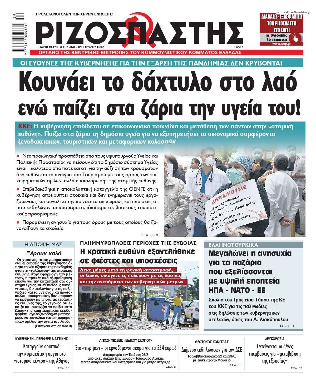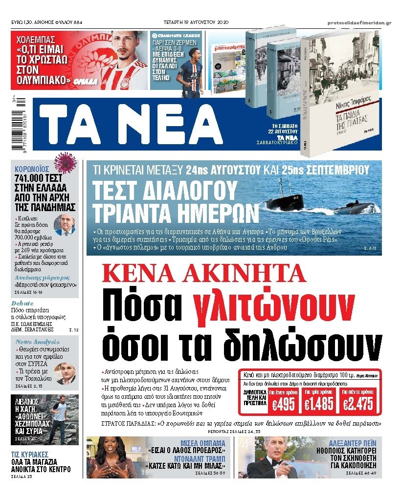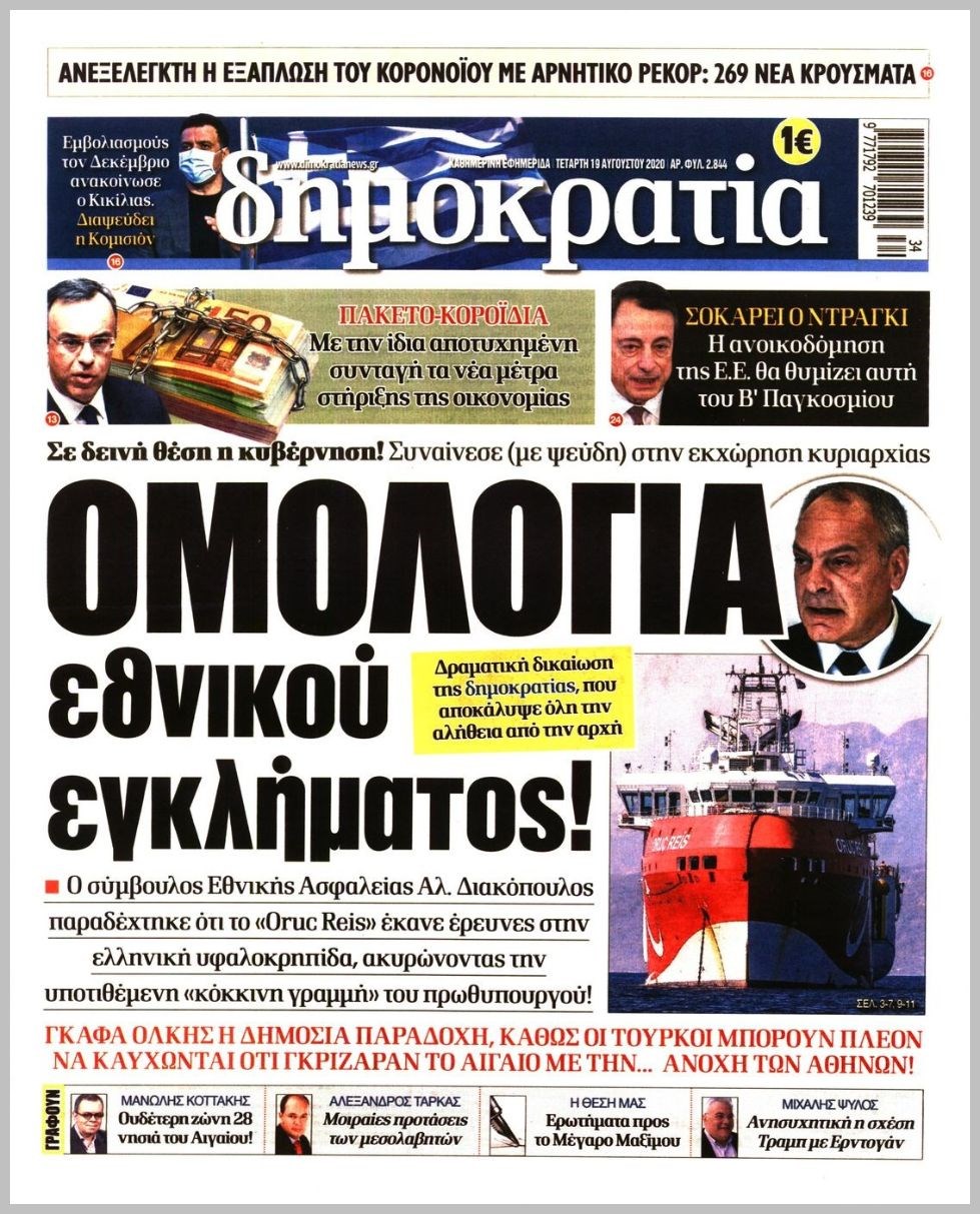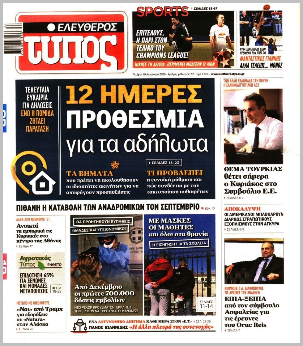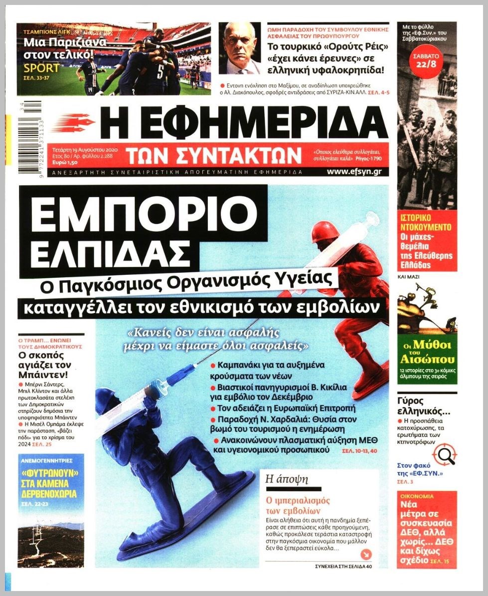 Οι πολιτικές εφημερίδες 19/8/2020 Διονύσης Νίκκας 06:12, Τετάρτη 19 Αυγούστου 2020 Media Διαβάστε τα πρωτοσέλιδα των πολιτικών εφημερίδων… ΠΟΛΙΤΙΚΕΣ ΕΦΗΜΕΡΙΔΕΣ ΠΡΩΤΟΣΕΛΙΔΑ Μοιράσου το: σχολίασε κι εσύ (0 σχόλια) Ακολουθήστε το enikos.gr στο Google News και μάθετε πρώτοι όλες τις ειδήσεις Δείτε όλες τις τελευταίες ειδήσεις από την Ελλάδα και τον Κόσμο στο enikos.gr Ειδήσεις Ροή Ειδήσεων 4 ώρες πριν Χριστούγεννα στα μπλόκα: Επιμένουν στις κινητοποιήσεις τους οι αγρότες – Ανοίγουν τα διόδια το Σαββατοκύριακο 4 ώρες πριν Ουκρανία: Η άνευ προηγουμένου επίθεση σε ρωσικό τάνκερ στη Μεσόγειο και το μήνυμα προς στον Πούτιν – Το «μακρύ χέρι» του Κιέβου 3 ώρες πριν Πούτιν: Τα μηνύματα σε Ευρώπη και ΝΑΤΟ από το μαραθώνιο «σόου» του – Η απαίτηση για «σεβασμό» και η ειρήνη «με τους όρους» της Μόσχας 4 ώρες πριν Τραμπ: Δεν αποκλείει την πιθανότητα ενός πολέμου στη Βενεζουέλα – «Ο Μαδούρο ξέρει καλύτερα από τον καθένα τι ακριβώς θέλω» 5 ώρες πριν Συνεχίζει να προκαλεί ο Μίτσκοσκι: «Για μένα το όνομα Μακεδονία είναι ιερό» 3 ώρες πριν Ανακαλύφθηκαν αρχαία χρυσά νομίσματα 2.200 ετών που απεικονίζουν τον θεό Απόλλωνα – Η άγνωστη σύνδεση με τον Φίλιππο Β΄ της Μακεδονίας 4 ώρες πριν Ύπνος: Μια κρυφή κατάσταση του εγκεφάλου πριν από τον ύπνο μπορεί να είναι το “κλειδί” για υψηλή ευφυΐα και δημιουργικότητα 5 ώρες πριν Αριθμολογία: Οι άνθρωποι που έχουν γεννηθεί αυτές τις 4 ημερομηνίες, συχνά παρεξηγούνται – «Η καλοσύνη τους κρύβει τεράστια δύναμη» 6 ώρες πριν Ξεχάστε το καθάρισμα το Σαββατοκύριακο: Ο «κανόνας των 20 λεπτών» που θα σας λύσει τα χέρια 14 λεπτά πριν ΗΠΑ: Τραγωδία στην Αλαμπάμα – Σκότωσε την δημοσιογράφο σύζυγό του και αυτοκτόνησε μπροστά στον 3χρονο γιο τους 28 λεπτά πριν Πρόταση γάμου στο ΣΕΦ κατά την διάρκεια του αγώνα Ολυμπιακός-Βιλερμπάν – Δείτε βίντεο 43 λεπτά πριν Euroleague: Επέστρεψε στις νίκες ο Ολυμπιακός, πήρε την ματσάρα της χρονιάς η Μπάρτσα – Τα αποτελέσματα και η βαθμολογία 58 λεπτά πριν Συρία: Μαζικά πλήγματα των ΗΠΑ σε θέσεις του Ισλαμικού Κράτους – Χέγκσεθ: «Δεν είναι αρχή πολέμου, είναι μια δήλωση εκδίκησης» για το θάνατο των στρατιωτών μας 1 ώρα πριν Ουκρανία: Ολοκληρώθηκαν οι συνομιλίες με τους Αμερικανούς κι Ευρωπαίους διαπραγματευτές ENIKOS NETWORK Το ΕΚΑΒ τιμήθηκε από την Ακαδημία Αθηνών για τα 40 χρόνια προσφοράς του Έχετε πραγματικά μεγάλη καρδιά; 10 χαρακτηριστικά όσων έχουν καλοσύνη Αναστολή μέτρων αναγκαστικής εκτέλεσης για κτηνοτρόφους που πλήττονται από την ευλογιά των αιγοπροβάτων Πλήρης επάρκεια προϊόντων στις λαϊκές της Αττικής, παρά τις αγροτικές κινητοποιήσεις – Τι απαντούν οι πωλητές Χαρτογραφώντας το «σημείο χωρίς επιστροφή»: Για πρώτη φορά αποκαλύπτεται με λεπτομέρεια το ακανθώδες όριο της ατμόσφαιρας τ... Η Google καταργεί τη λειτουργία «dark web report» – Πώς θα μπορούν οι χρήστες να διαγράφουν τα δεδομένα τους περισσότερα 22:42 , Παρασκευή 19 Δεκεμβρίου 2025 Γιώργος Γιαννόπουλος για “Το σόι σου”: “Είναι ευτυχία και ευλογία αυτή η σειρά” «Είναι ευτυχία και ευλογία η συγκυρία αυτής της σειράς», θα πει ο Γιώργος Γιαννόπουλος -ο αγαπ... 20:37 , Παρασκευή 19 Δεκεμβρίου 2025 Don’t Forget The Lyrics: Η Έλλη Κοκκίνου υποδέχεται 4 παίκτες που θα κάνουν τα πάντα για να μη χάσουν ούτε… μισή λέξη από τους στίχους Το «Don’t Forget The Lyrics» επιστρέφει απόψε, Παρασκευή 19 Δεκεμβρίου, στις 21:00 με νέο επει... 19:31 , Παρασκευή 19 Δεκεμβρίου 2025 GNTM: Απόψε ο μεγάλος τελικός για τους 4 φιναλίστ Έπειτα από