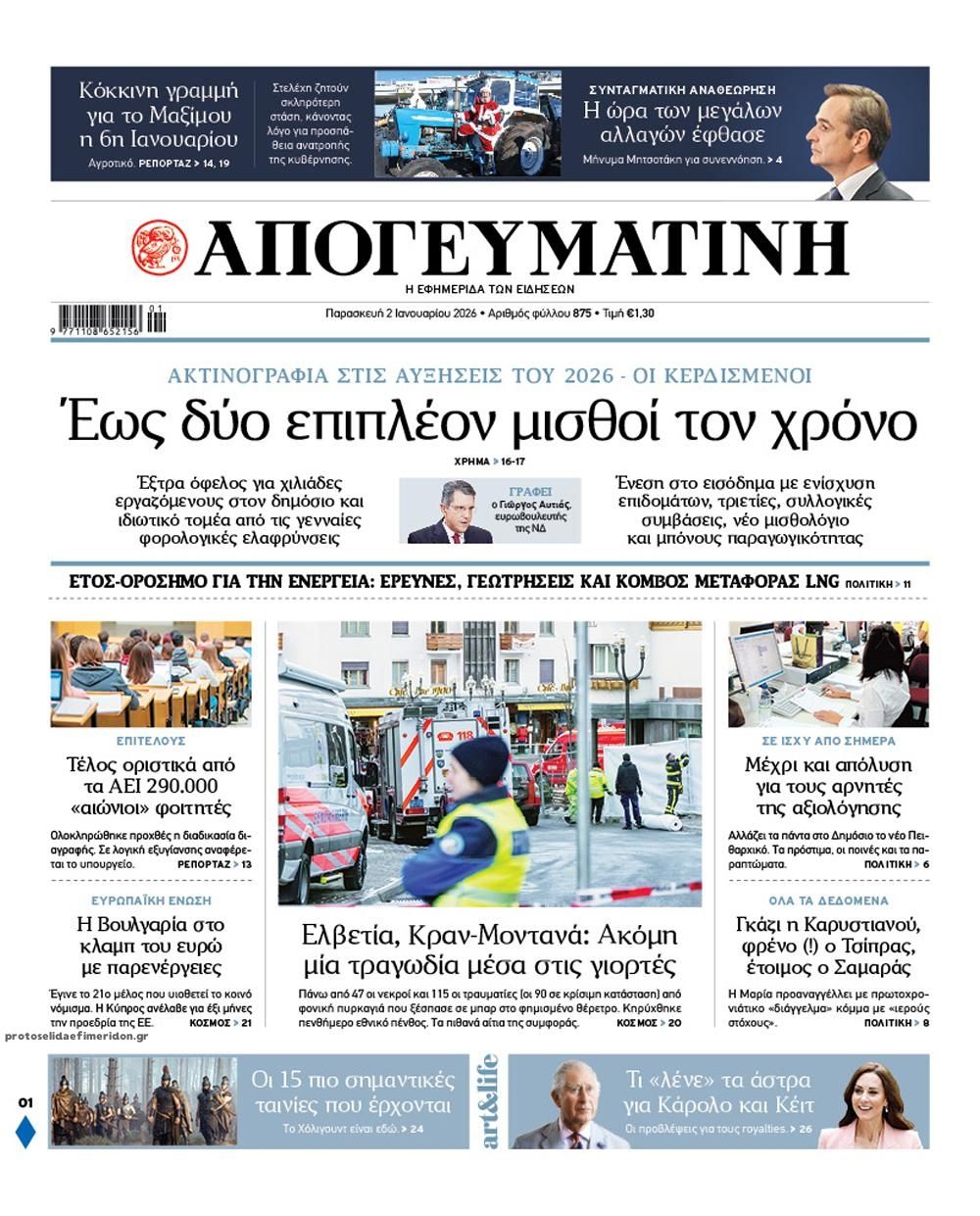 Διαβάστε τα πρωτοσέλιδα από τις πολιτικές εφημερίδες, σήμερα 2/1/2026.