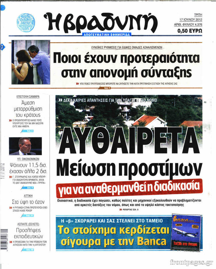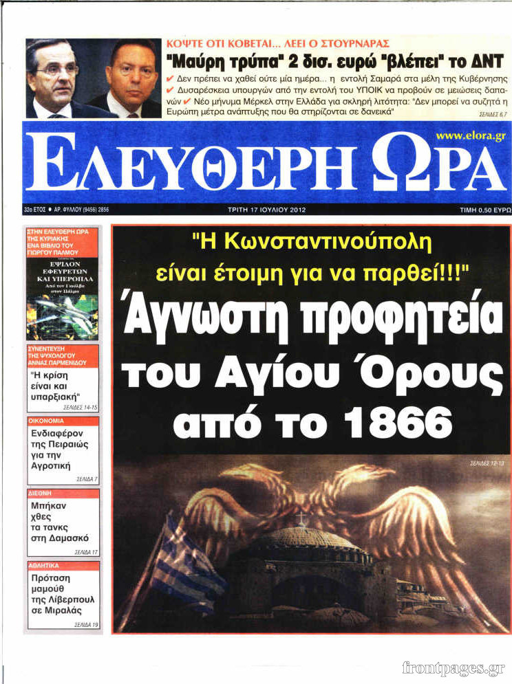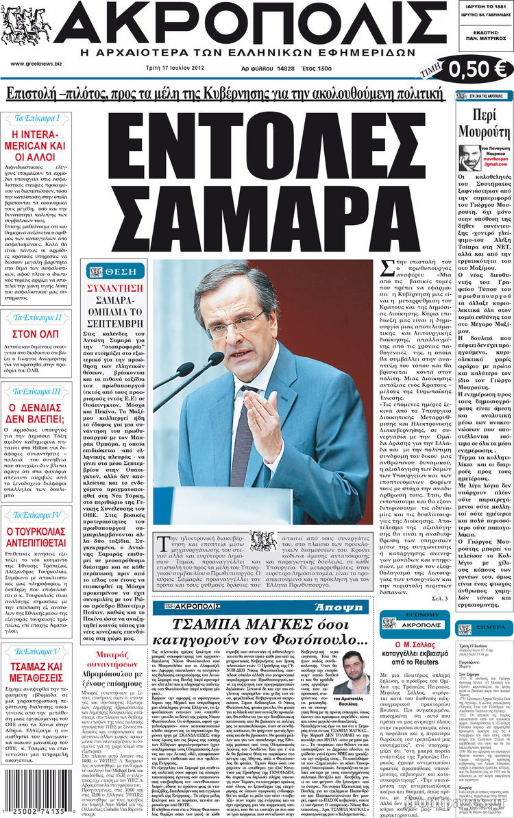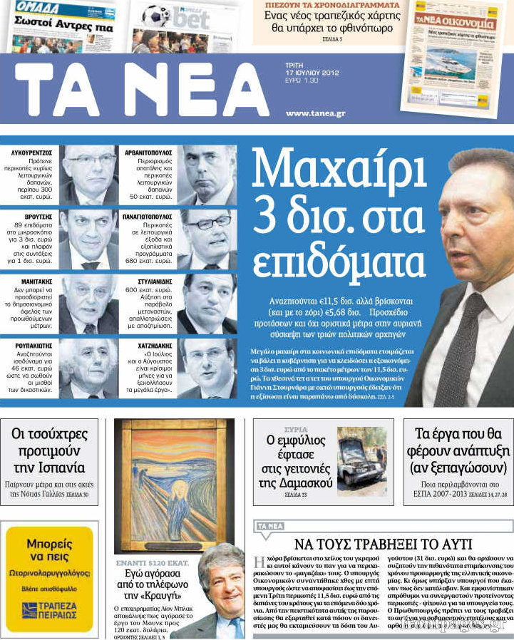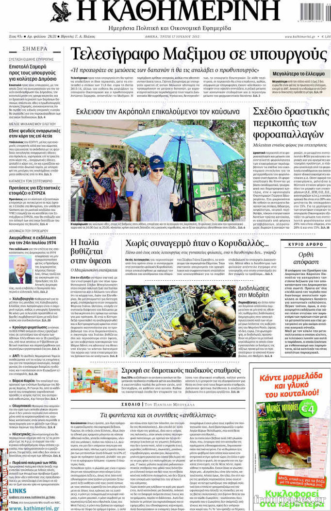 Διαβάστε τα σημερινά πρωτοσέλιδα των πολιτικών εφημερίδων