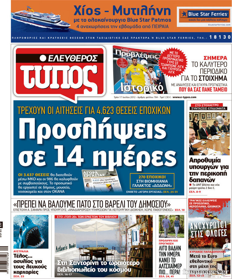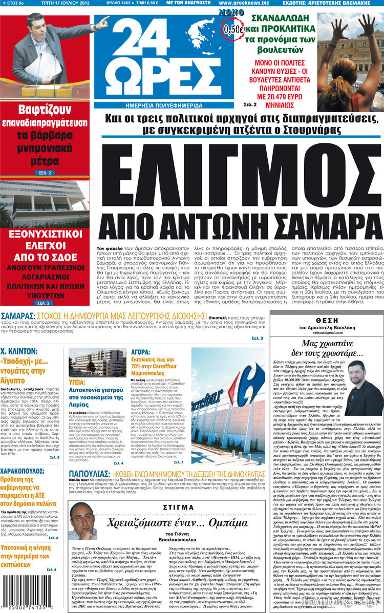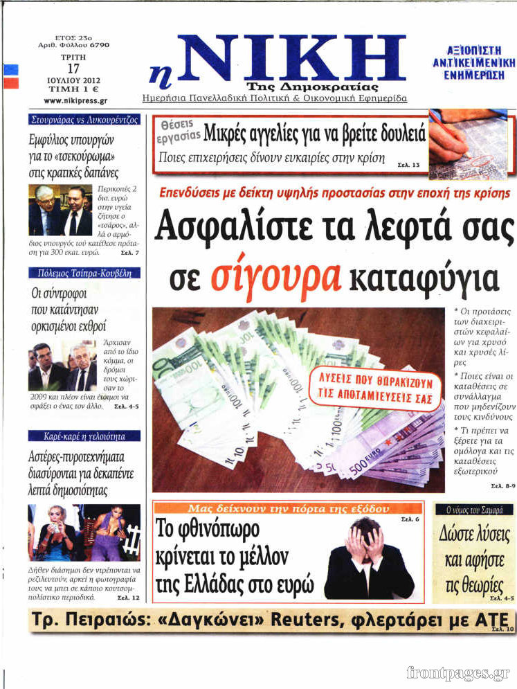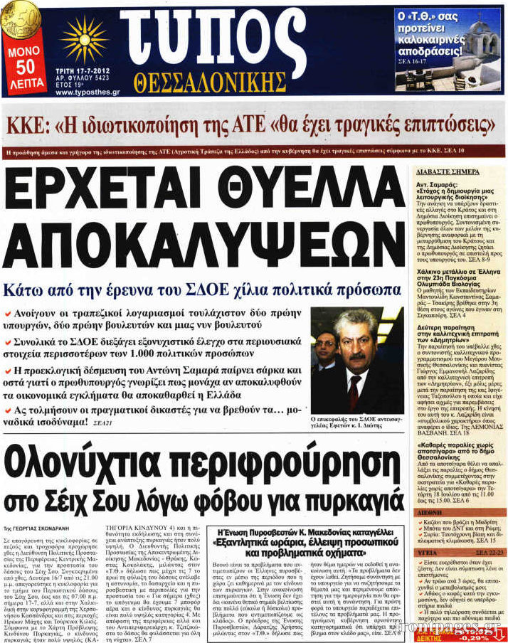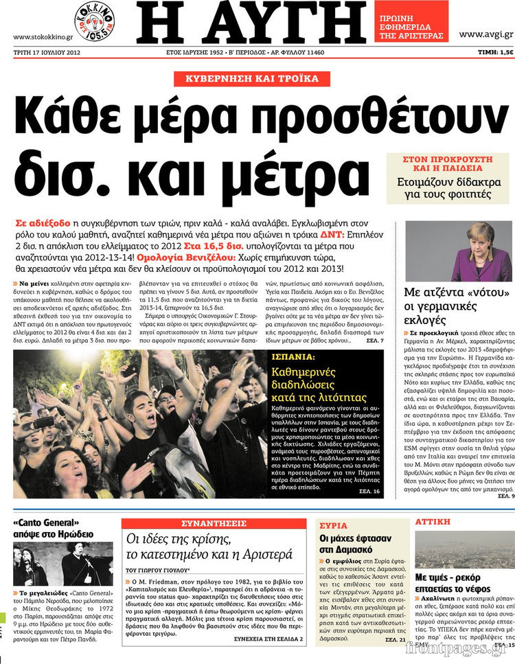 Διαβάστε τα σημερινά πρωτοσέλιδα των πολιτικών εφημερίδων