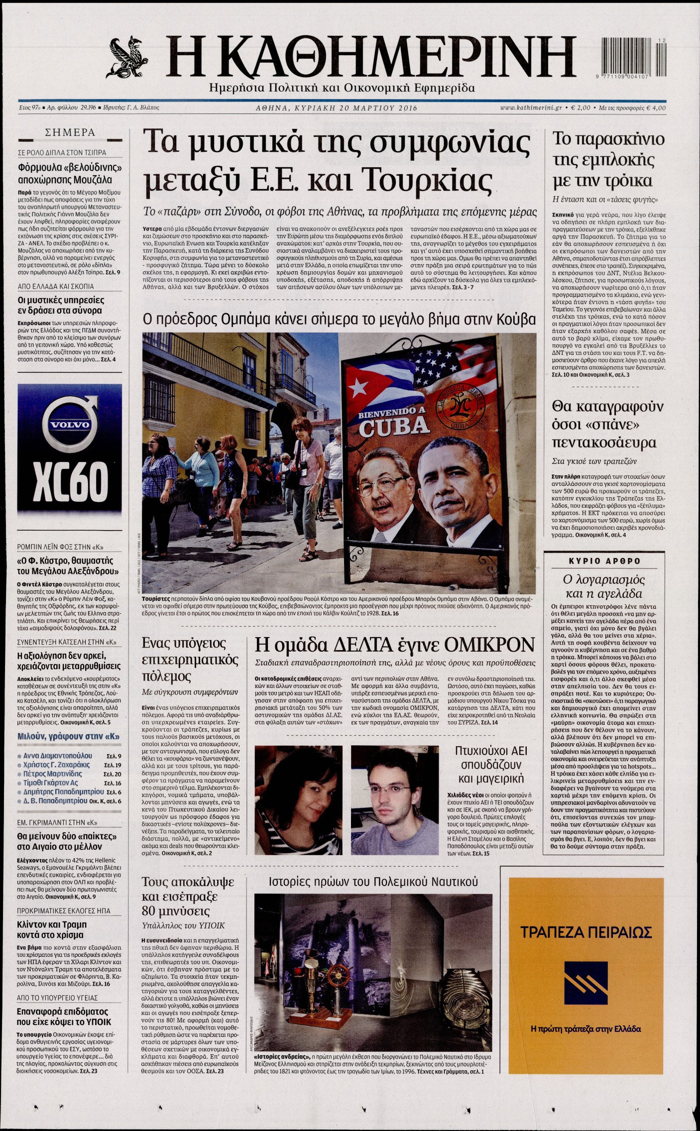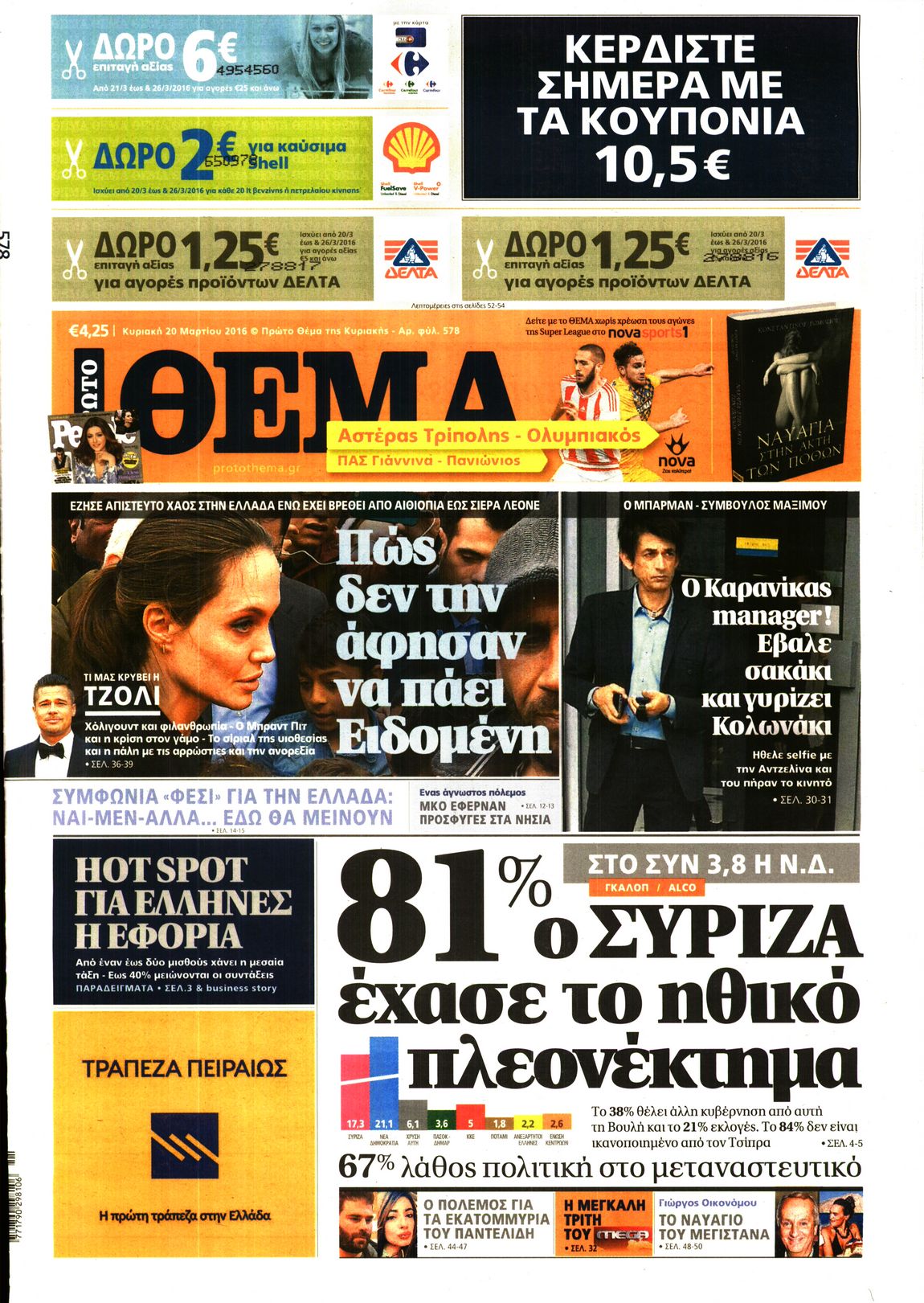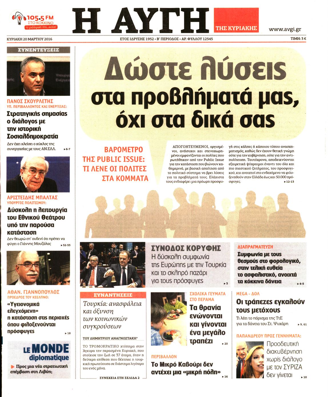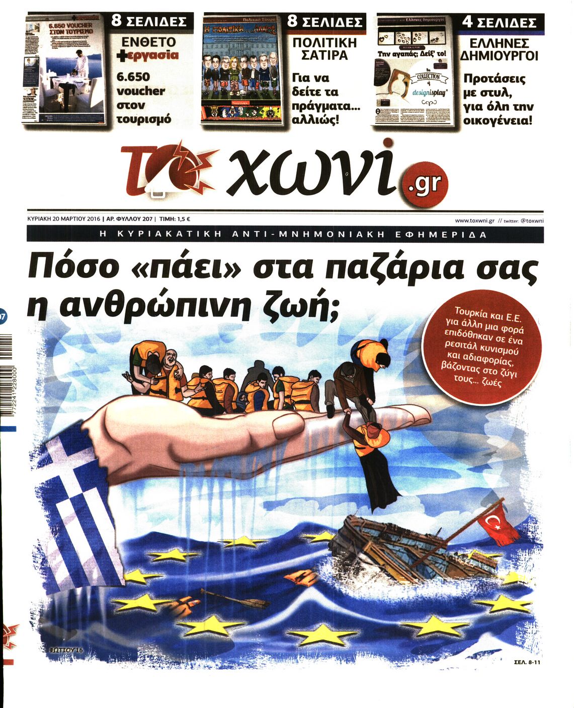 Oι πολιτικές εφημερίδες 20-3-2016 Enikos Newsroom 04:58, Κυριακή 20 Μαρτίου 2016 Media Διαβάστε τα σημερινά πρωτοσέλιδα των πολιτικών εφημερίδων: ΠΟΛΙΤΙΚΕΣ ΕΦΗΜΕΡΙΔΕΣ ΠΡΩΤΟΣΕΛΙΔΑ Μοιράσου το: σχολίασε κι εσύ (0 σχόλια) Ακολουθήστε το enikos.gr στο Google News και μάθετε πρώτοι όλες τις ειδήσεις Δείτε όλες τις τελευταίες ειδήσεις από την Ελλάδα και τον Κόσμο στο enikos.gr Ειδήσεις Ροή Ειδήσεων 1 ώρα πριν Χριστούγεννα στα μπλόκα: Επιμένουν στις κινητοποιήσεις τους οι αγρότες – Ανοίγουν τα διόδια το Σαββατοκύριακο 2 ώρες πριν Ουκρανία: Η άνευ προηγουμένου επίθεση σε ρωσικό τάνκερ στη Μεσόγειο και το μήνυμα προς στον Πούτιν – Το «μακρύ χέρι» του Κιέβου 1 ώρα πριν Πούτιν: Τα μηνύματα σε Ευρώπη και ΝΑΤΟ από το μαραθώνιο «σόου» του – Η απαίτηση για «σεβασμό» και η ειρήνη «με τους όρους» της Μόσχας 2 ώρες πριν Τραμπ: Δεν αποκλείει την πιθανότητα ενός πολέμου στη Βενεζουέλα – «Ο Μαδούρο ξέρει καλύτερα από τον καθένα τι ακριβώς θέλω» 3 ώρες πριν Συνεχίζει να προκαλεί ο Μίτσκοσκι: «Για μένα το όνομα Μακεδονία είναι ιερό» 1 ώρα πριν Ανακαλύφθηκαν αρχαία χρυσά νομίσματα 2.200 ετών που απεικονίζουν τον θεό Απόλλωνα – Η άγνωστη σύνδεση με τον Φίλιππο Β΄ της Μακεδονίας 2 ώρες πριν Ύπνος: Μια κρυφή κατάσταση του εγκεφάλου πριν από τον ύπνο μπορεί να είναι το “κλειδί” για υψηλή ευφυΐα και δημιουργικότητα 3 ώρες πριν Αριθμολογία: Οι άνθρωποι που έχουν γεννηθεί αυτές τις 4 ημερομηνίες, συχνά παρεξηγούνται – «Η καλοσύνη τους κρύβει τεράστια δύναμη» 4 ώρες πριν Ξεχάστε το καθάρισμα το Σαββατοκύριακο: Ο «κανόνας των 20 λεπτών» που θα σας λύσει τα χέρια 5 λεπτά πριν Πόλεμος στην Ουκρανία: Εφτά νεκροί από ρωσική πυραυλική επίθεση στο λιμάνι της Οδησσού 9 λεπτά πριν ΗΠΑ: Η κυβέρνηση του Ντόναλντ Τραμπ άρχισε να δημοσιοποιεί τα αρχεία Έπσταϊν 20 λεπτά πριν Σάμος: Άνοιξε το μπλόκο των αγροτών στον κόμβο Κοκκαρίου – Σε νέα συνεδρίαση θα καθορίσουν την στάση τους 29 λεπτά πριν Άνω Λιόσια: Πυροβολισμοί σε επιχείρηση με χαλιά – Εντοπίστηκαν 10 κάλυκες 36 λεπτά πριν Γάζα: Ισραηλινό πλήγμα σε σχολείο που είχαν καταφύγει εκτοπισμένοι – Τουλάχιστον έξι νεκροί ENIKOS NETWORK Το ΕΚΑΒ τιμήθηκε από την Ακαδημία Αθηνών για τα 40 χρόνια προσφοράς του Έχετε πραγματικά μεγάλη καρδιά; 10 χαρακτηριστικά όσων έχουν καλοσύνη Αναστολή μέτρων αναγκαστικής εκτέλεσης για κτηνοτρόφους που πλήττονται από την ευλογιά των αιγοπροβάτων Πλήρης επάρκεια προϊόντων στις λαϊκές της Αττικής, παρά τις αγροτικές κινητοποιήσεις – Τι απαντούν οι πωλητές Χαρτογραφώντας το «σημείο χωρίς επιστροφή»: Για πρώτη φορά αποκαλύπτεται με λεπτομέρεια το ακανθώδες όριο της ατμόσφαιρας τ... Η Google καταργεί τη λειτουργία «dark web report» – Πώς θα μπορούν οι χρήστες να διαγράφουν τα δεδομένα τους περισσότερα 22:42 , Παρασκευή 19 Δεκεμβρίου 2025 Γιώργος Γιαννόπουλος για “Το σόι σου”: “Είναι ευτυχία και ευλογία αυτή η σειρά” «Είναι ευτυχία και ευλογία η συγκυρία αυτής της σειράς», θα πει ο Γιώργος Γιαννόπουλος -ο αγαπ... 20:37 , Παρασκευή 19 Δεκεμβρίου 2025 Don’t Forget The Lyrics: Η Έλλη Κοκκίνου υποδέχεται 4 παίκτες που θα κάνουν τα πάντα για να μη χάσουν ούτε… μισή λέξη από τους στίχους Το «Don’t Forget The Lyrics» επιστρέφει απόψε, Παρασκευή 19 Δεκεμβρίου, στις 21:00 με νέο επει... 19:31 , Παρασκευή 19 Δεκεμβρίου 2025 GNTM: Απόψε ο μεγάλος τελικός για τους 4 φιναλίστ Έπειτα από μήνες γεμάτους μόδα, δημιουργία και έντονες αναμετρήσεις, το GNTM 2025 κορυφώνεται,... 18:11 , Παρασκευή 19 Δεκεμβρίου 2025 Το σόι σου: Ο Άρης 