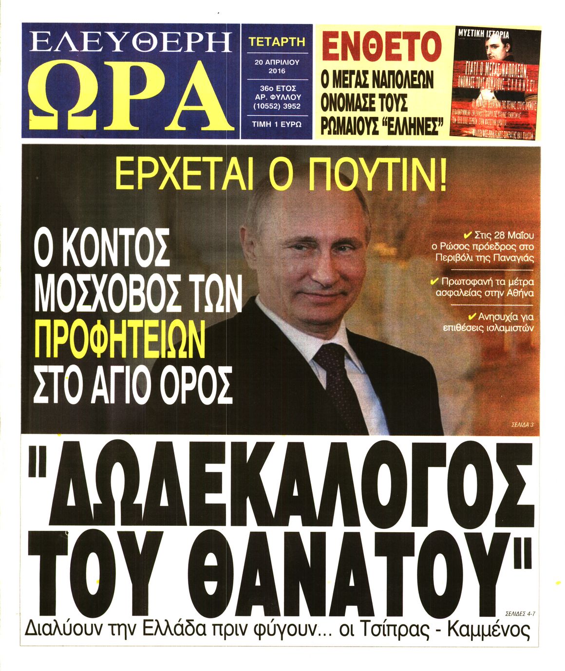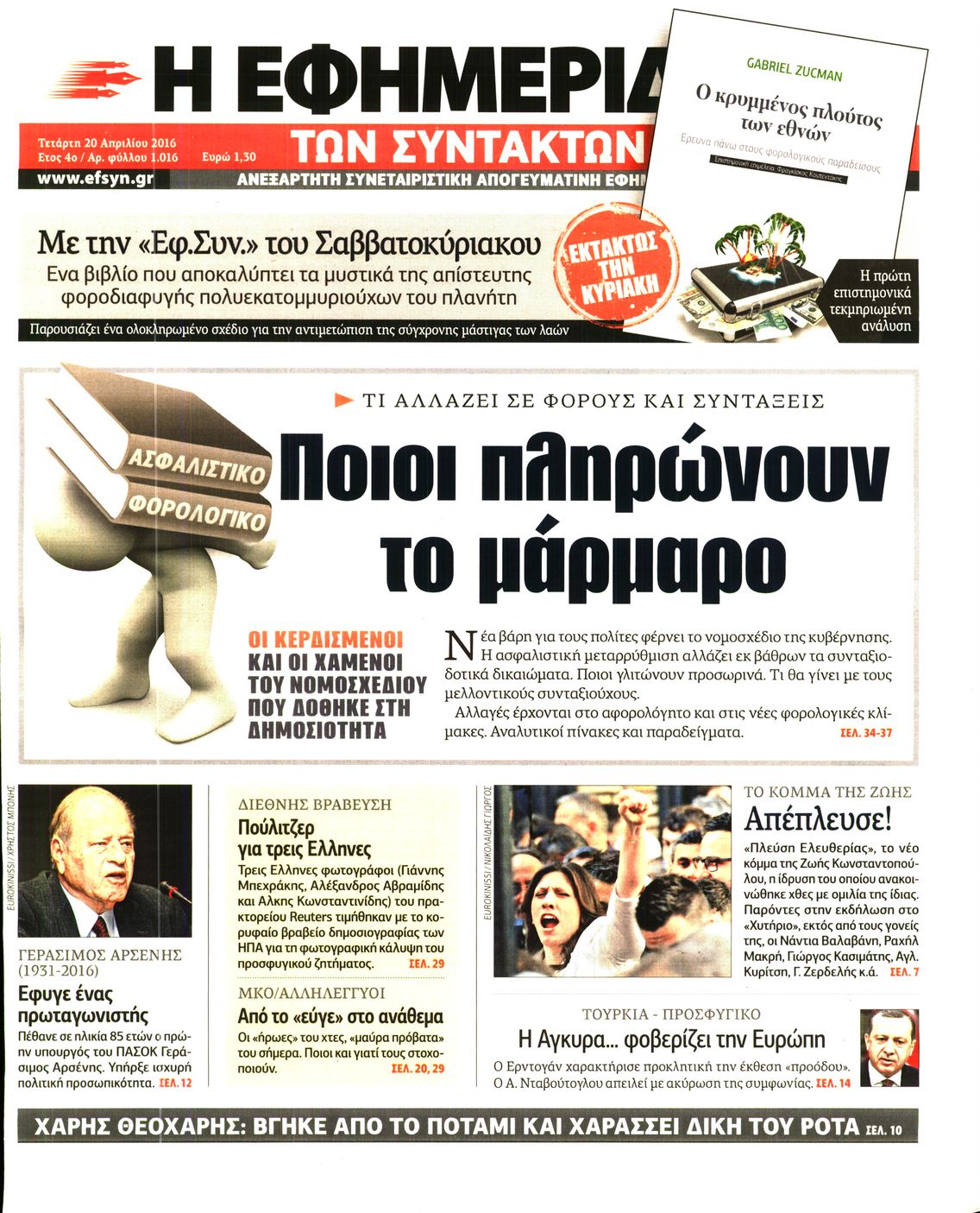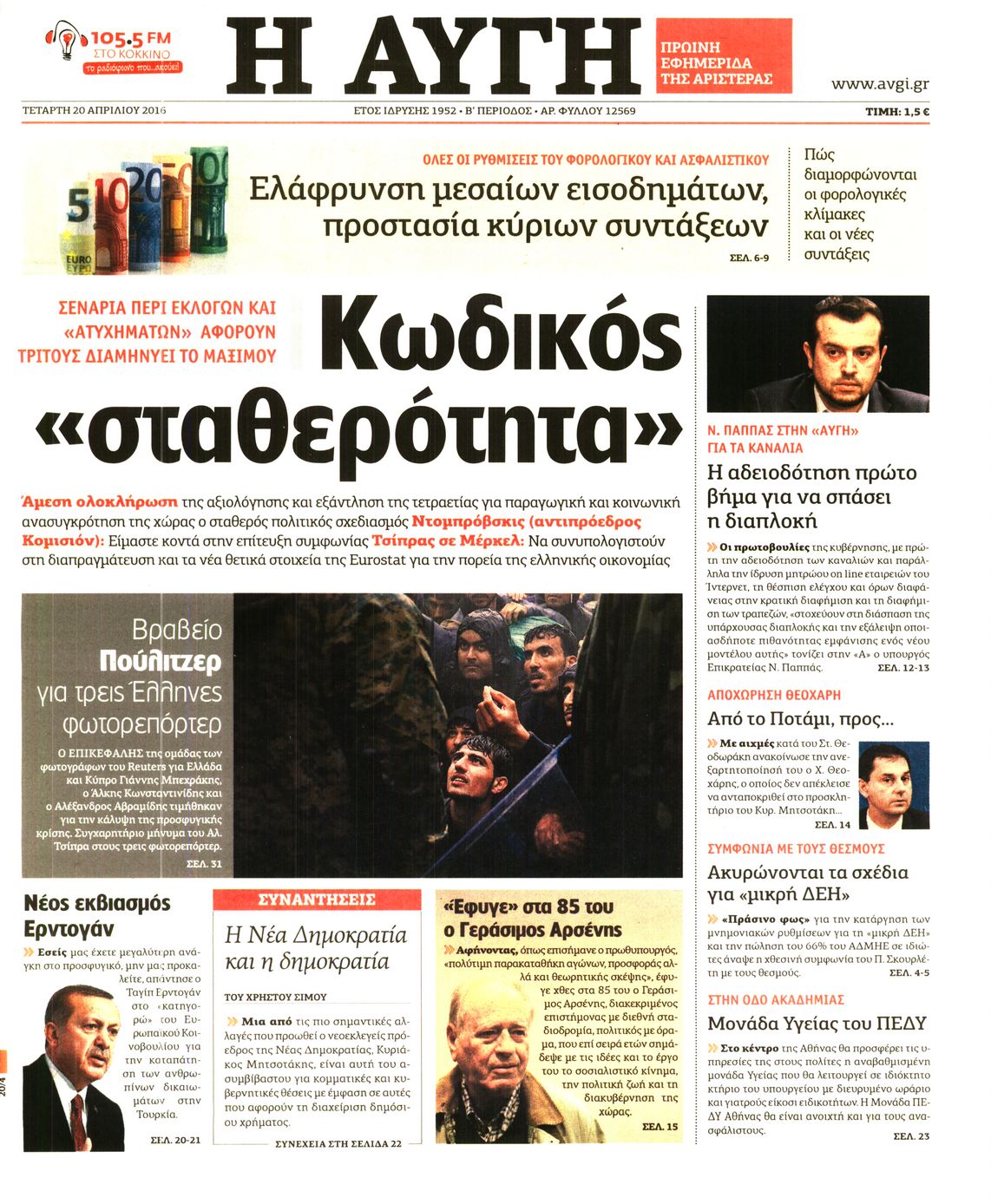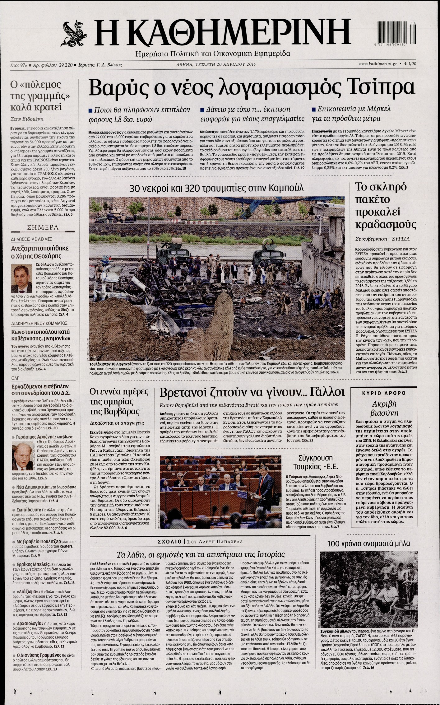 Oι πολιτικές εφημερίδες 20-4-2016 Enikos Newsroom 05:41, Τετάρτη 20 Απριλίου 2016 Media Διαβάστε τα σημερινά πρωτοσέλιδα των πολιτικών εφημερίδων: ΠΟΛΙΤΙΚΕΣ ΕΦΗΜΕΡΙΔΕΣ ΠΡΩΤΟΣΕΛΙΔΑ Μοιράσου το: σχολίασε κι εσύ (0 σχόλια) Ακολουθήστε το enikos.gr στο Google News και μάθετε πρώτοι όλες τις ειδήσεις Δείτε όλες τις τελευταίες ειδήσεις από την Ελλάδα και τον Κόσμο στο enikos.gr Ειδήσεις Ροή Ειδήσεων 6 ώρες πριν Χριστούγεννα στα μπλόκα: Επιμένουν στις κινητοποιήσεις τους οι αγρότες – Ανοίγουν τα διόδια το Σαββατοκύριακο 7 ώρες πριν Ουκρανία: Η άνευ προηγουμένου επίθεση σε ρωσικό τάνκερ στη Μεσόγειο και το μήνυμα προς στον Πούτιν – Το «μακρύ χέρι» του Κιέβου 6 ώρες πριν Πούτιν: Τα μηνύματα σε Ευρώπη και ΝΑΤΟ από το μαραθώνιο «σόου» του – Η απαίτηση για «σεβασμό» και η ειρήνη «με τους όρους» της Μόσχας 7 ώρες πριν Τραμπ: Δεν αποκλείει την πιθανότητα ενός πολέμου στη Βενεζουέλα – «Ο Μαδούρο ξέρει καλύτερα από τον καθένα τι ακριβώς θέλω» 7 ώρες πριν Συνεχίζει να προκαλεί ο Μίτσκοσκι: «Για μένα το όνομα Μακεδονία είναι ιερό» 6 ώρες πριν Ανακαλύφθηκαν αρχαία χρυσά νομίσματα 2.200 ετών που απεικονίζουν τον θεό Απόλλωνα – Η άγνωστη σύνδεση με τον Φίλιππο Β΄ της Μακεδονίας 7 ώρες πριν Ύπνος: Μια κρυφή κατάσταση του εγκεφάλου πριν από τον ύπνο μπορεί να είναι το “κλειδί” για υψηλή ευφυΐα και δημιουργικότητα 8 ώρες πριν Αριθμολογία: Οι άνθρωποι που έχουν γεννηθεί αυτές τις 4 ημερομηνίες, συχνά παρεξηγούνται – «Η καλοσύνη τους κρύβει τεράστια δύναμη» 9 ώρες πριν Ξεχάστε το καθάρισμα το Σαββατοκύριακο: Ο «κανόνας των 20 λεπτών» που θα σας λύσει τα χέρια 9 λεπτά πριν Μοχάμεντ Σαλάχ: Ζήτησε «συγγνώμη» από τους συμπαίκτες του στη Λίβερπουλ για το ξέσπασμά του 24 λεπτά πριν Μάρκο Ρούμπιο: Ανθρωπιστική κατάπαυση του πυρός στο Σουδάν ζητά ο Αμερικανός υπουργός Εξωτερικών 39 λεπτά πριν Αγγελική Νικολούλη: Τα συλλυπητήρια για την απώλεια της Ειρήνης Μαρινάκη 53 λεπτά πριν Βολιβία: Μαζική διαδηλώσεις εναντίον της κατάργησης των επιδοτήσεων των τιμών των καυσίμων 1 ώρα πριν Φως στο Τούνελ: Έφτασε η ώρα της αλήθειας για την δολοφονία της χήρας του πρώην υπουργού στο Κολωνάκι ENIKOS NETWORK Το ΕΚΑΒ τιμήθηκε από την Ακαδημία Αθηνών για τα 40 χρόνια προσφοράς του Έχετε πραγματικά μεγάλη καρδιά; 10 χαρακτηριστικά όσων έχουν καλοσύνη Αναστολή μέτρων αναγκαστικής εκτέλεσης για κτηνοτρόφους που πλήττονται από την ευλογιά των αιγοπροβάτων Πλήρης επάρκεια προϊόντων στις λαϊκές της Αττικής, παρά τις αγροτικές κινητοποιήσεις – Τι απαντούν οι πωλητές Χαρτογραφώντας το «σημείο χωρίς επιστροφή»: Για πρώτη φορά αποκαλύπτεται με λεπτομέρεια το ακανθώδες όριο της ατμόσφαιρας τ... Η Google καταργεί τη λειτουργία «dark web report» – Πώς θα μπορούν οι χρήστες να διαγράφουν τα δεδομένα τους περισσότερα 04:20 , Σάββατο 20 Δεκεμβρίου 2025 Αγγελική Νικολούλη: Τα συλλυπητήρια για την απώλεια της Ειρήνης Μαρινάκη Τα συλληπητήρια στον πρόεδρο του Mega, τον Βαγγέλη Μαρινάκη, για την απώλεια της μητέρας του Ε... 02:50 , Σάββατο 20 Δεκεμβρίου 2025 GNTM: Η Ξένια Τσίρκοβα αναδείχθηκε μεγάλη νικήτρια και πήρε τις 50.000 ευρώ – Ποιος βρέθηκε σε απόσταση αναπνοής; Με φαντασμαγορικό τρόπο ολοκληρώθηκε το βράδυ της Παρασκευής ο μεγάλος τελικός του GNTM, μέσα ... 22:42 , Παρασκευή 19 Δεκεμβρίου 2025 Γιώργος Γιαννόπουλος για “Το σόι σου”: “Είναι ευτυχία και ευλογία αυτή η σειρά” «Είναι ευτυχία και ευλογία η συγκυρία αυτής της σειράς», θα πει ο Γιώργος Γιαννόπουλος -ο αγαπ... 20:37 , 