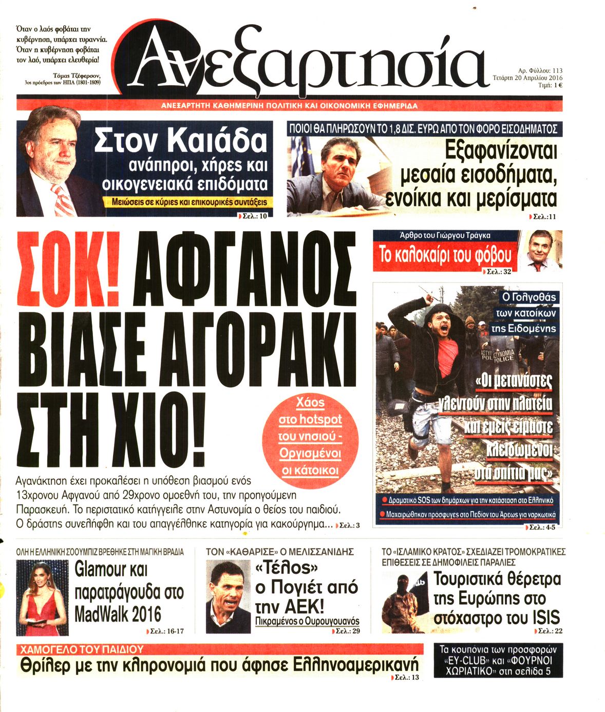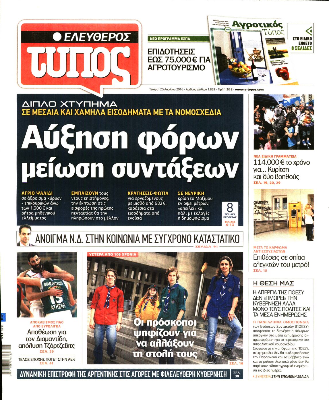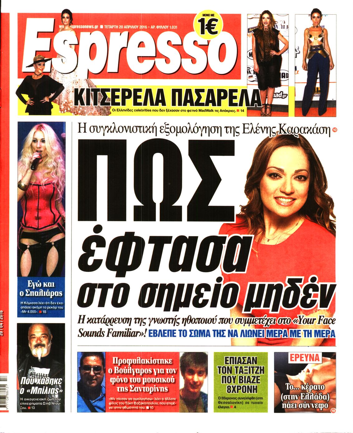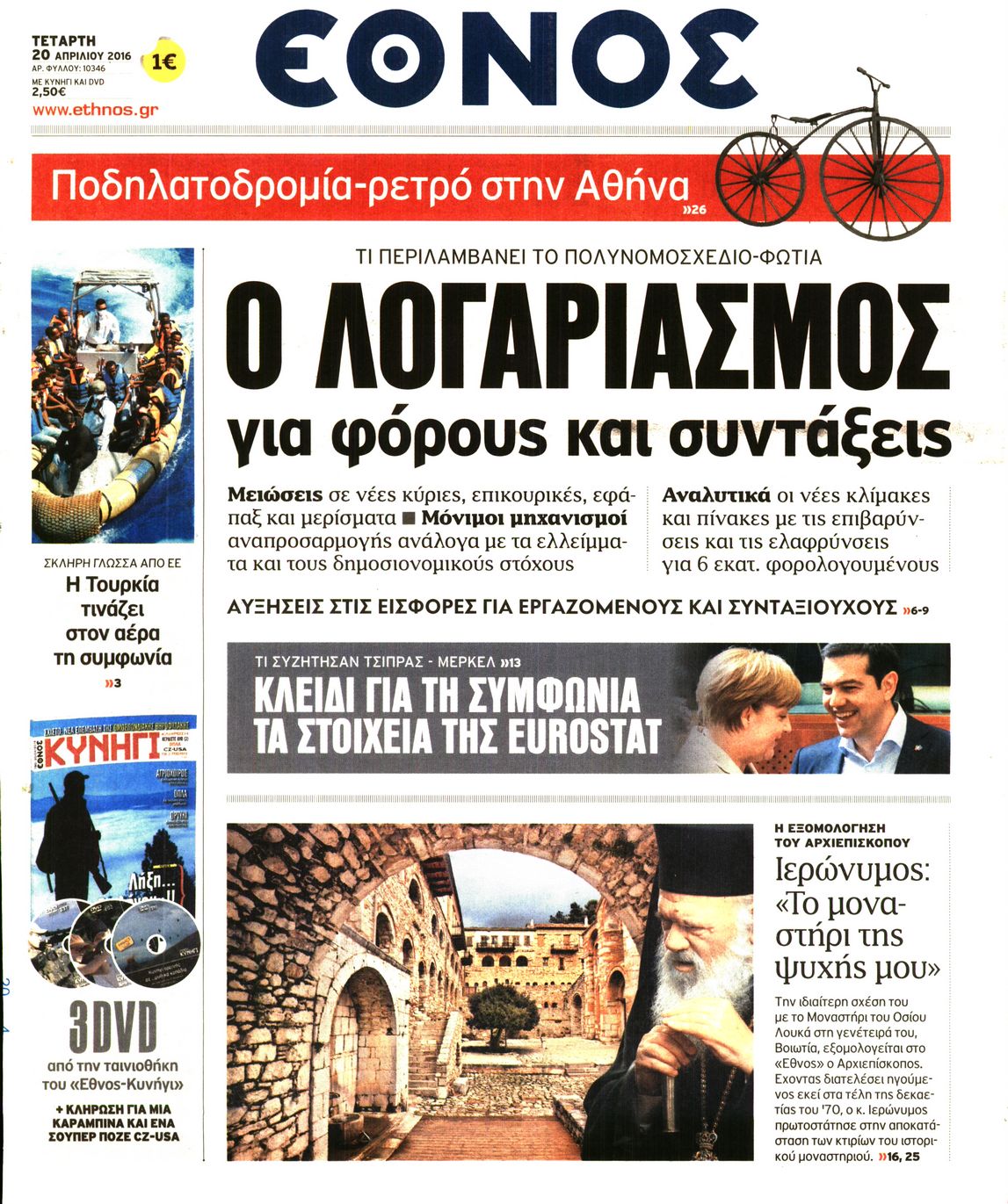 Oι πολιτικές εφημερίδες 20-4-2016 Enikos Newsroom 05:41, Τετάρτη 20 Απριλίου 2016 Media Διαβάστε τα σημερινά πρωτοσέλιδα των πολιτικών εφημερίδων: ΠΟΛΙΤΙΚΕΣ ΕΦΗΜΕΡΙΔΕΣ ΠΡΩΤΟΣΕΛΙΔΑ Μοιράσου το: σχολίασε κι εσύ (0 σχόλια) Ακολουθήστε το enikos.gr στο Google News και μάθετε πρώτοι όλες τις ειδήσεις Δείτε όλες τις τελευταίες ειδήσεις από την Ελλάδα και τον Κόσμο στο enikos.gr Ειδήσεις Ροή Ειδήσεων 6 ώρες πριν Χριστούγεννα στα μπλόκα: Επιμένουν στις κινητοποιήσεις τους οι αγρότες – Ανοίγουν τα διόδια το Σαββατοκύριακο 7 ώρες πριν Ουκρανία: Η άνευ προηγουμένου επίθεση σε ρωσικό τάνκερ στη Μεσόγειο και το μήνυμα προς στον Πούτιν – Το «μακρύ χέρι» του Κιέβου 6 ώρες πριν Πούτιν: Τα μηνύματα σε Ευρώπη και ΝΑΤΟ από το μαραθώνιο «σόου» του – Η απαίτηση για «σεβασμό» και η ειρήνη «με τους όρους» της Μόσχας 7 ώρες πριν Τραμπ: Δεν αποκλείει την πιθανότητα ενός πολέμου στη Βενεζουέλα – «Ο Μαδούρο ξέρει καλύτερα από τον καθένα τι ακριβώς θέλω» 7 ώρες πριν Συνεχίζει να προκαλεί ο Μίτσκοσκι: «Για μένα το όνομα Μακεδονία είναι ιερό» 6 ώρες πριν Ανακαλύφθηκαν αρχαία χρυσά νομίσματα 2.200 ετών που απεικονίζουν τον θεό Απόλλωνα – Η άγνωστη σύνδεση με τον Φίλιππο Β΄ της Μακεδονίας 7 ώρες πριν Ύπνος: Μια κρυφή κατάσταση του εγκεφάλου πριν από τον ύπνο μπορεί να είναι το “κλειδί” για υψηλή ευφυΐα και δημιουργικότητα 8 ώρες πριν Αριθμολογία: Οι άνθρωποι που έχουν γεννηθεί αυτές τις 4 ημερομηνίες, συχνά παρεξηγούνται – «Η καλοσύνη τους κρύβει τεράστια δύναμη» 9 ώρες πριν Ξεχάστε το καθάρισμα το Σαββατοκύριακο: Ο «κανόνας των 20 λεπτών» που θα σας λύσει τα χέρια 9 λεπτά πριν Μοχάμεντ Σαλάχ: Ζήτησε «συγγνώμη» από τους συμπαίκτες του στη Λίβερπουλ για το ξέσπασμά του 24 λεπτά πριν Μάρκο Ρούμπιο: Ανθρωπιστική κατάπαυση του πυρός στο Σουδάν ζητά ο Αμερικανός υπουργός Εξωτερικών 39 λεπτά πριν Αγγελική Νικολούλη: Τα συλλυπητήρια για την απώλεια της Ειρήνης Μαρινάκη 53 λεπτά πριν Βολιβία: Μαζική διαδηλώσεις εναντίον της κατάργησης των επιδοτήσεων των τιμών των καυσίμων 1 ώρα πριν Φως στο Τούνελ: Έφτασε η ώρα της αλήθειας για την δολοφονία της χήρας του πρώην υπουργού στο Κολωνάκι ENIKOS NETWORK Το ΕΚΑΒ τιμήθηκε από την Ακαδημία Αθηνών για τα 40 χρόνια προσφοράς του Έχετε πραγματικά μεγάλη καρδιά; 10 χαρακτηριστικά όσων έχουν καλοσύνη Αναστολή μέτρων αναγκαστικής εκτέλεσης για κτηνοτρόφους που πλήττονται από την ευλογιά των αιγοπροβάτων Πλήρης επάρκεια προϊόντων στις λαϊκές της Αττικής, παρά τις αγροτικές κινητοποιήσεις – Τι απαντούν οι πωλητές Χαρτογραφώντας το «σημείο χωρίς επιστροφή»: Για πρώτη φορά αποκαλύπτεται με λεπτομέρεια το ακανθώδες όριο της ατμόσφαιρας τ... Η Google καταργεί τη λειτουργία «dark web report» – Πώς θα μπορούν οι χρήστες να διαγράφουν τα δεδομένα τους περισσότερα 04:20 , Σάββατο 20 Δεκεμβρίου 2025 Αγγελική Νικολούλη: Τα συλλυπητήρια για την απώλεια της Ειρήνης Μαρινάκη Τα συλληπητήρια στον πρόεδρο του Mega, τον Βαγγέλη Μαρινάκη, για την απώλεια της μητέρας του Ε... 02:50 , Σάββατο 20 Δεκεμβρίου 2025 GNTM: Η Ξένια Τσίρκοβα αναδείχθηκε μεγάλη νικήτρια και πήρε τις 50.000 ευρώ – Ποιος βρέθηκε σε απόσταση αναπνοής; Με φαντασμαγορικό τρόπο ολοκληρώθηκε το βράδυ της Παρασκευής ο μεγάλος τελικός του GNTM, μέσα ... 22:42 , Παρασκευή 19 Δεκεμβρίου 2025 Γιώργος Γιαννόπουλος για “Το σόι σου”: “Είναι ευτυχία και ευλογία αυτή η σειρά” «Είναι ευτυχία και ευλογία η συγκυρία αυτής της σειράς», θα πει ο Γιώργος Γιαννόπουλος -ο αγαπ... 20:37 , 