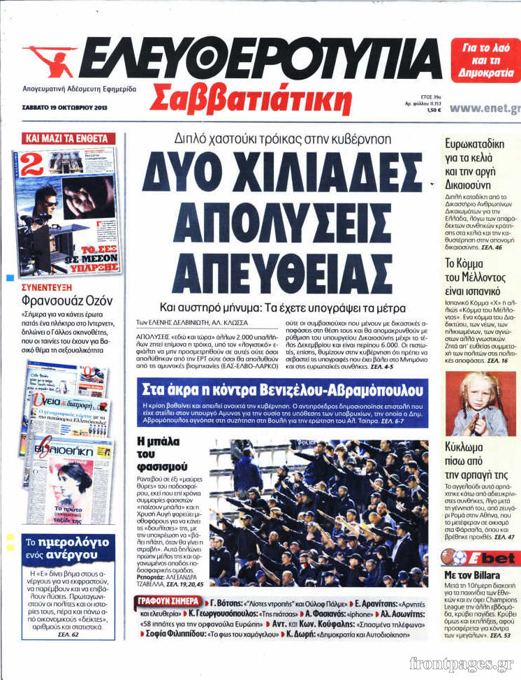 Οι πολιτικές εφημερίδες Enikos Newsroom 08:10, Σάββατο 19 Οκτωβρίου 2013 Media Οι πολιτικές εφημερίδες Διαβάστε τα πρωτοσέλιδα των πολιτικών εφημερίδων: ΠΟΛΙΤΙΚΕΣ ΕΦΗΜΕΡΙΔΕΣ ΠΡΩΤΟΣΕΛΙΔΑ Μοιράσου το: σχολίασε κι εσύ (0 σχόλια) Ακολουθήστε το enikos.gr στο Google News και μάθετε πρώτοι όλες τις ειδήσεις Δείτε όλες τις τελευταίες ειδήσεις από την Ελλάδα και τον Κόσμο στο enikos.gr Ειδήσεις Ροή Ειδήσεων 1 ώρα πριν Διάλογοι-σοκ από το κύκλωμα που διακινούσε ναρκωτικά σε σχολεία – «Αν δεν είσαι εκεί σε 5 λεπτά, θα φας πολύ ξύλο μπρο» 3 ώρες πριν Αγρότες από το μπλόκο Νίκαιας κλείνουν τη Δευτέρα τις σήραγγες των Τεμπών για τα φορτηγά – Τι αποφάσισαν 36 λεπτά πριν «Πλημμύρισε» με κόσμο η Ερμού ενόψει των Χριστουγέννων – Ουρές στα καταστήματα – ΦΩΤΟ και ΒΙΝΤΕΟ 2 ώρες πριν Ζελένσκι: Τάχθηκε σήμερα υπέρ της διεξαγωγής ευρύτερων διαβουλεύσεων με Ευρωπαίους εταίρους 26 λεπτά πριν Super League 2: Ο Σεμπά πέτυχε το γκολ της χρονιάς με ανάποδο ψαλίδι – ΒΙΝΤΕΟ 59 λεπτά πριν Αν ανήκετε σε ένα από αυτά τα 3 ζώδια, το 2026 θα είναι η χρονιά σας – «Η ζωή σας βελτιώνεται σε όλους τους τομείς» 5 ώρες πριν Οι άνθρωποι που στρώνουν το κρεβάτι τους κάθε πρωί, διαθέτουν αυτές τις 8 κρυφές δυνάμεις 2 ώρες πριν Ένα πλάσμα στα βάθη της θάλασσας απορροφά άνθρακα από την ατμόσφαιρα – «Δεν είχαμε ιδέα για την ύπαρξή του» 1 ημέρα πριν Enerwave: Το νέο «ρεύμα» στη λιανική ενέργειας που αλλάζει την εμπειρία του καταναλωτή 7 λεπτά πριν Μέγκαν Μαρκλ – Πρίγκιπας Χάρι: Οικονομικά προβλήματα στο Ίδρυμα τους – Τρεις απολύσεις υπαλλήλων 15 λεπτά πριν Αυστραλία: Αποδοκίμασαν τον πρωθυπουργό στις εκδηλώσεις μνήμης για τα θύματα της επίθεσης στην παραλία Μποντάι 26 λεπτά πριν Super League 2: Ο Σεμπά πέτυχε το γκολ της χρονιάς με ανάποδο ψαλίδι – ΒΙΝΤΕΟ 36 λεπτά πριν «Πλημμύρισε» με κόσμο η Ερμού ενόψει των Χριστουγέννων – Ουρές στα καταστήματα – ΦΩΤΟ και ΒΙΝΤΕΟ 45 λεπτά πριν Ολυμπιακός: Υπέταξε τον Κολοσσό στο ΣΕΦ με… σούπερ Ντόρσεϊ – Ντεμπούτο για τον Μόντε Μόρις ENIKOS NETWORK Ο εγκέφαλός μας ξεπερνά ακόμα σε εξυπνάδα το ΑΙ – Ποιο είναι αυτό στο οποίο είμαστε καλύτεροι Φοράτε ψηλοτάκουνα παπούτσια; Ποδίατροι συμβουλεύουν πόσο ψηλά επιτρέπεται να είναι και πώς να τα επιλέξετε Έρχεται ο Μοναδικός Αριθμός Ταυτότητας για τα ακίνητα: Τι είναι και από πού θα αντλούνται πληροφορίες – Πώς θα αλλάξει τις ... ΕΚΤ: Προβλέπει χαμηλότερες τιμές ενέργειας και αποκλιμάκωση πληθωρισμού στην Ευρωζώνη το 2026 Χαρτογραφώντας το «σημείο χωρίς επιστροφή»: Για πρώτη φορά αποκαλύπτεται με λεπτομέρεια το ακανθώδες όριο της ατμόσφαιρας τ... Η Google καταργεί τη λειτουργία «dark web report» – Πώς θα μπορούν οι χρήστες να διαγράφουν τα δεδομένα τους περισσότερα 15:08 , Κυριακή 21 Δεκεμβρίου 2025 Μια νύχτα μόνο: Η Αρετή και ο Οδυσσέας έρχονται και πάλι κοντά Το νέο επεισόδιο της δραματικής σειράς του MEGA «Μια νύχτα μόνο», θα προβληθεί απόψε Κυριακή 2... 14:24 , Κυριακή 21 Δεκεμβρίου 2025 IQ 160: Ο φάκελος με το τεστ πατρότητας ανοίγει, απόψε στις 21:00 στο Star Ανατρεπτικό το νέο διπλό επεισόδιο της σειράς “IQ 160” στις 21:00 στο Star. Ο Τηλέ... 09:43 , Κυριακή 21 Δεκεμβρίου 2025 Το λάθος στην ταινία Die Hard που άφησε άναυδους τους θαυμαστές του Μπρους Γουίλις Ένας φανατικός των ταινιών άφησε άναυδους τους θαυμαστές του Die Hard, επισημαίνοντας τρία βασ... 08:13 , Κυριακή 21 Δεκεμβρίου 2025 Άγιος έρωτας: Ένας καταστροφικός σεισμός χτυπά τη Στέρνα Καταιγιστικές είναι οι εξελίξεις στα δυο τελευταία, συγκλονιστικά επεισόδια το