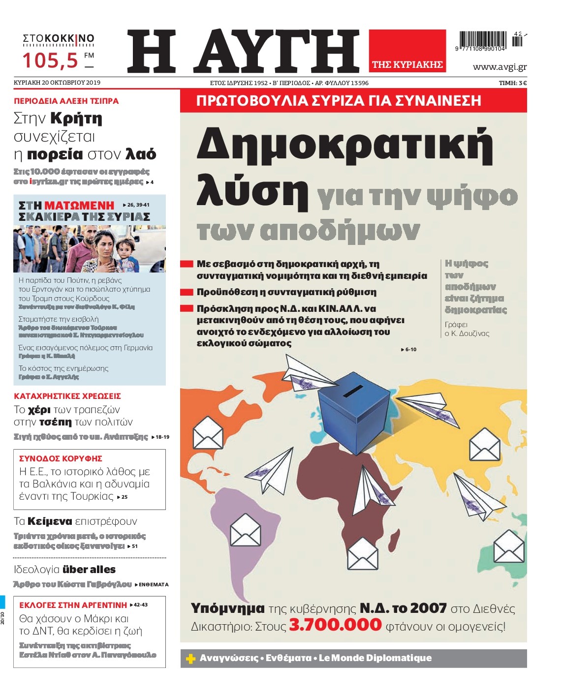 Οι πολιτικές εφημερίδες 20/10/2019 Διονύσης Νίκκας 07:01, Κυριακή 20 Οκτωβρίου 2019 Media Διαβάστε τα πρωτοσέλιδα των πολιτικών εφημερίδων… ΕΦΗΜΕΡΙΔΕΣ ΠΟΛΙΤΙΚΕΣ Μοιράσου το: σχολίασε κι εσύ (0 σχόλια) Ακολουθήστε το enikos.gr στο Google News και μάθετε πρώτοι όλες τις ειδήσεις Δείτε όλες τις τελευταίες ειδήσεις από την Ελλάδα και τον Κόσμο στο enikos.gr Ειδήσεις Ροή Ειδήσεων 3 λεπτά πριν Ουκρανία: Βρετανία και Γαλλία συμφώνησαν για ανάπτυξη δυνάμεων σε περίπτωση επίτευξης ειρηνευτικής συμφωνίας 3 ώρες πριν Σέρρες: Δικογραφία για ανθρωποκτονία από πρόθεση σε βάρος του 16χρονου – Είχε διαταχθεί έρευνα για τις συνθήκες διαβίωσής του 1 ώρα πριν Πάτρα: Προθεσμία να απολογηθούν την Παρασκευή έλαβαν οι τρεις εμπλεκόμενοι στην υπόθεση θανάτου του 30χρονου 2 ώρες πριν Μετ’ εμποδίων η επιστροφή των εκδρομέων μέσω παραδρόμων – Πού έχουν δημιουργηθεί ουρές χιλιομέτρων 3 ώρες πριν Μαρία Κορίνα Ματσάδο: Υπόσχεται ότι θα επιστρέψει σύντομα στη Βενεζουέλα και δηλώνει έτοιμη για εκλογές 5 ώρες πριν Τα 3 ζώδια που προσελκύουν τύχη έως τις 11 Ιανουαρίου – «Αφοσιωθείτε στην εξέλιξή σας» 2 ώρες πριν Αν θέλετε να διατηρήσετε την αγάπη ζωντανή για δεκαετίες, πείτε αντίο σε αυτές τις 8 μικρές αλλά καταστροφικές συνήθειες 1 ώρα πριν Γυάλινα βάζα: Το έξυπνο κόλπο με μαγνήτες για να τα καθαρίζετε χωρίς κόπο 6 ώρες πριν Η Γη «ταΐζει» τη Σελήνη εδώ και δισεκατομμύρια χρόνια – Έρευνα αποκαλύπτει πως το φεγγάρι «κατέχει» το χημικό αρχείο του πλανήτη μας 3 λεπτά πριν Ουκρανία: Βρετανία και Γαλλία συμφώνησαν για ανάπτυξη δυνάμεων σε περίπτωση επίτευξης ειρηνευτικής συμφωνίας 6 λεπτά πριν 2025: Το δεύτερο θερμότερο έτος για την Ελλάδα από το 1890 – Πάνω από τον μέσο όρο η θερμοκρασία τις 262 ημέρες του χρόνου 14 λεπτά πριν Αγρότες: Σήκωσαν τις μπάρες των διοδίων της Γέφυρας Ρίου-Αντιρρίου – ΒΙΝΤΕΟ 18 λεπτά πριν Πάτρα: «Μου το σκοτώσανε το παιδί μου, όταν το είδα δεν το γνώρισα» – Ξεσπά η μητέρα του 30χρονου που έχασε τη ζωή του έπειτα από ξυλοδαρμό 34 λεπτά πριν Κύπελλο Ελλάδας: Η… βολίδα του Αμανί έστειλε την Κηφισιά στους «8» – 1-0 τον Βόλο ENIKOS NETWORK 7 πράγματα που πρέπει να κρατάτε πάντα μυστικά, ακόμη και από τους φίλους σας Απώλεια βάρους: Γιατί κάποιοι δυσκολεύονται περισσότερο να χάσουν κιλά Πιερρακάκης: «Έμπρακτη στήριξη των ελληνορθόδοξων κοινοτήτων από την κυβέρνηση με 600 οργανικές θέσεις κληρικών» Nestle: Ανακαλεί προληπτικά προϊόντα βρεφικού γάλακτος λόγω πιθανής ύπαρξης τοξίνης – Αναλυτική λίστα Ο Google Assistant θα παραμείνει λίγο περισσότερο για ορισμένους χρήστες Android Τεστ προσωπικότητας: Το βάζο που θα επιλέξετε αποκαλύπτει πώς λύνετε προβλήματα στη ζωή σας περισσότερα 09:36 , Τρίτη 06 Ιανουαρίου 2026 Αυτή την Κυριακή με τη Realnews: Μυστηριώδης εξαφάνιση – Ένα καθηλωτικό θρίλερ γεμάτο αγωνία από τον διεθνώς αναγνωρισμένο συγγραφέα Rick Mofina Αυτή την Κυριακή με τη Realnews: Μυστηριώδης εξαφάνιση –Ένα καθηλωτικό θρίλερ γεμάτο αγω... 07:53 , Τρίτη 06 Ιανουαρίου 2026 Την Κυριακή με τη Realnews: Ό,τι και αν αγοράσεις, σκανάρεις και κερδίζεις! Την Κυριακή με τη Realnews: Ό,τι και αν αγοράσεις, σκανάρεις και κερδίζεις! Με το PADU app, το... 07:28 , Τρίτη 06 Ιανουαρίου 2026 Την Κυριακή με τη Realnews: Δωροεπιταγή 10€ Την Κυριακή με τη Realnews: Δωροεπιταγή 10€ Δωροεπιταγή αξίας 10€ για αγορές άνω των 60€ από τ... 21:30 , Δευτέρα 05 Ιανουαρίου 2026 ΑΝΤ1: Εφαρμόζει το μοντέλο της επανάληψης για τις φετινές σειρές του Το μοντέλο της επανάληψης εφαρμόζει ο ΑΝΤ1 στο κενό