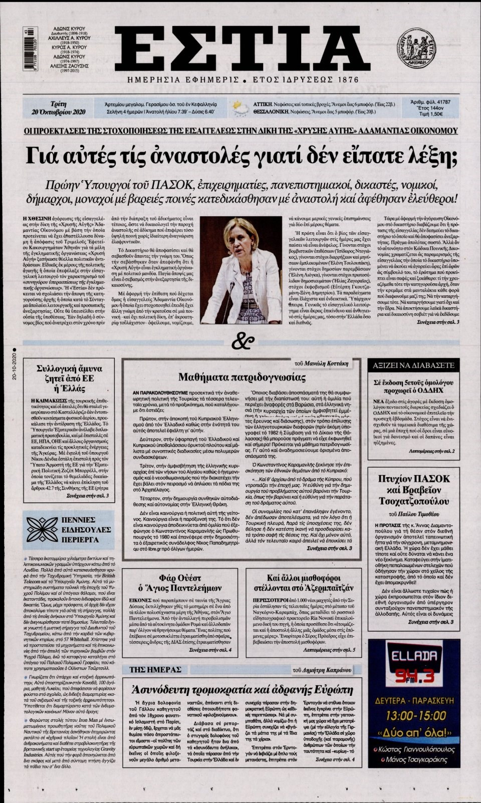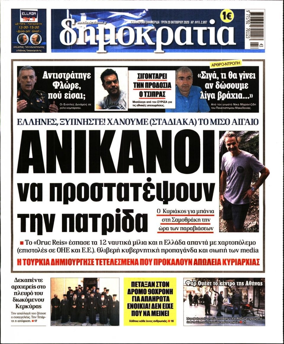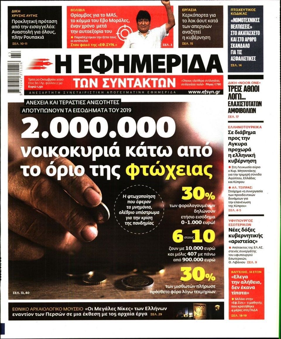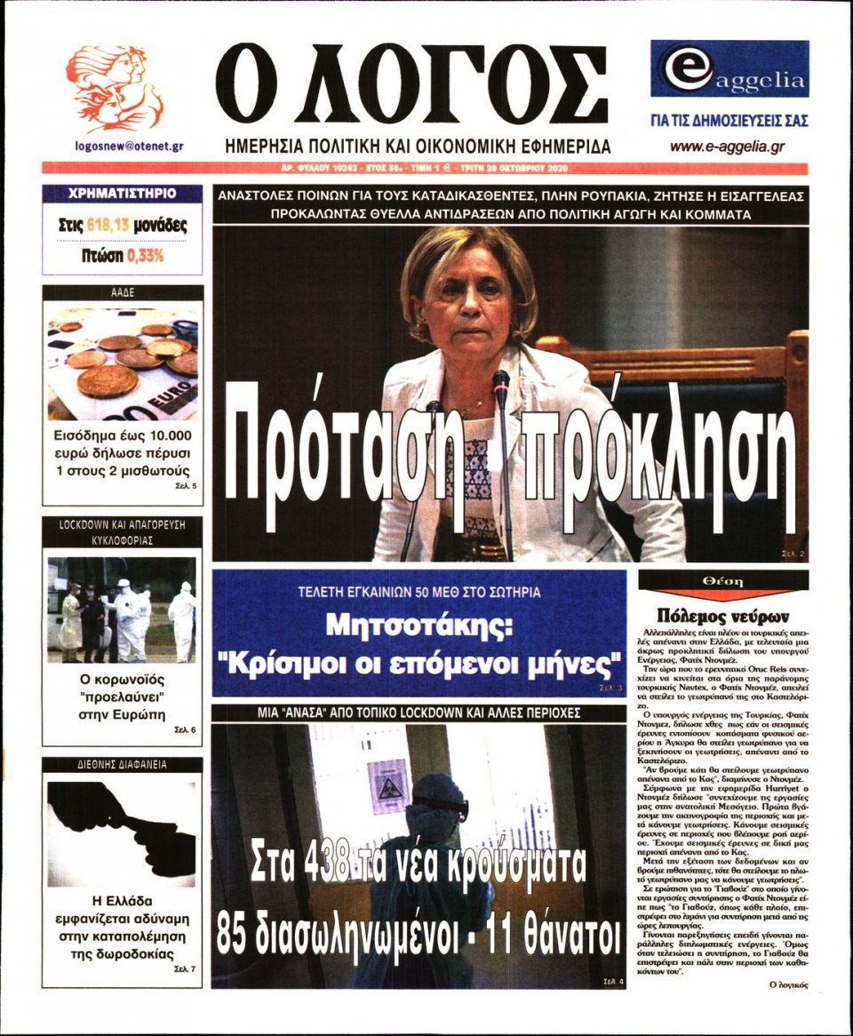 Οι πολιτικές εφημερίδες 20/10/2020 Σήφης Γαρυφαλάκης 06:31, Τρίτη 20 Οκτωβρίου 2020 Media Διαβάστε τα πρωτοσέλιδα των πολιτικών εφημερίδων… ΕΦΗΜΕΡΙΔΕΣ ΠΟΛΙΤΙΚΕΣ ΕΦΗΜΕΡΙΔΕΣ ΠΡΩΤΟΣΕΛΙΔΑ ΠΡΩΤΟΣΕΛΙΔΑ ΕΦΗΜΕΡΙΔΩΝ Μοιράσου το: σχολίασε κι εσύ (0 σχόλια) Ακολουθήστε το enikos.gr στο Google News και μάθετε πρώτοι όλες τις ειδήσεις Δείτε όλες τις τελευταίες ειδήσεις από την Ελλάδα και τον Κόσμο στο enikos.gr Ειδήσεις Ροή Ειδήσεων 11 ώρες πριν «Βιολάντα»: Αυτά είναι τα κρίσιμα σχέδια των εγκαταστάσεων που κατέθεσε η επιχείρηση στις αρμόδιες υπηρεσίες – Αποκάλυψη enikos.gr 8 ώρες πριν Αρχεία Επστάιν: Σάλος με τις αποκαλύψεις για τους φίλους του καταδικασμένου χρηματιστή – Οι Ρωσίδες, ο Γκέιτς, τα ΣΜΝ, τα ελικόπτερα και ο Μασκ 9 ώρες πριν Τροχαίο δυστύχημα στη Ρουμανία: Θρήνος στις κηδείες των 2 φιλάθλων του ΠΑΟΚ – Το Σάββατο η εξόδιος ακολουθία για τους 3 νέους από την Αλεξάνδρεια Ημαθίας 9 ώρες πριν Βιολάντα: Διευρυμένη εισαγγελική έρευνα για τα αίτια της τραγωδίας στα Τρίκαλα – Οι αποκαλύψεις για το αδήλωτο υπόγειο, οι καταθέσεις-«φωτιά» και το νέο βίντεο 12 ώρες πριν Νίκος Κούρκουλος: Η συνέντευξη στο «Ενώπιος Ενωπίω» και τον Νίκο Χατζηνικολάου το 1994 – Τι είχε πει για τα παιδικά του χρόνια, το θέατρο και την προσωπική του ζωή 1 ώρα πριν Υγεία του εντέρου: Το δημοφιλές ρόφημα που μπορεί να βλάψει το πεπτικό σας σύστημα, σύμφωνα με ειδικούς 1 ώρα πριν Οπτική ψευδαίσθηση: Μόνο αν είσαι ο Σέρλοκ Χολμς θα βρεις το airpod σε 10 δευτερόλεπτα 4 ώρες πριν Τα ζώδια σήμερα, Σάββατο 31 Ιανουαρίου 2026: Δίδυμοι, δοκιμάστε νέα πράγματα και διασκεδάστε χωρίς να σκέφτεστε το αποτέλεσμα 10 ώρες πριν Αριθμολογία: Οι 3 πιο ανιδιοτελείς ημερομηνίες γέννησης – «Είναι οι πιο γενναιόδωροι και δοτικοί άνθρωποι» 16 ώρες πριν Allwyn: Η νέα εποχή του ΟΠΑΠ – Νέο brand, περισσότερη διασκέδαση και σύγχρονες εμπειρίες ψυχαγωγίας για τους πελάτες 8 λεπτά πριν Εορτολόγιο: Ποιοι γιορτάζουν σήμερα 31 Ιανουαρίου 50 λεπτά πριν ΔΕΔΔΗΕ: Διακοπές ρεύματος σήμερα (31/1) στην Αθήνα και σε άλλες 15 περιοχές της Αττικής 51 λεπτά πριν Ίμια 1996 – 2026: 30 χρόνια από μια εθνική καμπή 57 λεπτά πριν Ο Aντόνιο Γκουτέρες προειδοποιεί για οικονομική κατάρρευση του ΟΗΕ μέχρι τον Ιούλιο λόγω εξάντλησης της ρευστότητας 1 ώρα πριν Οπτική ψευδαίσθηση: Μόνο αν είσαι ο Σέρλοκ Χολμς θα βρεις το airpod σε 10 δευτερόλεπτα ENIKOS NETWORK Το Νο1 πράγμα που πρέπει να κάνετε μετά από κάθε πτήση για να μην αρρωστήσετε Το νέκταρ των θνητών που μπορεί να ενισχύσει την υγεία της καρδιάς και να προστατεύσει από λίθους στα νεφρά ΗΠΑ: Πέφτει κατακόρυφα η τιμή του χρυσού και του ασημιού, μετά την επιλογή του Κέβιν Γουόρς για την ηγεσία της Fed Τράπεζα της Ελλάδας: Αύξηση πάνω από 80 δισ. ευρώ στις καταθέσεις νοικοκυριών από το 2019 – Σε υψηλό 15ετίας τον Δεκέμβριο Google Search: Αναβαθμίζει τις δυνατότητες AI με Gemini 3 και Follow-up ερωτήσεις Κουίζ: Πόσο καλός είσαι στην ελληνική μυθολογία; Δοκίμασε τις γνώσεις σου και κάνε το 3 στα 3 περισσότερα 05:48 , Σάββατο 31 Ιανουαρίου 2026 Οι οικονομικές εφημερίδες 31/1/2026 Διαβάστε τα πρωτοσέλιδα από τις οικονομικές εφημερίδες, σήμερα 31/1/2026. 21:42 , Παρασκευή 30 Ιανουαρίου 2026 Το σόι σου: Η Λυδία ψάχνει απεγνωσμένα για δουλειά Ένα ακόμη σπαρταριστό επεισόδιο της πολυαγαπημένης σειράς “Το σόι σου” έρχεται την... 19:40 , Παρασκευή 30 Ιανουαρίου 2026 Η Εταιρεία Ελλήνων Σκηνοθετών τιμά τον Σμαραγδή και τον «Καποδίστρια» του «Του αξίζουν συγχαρητήρια…». Οι Έλληνες σκηνοθέτες συγχαίρουν το