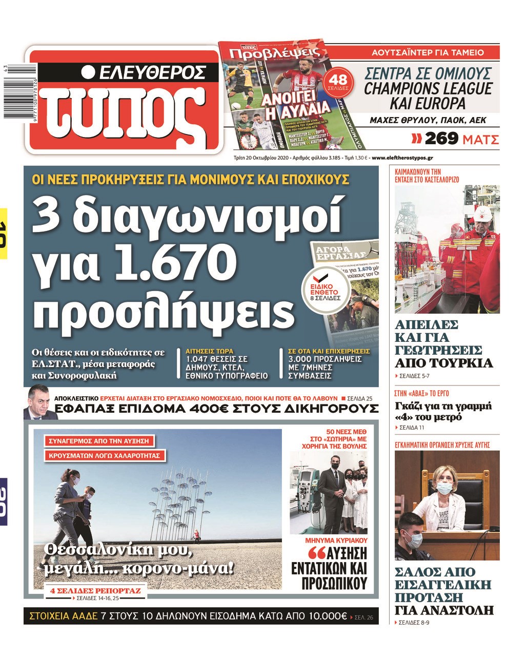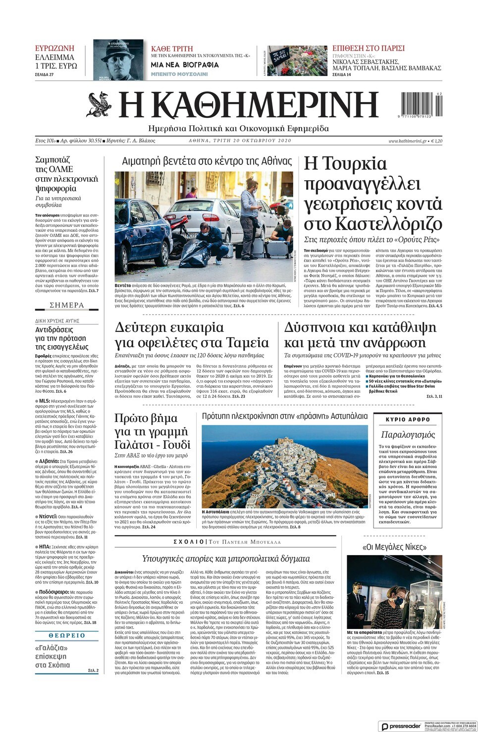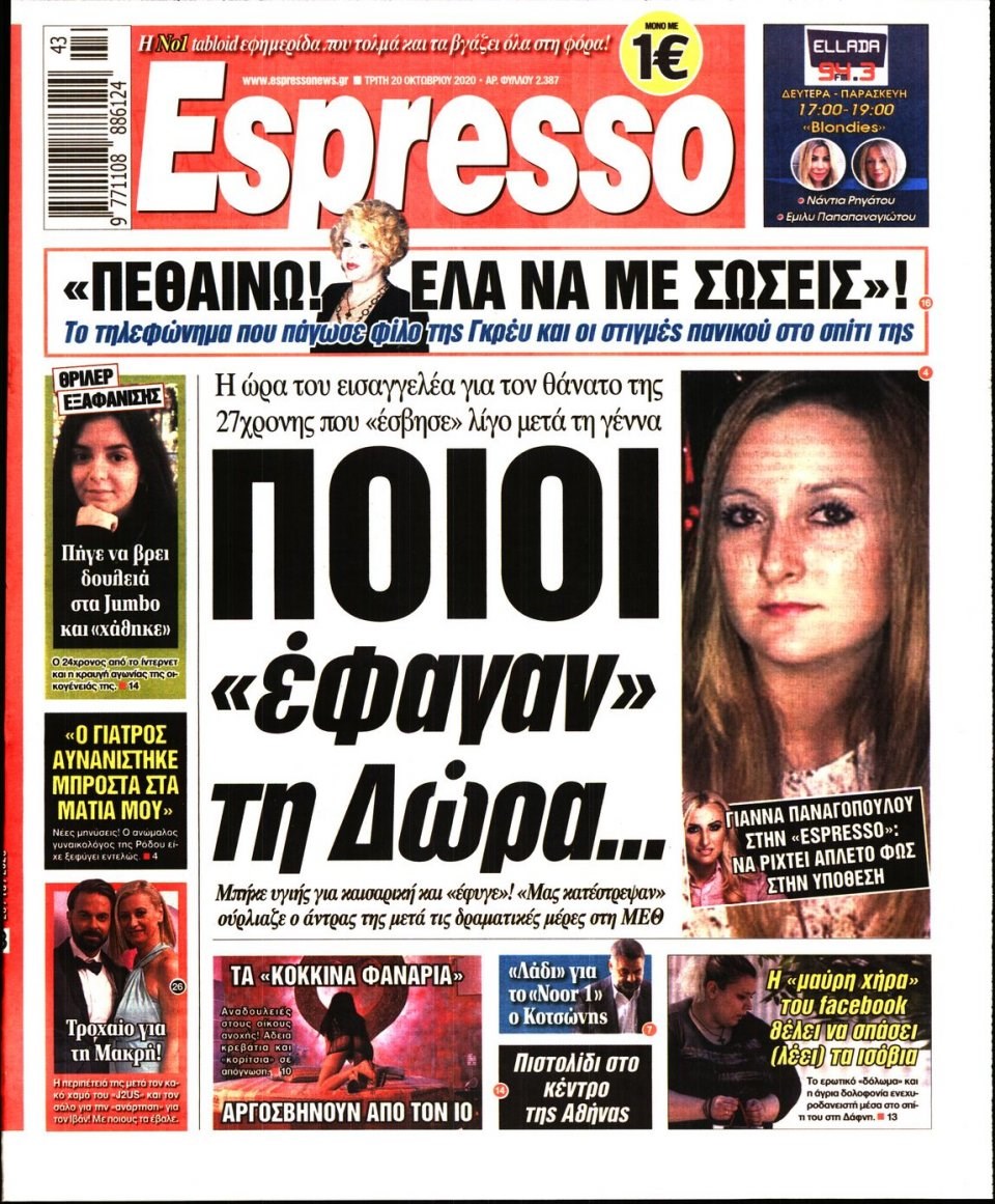 Οι πολιτικές εφημερίδες 20/10/2020 Σήφης Γαρυφαλάκης 06:31, Τρίτη 20 Οκτωβρίου 2020 Media Διαβάστε τα πρωτοσέλιδα των πολιτικών εφημερίδων… ΕΦΗΜΕΡΙΔΕΣ ΠΟΛΙΤΙΚΕΣ ΕΦΗΜΕΡΙΔΕΣ ΠΡΩΤΟΣΕΛΙΔΑ ΠΡΩΤΟΣΕΛΙΔΑ ΕΦΗΜΕΡΙΔΩΝ Μοιράσου το: σχολίασε κι εσύ (0 σχόλια) Ακολουθήστε το enikos.gr στο Google News και μάθετε πρώτοι όλες τις ειδήσεις Δείτε όλες τις τελευταίες ειδήσεις από την Ελλάδα και τον Κόσμο στο enikos.gr Ειδήσεις Ροή Ειδήσεων 11 ώρες πριν «Βιολάντα»: Αυτά είναι τα κρίσιμα σχέδια των εγκαταστάσεων που κατέθεσε η επιχείρηση στις αρμόδιες υπηρεσίες – Αποκάλυψη enikos.gr 8 ώρες πριν Αρχεία Επστάιν: Σάλος με τις αποκαλύψεις για τους φίλους του καταδικασμένου χρηματιστή – Οι Ρωσίδες, ο Γκέιτς, τα ΣΜΝ, τα ελικόπτερα και ο Μασκ 9 ώρες πριν Τροχαίο δυστύχημα στη Ρουμανία: Θρήνος στις κηδείες των 2 φιλάθλων του ΠΑΟΚ – Το Σάββατο η εξόδιος ακολουθία για τους 3 νέους από την Αλεξάνδρεια Ημαθίας 9 ώρες πριν Βιολάντα: Διευρυμένη εισαγγελική έρευνα για τα αίτια της τραγωδίας στα Τρίκαλα – Οι αποκαλύψεις για το αδήλωτο υπόγειο, οι καταθέσεις-«φωτιά» και το νέο βίντεο 12 ώρες πριν Νίκος Κούρκουλος: Η συνέντευξη στο «Ενώπιος Ενωπίω» και τον Νίκο Χατζηνικολάου το 1994 – Τι είχε πει για τα παιδικά του χρόνια, το θέατρο και την προσωπική του ζωή 1 ώρα πριν Υγεία του εντέρου: Το δημοφιλές ρόφημα που μπορεί να βλάψει το πεπτικό σας σύστημα, σύμφωνα με ειδικούς 1 ώρα πριν Οπτική ψευδαίσθηση: Μόνο αν είσαι ο Σέρλοκ Χολμς θα βρεις το airpod σε 10 δευτερόλεπτα 4 ώρες πριν Τα ζώδια σήμερα, Σάββατο 31 Ιανουαρίου 2026: Δίδυμοι, δοκιμάστε νέα πράγματα και διασκεδάστε χωρίς να σκέφτεστε το αποτέλεσμα 10 ώρες πριν Αριθμολογία: Οι 3 πιο ανιδιοτελείς ημερομηνίες γέννησης – «Είναι οι πιο γενναιόδωροι και δοτικοί άνθρωποι» 16 ώρες πριν Allwyn: Η νέα εποχή του ΟΠΑΠ – Νέο brand, περισσότερη διασκέδαση και σύγχρονες εμπειρίες ψυχαγωγίας για τους πελάτες 8 λεπτά πριν Εορτολόγιο: Ποιοι γιορτάζουν σήμερα 31 Ιανουαρίου 50 λεπτά πριν ΔΕΔΔΗΕ: Διακοπές ρεύματος σήμερα (31/1) στην Αθήνα και σε άλλες 15 περιοχές της Αττικής 51 λεπτά πριν Ίμια 1996 – 2026: 30 χρόνια από μια εθνική καμπή 57 λεπτά πριν Ο Aντόνιο Γκουτέρες προειδοποιεί για οικονομική κατάρρευση του ΟΗΕ μέχρι τον Ιούλιο λόγω εξάντλησης της ρευστότητας 1 ώρα πριν Οπτική ψευδαίσθηση: Μόνο αν είσαι ο Σέρλοκ Χολμς θα βρεις το airpod σε 10 δευτερόλεπτα ENIKOS NETWORK Το Νο1 πράγμα που πρέπει να κάνετε μετά από κάθε πτήση για να μην αρρωστήσετε Το νέκταρ των θνητών που μπορεί να ενισχύσει την υγεία της καρδιάς και να προστατεύσει από λίθους στα νεφρά ΗΠΑ: Πέφτει κατακόρυφα η τιμή του χρυσού και του ασημιού, μετά την επιλογή του Κέβιν Γουόρς για την ηγεσία της Fed Τράπεζα της Ελλάδας: Αύξηση πάνω από 80 δισ. ευρώ στις καταθέσεις νοικοκυριών από το 2019 – Σε υψηλό 15ετίας τον Δεκέμβριο Google Search: Αναβαθμίζει τις δυνατότητες AI με Gemini 3 και Follow-up ερωτήσεις Κουίζ: Πόσο καλός είσαι στην ελληνική μυθολογία; Δοκίμασε τις γνώσεις σου και κάνε το 3 στα 3 περισσότερα 05:48 , Σάββατο 31 Ιανουαρίου 2026 Οι οικονομικές εφημερίδες 31/1/2026 Διαβάστε τα πρωτοσέλιδα από τις οικονομικές εφημερίδες, σήμερα 31/1/2026. 21:42 , Παρασκευή 30 Ιανουαρίου 2026 Το σόι σου: Η Λυδία ψάχνει απεγνωσμένα για δουλειά Ένα ακόμη σπαρταριστό επεισόδιο της πολυαγαπημένης σειράς “Το σόι σου” έρχεται την... 19:40 , Παρασκευή 30 Ιανουαρίου 2026 Η Εταιρεία Ελλήνων Σκηνοθετών τιμά τον Σμαραγδή και τον «Καποδίστρια» του «Του αξίζουν συγχαρητήρια…». Οι Έλληνες σκηνοθέτες συγχαίρουν το
