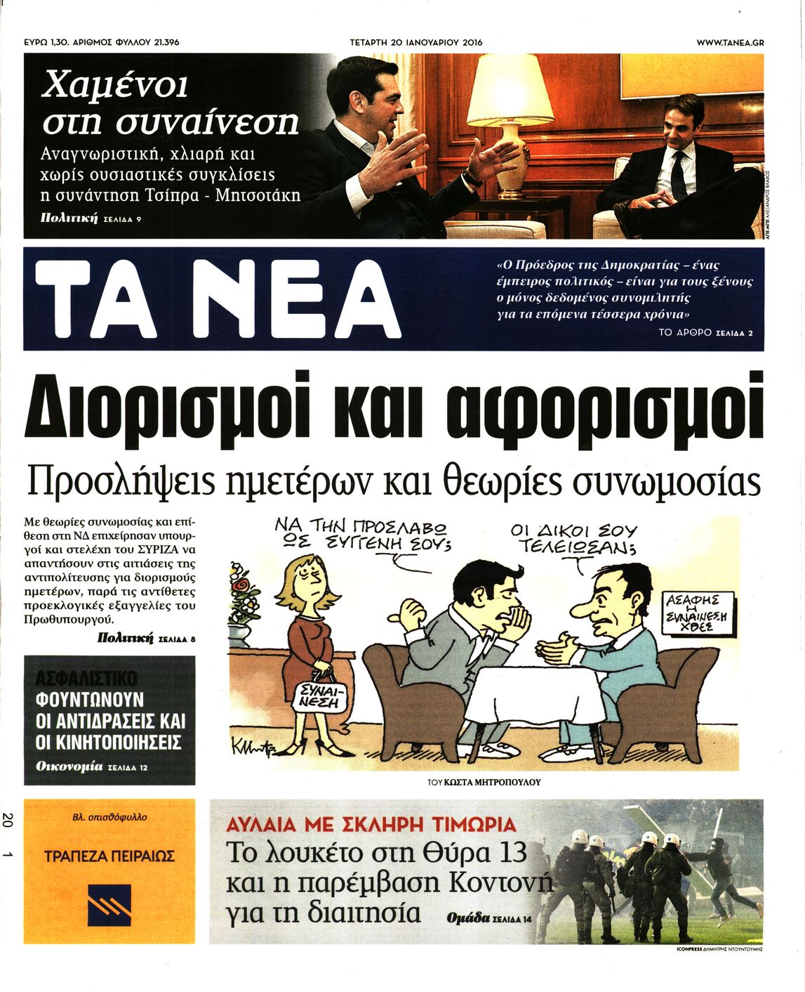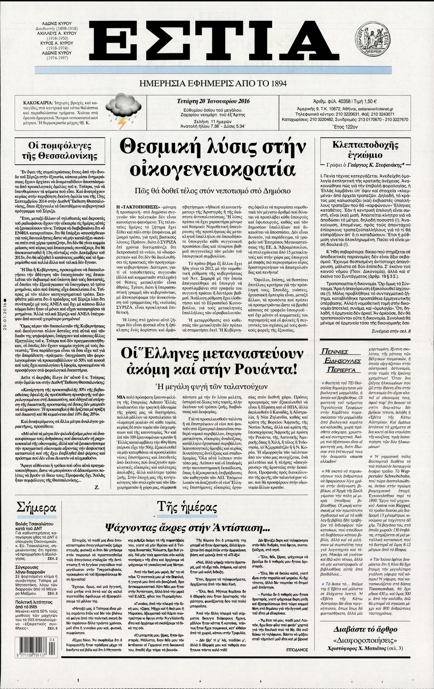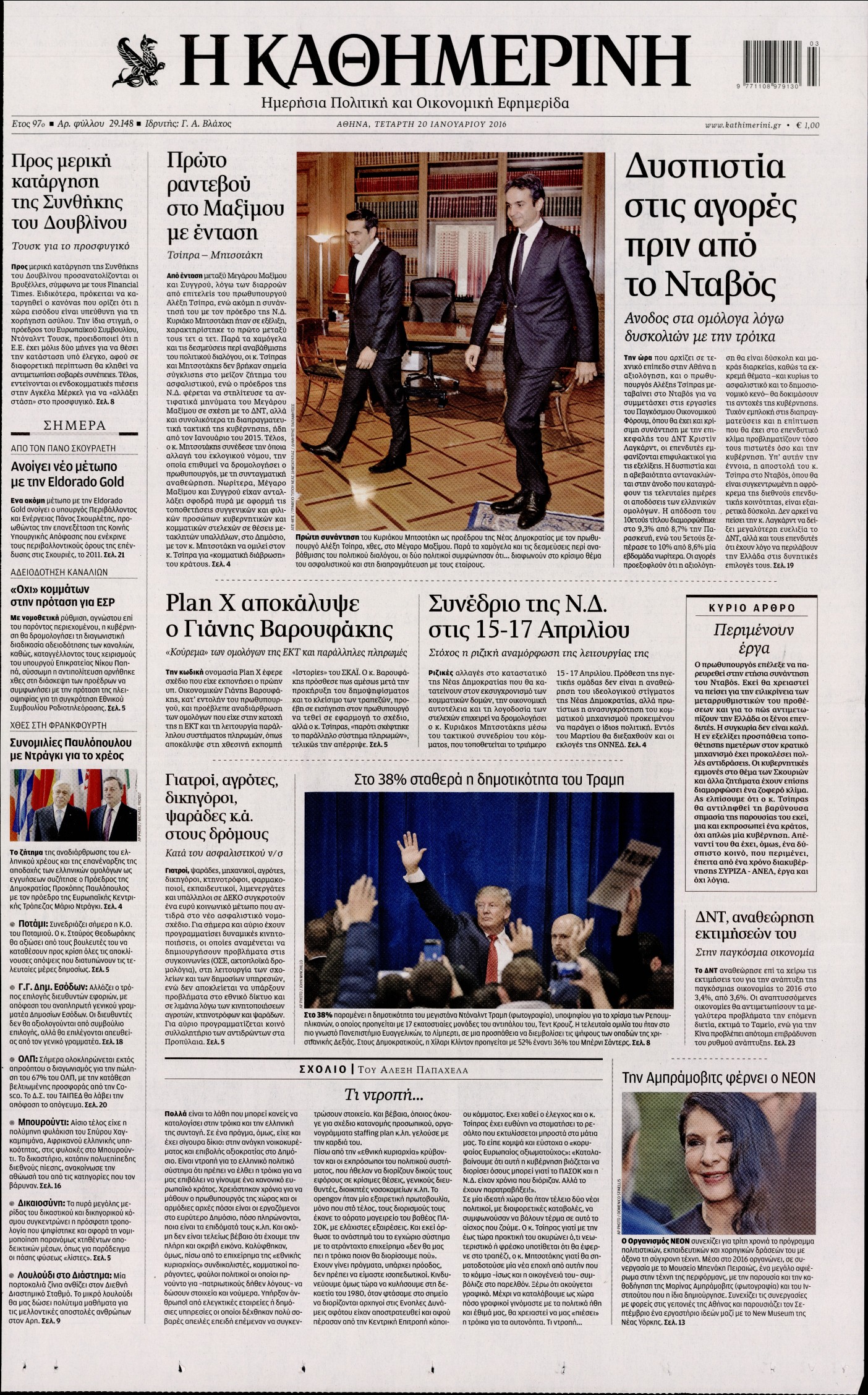 Οι πολιτικές εφημερίδες 20/1/2016 Enikos Newsroom 06:08, Τετάρτη 20 Ιανουαρίου 2016 Media Διαβάστε τα σημερινά πρωτοσέλιδα των πολιτικών εφημερίδων: ΠΟΛΙΤΙΚΕΣ ΕΦΗΜΕΡΙΔΕΣ ΠΡΩΤΟΣΕΛΙΔΑ Μοιράσου το: σχολίασε κι εσύ (0 σχόλια) Ακολουθήστε το enikos.gr στο Google News και μάθετε πρώτοι όλες τις ειδήσεις Δείτε όλες τις τελευταίες ειδήσεις από την Ελλάδα και τον Κόσμο στο enikos.gr Ειδήσεις Ροή Ειδήσεων 4 ώρες πριν Μεσόγειος: Η διαδρομή του ρωσικού τάνκερ «Qendil» και η στοχευμένη επίθεση της Ουκρανίας με drone – Ο Πούτιν προειδοποίησε για αντίποινα 51 λεπτά πριν Αγρότες: Έκλεισαν για μία ώρα την παρακαμπτήρια της Ιόνιας Οδού στη θέση Χαλίκι 2 ώρες πριν Εμπλοκή και αερομαχίες με οπλισμένα τουρκικά F-16 στο Αιγαίο 2 ώρες πριν Πούτιν: «Ναι, είμαι ερωτευμένος» – Βίντεο από τη σπάνια προσωπική παραδοχή του 55 λεπτά πριν Ανδρέας Λυκουρέντζος: Υπέβαλε την παραίτησή του ο πρόεδρος του ΕΛΓΑ, αλλά δεν έγινε δεκτή – Όλο το παρασκήνιο 1 ώρα πριν Αριθμολογία: Οι άνθρωποι που έχουν γεννηθεί αυτές τις 4 ημερομηνίες, συχνά παρεξηγούνται – «Η καλοσύνη τους κρύβει τεράστια δύναμη» 3 ώρες πριν Μήπως έχετε χάσει τον εαυτό σας στη σχέση σας; 7 «αθόρυβες» υποχωρήσεις που μάλλον κάνατε, χωρίς να το συνειδητοποιήσετε 2 ώρες πριν Ξεχάστε το καθάρισμα το Σαββατοκύριακο: Ο «κανόνας των 20 λεπτών» που θα σας λύσει τα χέρια 5 ώρες πριν Κουίζ για την παλιά Αθήνα: Αναγνωρίζετε την περιοχή; Έχετε περάσει 100% από εκεί 5 λεπτά πριν Ύπνος: Μια κρυφή κατάσταση του εγκεφάλου πριν από τον ύπνο μπορεί να είναι το “κλειδί” για υψηλή ευφυΐα και δημιουργικότητα 11 λεπτά πριν ΕΕ: «Κάποια στιγμή θα χρησιμοποιήσουμε τα ρωσικά περιουσιακά στοιχεία» δήλωσε ο πρόεδρος του ΕΛΚ 14 λεπτά πριν Conference League: Καλύτερη επίθεση η ΑΕΚ στη διοργάνωση και 2η σε προσπάθειες στην εστία – Ξεχωρίζουν Πινέδα, Ελίασον και Ρότα 16 λεπτά πριν Έγκυος η Άννα Κορακάκη: «Η οικογένειά μας μεγαλώνει…» – Η αποκάλυψη για το φύλο του μωρού 24 λεπτά πριν Τραγωδία στο Βελεστίνο: Πέθανε ο αντιδήμαρχος Γιάννης Παπαϊωάννου ENIKOS NETWORK Το ΕΚΑΒ τιμήθηκε από την Ακαδημία Αθηνών για τα 40 χρόνια προσφοράς του Έχετε πραγματικά μεγάλη καρδιά; 10 χαρακτηριστικά όσων έχουν καλοσύνη Όμιλος ΔΕΗ: Νέα ορόσημα και ενισχυμένη διαφάνεια στην ετήσια Έκθεση Βιώσιμης Ανάπτυξης Έρχονται νέες προσλήψεις σε Δήμο – Όλες οι λεπτομέρειες Χαρτογραφώντας το «σημείο χωρίς επιστροφή»: Για πρώτη φορά αποκαλύπτεται με λεπτομέρεια το ακανθώδες όριο της ατμόσφαιρας τ... Η Google καταργεί τη λειτουργία «dark web report» – Πώς θα μπορούν οι χρήστες να διαγράφουν τα δεδομένα τους περισσότερα 20:37 , Παρασκευή 19 Δεκεμβρίου 2025 Don’t Forget The Lyrics: Η Έλλη Κοκκίνου υποδέχεται 4 παίκτες που θα κάνουν τα πάντα για να μη χάσουν ούτε… μισή λέξη από τους στίχους Το «Don’t Forget The Lyrics» επιστρέφει απόψε, Παρασκευή 19 Δεκεμβρίου, στις 21:00 με νέο επει... 19:31 , Παρασκευή 19 Δεκεμβρίου 2025 GNTM: Απόψε ο μεγάλος τελικός για τους 4 φιναλίστ Έπειτα από μήνες γεμάτους μόδα, δημιουργία και έντονες αναμετρήσεις, το GNTM 2025 κορυφώνεται,... 18:11 , Παρασκευή 19 Δεκεμβρίου 2025 Το σόι σου: Ο Άρης έρχεται στην Ελλάδα για τις γιορτές των Χριστουγέννων – Τι θα δούμε στο αποψινό εορταστικό επεισόδιο Ένα απολαυστικό, εορταστικό επεισόδιο της σειράς “Το σόι σου”, γεμάτο ευτράπελα αλ... 15:15 , Παρασκευή 19 Δεκεμβρίου 2025 Την Κυριακή με τη Realnews: Ό,τι και αν αγοράσεις, σκανάρεις και κερδίζεις! Την Κυριακή με τη Realnews: Ό,τι και αν αγοράσεις, σκανάρεις και κερδίζεις! Με το PADU app, το... ΤΕΛΕΥΤΑΙ