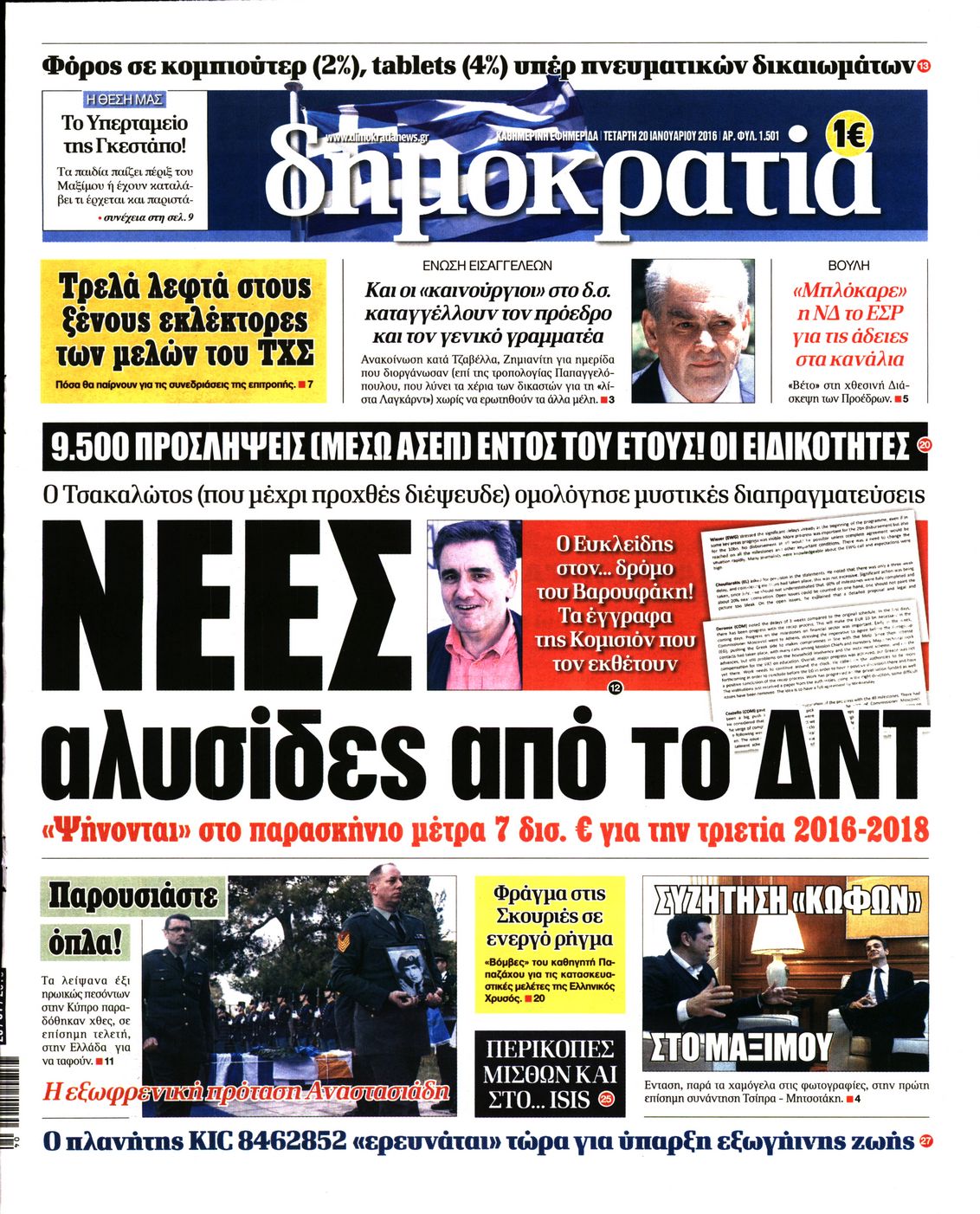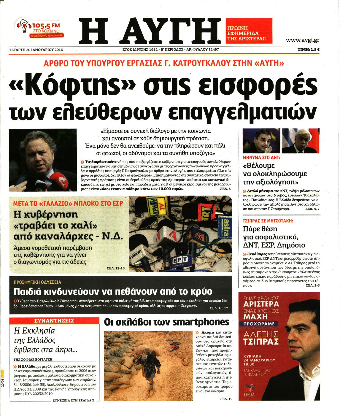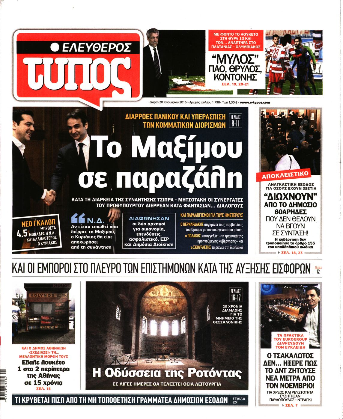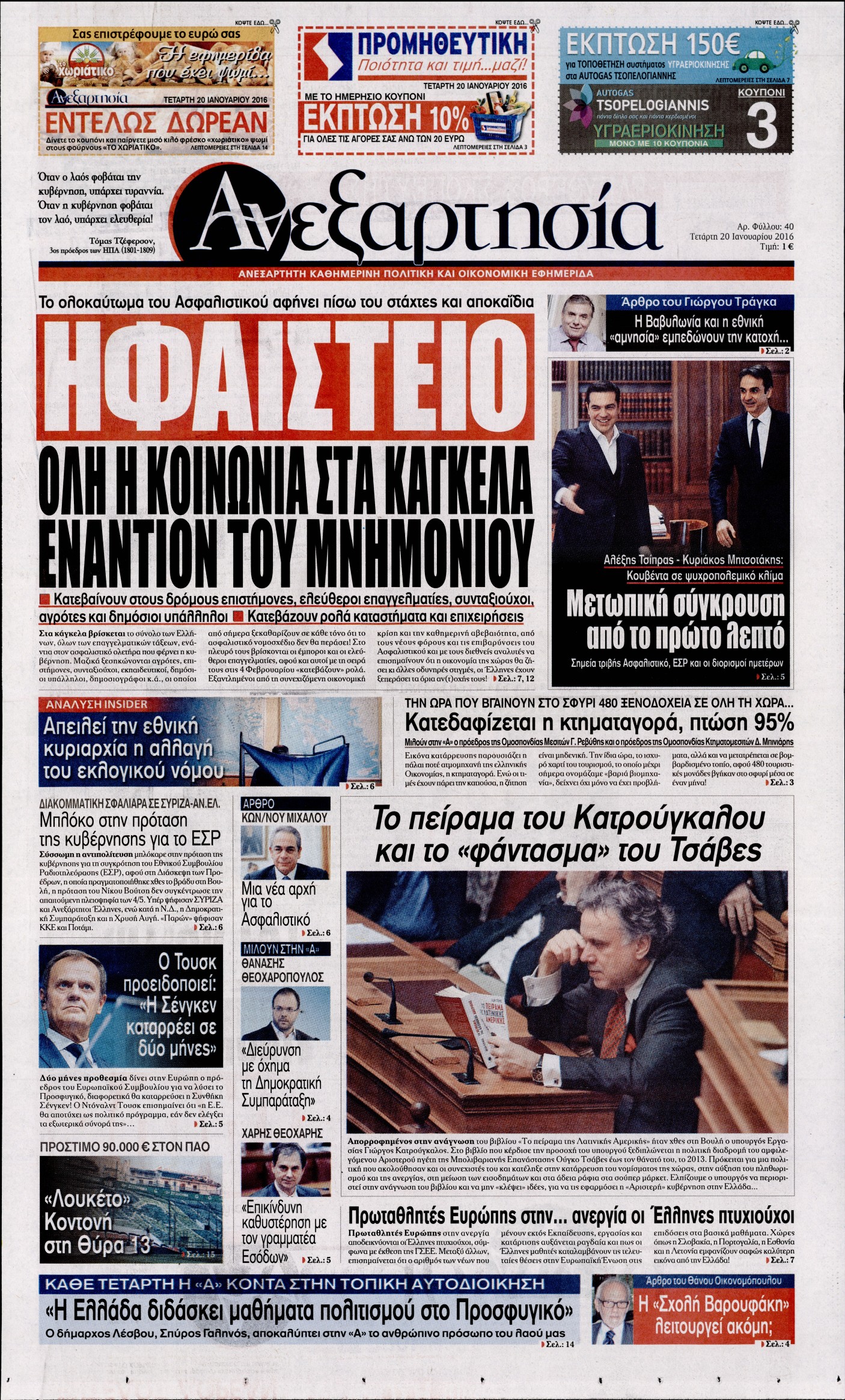 Οι πολιτικές εφημερίδες 20/1/2016 Enikos Newsroom 06:08, Τετάρτη 20 Ιανουαρίου 2016 Media Διαβάστε τα σημερινά πρωτοσέλιδα των πολιτικών εφημερίδων: ΠΟΛΙΤΙΚΕΣ ΕΦΗΜΕΡΙΔΕΣ ΠΡΩΤΟΣΕΛΙΔΑ Μοιράσου το: σχολίασε κι εσύ (0 σχόλια) Ακολουθήστε το enikos.gr στο Google News και μάθετε πρώτοι όλες τις ειδήσεις Δείτε όλες τις τελευταίες ειδήσεις από την Ελλάδα και τον Κόσμο στο enikos.gr Ειδήσεις Ροή Ειδήσεων 4 ώρες πριν Μεσόγειος: Η διαδρομή του ρωσικού τάνκερ «Qendil» και η στοχευμένη επίθεση της Ουκρανίας με drone – Ο Πούτιν προειδοποίησε για αντίποινα 51 λεπτά πριν Αγρότες: Έκλεισαν για μία ώρα την παρακαμπτήρια της Ιόνιας Οδού στη θέση Χαλίκι 2 ώρες πριν Εμπλοκή και αερομαχίες με οπλισμένα τουρκικά F-16 στο Αιγαίο 2 ώρες πριν Πούτιν: «Ναι, είμαι ερωτευμένος» – Βίντεο από τη σπάνια προσωπική παραδοχή του 55 λεπτά πριν Ανδρέας Λυκουρέντζος: Υπέβαλε την παραίτησή του ο πρόεδρος του ΕΛΓΑ, αλλά δεν έγινε δεκτή – Όλο το παρασκήνιο 1 ώρα πριν Αριθμολογία: Οι άνθρωποι που έχουν γεννηθεί αυτές τις 4 ημερομηνίες, συχνά παρεξηγούνται – «Η καλοσύνη τους κρύβει τεράστια δύναμη» 3 ώρες πριν Μήπως έχετε χάσει τον εαυτό σας στη σχέση σας; 7 «αθόρυβες» υποχωρήσεις που μάλλον κάνατε, χωρίς να το συνειδητοποιήσετε 2 ώρες πριν Ξεχάστε το καθάρισμα το Σαββατοκύριακο: Ο «κανόνας των 20 λεπτών» που θα σας λύσει τα χέρια 5 ώρες πριν Κουίζ για την παλιά Αθήνα: Αναγνωρίζετε την περιοχή; Έχετε περάσει 100% από εκεί 5 λεπτά πριν Ύπνος: Μια κρυφή κατάσταση του εγκεφάλου πριν από τον ύπνο μπορεί να είναι το “κλειδί” για υψηλή ευφυΐα και δημιουργικότητα 11 λεπτά πριν ΕΕ: «Κάποια στιγμή θα χρησιμοποιήσουμε τα ρωσικά περιουσιακά στοιχεία» δήλωσε ο πρόεδρος του ΕΛΚ 14 λεπτά πριν Conference League: Καλύτερη επίθεση η ΑΕΚ στη διοργάνωση και 2η σε προσπάθειες στην εστία – Ξεχωρίζουν Πινέδα, Ελίασον και Ρότα 16 λεπτά πριν Έγκυος η Άννα Κορακάκη: «Η οικογένειά μας μεγαλώνει…» – Η αποκάλυψη για το φύλο του μωρού 24 λεπτά πριν Τραγωδία στο Βελεστίνο: Πέθανε ο αντιδήμαρχος Γιάννης Παπαϊωάννου ENIKOS NETWORK Το ΕΚΑΒ τιμήθηκε από την Ακαδημία Αθηνών για τα 40 χρόνια προσφοράς του Έχετε πραγματικά μεγάλη καρδιά; 10 χαρακτηριστικά όσων έχουν καλοσύνη Όμιλος ΔΕΗ: Νέα ορόσημα και ενισχυμένη διαφάνεια στην ετήσια Έκθεση Βιώσιμης Ανάπτυξης Έρχονται νέες προσλήψεις σε Δήμο – Όλες οι λεπτομέρειες Χαρτογραφώντας το «σημείο χωρίς επιστροφή»: Για πρώτη φορά αποκαλύπτεται με λεπτομέρεια το ακανθώδες όριο της ατμόσφαιρας τ... Η Google καταργεί τη λειτουργία «dark web report» – Πώς θα μπορούν οι χρήστες να διαγράφουν τα δεδομένα τους περισσότερα 20:37 , Παρασκευή 19 Δεκεμβρίου 2025 Don’t Forget The Lyrics: Η Έλλη Κοκκίνου υποδέχεται 4 παίκτες που θα κάνουν τα πάντα για να μη χάσουν ούτε… μισή λέξη από τους στίχους Το «Don’t Forget The Lyrics» επιστρέφει απόψε, Παρασκευή 19 Δεκεμβρίου, στις 21:00 με νέο επει... 19:31 , Παρασκευή 19 Δεκεμβρίου 2025 GNTM: Απόψε ο μεγάλος τελικός για τους 4 φιναλίστ Έπειτα από μήνες γεμάτους μόδα, δημιουργία και έντονες αναμετρήσεις, το GNTM 2025 κορυφώνεται,... 18:11 , Παρασκευή 19 Δεκεμβρίου 2025 Το σόι σου: Ο Άρης έρχεται στην Ελλάδα για τις γιορτές των Χριστουγέννων – Τι θα δούμε στο αποψινό εορταστικό επεισόδιο Ένα απολαυστικό, εορταστικό επεισόδιο της σειράς “Το σόι σου”, γεμάτο ευτράπελα αλ... 15:15 , Παρασκευή 19 Δεκεμβρίου 2025 Την Κυριακή με τη Realnews: Ό,τι και αν αγοράσεις, σκανάρεις και κερδίζεις! Την Κυριακή με τη Realnews: Ό,τι και αν αγοράσεις, σκανάρεις και κερδίζεις! Με το PADU app, το... ΤΕΛΕΥΤΑΙ