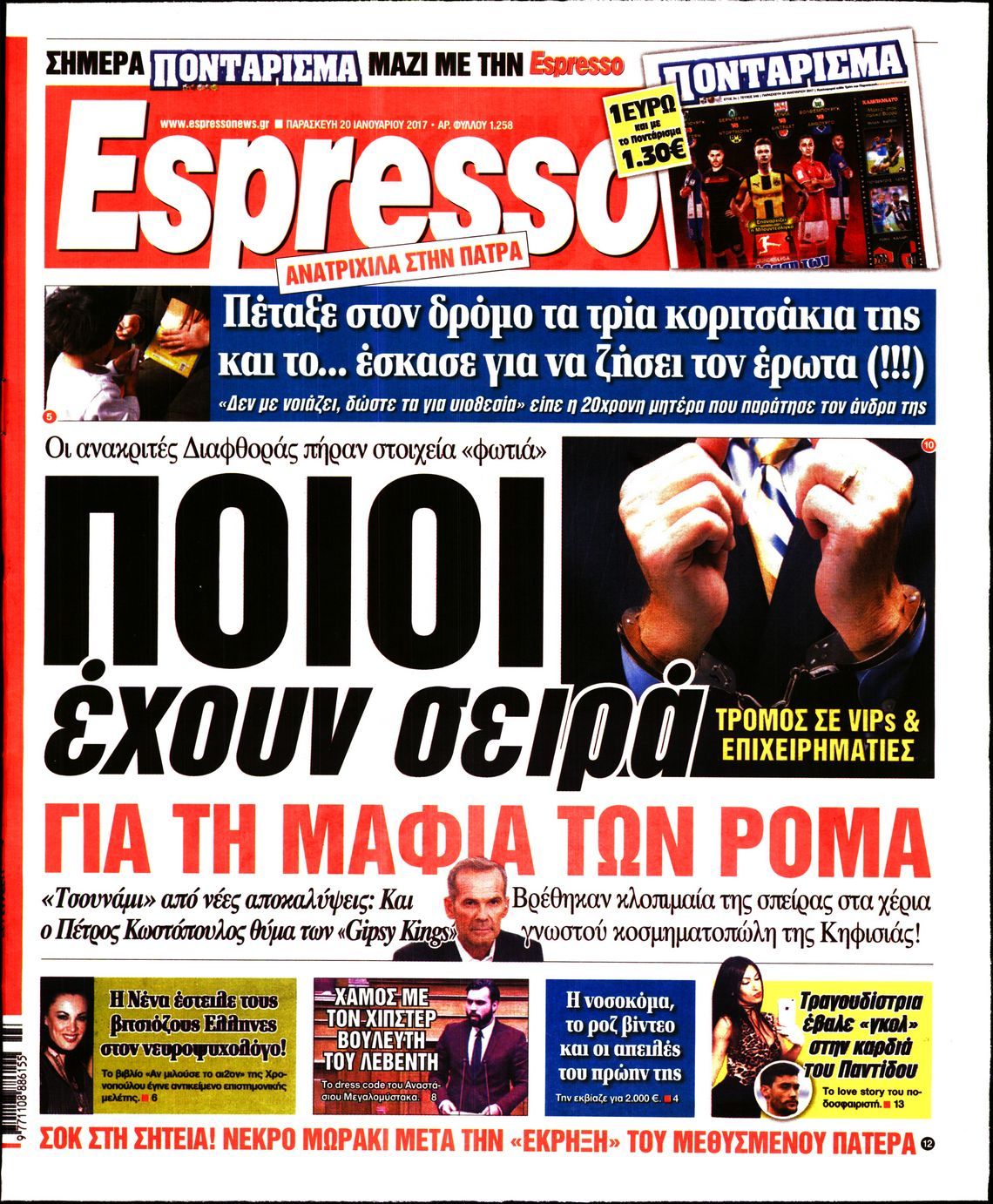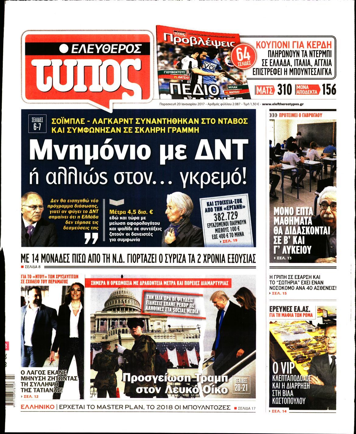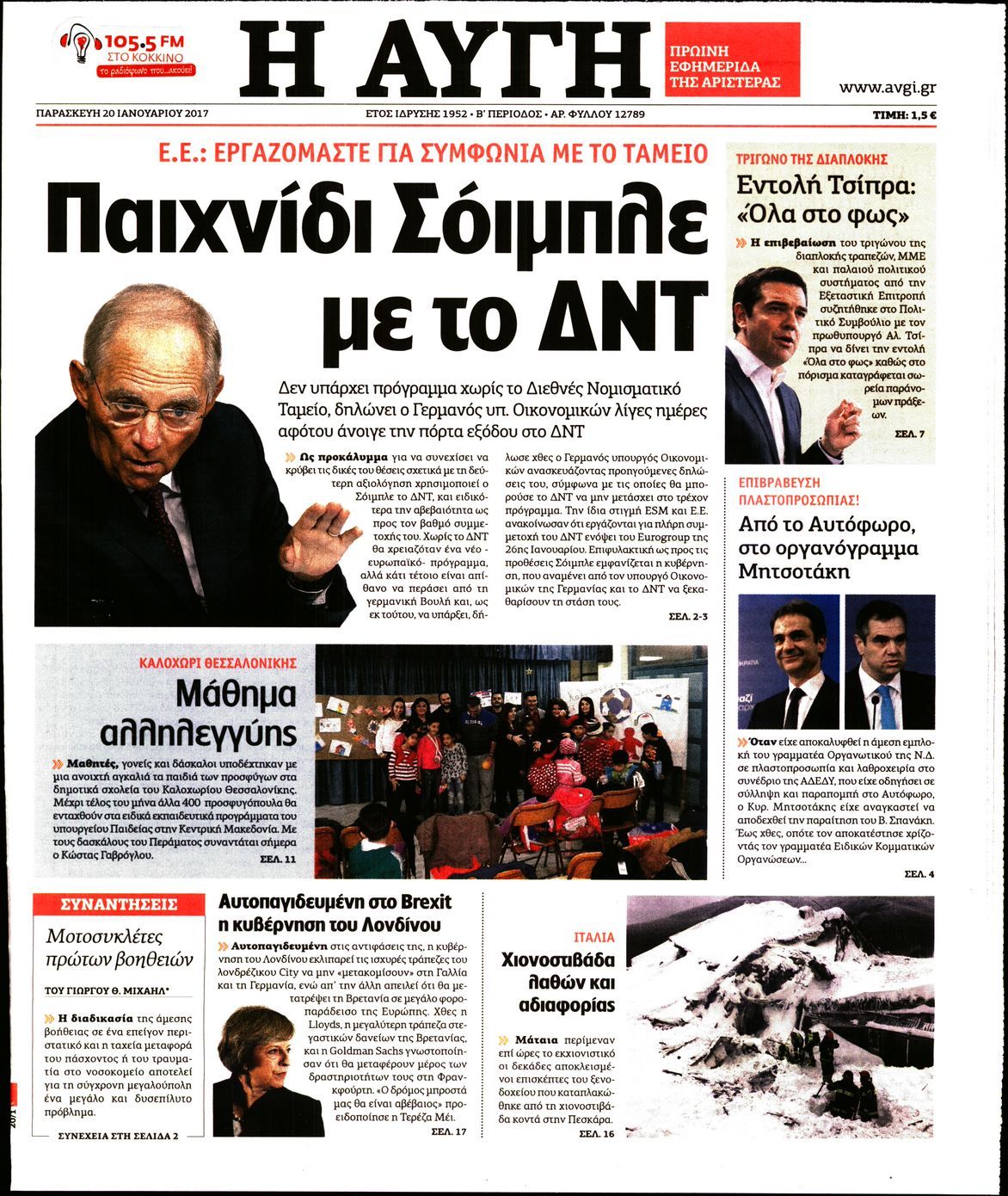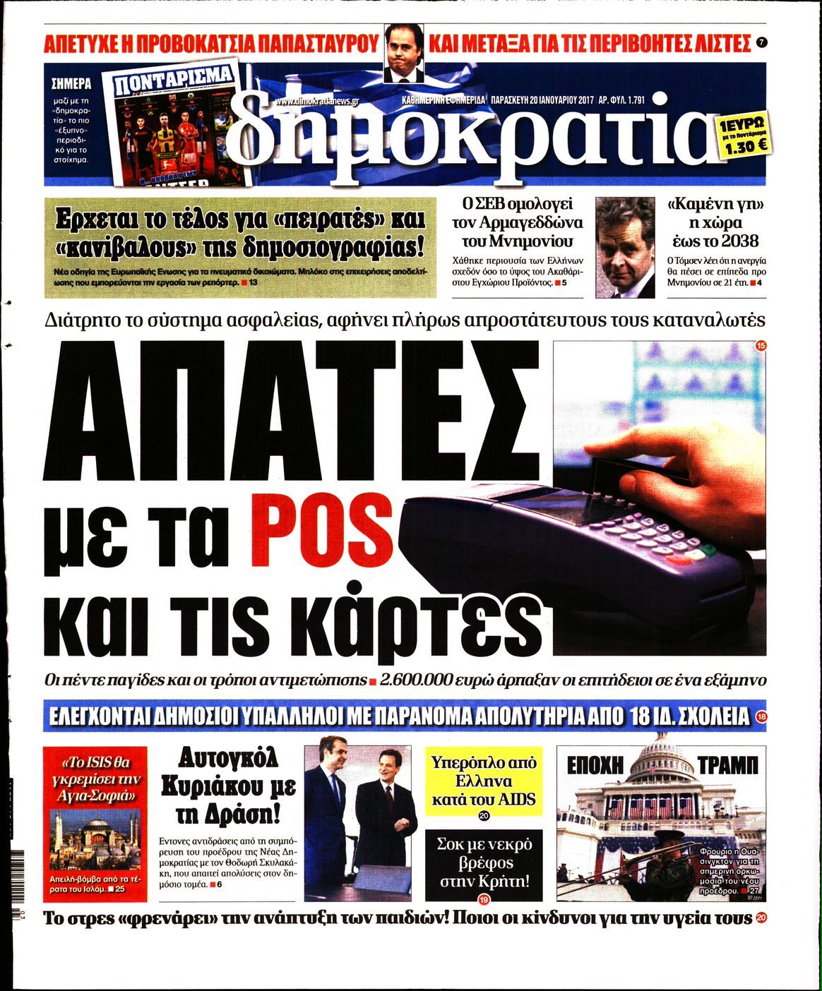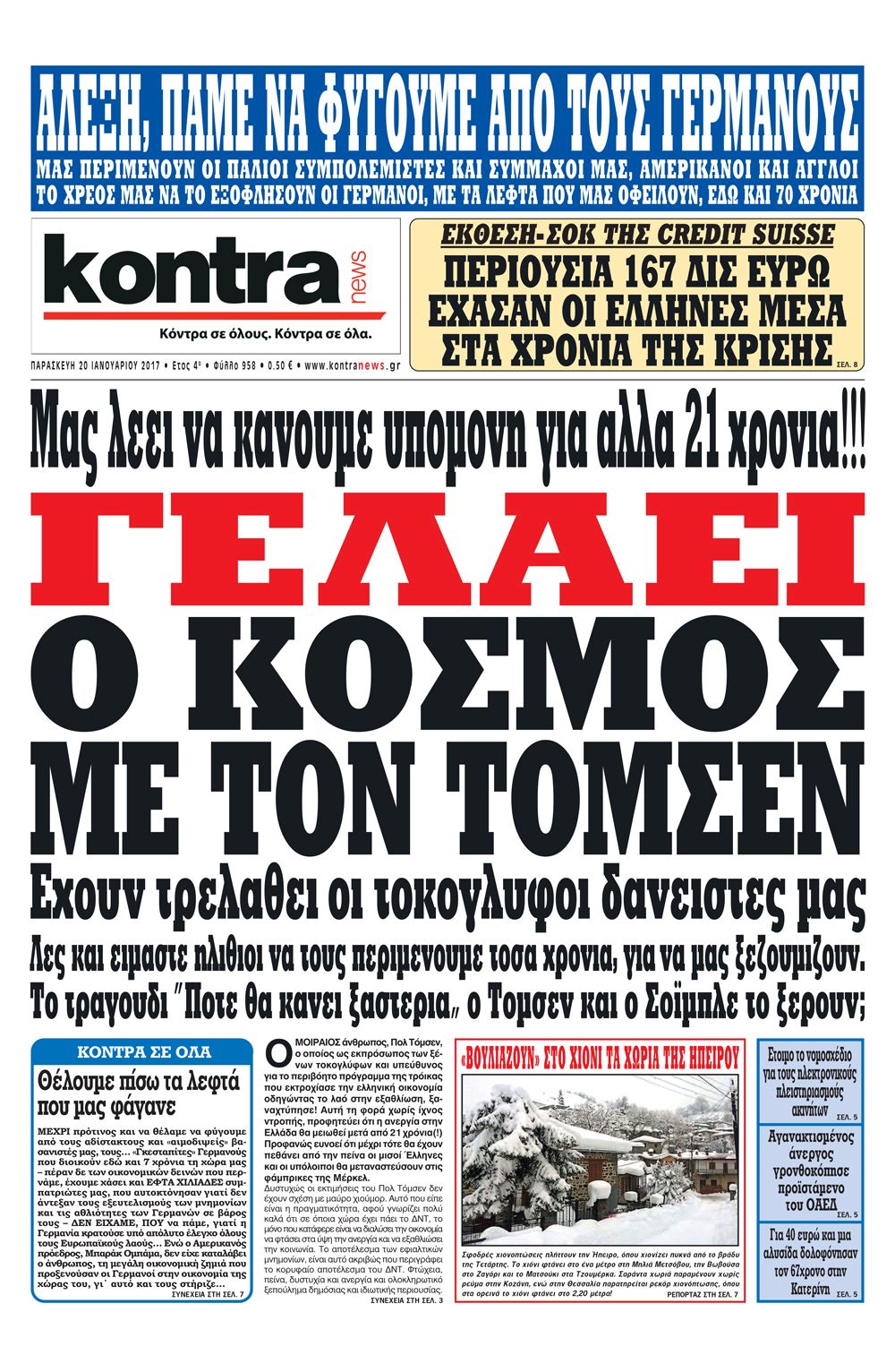 Οι πολιτικές εφημερίδες 20/1/2017 Enikos Newsroom 02:08, Παρασκευή 20 Ιανουαρίου 2017 Media Διαβάστε τα σημερινά πρωτοσέλιδα των πολιτικών εφημερίδων: ΠΟΛΙΤΙΚΕΣ ΕΦΗΜΕΡΙΔΕΣ ΠΡΩΤΟΣΕΛΙΔΑ Μοιράσου το: σχολίασε κι εσύ (0 σχόλια) Ακολουθήστε το enikos.gr στο Google News και μάθετε πρώτοι όλες τις ειδήσεις Δείτε όλες τις τελευταίες ειδήσεις από την Ελλάδα και τον Κόσμο στο enikos.gr Ειδήσεις Ροή Ειδήσεων 5 ώρες πριν Χριστούγεννα στα μπλόκα: Επιμένουν στις κινητοποιήσεις τους οι αγρότες – Ανοίγουν τα διόδια το Σαββατοκύριακο 5 ώρες πριν Ουκρανία: Η άνευ προηγουμένου επίθεση σε ρωσικό τάνκερ στη Μεσόγειο και το μήνυμα προς στον Πούτιν – Το «μακρύ χέρι» του Κιέβου 4 ώρες πριν Πούτιν: Τα μηνύματα σε Ευρώπη και ΝΑΤΟ από το μαραθώνιο «σόου» του – Η απαίτηση για «σεβασμό» και η ειρήνη «με τους όρους» της Μόσχας 5 ώρες πριν Τραμπ: Δεν αποκλείει την πιθανότητα ενός πολέμου στη Βενεζουέλα – «Ο Μαδούρο ξέρει καλύτερα από τον καθένα τι ακριβώς θέλω» 6 ώρες πριν Συνεχίζει να προκαλεί ο Μίτσκοσκι: «Για μένα το όνομα Μακεδονία είναι ιερό» 4 ώρες πριν Ανακαλύφθηκαν αρχαία χρυσά νομίσματα 2.200 ετών που απεικονίζουν τον θεό Απόλλωνα – Η άγνωστη σύνδεση με τον Φίλιππο Β΄ της Μακεδονίας 5 ώρες πριν Ύπνος: Μια κρυφή κατάσταση του εγκεφάλου πριν από τον ύπνο μπορεί να είναι το “κλειδί” για υψηλή ευφυΐα και δημιουργικότητα 6 ώρες πριν Αριθμολογία: Οι άνθρωποι που έχουν γεννηθεί αυτές τις 4 ημερομηνίες, συχνά παρεξηγούνται – «Η καλοσύνη τους κρύβει τεράστια δύναμη» 7 ώρες πριν Ξεχάστε το καθάρισμα το Σαββατοκύριακο: Ο «κανόνας των 20 λεπτών» που θα σας λύσει τα χέρια 16 λεπτά πριν Η Ελλάδα προσχωρεί στη Διεθνή Επιτροπή Αποζημιώσεων για την Ουκρανία 30 λεπτά πριν GNTM: Η Ξένια Τσίρκοβα αναδείχθηκε μεγάλη νικήτρια και πήρε τις 50.000 ευρώ – Ποιος βρέθηκε σε απόσταση αναπνοής; 45 λεπτά πριν Θεσσαλονίκη: Εξαφανίστηκε 13χρονος από χώρο φιλοξενίας ασυνόδευτων ανηλίκων στο Ωραιόκαστρο 56 λεπτά πριν Ντόναλντ Τραμπ: «Πολύ βαριά αντίποινα» στη Συρία – «Πλήττουμε πολύ δυνατά οχυρά του Ισλαμικού Κράτους» 1 ώρα πριν Εξάρχεια: Ένταση με μολότοφ, χημικά και κρότου λάμψης ENIKOS NETWORK Το ΕΚΑΒ τιμήθηκε από την Ακαδημία Αθηνών για τα 40 χρόνια προσφοράς του Έχετε πραγματικά μεγάλη καρδιά; 10 χαρακτηριστικά όσων έχουν καλοσύνη Αναστολή μέτρων αναγκαστικής εκτέλεσης για κτηνοτρόφους που πλήττονται από την ευλογιά των αιγοπροβάτων Πλήρης επάρκεια προϊόντων στις λαϊκές της Αττικής, παρά τις αγροτικές κινητοποιήσεις – Τι απαντούν οι πωλητές Χαρτογραφώντας το «σημείο χωρίς επιστροφή»: Για πρώτη φορά αποκαλύπτεται με λεπτομέρεια το ακανθώδες όριο της ατμόσφαιρας τ... Η Google καταργεί τη λειτουργία «dark web report» – Πώς θα μπορούν οι χρήστες να διαγράφουν τα δεδομένα τους περισσότερα 02:50 , Σάββατο 20 Δεκεμβρίου 2025 GNTM: Η Ξένια Τσίρκοβα αναδείχθηκε μεγάλη νικήτρια και πήρε τις 50.000 ευρώ – Ποιος βρέθηκε σε απόσταση αναπνοής; Με φαντασμαγορικό τρόπο ολοκληρώθηκε το βράδυ της Παρασκευής ο μεγάλος τελικός του GNTM, μέσα ... 22:42 , Παρασκευή 19 Δεκεμβρίου 2025 Γιώργος Γιαννόπουλος για “Το σόι σου”: “Είναι ευτυχία και ευλογία αυτή η σειρά” «Είναι ευτυχία και ευλογία η συγκυρία αυτής της σειράς», θα πει ο Γιώργος Γιαννόπουλος -ο αγαπ... 20:37 , Παρασκευή 19 Δεκεμβρίου 2025 Don’t Forget The Lyrics: Η Έλλη Κοκκίνου υποδέχεται 4 παίκτες που θα κάνουν τα πάντα για να μη χάσουν ούτε… μισή λέξη από τους στίχους Το «Don’t Forget The Lyrics» επιστρέφει απόψε, Παρασκευή 19 Δεκεμβρίου, στις 21:0