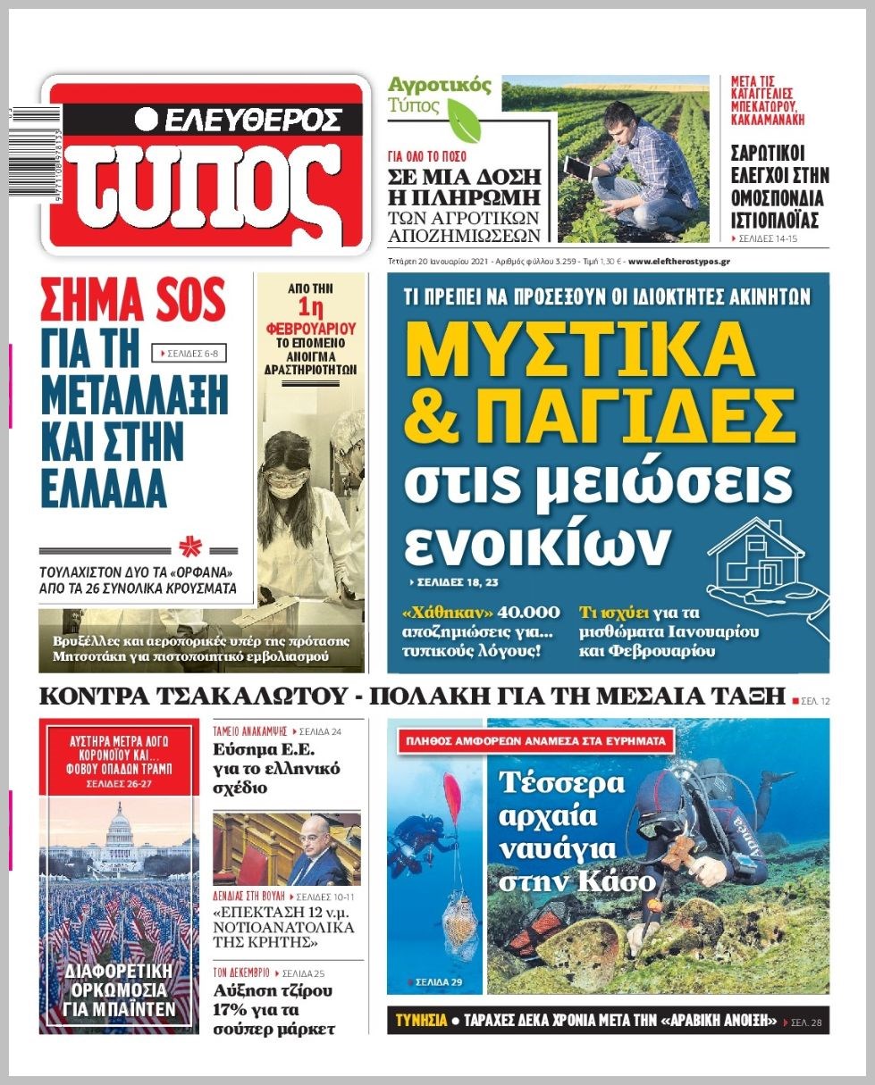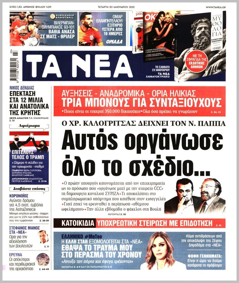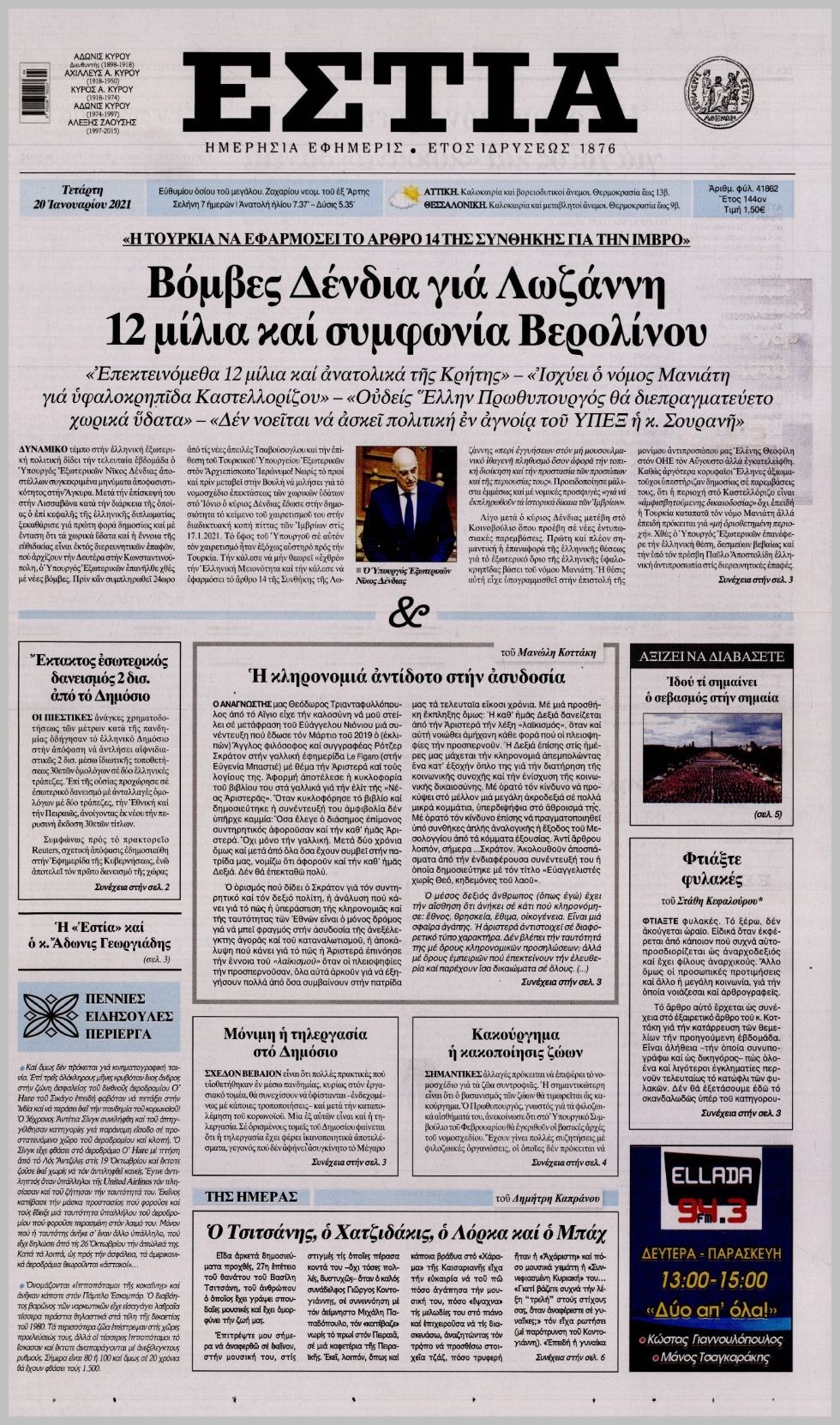Οι πολιτικές εφημερίδες 20/1/2021 Διονύσης Νίκκας 06:08, Τετάρτη 20 Ιανουαρίου 2021 Media Διαβάστε τα πρωτοσέλιδα των πολιτικών εφημερίδων… ΕΦΗΜΕΡΙΔΕΣ ΠΟΛΙΤΙΚΕΣ ΕΦΗΜΕΡΙΔΕΣ ΠΡΩΤΟΣΕΛΙΔΑ Μοιράσου το: σχολίασε κι εσύ (0 σχόλια) Ακολουθήστε το enikos.gr στο Google News και μάθετε πρώτοι όλες τις ειδήσεις Δείτε όλες τις τελευταίες ειδήσεις από την Ελλάδα και τον Κόσμο στο enikos.gr Ειδήσεις Ροή Ειδήσεων 4 ώρες πριν Από το Ορμένιο ως τα Μάλγαρα κι από τη Σιάτιστα μέχρι τη Νίκαια: Μπλόκα σε όλη την Ελλάδα – Το Σάββατο ανοίγουν τα διόδια οι αγρότες 2 ώρες πριν Εμπλοκή και αερομαχίες με οπλισμένα τουρκικά F-16 στο Αιγαίο 3 ώρες πριν Αττική: Θρίλερ με νεκρό βρέφος 5 μηνών – Κοιμόταν στο ίδιο κρεβάτι με τους γονείς του 1 ώρα πριν Πούτιν: «Ναι, είμαι ερωτευμένος» – Βίντεο από τη σπάνια προσωπική παραδοχή του 3 ώρες πριν Μεσόγειος: Η διαδρομή του ρωσικού τάνκερ «Qendil» και η στοχευμένη επίθεση της Ουκρανίας με drone – Ο Πούτιν προειδοποίησε για αντίποινα 5 ώρες πριν Τα 5 ζώδια που ευνοούνται στην ερωτική ζωή τους την επόμενη εβδομάδα – «Η ενέργεια του Αιγόκερου φέρνει αγάπη και σταθερότητα» 6 ώρες πριν Αυτό το έξυπνο μαθηματικό κόλπο θα μπορούσε να αλλάξει τον τρόπο με τον οποίο οι επιστήμονες μελετούν τους σεισμούς 2 ώρες πριν Μήπως έχετε χάσει τον εαυτό σας στη σχέση σας; 7 «αθόρυβες» υποχωρήσεις που μάλλον κάνατε, χωρίς να το συνειδητοποιήσετε 4 ώρες πριν Κουίζ για την παλιά Αθήνα: Αναγνωρίζετε την περιοχή; Έχετε περάσει 100% από εκεί 3 λεπτά πριν Ανδρέας Λυκουρέντζος: Υπέβαλε την παραίτησή του ο πρόεδρος του ΕΛΓΑ – Δεν έγινε δεκτή από την κυβέρνηση – ΒΙΝΤΕΟ 8 λεπτά πριν Ηράκλειο: «Ιπτάμενοι» Άγιοι Βασίληδες μοίρασαν δώρα και χαμόγελα στα παιδιά στο ΠΑΓΝΗ – Δείτε βίντεο 13 λεπτά πριν Αριθμολογία: Οι άνθρωποι που έχουν γεννηθεί αυτές τις 4 ημερομηνίες, συχνά παρεξηγούνται – «Η καλοσύνη τους κρύβει τεράστια δύναμη» 20 λεπτά πριν Ρύθμιση του ΥΠΑΑΤ για τους αγρότες που δεν έλαβαν τη βασική ενίσχυση λόγω εκκρεμοτήτων στο Κτηματολόγιο 32 λεπτά πριν Μπαράκ Ομπάμα: Τα βιβλία, οι ταινίες και τα τραγούδια που ξεχώρισε το 2025 – Πλήρης λίστα ENIKOS NETWORK Το ΕΚΑΒ τιμήθηκε από την Ακαδημία Αθηνών για τα 40 χρόνια προσφοράς του Έχετε πραγματικά μεγάλη καρδιά; 10 χαρακτηριστικά όσων έχουν καλοσύνη Έρχονται νέες προσλήψεις σε Δήμο – Όλες οι λεπτομέρειες Επίδομα παιδιού: Πότε ανοίγει ξανά η πλατφόρμα για τις αιτήσεις Χαρτογραφώντας το «σημείο χωρίς επιστροφή»: Για πρώτη φορά αποκαλύπτεται με λεπτομέρεια το ακανθώδες όριο της ατμόσφαιρας τ... Η Google καταργεί τη λειτουργία «dark web report» – Πώς θα μπορούν οι χρήστες να διαγράφουν τα δεδομένα τους περισσότερα 20:37 , Παρασκευή 19 Δεκεμβρίου 2025 Don’t Forget The Lyrics: Η Έλλη Κοκκίνου υποδέχεται 4 παίκτες που θα κάνουν τα πάντα για να μη χάσουν ούτε… μισή λέξη από τους στίχους Το «Don’t Forget The Lyrics» επιστρέφει απόψε, Παρασκευή 19 Δεκεμβρίου, στις 21:00 με νέο επει... 19:31 , Παρασκευή 19 Δεκεμβρίου 2025 GNTM: Απόψε ο μεγάλος τελικός για τους 4 φιναλίστ Έπειτα από μήνες γεμάτους μόδα, δημιουργία και έντονες αναμετρήσεις, το GNTM 2025 κορυφώνεται,... 18:11 , Παρασκευή 19 Δεκεμβρίου 2025 Το σόι σου: Ο Άρης έρχεται στην Ελλάδα για τις γιορτές των Χριστουγέννων – Τι θα δούμε στο αποψινό εορταστικό επεισόδιο Ένα απολαυστικό, εορταστικό επεισόδιο της σειράς “Το σόι σου”, γεμάτο ευτράπελα αλ... 15:15 , Παρασκευή 19 Δεκεμβρίου 2025 Την Κυριακή με τη Realnews: Ό,τι και αν αγοράσεις, σκανάρεις και κερδίζεις! Την Κυριακή με τη Realnews: 