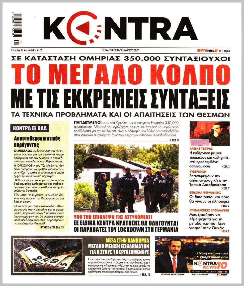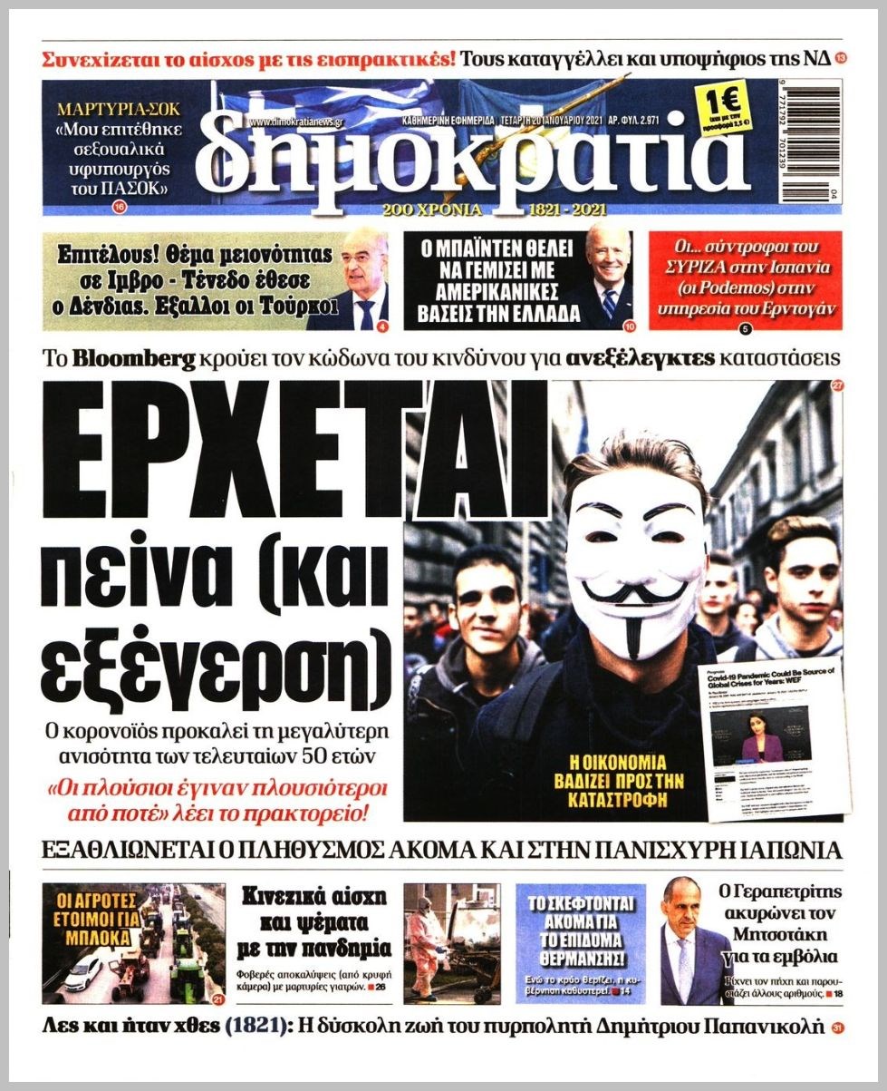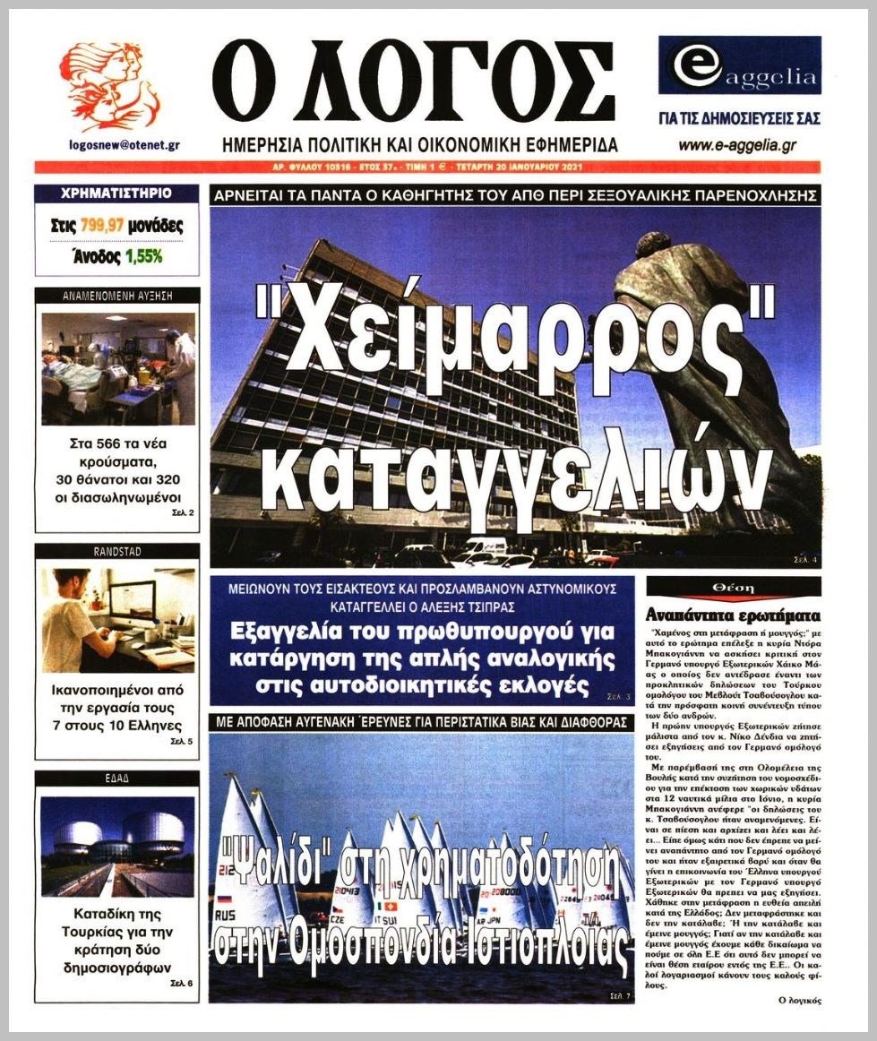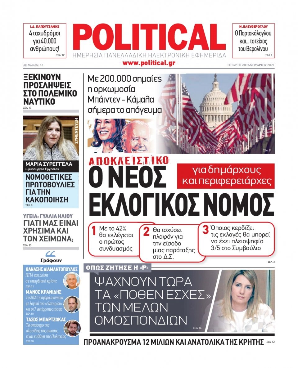 Οι πολιτικές εφημερίδες 20/1/2021 Διονύσης Νίκκας 06:08, Τετάρτη 20 Ιανουαρίου 2021 Media Διαβάστε τα πρωτοσέλιδα των πολιτικών εφημερίδων… ΕΦΗΜΕΡΙΔΕΣ ΠΟΛΙΤΙΚΕΣ ΕΦΗΜΕΡΙΔΕΣ ΠΡΩΤΟΣΕΛΙΔΑ Μοιράσου το: σχολίασε κι εσύ (0 σχόλια) Ακολουθήστε το enikos.gr στο Google News και μάθετε πρώτοι όλες τις ειδήσεις Δείτε όλες τις τελευταίες ειδήσεις από την Ελλάδα και τον Κόσμο στο enikos.gr Ειδήσεις Ροή Ειδήσεων 4 ώρες πριν Από το Ορμένιο ως τα Μάλγαρα κι από τη Σιάτιστα μέχρι τη Νίκαια: Μπλόκα σε όλη την Ελλάδα – Το Σάββατο ανοίγουν τα διόδια οι αγρότες 2 ώρες πριν Εμπλοκή και αερομαχίες με οπλισμένα τουρκικά F-16 στο Αιγαίο 3 ώρες πριν Αττική: Θρίλερ με νεκρό βρέφος 5 μηνών – Κοιμόταν στο ίδιο κρεβάτι με τους γονείς του 1 ώρα πριν Πούτιν: «Ναι, είμαι ερωτευμένος» – Βίντεο από τη σπάνια προσωπική παραδοχή του 3 ώρες πριν Μεσόγειος: Η διαδρομή του ρωσικού τάνκερ «Qendil» και η στοχευμένη επίθεση της Ουκρανίας με drone – Ο Πούτιν προειδοποίησε για αντίποινα 5 ώρες πριν Τα 5 ζώδια που ευνοούνται στην ερωτική ζωή τους την επόμενη εβδομάδα – «Η ενέργεια του Αιγόκερου φέρνει αγάπη και σταθερότητα» 6 ώρες πριν Αυτό το έξυπνο μαθηματικό κόλπο θα μπορούσε να αλλάξει τον τρόπο με τον οποίο οι επιστήμονες μελετούν τους σεισμούς 2 ώρες πριν Μήπως έχετε χάσει τον εαυτό σας στη σχέση σας; 7 «αθόρυβες» υποχωρήσεις που μάλλον κάνατε, χωρίς να το συνειδητοποιήσετε 4 ώρες πριν Κουίζ για την παλιά Αθήνα: Αναγνωρίζετε την περιοχή; Έχετε περάσει 100% από εκεί 3 λεπτά πριν Ανδρέας Λυκουρέντζος: Υπέβαλε την παραίτησή του ο πρόεδρος του ΕΛΓΑ – Δεν έγινε δεκτή από την κυβέρνηση – ΒΙΝΤΕΟ 8 λεπτά πριν Ηράκλειο: «Ιπτάμενοι» Άγιοι Βασίληδες μοίρασαν δώρα και χαμόγελα στα παιδιά στο ΠΑΓΝΗ – Δείτε βίντεο 13 λεπτά πριν Αριθμολογία: Οι άνθρωποι που έχουν γεννηθεί αυτές τις 4 ημερομηνίες, συχνά παρεξηγούνται – «Η καλοσύνη τους κρύβει τεράστια δύναμη» 20 λεπτά πριν Ρύθμιση του ΥΠΑΑΤ για τους αγρότες που δεν έλαβαν τη βασική ενίσχυση λόγω εκκρεμοτήτων στο Κτηματολόγιο 32 λεπτά πριν Μπαράκ Ομπάμα: Τα βιβλία, οι ταινίες και τα τραγούδια που ξεχώρισε το 2025 – Πλήρης λίστα ENIKOS NETWORK Το ΕΚΑΒ τιμήθηκε από την Ακαδημία Αθηνών για τα 40 χρόνια προσφοράς του Έχετε πραγματικά μεγάλη καρδιά; 10 χαρακτηριστικά όσων έχουν καλοσύνη Έρχονται νέες προσλήψεις σε Δήμο – Όλες οι λεπτομέρειες Επίδομα παιδιού: Πότε ανοίγει ξανά η πλατφόρμα για τις αιτήσεις Χαρτογραφώντας το «σημείο χωρίς επιστροφή»: Για πρώτη φορά αποκαλύπτεται με λεπτομέρεια το ακανθώδες όριο της ατμόσφαιρας τ... Η Google καταργεί τη λειτουργία «dark web report» – Πώς θα μπορούν οι χρήστες να διαγράφουν τα δεδομένα τους περισσότερα 20:37 , Παρασκευή 19 Δεκεμβρίου 2025 Don’t Forget The Lyrics: Η Έλλη Κοκκίνου υποδέχεται 4 παίκτες που θα κάνουν τα πάντα για να μη χάσουν ούτε… μισή λέξη από τους στίχους Το «Don’t Forget The Lyrics» επιστρέφει απόψε, Παρασκευή 19 Δεκεμβρίου, στις 21:00 με νέο επει... 19:31 , Παρασκευή 19 Δεκεμβρίου 2025 GNTM: Απόψε ο μεγάλος τελικός για τους 4 φιναλίστ Έπειτα από μήνες γεμάτους μόδα, δημιουργία και έντονες αναμετρήσεις, το GNTM 2025 κορυφώνεται,... 18:11 , Παρασκευή 19 Δεκεμβρίου 2025 Το σόι σου: Ο Άρης έρχεται στην Ελλάδα για τις γιορτές των Χριστουγέννων – Τι θα δούμε στο αποψινό εορταστικό επεισόδιο Ένα απολαυστικό, εορταστικό επεισόδιο της σειράς “Το σόι σου”, γεμάτο ευτράπελα αλ... 15:15 , Παρασκευή 19 Δεκεμβρίου 2025 Την Κυριακή με τη Realnews: Ό,τι και αν αγοράσεις, σκανάρεις και κερδίζεις! Την Κυριακή με τη Realnews: 