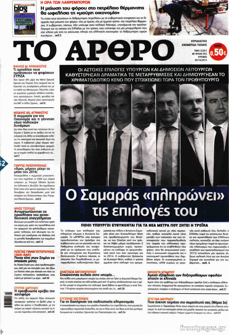 Oι πολιτικές εφημερίδες Enikos Newsroom 08:14, Κυριακή 20 Οκτωβρίου 2013 Media Oι πολιτικές εφημερίδες Δείτε τα πρωτοσέλιδα των κυριακάτικων εφημερίδων… ΚΥΡΙΑΚΑΤΙΚΕΣ ΕΦΗΜΕΡΙΔΕΣ ΠΡΩΤΟΣΕΛΙΔΑ Μοιράσου το: σχολίασε κι εσύ (0 σχόλια) Ακολουθήστε το enikos.gr στο Google News και μάθετε πρώτοι όλες τις ειδήσεις Δείτε όλες τις τελευταίες ειδήσεις από την Ελλάδα και τον Κόσμο στο enikos.gr Ειδήσεις Ροή Ειδήσεων 1 ώρα πριν Αγρότες: Έδωσαν στη δημοσιότητα τη λίστα με τα αιτήματά τους – Δείτε αναλυτικά τι ζητούν 1 ώρα πριν Σίδνεϊ: Οι φωτογραφίες των δύο δραστών της τρομοκρατικής επίθεσης – Έφοδος της αστυνομίας στο σπίτι του ενός 3 ώρες πριν ΟΠΕΚΕΠΕ-Κρήτη: Προθεσμία να απολογηθούν από την Τρίτη έως την Πέμπτη έλαβαν οι 16 συλληφθέντες 36 λεπτά πριν Θεσσαλονίκη: «Δεν έκανα κάτι παράνομο» είπε ο οδηγός του λεωφορείου – Αφέθηκε ελεύθερος, προκαταρκτική έρευνα διέταξε η εισαγγελέας 2 ώρες πριν Guardian: «Μύρισαν χρήμα και έσπευσαν» – Ο ανταγωνισμός αμερικανικών εταιρειών για να πλουτίσουν από την κατεστραμμένη Γάζα 3 ώρες πριν Τα 5 ζώδια που ευνοούνται στα ερωτικά τους έως τις 21 Δεκεμβρίου – «Η επόμενη σχέση σας θα είναι καθοριστική» 4 ώρες πριν Γεωλογική αποκάλυψη: Επιστήμονες εξηγούν πώς η Ιβηρική Χερσόνησος περιστρέφεται σαν… ρολόι 7 ώρες πριν Προπονήτρια ευεξίας που έχασε 24 κιλά αποκαλύπτει: «Αυτά είναι τα 6 ανησυχητικά σημάδια της υψηλής κορτιζόλης» 8 ώρες πριν Τα 8 πράγματα που τα ευτυχισμένα ζευγάρια δεν κάνουν ποτέ μπροστά στα παιδιά τους 7 λεπτά πριν Τραγική εξέλιξη στο Αίγιο: Πέθανε ο 43χρονος που γρονθοκόπησε γιατρό στο νοσοκομείο 12 λεπτά πριν Διεθνής κατακραυγή για την τρομοκρατική επίθεση στο Σίδνεϊ – «Αποτροπιασμένοι» Κάρολος και Καμίλα 20 λεπτά πριν Κωνσταντοπούλου από το μπλόκο της Νίκαιας: Οι αγρότες πήραν μια αξιοπρεπή απόφαση, ο αγώνας θα είναι νικηφόρος 27 λεπτά πριν Τροχαίο για τον Άρη Μουγκοπέτρο: «Για ακόμη μια φορά είχα Άγιο…» – Η ανάρτηση του μουσικού στο Instagram 36 λεπτά πριν Θεσσαλονίκη: «Δεν έκανα κάτι παράνομο» είπε ο οδηγός του λεωφορείου – Αφέθηκε ελεύθερος, προκαταρκτική έρευνα διέταξε η εισαγγελέας ENIKOS NETWORK 8 κορυφαίες συμβουλές για άνδρες που θέλουν φλογερή σεξουαλική ζωή, σύμφωνα με ειδικό Baby botox: Ποια τα οφέλη και οι κίνδυνοι του να ξεκινήσει κάποιος τις ενέσεις πριν εμφανιστούν ρυτίδες Πορτοκαλί τιμολόγια ρεύματος: Πότε θα αρχίσει η εφαρμογή τους – Τι ισχύει για νοικοκυριά και επιχειρήσεις – Παραδείγματα Μετρό: Ποιες περιοχές μπαίνουν πρώτες στον χάρτη των νέων επεκτάσεων – Νέοι σταθμοί σε Γλυφάδα, Ίλιον και Μαρούσι Σύγχρονος Νοστράδαμος: Προειδοποιεί για «μεγάλο γεγονός» τους επόμενους μήνες που θα συγκλονίσει τη Βρετανία και τον κόσμο Τεστ παρατηρητικότητας: Μπορείτε να βρείτε τις 3 διαφορές στις εικόνες με έναν πιγκουίνο σε 14 δευτερόλεπτα περισσότερα 17:38 , Κυριακή 14 Δεκεμβρίου 2025 Τηλεθέαση (13/12): Τα ποσοστά για το βράδυ του Σαββάτου Η «μάχη» της prime time για την τηλεθέαση, συνεχίστηκε δυναμικά το βράδυ του Σαββάτου (13/12).... 16:32 , Κυριακή 14 Δεκεμβρίου 2025 Τηλεθέαση (13/12): Πώς κινήθηκαν οι εκπομπές στην πρωινή ζώνη το Σάββατο Με αμείωτη ένταση συνεχίστηκε η μάχη για την τηλεθέαση στην πρωινή ζώνη των τηλεοπτικών καναλι... 15:07 , Κυριακή 14 Δεκεμβρίου 2025 IQ160: Η Μαρίνα στέλνει το φούτερ του Τηλέμαχου για το τεστ πατρότητας Η Πηνελόπη αποφασίζει να κάνει αμνιοπαρακέντηση, για να βεβαιωθεί για την υγεία του μωρού της ... 12:46 , Κυριακή 14 Δεκεμβρίου 2025 Η Realnews στο www