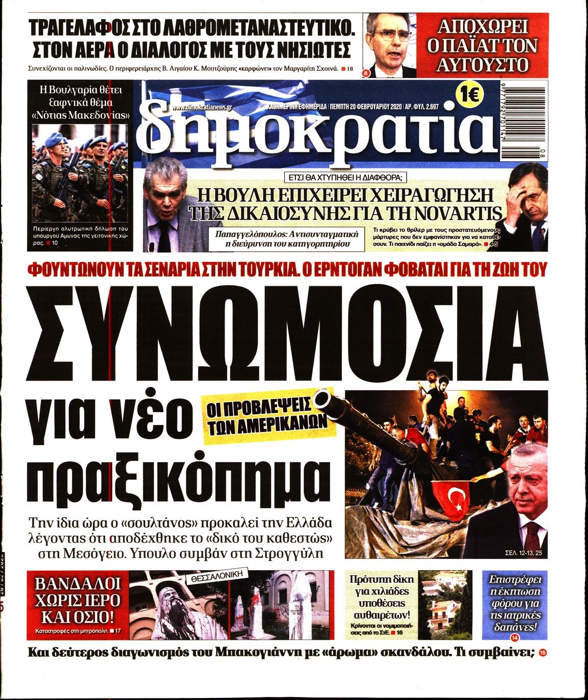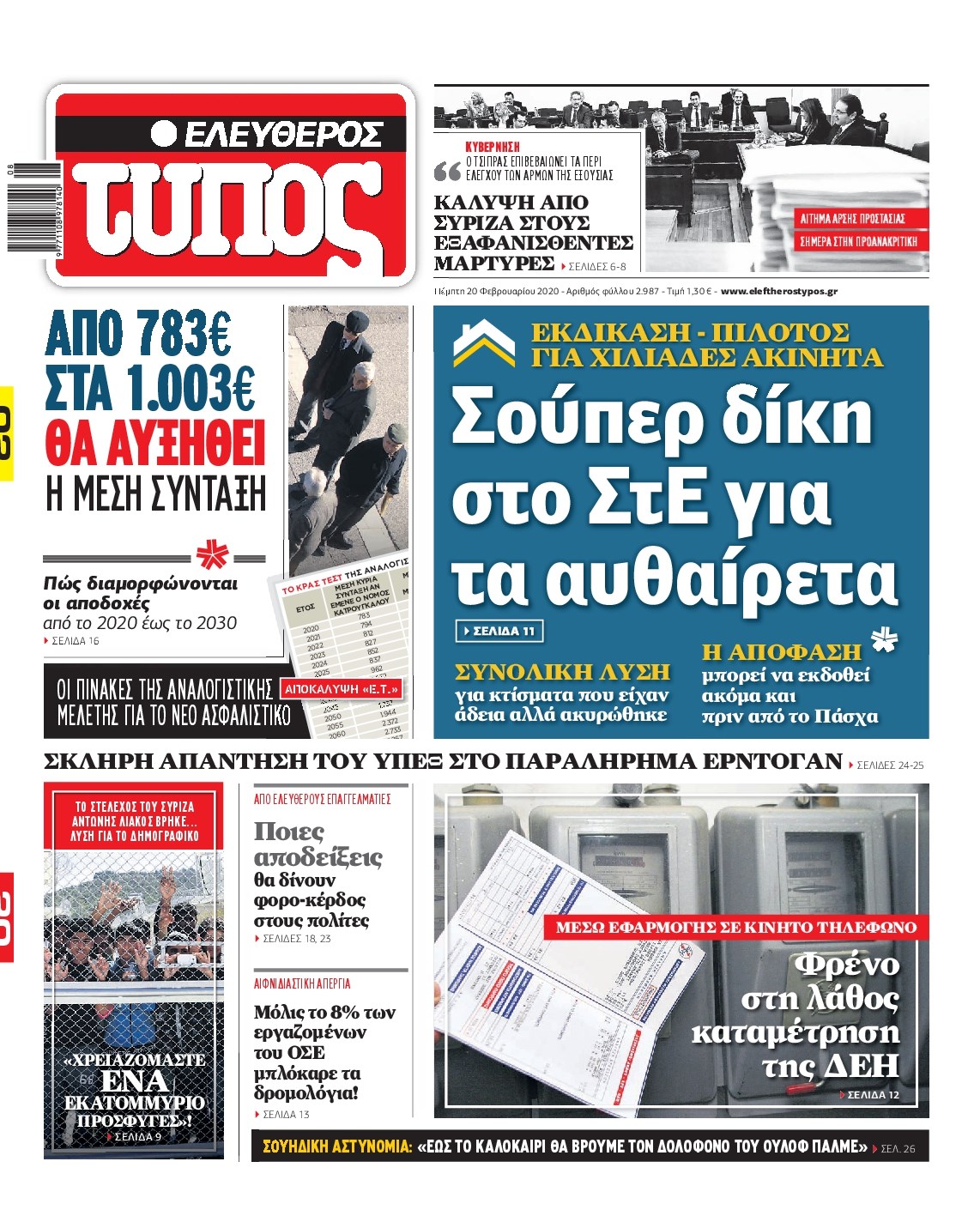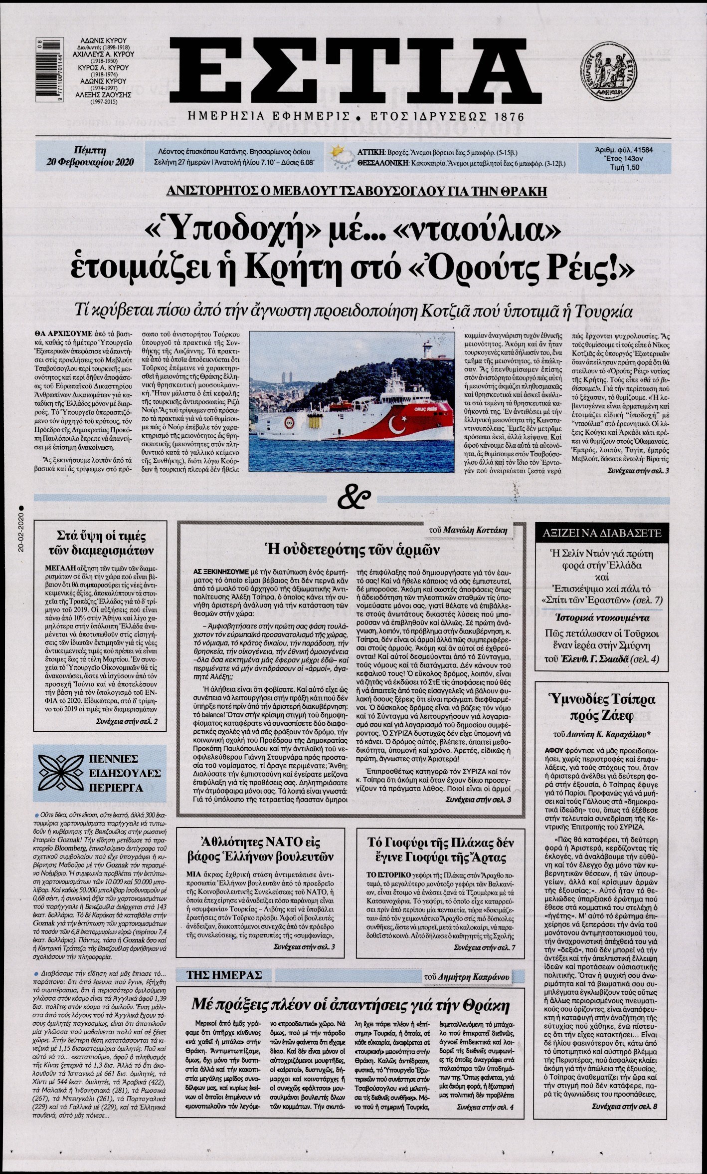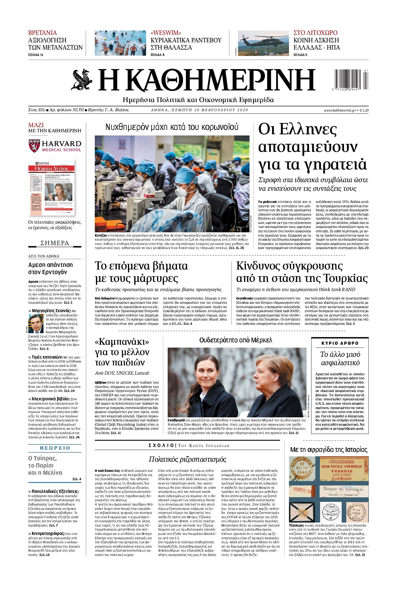 Οι πολιτικές εφημερίδες 20/2/2020 Διονύσης Νίκκας 06:07, Πέμπτη 20 Φεβρουαρίου 2020 Media Διαβάστε τα πρωτοσέλιδα των πολιτικών εφημερίδων… ΠΟΛΙΤΙΚΕΣ ΕΦΗΜΕΡΙΔΕΣ ΠΡΩΤΟΣΕΛΙΔΑ Μοιράσου το: σχολίασε κι εσύ (0 σχόλια) Ακολουθήστε το enikos.gr στο Google News και μάθετε πρώτοι όλες τις ειδήσεις Δείτε όλες τις τελευταίες ειδήσεις από την Ελλάδα και τον Κόσμο στο enikos.gr Ειδήσεις Ροή Ειδήσεων 5 ώρες πριν Χριστούγεννα στα μπλόκα: Επιμένουν στις κινητοποιήσεις τους οι αγρότες – Ανοίγουν τα διόδια το Σαββατοκύριακο 5 ώρες πριν Ουκρανία: Η άνευ προηγουμένου επίθεση σε ρωσικό τάνκερ στη Μεσόγειο και το μήνυμα προς στον Πούτιν – Το «μακρύ χέρι» του Κιέβου 4 ώρες πριν Πούτιν: Τα μηνύματα σε Ευρώπη και ΝΑΤΟ από το μαραθώνιο «σόου» του – Η απαίτηση για «σεβασμό» και η ειρήνη «με τους όρους» της Μόσχας 5 ώρες πριν Τραμπ: Δεν αποκλείει την πιθανότητα ενός πολέμου στη Βενεζουέλα – «Ο Μαδούρο ξέρει καλύτερα από τον καθένα τι ακριβώς θέλω» 6 ώρες πριν Συνεχίζει να προκαλεί ο Μίτσκοσκι: «Για μένα το όνομα Μακεδονία είναι ιερό» 4 ώρες πριν Ανακαλύφθηκαν αρχαία χρυσά νομίσματα 2.200 ετών που απεικονίζουν τον θεό Απόλλωνα – Η άγνωστη σύνδεση με τον Φίλιππο Β΄ της Μακεδονίας 5 ώρες πριν Ύπνος: Μια κρυφή κατάσταση του εγκεφάλου πριν από τον ύπνο μπορεί να είναι το “κλειδί” για υψηλή ευφυΐα και δημιουργικότητα 6 ώρες πριν Αριθμολογία: Οι άνθρωποι που έχουν γεννηθεί αυτές τις 4 ημερομηνίες, συχνά παρεξηγούνται – «Η καλοσύνη τους κρύβει τεράστια δύναμη» 7 ώρες πριν Ξεχάστε το καθάρισμα το Σαββατοκύριακο: Ο «κανόνας των 20 λεπτών» που θα σας λύσει τα χέρια 8 λεπτά πριν Η Ελλάδα προσχωρεί στη Διεθνή Επιτροπή Αποζημιώσεων για την Ουκρανία 23 λεπτά πριν GNTM: Η Ξένια Τσίρκοβα αναδείχθηκε μεγάλη νικήτρια και πήρε τις 50.000 ευρώ – Ποιος βρέθηκε σε απόσταση αναπνοής; 38 λεπτά πριν Θεσσαλονίκη: Εξαφανίστηκε 13χρονος από χώρο φιλοξενίας ασυνόδευτων ανηλίκων στο Ωραιόκαστρο 48 λεπτά πριν Ντόναλντ Τραμπ: «Πολύ βαριά αντίποινα» στη Συρία – «Πλήττουμε πολύ δυνατά οχυρά του Ισλαμικού Κράτους» 1 ώρα πριν Εξάρχεια: Ένταση με μολότοφ, χημικά και κρότου λάμψης ENIKOS NETWORK Το ΕΚΑΒ τιμήθηκε από την Ακαδημία Αθηνών για τα 40 χρόνια προσφοράς του Έχετε πραγματικά μεγάλη καρδιά; 10 χαρακτηριστικά όσων έχουν καλοσύνη Αναστολή μέτρων αναγκαστικής εκτέλεσης για κτηνοτρόφους που πλήττονται από την ευλογιά των αιγοπροβάτων Πλήρης επάρκεια προϊόντων στις λαϊκές της Αττικής, παρά τις αγροτικές κινητοποιήσεις – Τι απαντούν οι πωλητές Χαρτογραφώντας το «σημείο χωρίς επιστροφή»: Για πρώτη φορά αποκαλύπτεται με λεπτομέρεια το ακανθώδες όριο της ατμόσφαιρας τ... Η Google καταργεί τη λειτουργία «dark web report» – Πώς θα μπορούν οι χρήστες να διαγράφουν τα δεδομένα τους περισσότερα 02:50 , Σάββατο 20 Δεκεμβρίου 2025 GNTM: Η Ξένια Τσίρκοβα αναδείχθηκε μεγάλη νικήτρια και πήρε τις 50.000 ευρώ – Ποιος βρέθηκε σε απόσταση αναπνοής; Με φαντασμαγορικό τρόπο ολοκληρώθηκε το βράδυ της Παρασκευής ο μεγάλος τελικός του GNTM, μέσα ... 22:42 , Παρασκευή 19 Δεκεμβρίου 2025 Γιώργος Γιαννόπουλος για “Το σόι σου”: “Είναι ευτυχία και ευλογία αυτή η σειρά” «Είναι ευτυχία και ευλογία η συγκυρία αυτής της σειράς», θα πει ο Γιώργος Γιαννόπουλος -ο αγαπ... 20:37 , Παρασκευή 19 Δεκεμβρίου 2025 Don’t Forget The Lyrics: Η Έλλη Κοκκίνου υποδέχεται 4 παίκτες που θα κάνουν τα πάντα για να μη χάσουν ούτε… μισή λέξη από τους στίχους Το «Don’t Forget The Lyrics» επιστρέφει απόψε, Παρασκευή 19 Δεκεμβρίου, στις 21:00 με