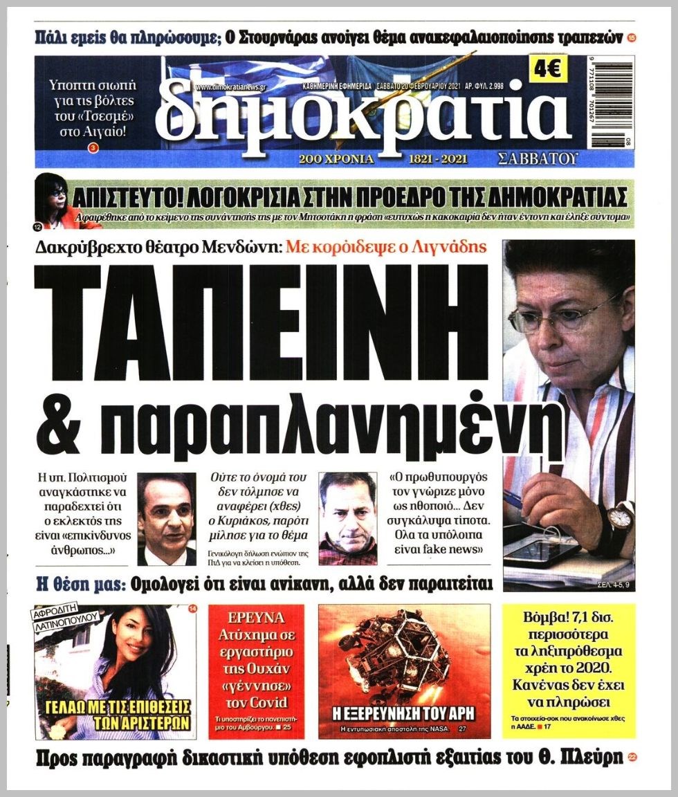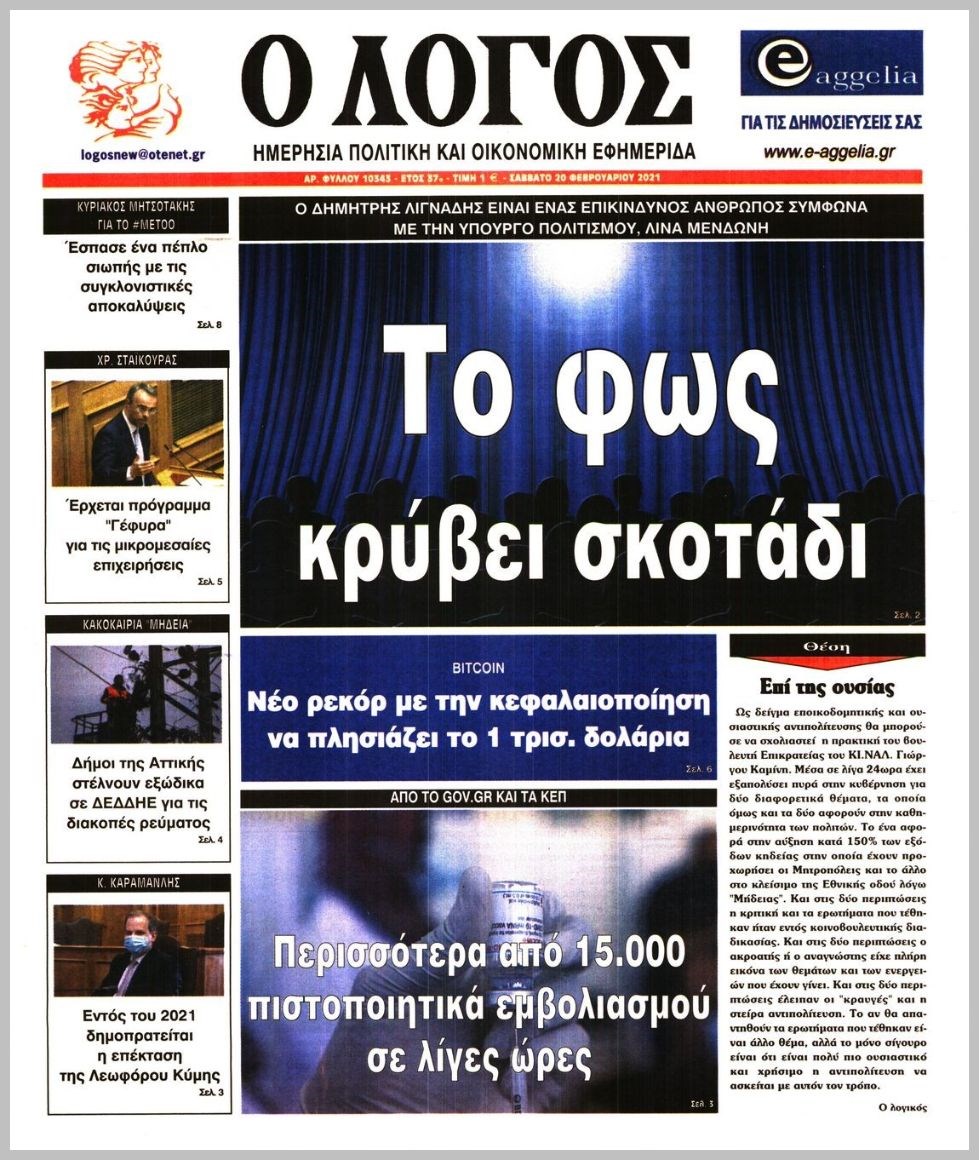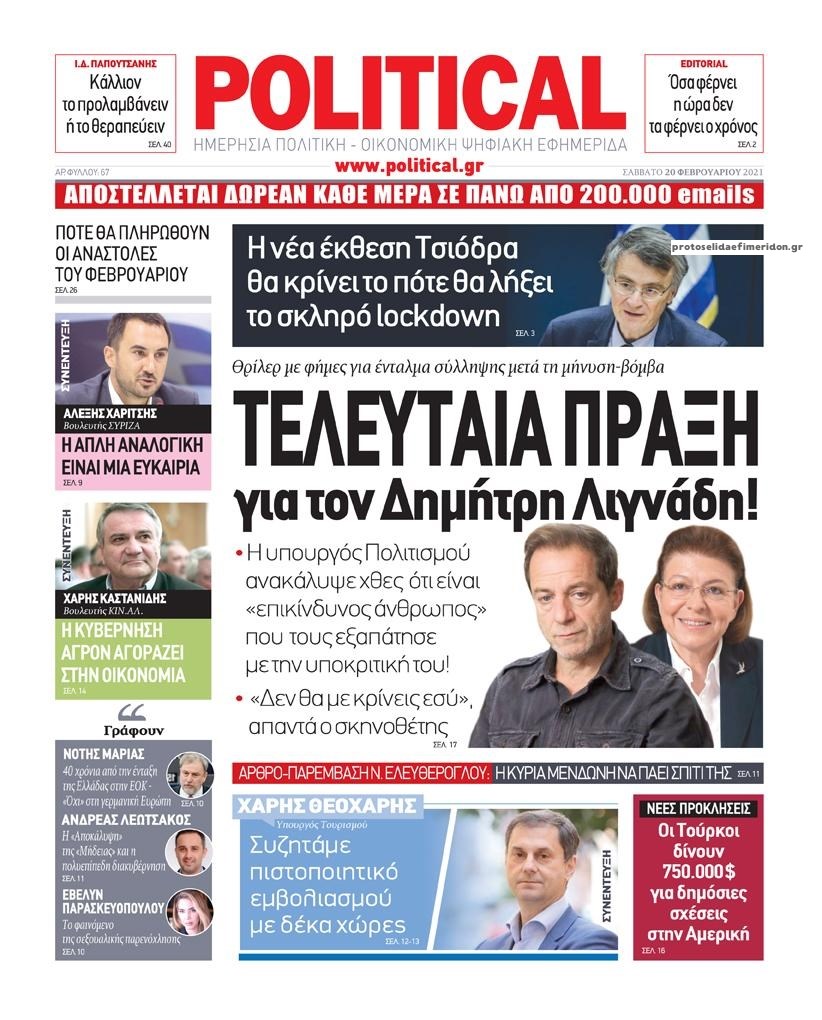 Οι πολιτικές εφημερίδες 20/2/2021 Διονύσης Νίκκας 07:07, Σάββατο 20 Φεβρουαρίου 2021 Media Διαβάστε τα πρωτοσέλιδα των πολιτικών εφημερίδων… ΕΦΗΜΕΡΙΔΕΣ ΠΟΛΙΤΙΚΕΣ ΕΦΗΜΕΡΙΔΕΣ ΠΡΩΤΟΣΕΛΙΔΑ Μοιράσου το: σχολίασε κι εσύ (0 σχόλια) Ακολουθήστε το enikos.gr στο Google News και μάθετε πρώτοι όλες τις ειδήσεις Δείτε όλες τις τελευταίες ειδήσεις από την Ελλάδα και τον Κόσμο στο enikos.gr Ειδήσεις Ροή Ειδήσεων 7 ώρες πριν Χριστούγεννα στα μπλόκα: Επιμένουν στις κινητοποιήσεις τους οι αγρότες – Ανοίγουν τα διόδια το Σαββατοκύριακο 8 ώρες πριν Ουκρανία: Η άνευ προηγουμένου επίθεση σε ρωσικό τάνκερ στη Μεσόγειο και το μήνυμα προς στον Πούτιν – Το «μακρύ χέρι» του Κιέβου 7 ώρες πριν Πούτιν: Τα μηνύματα σε Ευρώπη και ΝΑΤΟ από το μαραθώνιο «σόου» του – Η απαίτηση για «σεβασμό» και η ειρήνη «με τους όρους» της Μόσχας 8 ώρες πριν Τραμπ: Δεν αποκλείει την πιθανότητα ενός πολέμου στη Βενεζουέλα – «Ο Μαδούρο ξέρει καλύτερα από τον καθένα τι ακριβώς θέλω» 9 ώρες πριν Συνεχίζει να προκαλεί ο Μίτσκοσκι: «Για μένα το όνομα Μακεδονία είναι ιερό» 3 λεπτά πριν Αυγά: Πόσα μπορείτε να τρώτε την ημέρα με ασφάλεια για μέγιστη πρόσληψη πρωτεΐνης 33 λεπτά πριν Τα ζώδια σήμερα, Σάββατο 20 Δεκεμβρίου: Παρθένοι, το σύμπαν σας δίνει το κλειδί 7 ώρες πριν Ανακαλύφθηκαν αρχαία χρυσά νομίσματα 2.200 ετών που απεικονίζουν τον θεό Απόλλωνα – Η άγνωστη σύνδεση με τον Φίλιππο Β΄ της Μακεδονίας 8 ώρες πριν Ύπνος: Μια κρυφή κατάσταση του εγκεφάλου πριν από τον ύπνο μπορεί να είναι το “κλειδί” για υψηλή ευφυΐα και δημιουργικότητα 3 λεπτά πριν Αυγά: Πόσα μπορείτε να τρώτε την ημέρα με ασφάλεια για μέγιστη πρόσληψη πρωτεΐνης 10 λεπτά πριν Σαν σήμερα 20 Δεκεμβρίου: Τα σημαντικότερα γεγονότα της ημέρας 15 λεπτά πριν Οι οικονομικές εφημερίδες 20/12/2025 20 λεπτά πριν Οι αθλητικές εφημερίδες 20/12/2025 25 λεπτά πριν Οι πολιτικές εφημερίδες 20/12/2025 ENIKOS NETWORK Το ΕΚΑΒ τιμήθηκε από την Ακαδημία Αθηνών για τα 40 χρόνια προσφοράς του Έχετε πραγματικά μεγάλη καρδιά; 10 χαρακτηριστικά όσων έχουν καλοσύνη Αναστολή μέτρων αναγκαστικής εκτέλεσης για κτηνοτρόφους που πλήττονται από την ευλογιά των αιγοπροβάτων Πλήρης επάρκεια προϊόντων στις λαϊκές της Αττικής, παρά τις αγροτικές κινητοποιήσεις – Τι απαντούν οι πωλητές Χαρτογραφώντας το «σημείο χωρίς επιστροφή»: Για πρώτη φορά αποκαλύπτεται με λεπτομέρεια το ακανθώδες όριο της ατμόσφαιρας τ... Η Google καταργεί τη λειτουργία «dark web report» – Πώς θα μπορούν οι χρήστες να διαγράφουν τα δεδομένα τους περισσότερα 05:48 , Σάββατο 20 Δεκεμβρίου 2025 Οι οικονομικές εφημερίδες 20/12/2025 Διαβάστε τα πρωτοσέλιδα από τις οικονομικές εφημερίδες, σήμερα 20/12/2025. 05:43 , Σάββατο 20 Δεκεμβρίου 2025 Οι αθλητικές εφημερίδες 20/12/2025 Διαβάστε τα πρωτοσέλιδα από τις αθλητικές εφημερίδες, σήμερα 20/12/2025. 05:38 , Σάββατο 20 Δεκεμβρίου 2025 Οι πολιτικές εφημερίδες 20/12/2025 Διαβάστε τα πρωτοσέλιδα από τις πολιτικές εφημερίδες, σήμερα 20/12/2025. 04:20 , Σάββατο 20 Δεκεμβρίου 2025 Αγγελική Νικολούλη: Τα συλλυπητήρια για την απώλεια της Ειρήνης Μαρινάκη Τα συλληπητήρια στον πρόεδρο του Mega, τον Βαγγέλη Μαρινάκη, για την απώλεια της μητέρας του Ε... ΤΕΛΕΥΤΑΙΕΣ ΕΙΔΗΣΕΙΣ 3 λεπτά πριν Αυγά: Πόσα μπορείτε να τρώτε την ημέρα με ασφάλεια για... 10 λεπτά πριν Σαν σήμερα 20 Δεκεμβρίου: Τα σημαντικότερα γεγονότα... 15 λεπτά πριν Οι οικονομικές εφημερίδες 20/12/2025 20 λεπτά πριν Οι αθλητικές εφημερίδες 20/12/2025 25 λεπτά πριν Οι πολιτικές εφημερίδες 20/12/2025 33 λεπτά πριν Τα ζώδια σήμερα, Σάββα