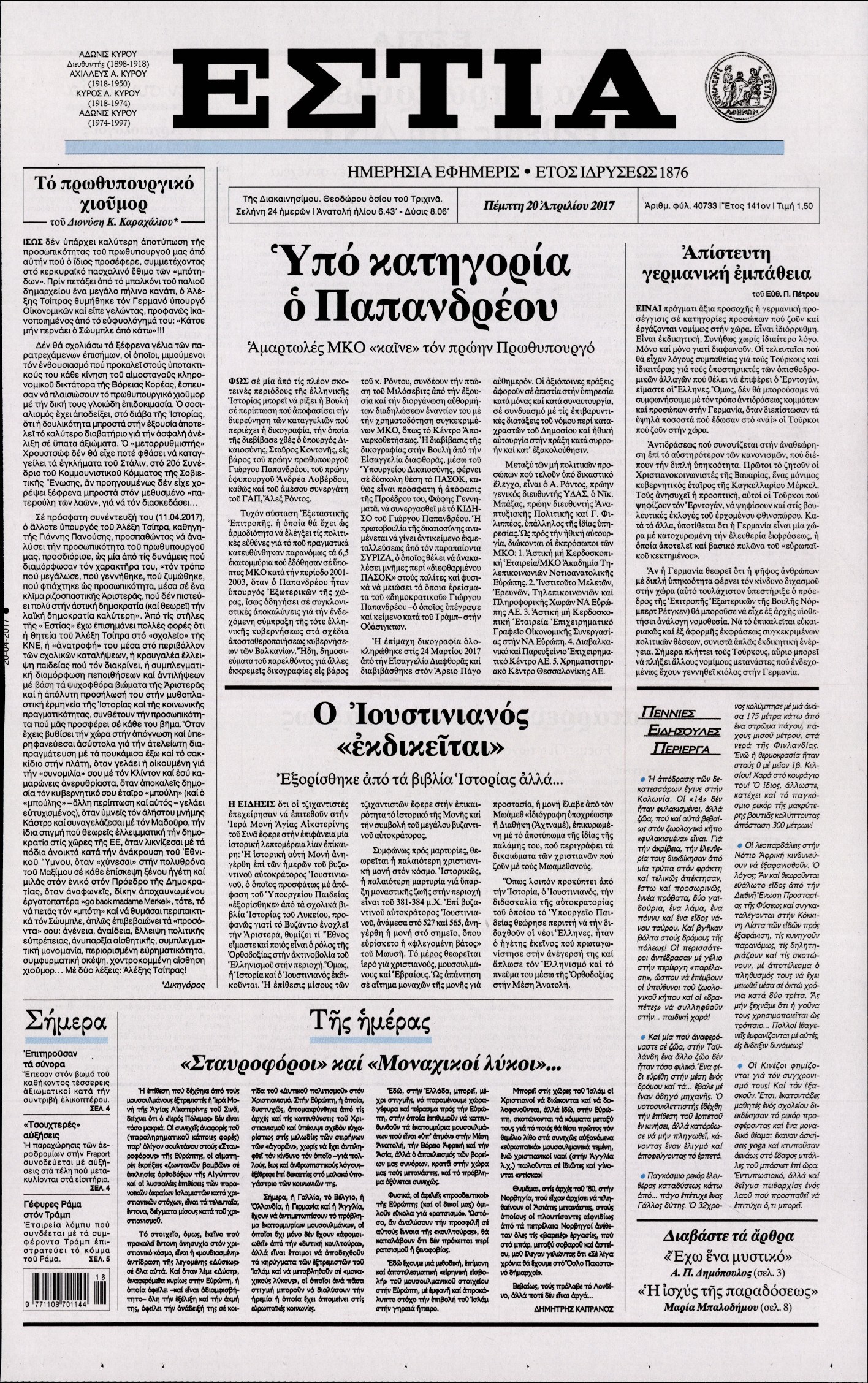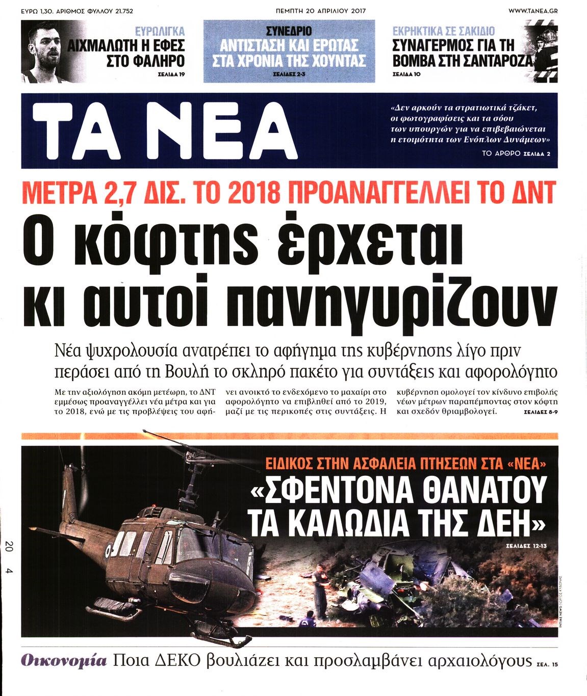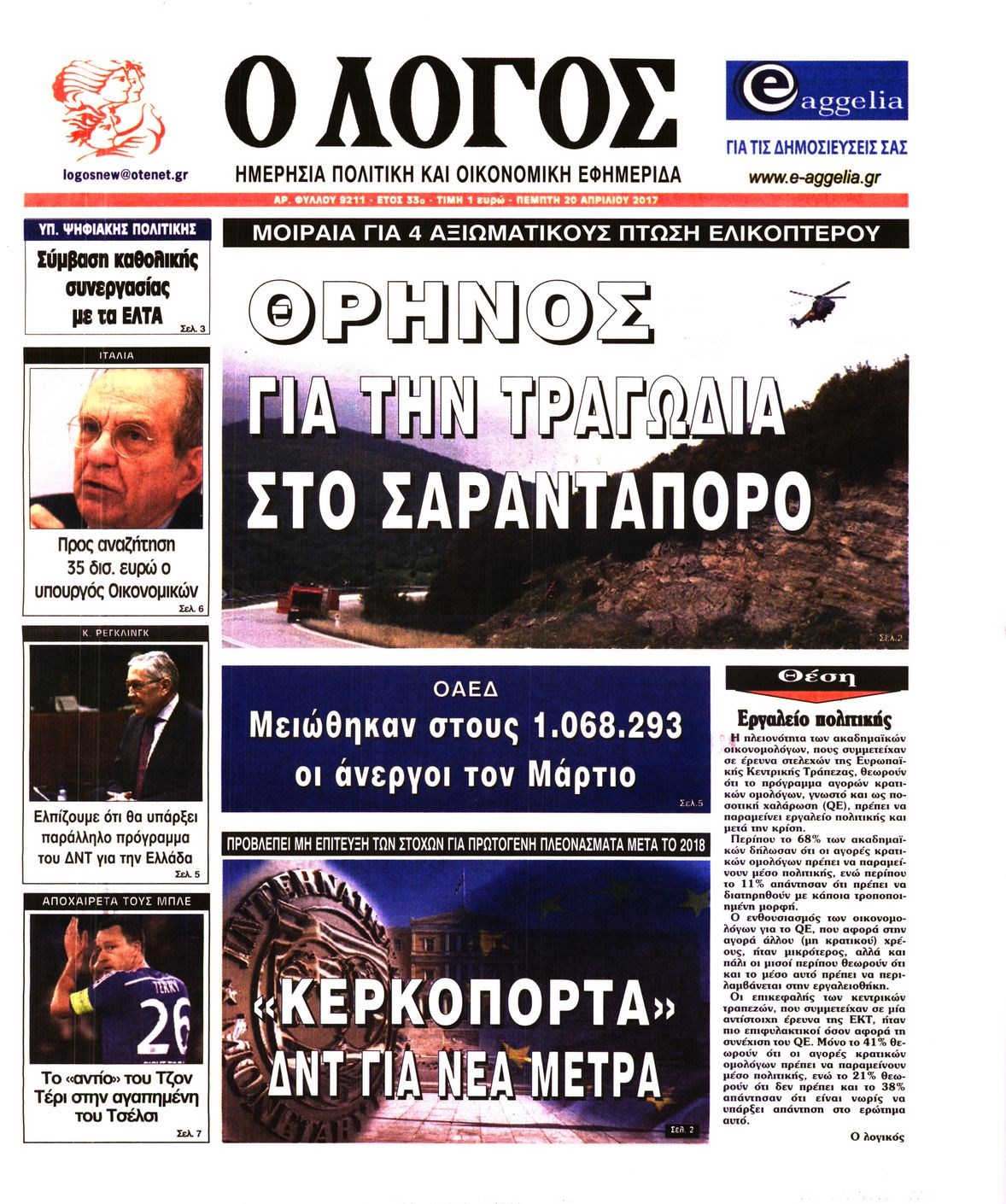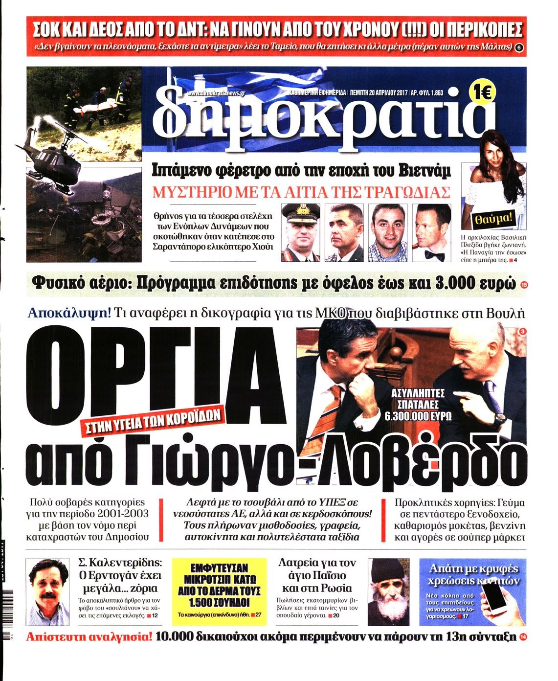 Οι πολιτικές εφημερίδες 20/4/2017