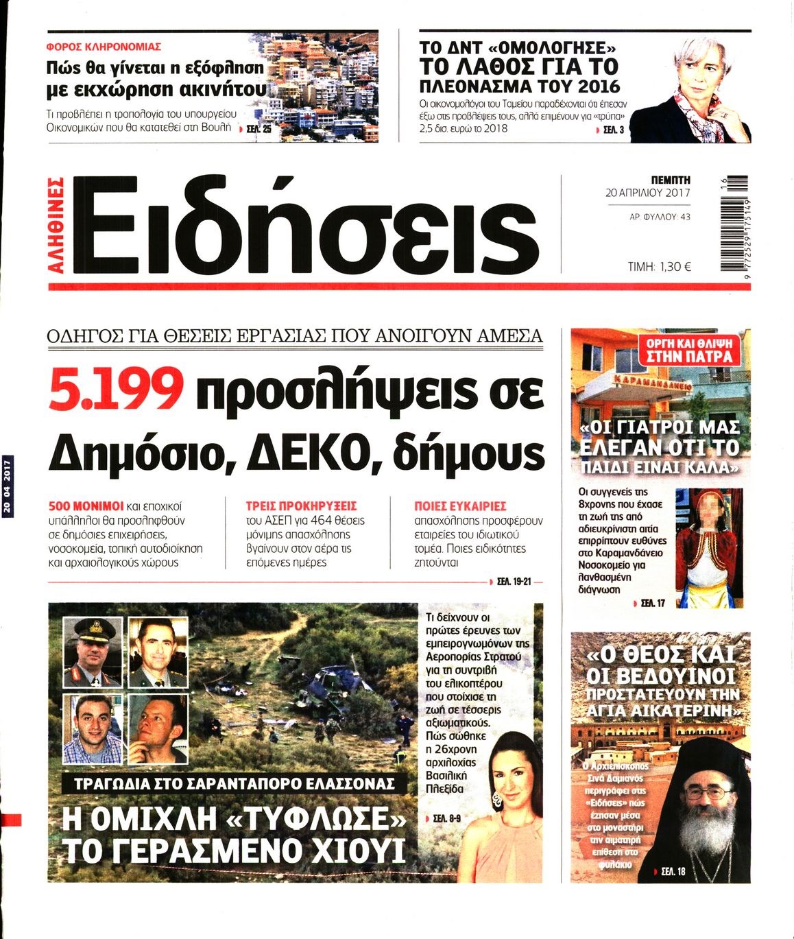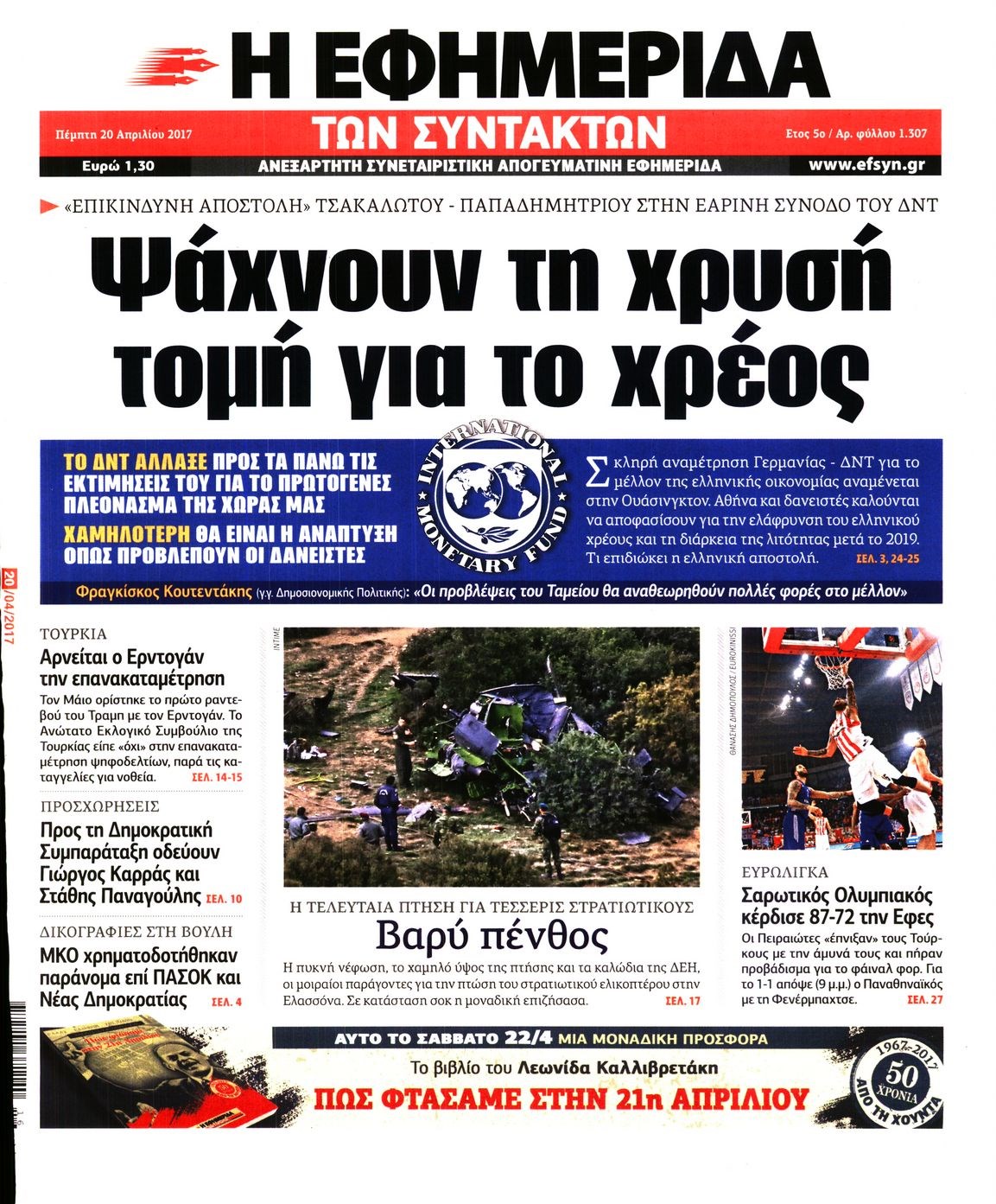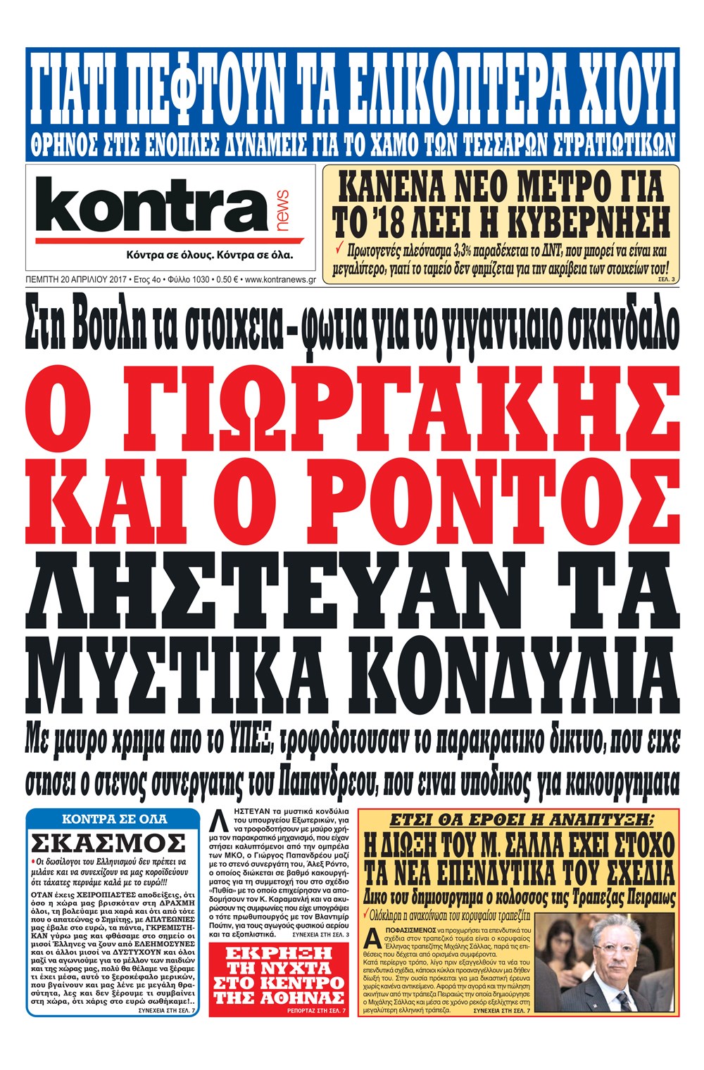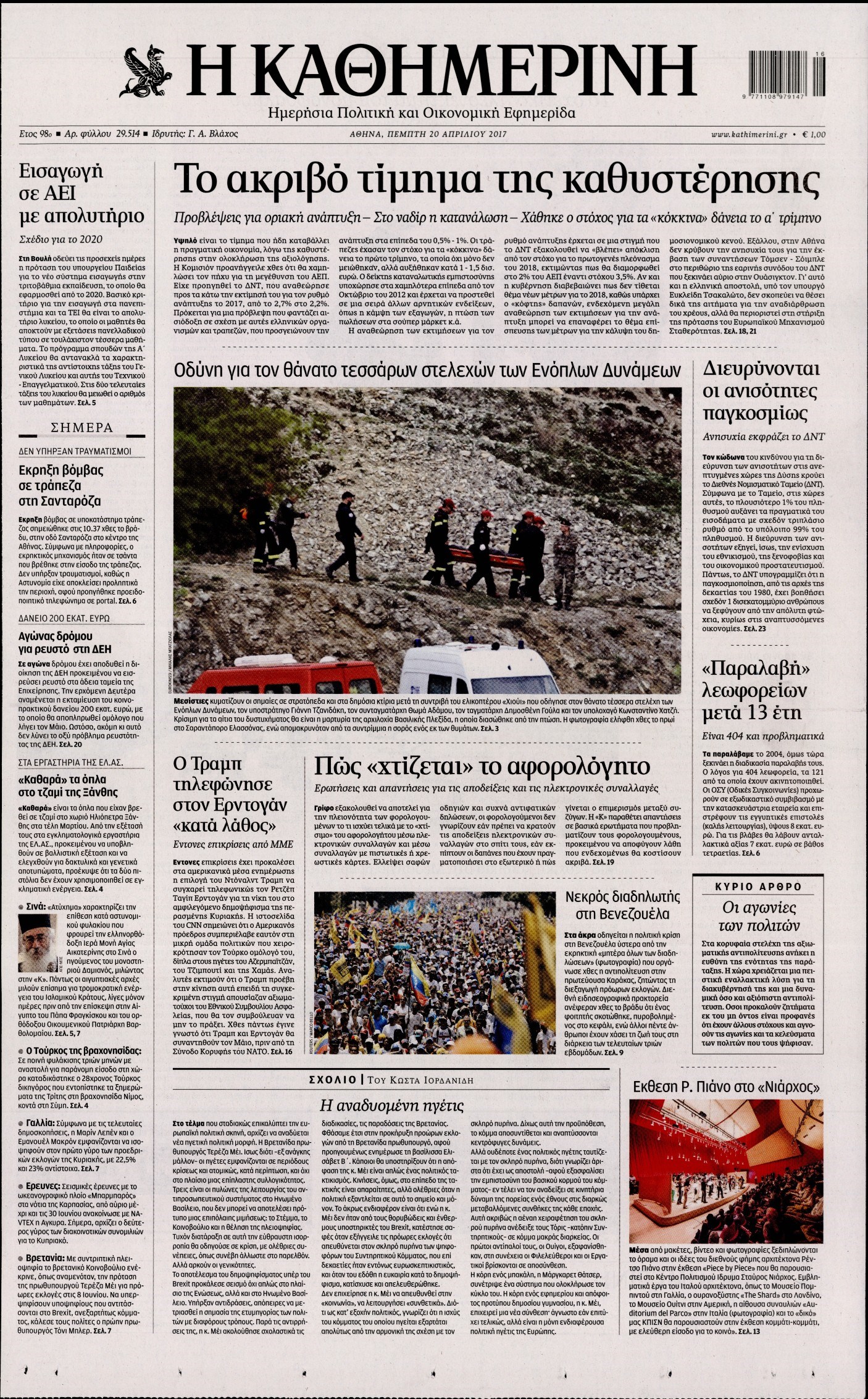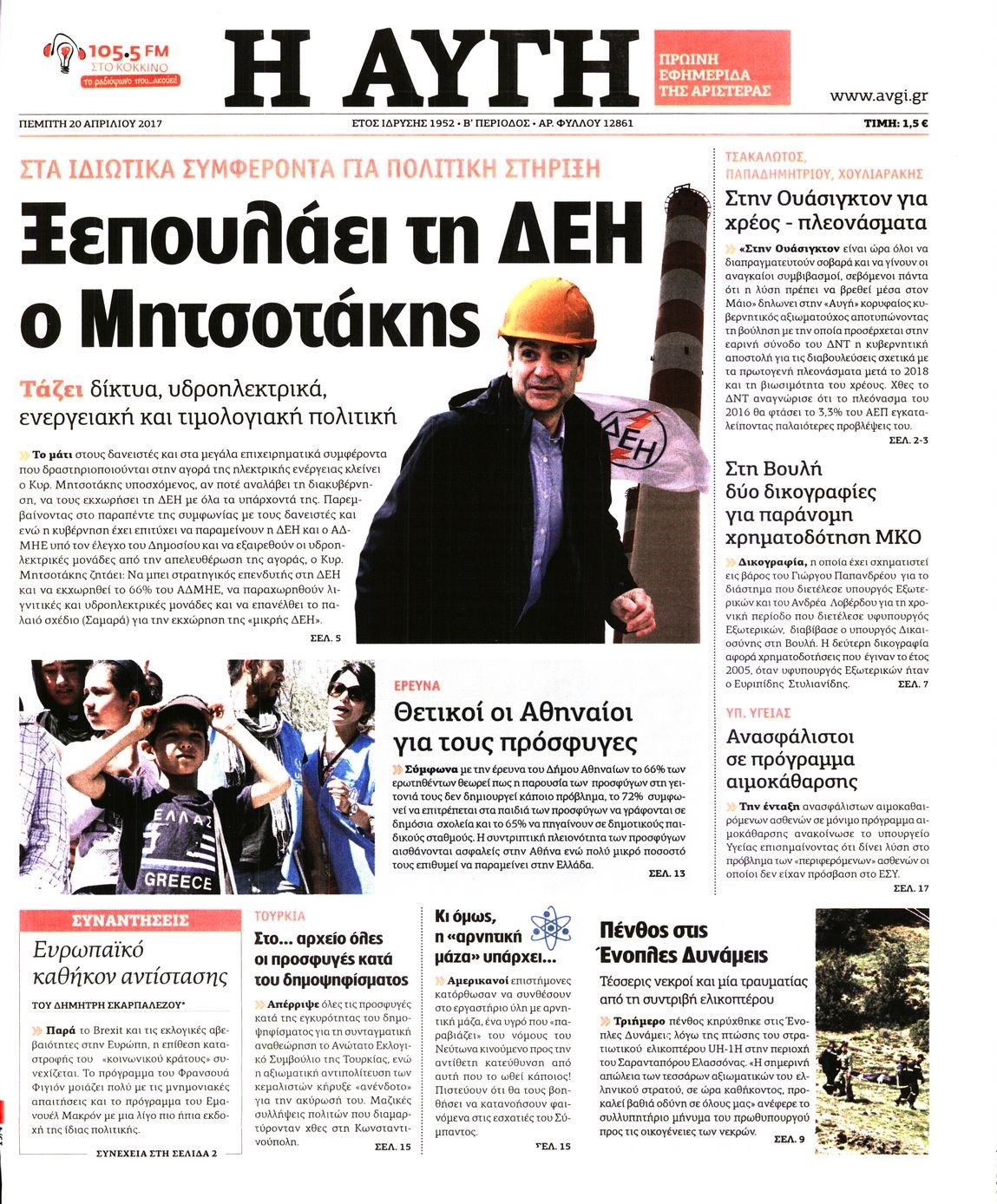 Οι πολιτικές εφημερίδες 20/4/2017