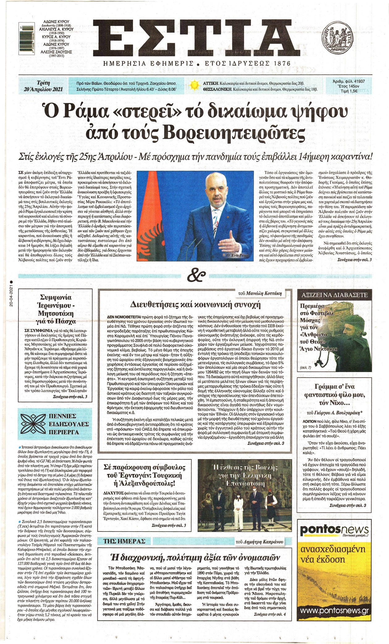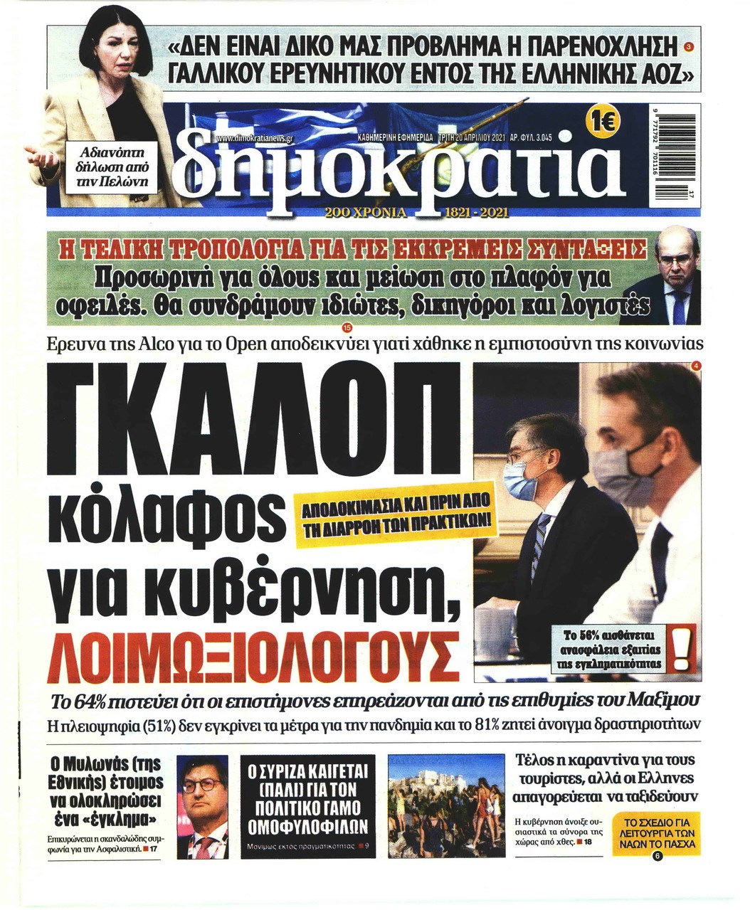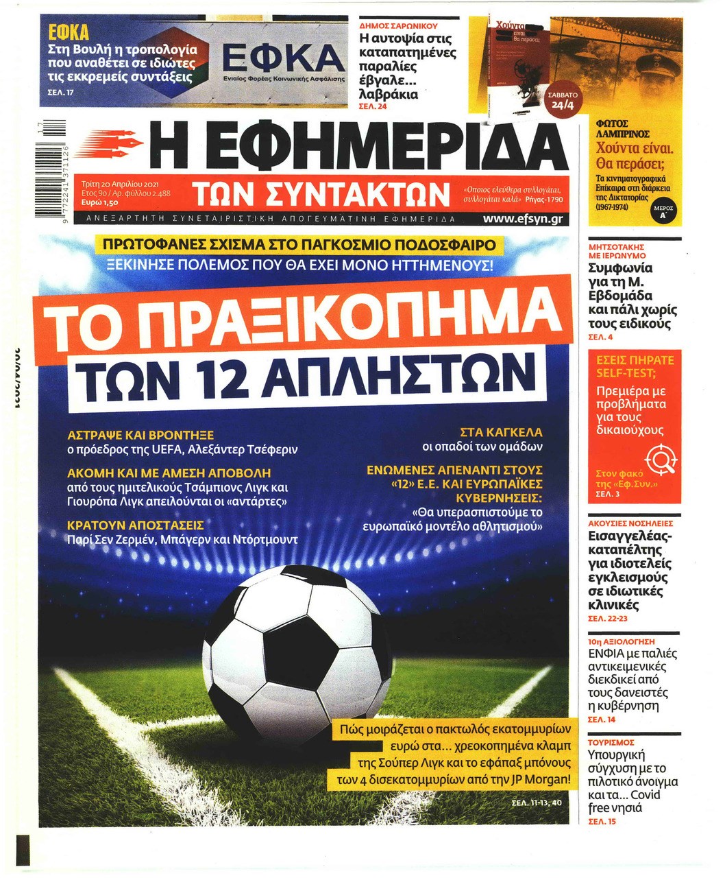 Οι πολιτικές εφημερίδες 20/4/2021 Σήφης Γαρυφαλάκης 06:32, Τρίτη 20 Απριλίου 2021 Media Διαβάστε τα πρωτοσέλιδα των πολιτικών εφημερίδων… ΕΦΗΜΕΡΙΔΕΣ ΠΟΛΙΤΙΚΕΣ ΕΦΗΜΕΡΙΔΕΣ ΠΡΩΤΟΣΕΛΙΔΑ ΠΡΩΤΟΣΕΛΙΔΑ ΕΦΗΜΕΡΙΔΩΝ Μοιράσου το: σχολίασε κι εσύ (0 σχόλια) Ακολουθήστε το enikos.gr στο Google News και μάθετε πρώτοι όλες τις ειδήσεις Δείτε όλες τις τελευταίες ειδήσεις από την Ελλάδα και τον Κόσμο στο enikos.gr Ειδήσεις Ροή Ειδήσεων 2 ώρες πριν Αυξάνουν την πίεση προς την κυβέρνηση οι αγρότες: Κλείνουν παρακαμπτήριους και ανοίγουν διόδια – Τι θα γίνει τις γιορτές 45 λεπτά πριν ΟΠΕΚΕΠΕ: Προφυλακιστέος ο φερόμενος αρχηγός και ο λογιστής της εγκληματικής οργάνωσης 2 ώρες πριν Φοινικούντα: Το Σάββατο απολογείται ο 30χρονος γιος γνωστού επιχειρηματία της Πλάκας που παραδόθηκε – Όσα είπε στους αστυνομικούς και ο ρόλος του στο έγκλημα 1 ώρα πριν Μπορεί ο Μαδούρο να αντέξει τον αποκλεισμό του Τραμπ; Τι θα χρειαστεί η Ουάσινγκτον για να τον ανατρέψει 3 ώρες πριν Πρίγκιπας Ουίλιαμ – Κέιτ: Η νέα οικογενειακή φωτογραφία για τις Χριστουγεννιάτικες κάρτες του 2025 3 ώρες πριν Ύπνος: Η απλή βραδινή ρουτίνα για να προστατεύσετε τα μαλλιά σας από το κρύο κατά τη διάρκεια του χειμώνα 4 ώρες πριν Manifesting: Πώς να συναντήσετε τον σύντροφο της ζωής σας, ανάλογα με τον μήνα γέννησής σας 2 ημέρες πριν 20 χρόνια τα Χριστούγεννα ξεκινούν στα Public με μεγάλη ποικιλία σε δώρα! 1 ώρα πριν Αρχαιολόγοι ανακάλυψαν ρωμαϊκά τεχνουργήματα από μια πόλη που δεν υπήρξε ποτέ – Τα τρία εντυπωσιακά κτίρια και ο αμφορέας με τις… σαρδέλες 25 λεπτά πριν ΑΕΚ – Κραϊόβα 3-2: Επική ανατροπή και πρόκριση στους «16» του Conference League η Ένωση 45 λεπτά πριν ΟΠΕΚΕΠΕ: Προφυλακιστέος ο φερόμενος αρχηγός και ο λογιστής της εγκληματικής οργάνωσης 56 λεπτά πριν Αθηνά Μαξίμου: Η τρυφερή ανάρτηση για τα γενέθλια του Αιμίλιου Χειλάκη – «Είναι η εκλεκτική συγγένειά μου, η επιλογή και η ευθύνη μου» 1 ώρα πριν Παναθηναϊκός – Χάποελ Τελ Αβίβ 93-82: Με… φόρα από την Κωνσταντινούπολη 1 ώρα πριν Μπορεί ο Μαδούρο να αντέξει τον αποκλεισμό του Τραμπ; Τι θα χρειαστεί η Ουάσινγκτον για να τον ανατρέψει ENIKOS NETWORK Σε περίοδο αυξημένης δραστηριότητας η γρίπη στην Ελλάδα-Μέτρα προστασίας από τον ΕΟΔΥ Σκέφτεστε συνέχεια συζητήσεις που έχετε κάνει; Τι σημαίνει αυτό, σύμφωνα με ειδικό Στεγαστικό: Τι λέει η ΠΟΜΙΔΑ για τα νέα μέτρα που ανακοίνωσε ο Κυριάκος Μητσοτάκης Λαγκάρντ: Αισιόδοξη για την ανάπτυξη της Ευρωζώνης, αβέβαιη για τον πληθωρισμό Χαρτογραφώντας το «σημείο χωρίς επιστροφή»: Για πρώτη φορά αποκαλύπτεται με λεπτομέρεια το ακανθώδες όριο της ατμόσφαιρας τ... Η Google καταργεί τη λειτουργία «dark web report» – Πώς θα μπορούν οι χρήστες να διαγράφουν τα δεδομένα τους περισσότερα 17:45 , Πέμπτη 18 Δεκεμβρίου 2025 ROUK ZOUK: Εορταστικό επεισόδιο με καλεσμένους τους πρωταγωνιστές του «Γιατί ρε πατέρα» Το Σάββατο 20 Δεκεμβρίου στις 21:00, η Ζέτα Μακρυπούλια υποδέχεται εκλεκτούς ηθοποιούς που όλο... 17:20 , Πέμπτη 18 Δεκεμβρίου 2025 Άγιος έρωτας: Η Χριστίνα εξομολογείται στον πατέρα Νικόλαο, απόψε στις 21:00 στον Alpha Η Νότα αποφασίζει να εκδικηθεί τον Πέτρο και τον Στέφανο, για χάρη του Λούη, όμως τα πράγματα ... 16:50 , Πέμπτη 18 Δεκεμβρίου 2025 Να μ’ αγαπάς: Ζωή και Φωτεινή συμφιλιώνονται ως μάνα με κόρη, απόψε στις 20:00 Η ταυτότητα του Άγγελου αποκαλύπτεται στο νέο επεισόδιο της σειράς “Να μ’ αγαπάς... 15:52 , Πέμπτη 18 Δεκεμβρίου 2025 Το Σπίτι Δίπλα Στο Ποτάμι: Το καθηλωτικό τελευταίο επεισόδιο για το 2025 απόψε 