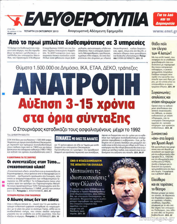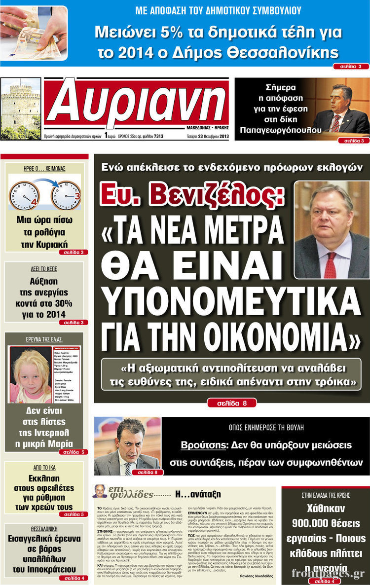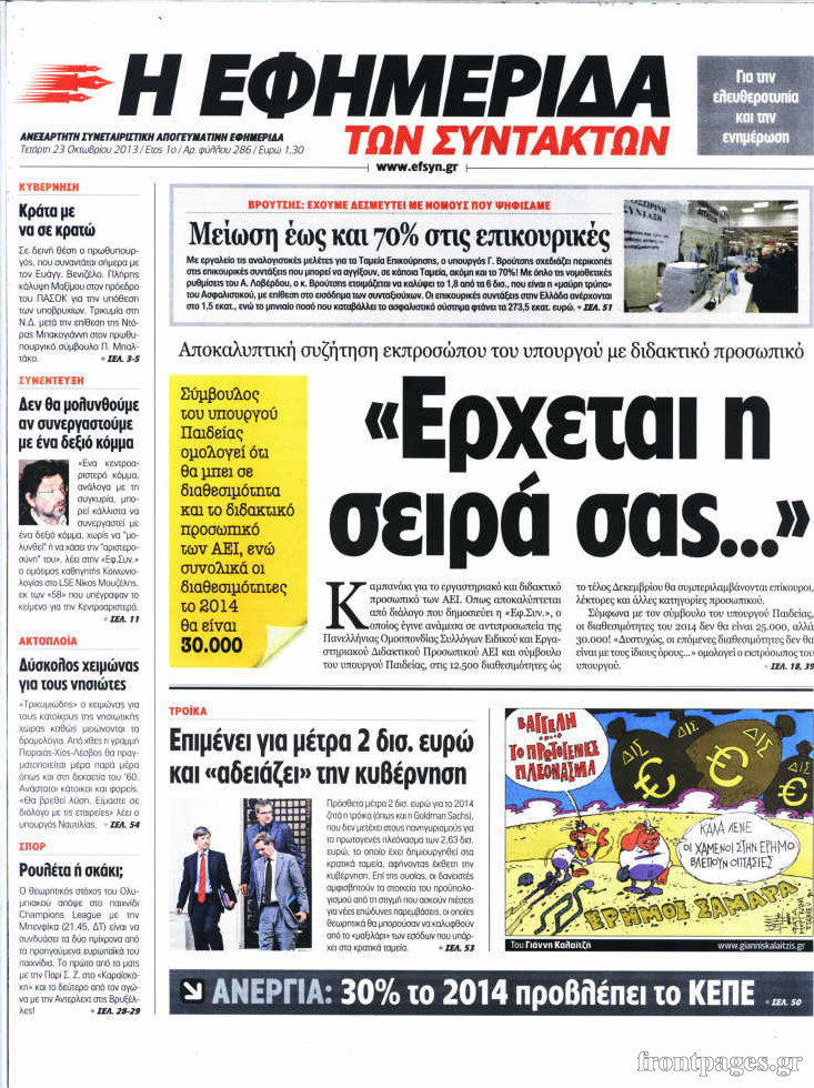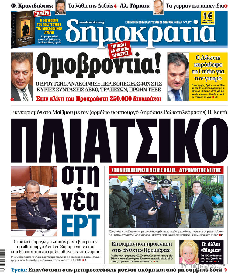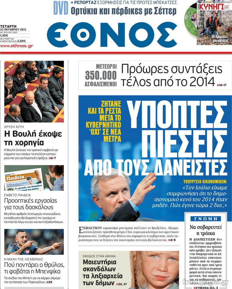 Οι πολιτικές εφημερίδες Enikos Newsroom 08:28, Τετάρτη 23 Οκτωβρίου 2013 Media Οι πολιτικές εφημερίδες Διαβάστε τα πρωτοσέλιδα των πολιτικών εφημερίδων: ΕΦΗΜΕΡΙΔΕΣ ΠΟΛΙΤΙΚΕΣ ΕΦΗΜΕΡΙΔΕΣ ΠΡΩΤΟΣΕΛΙΔΑ Μοιράσου το: σχολίασε κι εσύ (0 σχόλια) Ακολουθήστε το enikos.gr στο Google News και μάθετε πρώτοι όλες τις ειδήσεις Δείτε όλες τις τελευταίες ειδήσεις από την Ελλάδα και τον Κόσμο στο enikos.gr Ειδήσεις Ροή Ειδήσεων 1 ώρα πριν Αγρότες από το μπλόκο Νίκαιας κλείνουν τη Δευτέρα τις σήραγγες των Τεμπών για τα φορτηγά – Τι αποφάσισαν 5 ώρες πριν Μητσοτάκης σε αγρότες: Είμαστε ανοιχτοί στον διάλογο, αλλά όχι στο παράλογο – Η διεκδίκηση αιτημάτων οφείλει να γίνεται με σεβασμό στο κοινωνικό σύνολο 4 ώρες πριν Κηφισιά: Δύο συλλήψεις για ληστεία με λεία 180.000 ευρώ – Βίντεο ντοκουμέντα από τη δράση των συλληφθέντων 35 λεπτά πριν Ζελένσκι: Τάχθηκε σήμερα υπέρ της διεξαγωγής ευρύτερων διαβουλεύσεων με Ευρωπαίους εταίρους 2 ώρες πριν Θεσσαλονίκη: Με Αγιοβασίληδες γέμισε ο Θερμαϊκός στο 5ο Santa SUP 5 ώρες πριν Τα άστρα ευνοούν σκανδαλωδώς 4 ζώδια – «Εμφανίζονται ξαφνικά ευκαιρίες γιατί αποφασίζετε να αφήσετε πίσω το παρελθόν» 4 ώρες πριν Προπονήτρια γυμναστικής που έχασε 9 κιλά αποκαλύπτει: «Αυτοί είναι οι 5 παράγοντες που εμποδίζουν την απώλεια βάρους» 3 ώρες πριν Οι άνθρωποι που στρώνουν το κρεβάτι τους κάθε πρωί, διαθέτουν αυτές τις 8 κρυφές δυνάμεις 1 ημέρα πριν Enerwave: Το νέο «ρεύμα» στη λιανική ενέργειας που αλλάζει την εμπειρία του καταναλωτή 6 λεπτά πριν Ένα πλάσμα στα βάθη της θάλασσας απορροφά άνθρακα από την ατμόσφαιρα – «Δεν είχαμε ιδέα για την ύπαρξή του» 7 λεπτά πριν Στο «μικροσκόπιο» των Αρχών ο αγροτοσυνδικαλιστής Κωνσταντίνος Ανεστίδης – Υπό διερεύνηση για επιδοτήσεις 122.000 ευρώ 15 λεπτά πριν Όλυμπος: Εντοπίστηκε ο Μολδαβός ορειβάτης που είχε εγκλωβιστεί πάνω από το καταφύγιο Πετρόστρουγκα 23 λεπτά πριν Πάτρα: Συμμορία απατεώνων άρπαξε από πολίτες περισσότερα από 125.000 ευρώ σε μετρητά και χρυσές λίρες – Στο κόλπο και ενεχυροδανειστήρια 30 λεπτά πριν Φωτιά σε αποθήκη εργοστασίου στου Ρέντη ENIKOS NETWORK Ο εγκέφαλός μας ξεπερνά ακόμα σε εξυπνάδα το ΑΙ – Ποιο είναι αυτό στο οποίο είμαστε καλύτεροι Φοράτε ψηλοτάκουνα παπούτσια; Ποδίατροι συμβουλεύουν πόσο ψηλά επιτρέπεται να είναι και πώς να τα επιλέξετε IRIS: Διπλασιάζεται το όριο μεταφοράς χρημάτων μεταξύ ιδιωτών – Οι νέες αλλαγές και πότε θα εφαρμοστούν Η επόμενη ημέρα για τις ελληνικές τράπεζες -Τι λένε κορυφαία στελέχη του κλάδου Χαρτογραφώντας το «σημείο χωρίς επιστροφή»: Για πρώτη φορά αποκαλύπτεται με λεπτομέρεια το ακανθώδες όριο της ατμόσφαιρας τ... Η Google καταργεί τη λειτουργία «dark web report» – Πώς θα μπορούν οι χρήστες να διαγράφουν τα δεδομένα τους περισσότερα 14:24 , Κυριακή 21 Δεκεμβρίου 2025 IQ 160: Ο φάκελος με το τεστ πατρότητας ανοίγει, απόψε στις 21:00 στο Star Ανατρεπτικό το νέο διπλό επεισόδιο της σειράς “IQ 160” στις 21:00 στο Star. Ο Τηλέ... 09:43 , Κυριακή 21 Δεκεμβρίου 2025 Το λάθος στην ταινία Die Hard που άφησε άναυδους τους θαυμαστές του Μπρους Γουίλις Ένας φανατικός των ταινιών άφησε άναυδους τους θαυμαστές του Die Hard, επισημαίνοντας τρία βασ... 08:13 , Κυριακή 21 Δεκεμβρίου 2025 Άγιος έρωτας: Ένας καταστροφικός σεισμός χτυπά τη Στέρνα Καταιγιστικές είναι οι εξελίξεις στα δυο τελευταία, συγκλονιστικά επεισόδια του 2025 της σειρά... 08:00 , Κυριακή 21 Δεκεμβρίου 2025 Σήμερα με τη Realnews: Ό,τι και αν αγοράσεις, σκανάρεις και κερδίζεις! Σήμερα με τη Realnews: Ό,τι
