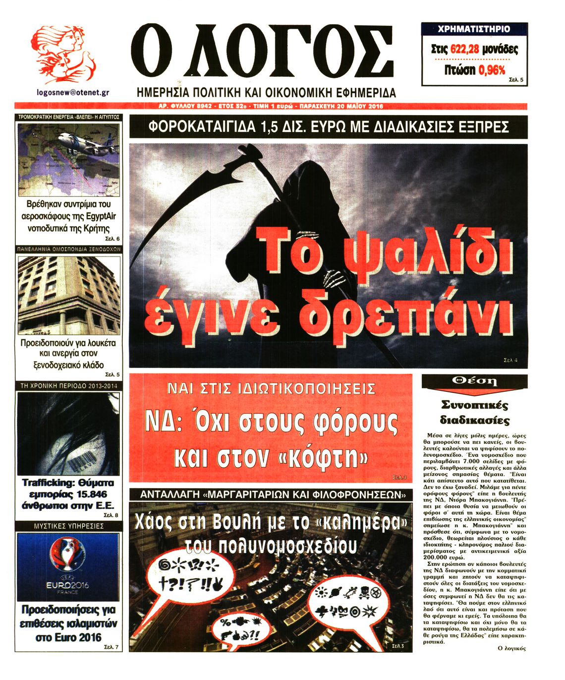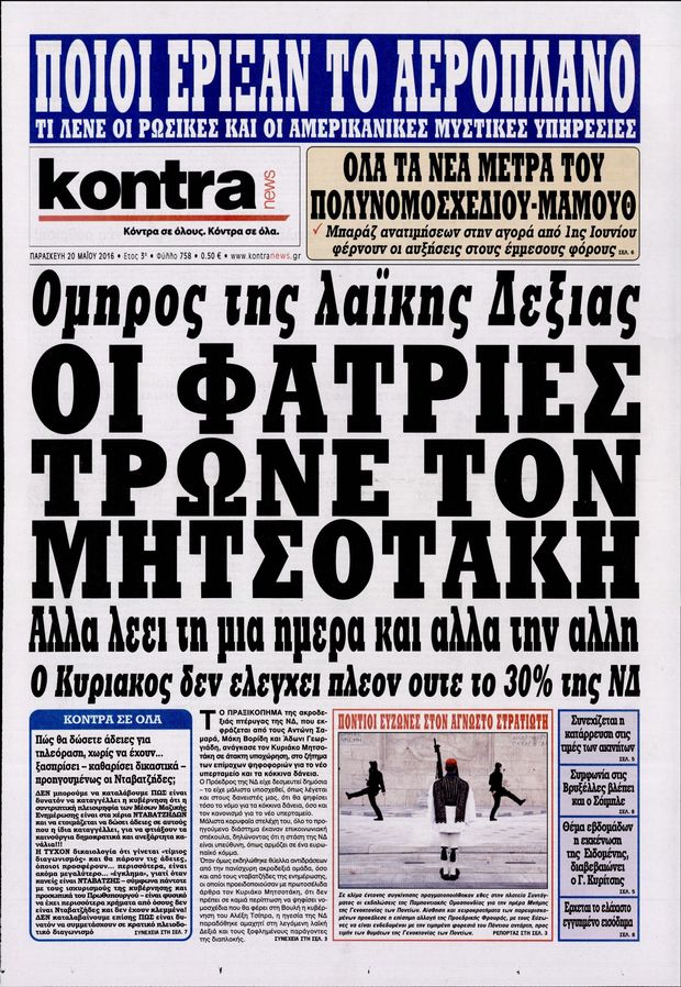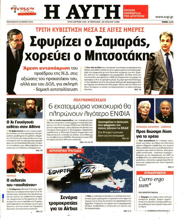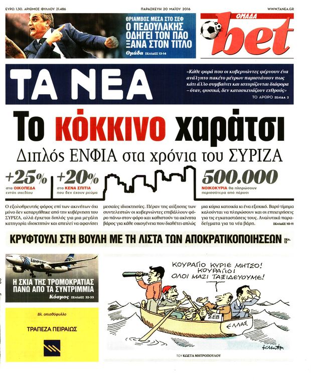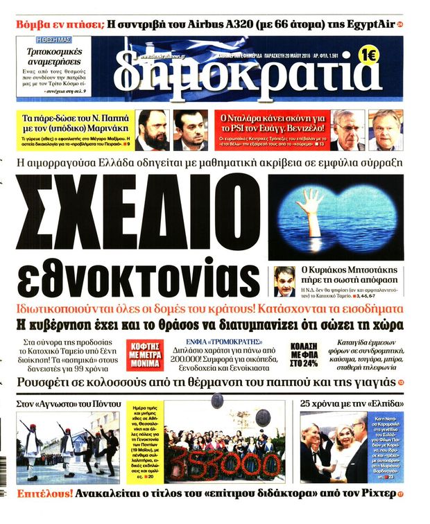 Oι πολιτικές εφημερίδες 20/5/2016 Enikos Newsroom 05:20, Παρασκευή 20 Μαΐου 2016 Media Διαβάστε τα σημερινά πρωτοσέλιδα των πολιτικών εφημερίδων: ΠΟΛΙΤΙΚΕΣ ΕΦΗΜΕΡΙΔΕΣ ΠΡΩΤΟΣΕΛΙΔΑ Μοιράσου το: σχολίασε κι εσύ (0 σχόλια) Ακολουθήστε το enikos.gr στο Google News και μάθετε πρώτοι όλες τις ειδήσεις Δείτε όλες τις τελευταίες ειδήσεις από την Ελλάδα και τον Κόσμο στο enikos.gr Ειδήσεις Ροή Ειδήσεων 5 ώρες πριν Καιρός: Έκτακτο δελτίο από την ΕΜΥ – Έντονο κύμα ψύχους και ισχυροί βοριάδες από το απόγευμα, σε ποιες περιοχές θα χιονίσει 35 λεπτά πριν Αγρότες: Στις 13:00 η συνάντηση με τον Μητσοτάκη την Τρίτη στο Μέγαρο Μαξίμου – Γενική συνέλευση στη Νίκαια την επόμενη μέρα 27 λεπτά πριν Ραγδαίες εξελίξεις στην Κύπρο: Η σύζυγος του Νίκου Χριστοδουλίδη παραιτείται από τον Ανεξάρτητο Φορέα Κοινωνικής Στήριξης – Καταγγέλλει «ανυπόστατες επιθέσεις» 1 ώρα πριν Προειδοποίηση Τραμπ για την Κούβα: «Πρέπει να κάνουν μία συμφωνία πριν να είναι πολύ αργά» 4 ώρες πριν Daily Mail: Σχέδιο εισβολής στη Γροιλανδία ζήτησε ο Τραμπ από τις ειδικές δυνάμεις – Οι πιέσεις από τα «γεράκια» της πολιτικής και οι αντιδράσεις 59 λεπτά πριν Τα 5 ζώδια που θα δουν την ερωτική ζωή τους να αλλάζει ριζικά αυτή την εβδομάδα – «Αφήστε τα πάντα να εξελιχθούν ακριβώς όπως είναι γραφτό» 5 ώρες πριν Αν σας ενοχλούν αυτές οι 11 συμπεριφορές, ο εγκέφαλός σας επεξεργάζεται τις πληροφορίες πιο γρήγορα από τους υπόλοιπους 6 ώρες πριν «Δεν μπορούσα να περπατήσω για πάνω από 5 λεπτά – Η απώλεια 76 κιλών μου έσωσε τη ζωή» – Όσα εξομολογείται γυναίκα για τη μάχη της με το βάρος 2 ώρες πριν Τι προκαλεί τις ισχυρές ηλιακές εκλάμψεις; Οι επιστήμονες επιτέλους έλυσαν το μυστήριο 3 λεπτά πριν Ισραήλ: Ο στρατός εξέδωσε προειδοποίηση για εκκένωση περιοχών στον Λίβανο – «Σύντομα θα χτυπηθούν στρατιωτικές υποδομές της Χεζμπολάχ» 11 λεπτά πριν Σάλος με τα «πορτάκια για σκύλους» στο τείχος στα σύνορα ΗΠΑ-Μεξικού – «Κάποια ζώα απειλούνται ακόμη και με λιμοκτονία» προειδοποιούν οι ειδικοί στην άγρια ζώη 19 λεπτά πριν Τρεις συλλήψεις για επικίνδυνη οδήγηση και σούζες στη λεωφόρο Αθηνών – Δείτε βίντεο 27 λεπτά πριν Ραγδαίες εξελίξεις στην Κύπρο: Η σύζυγος του Νίκου Χριστοδουλίδη παραιτείται από τον Ανεξάρτητο Φορέα Κοινωνικής Στήριξης – Καταγγέλλει «ανυπόστατες επιθέσεις» 35 λεπτά πριν Αγρότες: Στις 13:00 η συνάντηση με τον Μητσοτάκη την Τρίτη στο Μέγαρο Μαξίμου – Γενική συνέλευση στη Νίκαια την επόμενη μέρα ENIKOS NETWORK Ζευγάρι έκανε σεξ μέσα σε μαγνητικό τομογράφο – Τι ανεξήγητο συνέβη, σύμφωνα με τους επιστήμονες; Λίπος στην κοιλιά: Το μόνο που λειτουργεί για να το αντιμετωπίσουμε αποτελεσματικά, σύμφωνα με ειδικό Επιστροφή ενοικίου: Έρχεται νέα πληρωμή-Πότε θα γίνει και ποιους θα αφορά Υπουργείο Ψηφιακής Διακυβέρνησης: Αυτά είναι τα οφέλη του νέου σύστημα ιχνηλασιμότητας των αγροτικών προϊόντων για τους κατ... Ο Google Assistant θα παραμείνει λίγο περισσότερο για ορισμένους χρήστες Android Τεστ προσωπικότητας: Το βάζο που θα επιλέξετε αποκαλύπτει πώς λύνετε προβλήματα στη ζωή σας περισσότερα 13:34 , Κυριακή 11 Ιανουαρίου 2026 Σήμερα με τη Realnews: Μυστηριώδης εξαφάνιση – Ένα καθηλωτικό θρίλερ γεμάτο αγωνία από τον διεθνώς αναγνωρισμένο συγγραφέα Rick Mofina Σήμερα με τη Realnews: Μυστηριώδης εξαφάνιση –Ένα καθηλωτικό θρίλερ γεμάτο αγωνία από το... 13:23 , Κυριακή 11 Ιανουαρίου 2026 Τηλεθέαση 10/1: Οι νικητές και οι χαμένοι του Σαββάτου Δύσκολη μέρα ήταν για αρκετές εκπομπές το Σά