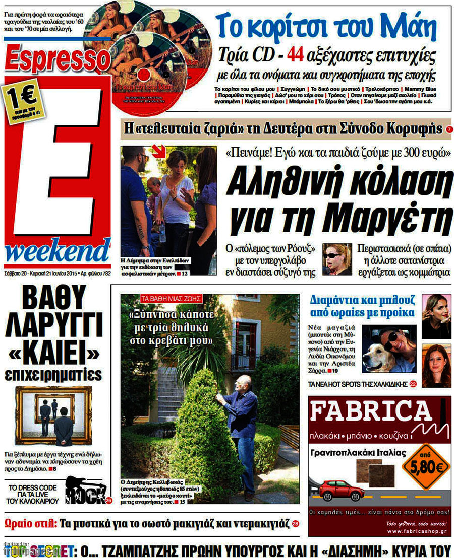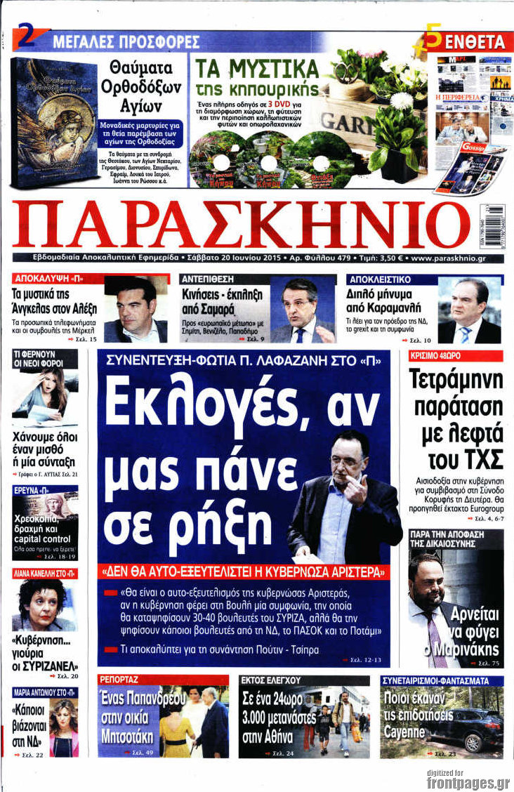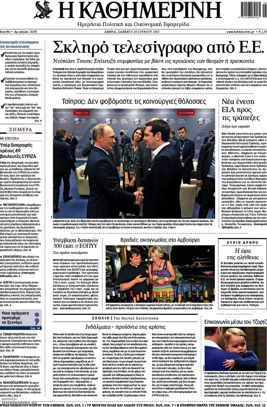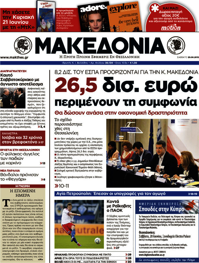 Οι πολιτικές εφημερίδες 20/6/2015 Enikos Newsroom 07:51, Σάββατο 20 Ιουνίου 2015 Media Διαβάστε τα σημερινά πρωτοσέλιδα των πολιτικών εφημερίδων. ΕΦΗΜΕΡΙΔΕΣ ΠΟΛΙΤΙΚΕΣ ΕΦΗΜΕΡΙΔΕΣ ΠΡΩΤΟΣΕΛΙΔΑ Μοιράσου το: σχολίασε κι εσύ (0 σχόλια) Ακολουθήστε το enikos.gr στο Google News και μάθετε πρώτοι όλες τις ειδήσεις Δείτε όλες τις τελευταίες ειδήσεις από την Ελλάδα και τον Κόσμο στο enikos.gr Ειδήσεις Ροή Ειδήσεων 8 ώρες πριν Χριστούγεννα στα μπλόκα: Επιμένουν στις κινητοποιήσεις τους οι αγρότες – Ανοίγουν τα διόδια το Σαββατοκύριακο 8 ώρες πριν Ουκρανία: Η άνευ προηγουμένου επίθεση σε ρωσικό τάνκερ στη Μεσόγειο και το μήνυμα προς στον Πούτιν – Το «μακρύ χέρι» του Κιέβου 8 ώρες πριν Πούτιν: Τα μηνύματα σε Ευρώπη και ΝΑΤΟ από το μαραθώνιο «σόου» του – Η απαίτηση για «σεβασμό» και η ειρήνη «με τους όρους» της Μόσχας 7 ώρες πριν ΗΠΑ: Η κυβέρνηση του Ντόναλντ Τραμπ άρχισε να δημοσιοποιεί τα αρχεία Έπσταϊν 7 ώρες πριν Άνω Λιόσια: Πυροβολισμοί σε επιχείρηση με χαλιά – Εντοπίστηκαν 10 κάλυκες 33 λεπτά πριν Αυγά: Πόσα μπορείτε να τρώτε την ημέρα με ασφάλεια για μέγιστη πρόσληψη πρωτεΐνης 1 ώρα πριν Τα ζώδια σήμερα, Σάββατο 20 Δεκεμβρίου: Παρθένοι, το σύμπαν σας δίνει το κλειδί 8 ώρες πριν Ανακαλύφθηκαν αρχαία χρυσά νομίσματα 2.200 ετών που απεικονίζουν τον θεό Απόλλωνα – Η άγνωστη σύνδεση με τον Φίλιππο Β΄ της Μακεδονίας 9 ώρες πριν Ύπνος: Μια κρυφή κατάσταση του εγκεφάλου πριν από τον ύπνο μπορεί να είναι το “κλειδί” για υψηλή ευφυΐα και δημιουργικότητα 9 λεπτά πριν Κολομβία: Είκοσι χρόνια κάθειρξη σε πρώην ανώτερο αξιωματικό για 72 εκτελέσεις αμάχων 17 λεπτά πριν Οπτική ψευδαίσθηση: Μόνο αν είσαι ο Σέρλοκ Χολμς θα βρεις τον αριθμό «87» σε 7 δευτερόλεπτα 24 λεπτά πριν Σαρωτικοί οι έλεγχοι στους δρόμους ενόψει εορτών – Μπλόκα της τροχαίας σε κεντρικές αρτηρίες της Αττικής 33 λεπτά πριν Αυγά: Πόσα μπορείτε να τρώτε την ημέρα με ασφάλεια για μέγιστη πρόσληψη πρωτεΐνης 39 λεπτά πριν Σαν σήμερα 20 Δεκεμβρίου: Τα σημαντικότερα γεγονότα της ημέρας ENIKOS NETWORK Το ΕΚΑΒ τιμήθηκε από την Ακαδημία Αθηνών για τα 40 χρόνια προσφοράς του Έχετε πραγματικά μεγάλη καρδιά; 10 χαρακτηριστικά όσων έχουν καλοσύνη Αναστολή μέτρων αναγκαστικής εκτέλεσης για κτηνοτρόφους που πλήττονται από την ευλογιά των αιγοπροβάτων Πλήρης επάρκεια προϊόντων στις λαϊκές της Αττικής, παρά τις αγροτικές κινητοποιήσεις – Τι απαντούν οι πωλητές Χαρτογραφώντας το «σημείο χωρίς επιστροφή»: Για πρώτη φορά αποκαλύπτεται με λεπτομέρεια το ακανθώδες όριο της ατμόσφαιρας τ... Η Google καταργεί τη λειτουργία «dark web report» – Πώς θα μπορούν οι χρήστες να διαγράφουν τα δεδομένα τους περισσότερα 05:48 , Σάββατο 20 Δεκεμβρίου 2025 Οι οικονομικές εφημερίδες 20/12/2025 Διαβάστε τα πρωτοσέλιδα από τις οικονομικές εφημερίδες, σήμερα 20/12/2025. 05:43 , Σάββατο 20 Δεκεμβρίου 2025 Οι αθλητικές εφημερίδες 20/12/2025 Διαβάστε τα πρωτοσέλιδα από τις αθλητικές εφημερίδες, σήμερα 20/12/2025. 05:38 , Σάββατο 20 Δεκεμβρίου 2025 Οι πολιτικές εφημερίδες 20/12/2025 Διαβάστε τα πρωτοσέλιδα από τις πολιτικές εφημερίδες, σήμερα 20/12/2025. 04:20 , Σάββατο 20 Δεκεμβρίου 2025 Αγγελική Νικολούλη: Τα συλλυπητήρια για την απώλεια της Ειρήνης Μαρινάκη Τα συλληπητήρια στον πρόεδρο του Mega, τον Βαγγέλη Μαρινάκη, για την απώλεια της μητέρας του Ε... ΤΕΛΕΥΤΑΙΕΣ ΕΙΔΗΣΕΙΣ 9 λεπτά πριν Κολομβία: Είκοσι χρόνια κάθειρξη σε πρώην ανώτερο... 17 λεπτά πριν Οπτική ψευδαίσθηση: Μόνο αν είσαι ο Σέρλοκ Χολμς θα... 24 λεπτά πριν Σαρωτικοί οι έλεγχοι στου