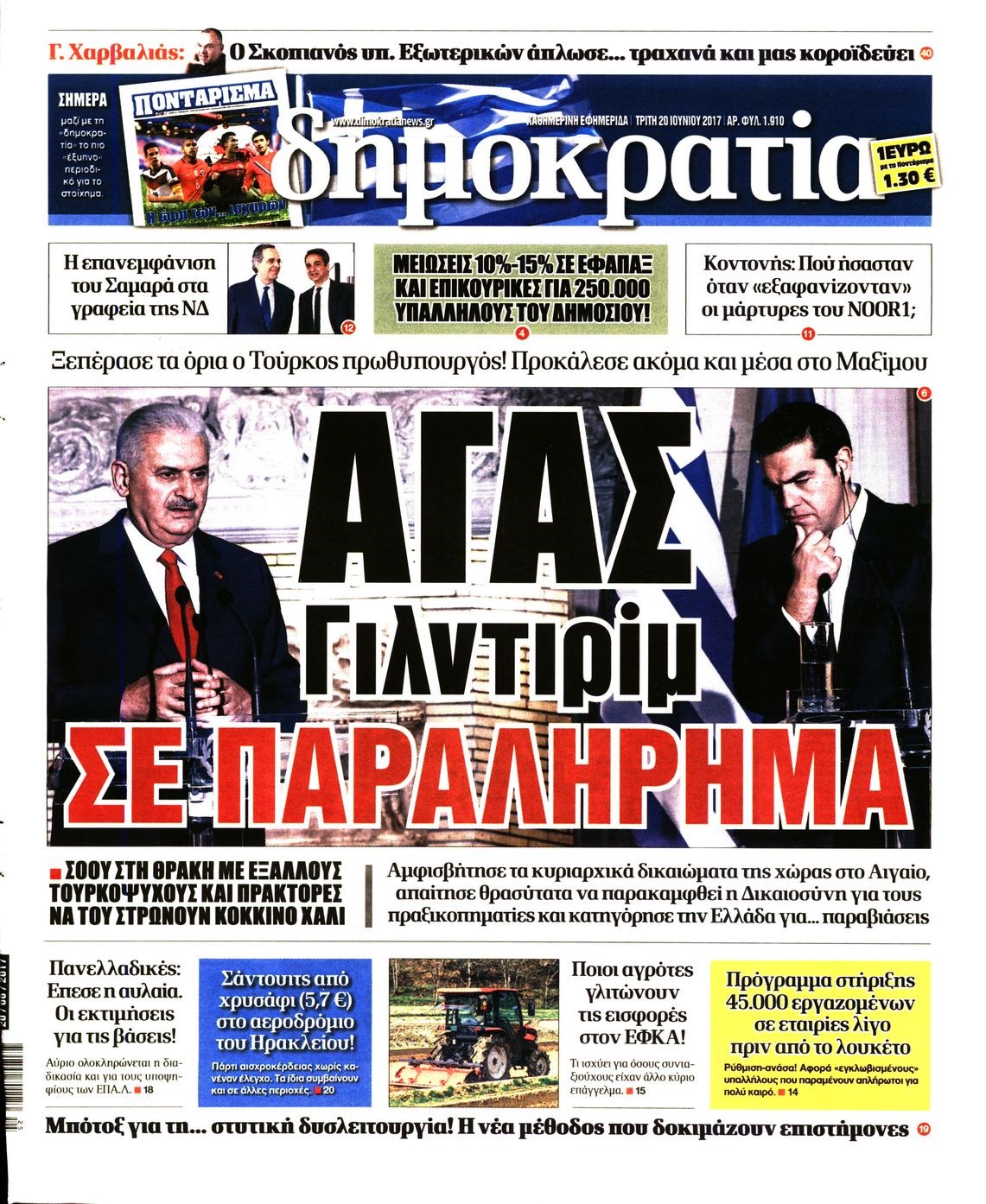Οι πολιτικές εφημερίδες 20/6/2017 Enikos Newsroom 07:11, Τρίτη 20 Ιουνίου 2017 Media Διαβάστε τα σημερινά πρωτοσέλιδα των πολιτικών εφημερίδων: ΠΟΛΙΤΙΚΕΣ ΕΦΗΜΕΡΙΔΕΣ ΠΡΩΤΟΣΕΛΙΔΑ Μοιράσου το: σχολίασε κι εσύ (0 σχόλια) Ακολουθήστε το enikos.gr στο Google News και μάθετε πρώτοι όλες τις ειδήσεις Δείτε όλες τις τελευταίες ειδήσεις από την Ελλάδα και τον Κόσμο στο enikos.gr Ειδήσεις Ροή Ειδήσεων 2 ώρες πριν Ευρωπαϊκή Ένωση: Συμφωνία για δάνειο 90 δισ. ευρώ στην Ουκρανία τη διετία 2026-2027 6 ώρες πριν ΟΠΕΚΕΠΕ: Προφυλακιστέος ο φερόμενος αρχηγός και ο λογιστής της εγκληματικής οργάνωσης 8 ώρες πριν Αυξάνουν την πίεση προς την κυβέρνηση οι αγρότες: Κλείνουν παρακαμπτήριους και ανοίγουν διόδια – Τι θα γίνει τις γιορτές 7 ώρες πριν Φοινικούντα: Το Σάββατο απολογείται ο 30χρονος γιος γνωστού επιχειρηματία της Πλάκας που παραδόθηκε – Όσα είπε στους αστυνομικούς και ο ρόλος του στο έγκλημα 6 ώρες πριν ΑΕΚ – Κραϊόβα 3-2: Επική ανατροπή και πρόκριση στους «16» του Conference League η Ένωση 7 ώρες πριν Αρχαιολόγοι ανακάλυψαν ρωμαϊκά τεχνουργήματα από μια πόλη που δεν υπήρξε ποτέ – Τα τρία εντυπωσιακά κτίρια και ο αμφορέας με τις… σαρδέλες 8 ώρες πριν Ύπνος: Η απλή βραδινή ρουτίνα για να προστατεύσετε τα μαλλιά σας από το κρύο κατά τη διάρκεια του χειμώνα 9 ώρες πριν Manifesting: Πώς να συναντήσετε τον σύντροφο της ζωής σας, ανάλογα με τον μήνα γέννησής σας 2 ημέρες πριν 20 χρόνια τα Χριστούγεννα ξεκινούν στα Public με μεγάλη ποικιλία σε δώρα! 6 λεπτά πριν Αθήνα: Βρέθηκε η 16χρονη που είχε εξαφανιστεί από τις 6 Δεκεμβρίου – Η ανακοίνωση από το «Χαμόγελο του Παιδιού» 15 λεπτά πριν Κρύα χέρια και πόδια: Γιατρός εξηγεί ποια είναι η αίτια και πότε πρέπει να ανησυχήσετε 21 λεπτά πριν Σαν σήμερα 19 Δεκεμβρίου: Τα σημαντικότερα γεγονότα της ημέρας 26 λεπτά πριν Οι οικονομικές εφημερίδες 19/12/2025 31 λεπτά πριν Οι αθλητικές εφημερίδες 19/12/2025 ENIKOS NETWORK Σε περίοδο αυξημένης δραστηριότητας η γρίπη στην Ελλάδα-Μέτρα προστασίας από τον ΕΟΔΥ Σκέφτεστε συνέχεια συζητήσεις που έχετε κάνει; Τι σημαίνει αυτό, σύμφωνα με ειδικό Στεγαστικό: Τι λέει η ΠΟΜΙΔΑ για τα νέα μέτρα που ανακοίνωσε ο Κυριάκος Μητσοτάκης Λαγκάρντ: Αισιόδοξη για την ανάπτυξη της Ευρωζώνης, αβέβαιη για τον πληθωρισμό Χαρτογραφώντας το «σημείο χωρίς επιστροφή»: Για πρώτη φορά αποκαλύπτεται με λεπτομέρεια το ακανθώδες όριο της ατμόσφαιρας τ... Η Google καταργεί τη λειτουργία «dark web report» – Πώς θα μπορούν οι χρήστες να διαγράφουν τα δεδομένα τους περισσότερα 05:48 , Παρασκευή 19 Δεκεμβρίου 2025 Οι οικονομικές εφημερίδες 19/12/2025 Διαβάστε τα πρωτοσέλιδα από τις οικονομικές εφημερίδες, σήμερα 19/12/2025. 05:43 , Παρασκευή 19 Δεκεμβρίου 2025 Οι αθλητικές εφημερίδες 19/12/2025 Διαβάστε τα πρωτοσέλιδα από τις αθλητικές εφημερίδες, σήμερα 19/12/2025. 05:38 , Παρασκευή 19 Δεκεμβρίου 2025 Οι πολιτικές εφημερίδες 19/12/2025 Διαβάστε τα πρωτοσέλιδα από τις πολιτικές εφημερίδες, σήμερα 19/12/2025. 02:50 , Παρασκευή 19 Δεκεμβρίου 2025 GNTM: «Κλείδωσαν» οι τέσσερις φιναλίστ – Μεγάλη ανατροπή στις τελευταίες αποχωρήσεις Για προτελευταία φορά εμφανίστηκαν στο πλατό του GNTM οι φιναλίστ του φετινού κύκλου, το βράδυ... ΤΕΛΕΥΤΑΙΕΣ ΕΙΔΗΣΕΙΣ 6 λεπτά πριν Αθήνα: Βρέθηκε η 16χρονη που είχε εξαφανιστεί από τις 6... 15 λεπτά πριν Κρύα χέρια και πόδια: Γιατρός εξηγεί ποια είναι η... 21 λεπτά πριν Σαν σήμερα 19 Δεκεμβρίου: Τα σημαντικότερα γεγονότα... 26 λεπτά πριν Οι οικονομικές εφημερίδες 19/12/2025 31 λεπτά πριν Οι αθλητικές εφημερίδες 19/12/2025 36 λεπτά πριν Οι πολιτικέ