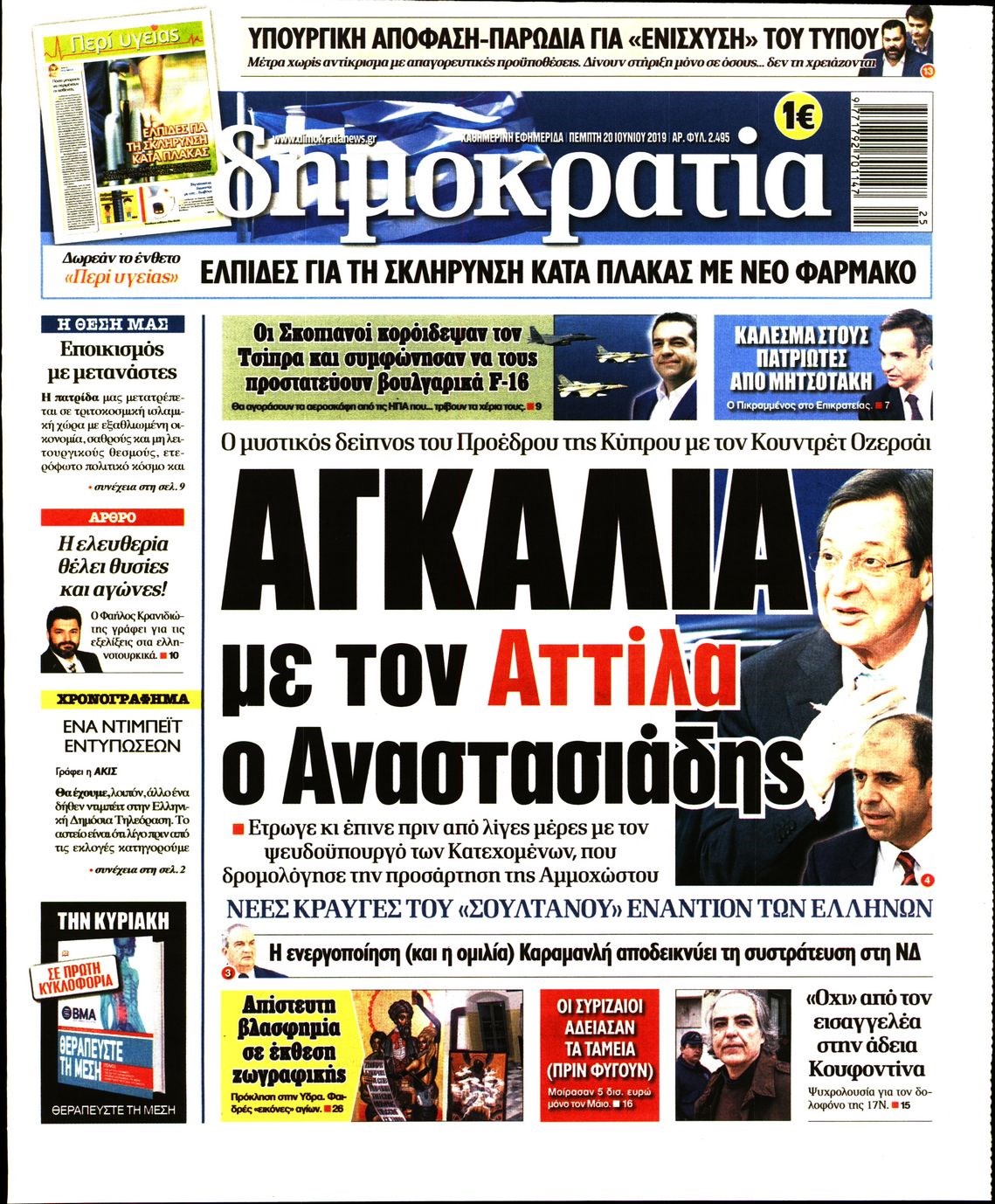 Οι πολιτικές εφημερίδες 20/6/2019 Enikos Newsroom 06:45, Πέμπτη 20 Ιουνίου 2019 Media Διαβάστε τα πρωτοσέλιδα των πολιτικών εφημερίδων: ΠΟΛΙΤΙΚΕΣ ΕΦΗΜΕΡΙΔΕΣ ΠΡΩΤΟΣΕΛΙΔΑ Μοιράσου το: σχολίασε κι εσύ (0 σχόλια) Ακολουθήστε το enikos.gr στο Google News και μάθετε πρώτοι όλες τις ειδήσεις Δείτε όλες τις τελευταίες ειδήσεις από την Ελλάδα και τον Κόσμο στο enikos.gr Ειδήσεις Ροή Ειδήσεων 5 ώρες πριν Χριστούγεννα στα μπλόκα: Επιμένουν στις κινητοποιήσεις τους οι αγρότες – Ανοίγουν τα διόδια το Σαββατοκύριακο 5 ώρες πριν Ουκρανία: Η άνευ προηγουμένου επίθεση σε ρωσικό τάνκερ στη Μεσόγειο και το μήνυμα προς στον Πούτιν – Το «μακρύ χέρι» του Κιέβου 4 ώρες πριν Πούτιν: Τα μηνύματα σε Ευρώπη και ΝΑΤΟ από το μαραθώνιο «σόου» του – Η απαίτηση για «σεβασμό» και η ειρήνη «με τους όρους» της Μόσχας 5 ώρες πριν Τραμπ: Δεν αποκλείει την πιθανότητα ενός πολέμου στη Βενεζουέλα – «Ο Μαδούρο ξέρει καλύτερα από τον καθένα τι ακριβώς θέλω» 6 ώρες πριν Συνεχίζει να προκαλεί ο Μίτσκοσκι: «Για μένα το όνομα Μακεδονία είναι ιερό» 4 ώρες πριν Ανακαλύφθηκαν αρχαία χρυσά νομίσματα 2.200 ετών που απεικονίζουν τον θεό Απόλλωνα – Η άγνωστη σύνδεση με τον Φίλιππο Β΄ της Μακεδονίας 5 ώρες πριν Ύπνος: Μια κρυφή κατάσταση του εγκεφάλου πριν από τον ύπνο μπορεί να είναι το “κλειδί” για υψηλή ευφυΐα και δημιουργικότητα 6 ώρες πριν Αριθμολογία: Οι άνθρωποι που έχουν γεννηθεί αυτές τις 4 ημερομηνίες, συχνά παρεξηγούνται – «Η καλοσύνη τους κρύβει τεράστια δύναμη» 7 ώρες πριν Ξεχάστε το καθάρισμα το Σαββατοκύριακο: Ο «κανόνας των 20 λεπτών» που θα σας λύσει τα χέρια 11 λεπτά πριν Η Ελλάδα προσχωρεί στη Διεθνή Επιτροπή Αποζημιώσεων για την Ουκρανία 26 λεπτά πριν GNTM: Η Ξένια Τσίρκοβα αναδείχθηκε μεγάλη νικήτρια και πήρε τις 50.000 ευρώ – Ποιος βρέθηκε σε απόσταση αναπνοής; 41 λεπτά πριν Θεσσαλονίκη: Εξαφανίστηκε 13χρονος από χώρο φιλοξενίας ασυνόδευτων ανηλίκων στο Ωραιόκαστρο 51 λεπτά πριν Ντόναλντ Τραμπ: «Πολύ βαριά αντίποινα» στη Συρία – «Πλήττουμε πολύ δυνατά οχυρά του Ισλαμικού Κράτους» 1 ώρα πριν Εξάρχεια: Ένταση με μολότοφ, χημικά και κρότου λάμψης ENIKOS NETWORK Το ΕΚΑΒ τιμήθηκε από την Ακαδημία Αθηνών για τα 40 χρόνια προσφοράς του Έχετε πραγματικά μεγάλη καρδιά; 10 χαρακτηριστικά όσων έχουν καλοσύνη Αναστολή μέτρων αναγκαστικής εκτέλεσης για κτηνοτρόφους που πλήττονται από την ευλογιά των αιγοπροβάτων Πλήρης επάρκεια προϊόντων στις λαϊκές της Αττικής, παρά τις αγροτικές κινητοποιήσεις – Τι απαντούν οι πωλητές Χαρτογραφώντας το «σημείο χωρίς επιστροφή»: Για πρώτη φορά αποκαλύπτεται με λεπτομέρεια το ακανθώδες όριο της ατμόσφαιρας τ... Η Google καταργεί τη λειτουργία «dark web report» – Πώς θα μπορούν οι χρήστες να διαγράφουν τα δεδομένα τους περισσότερα 02:50 , Σάββατο 20 Δεκεμβρίου 2025 GNTM: Η Ξένια Τσίρκοβα αναδείχθηκε μεγάλη νικήτρια και πήρε τις 50.000 ευρώ – Ποιος βρέθηκε σε απόσταση αναπνοής; Με φαντασμαγορικό τρόπο ολοκληρώθηκε το βράδυ της Παρασκευής ο μεγάλος τελικός του GNTM, μέσα ... 22:42 , Παρασκευή 19 Δεκεμβρίου 2025 Γιώργος Γιαννόπουλος για “Το σόι σου”: “Είναι ευτυχία και ευλογία αυτή η σειρά” «Είναι ευτυχία και ευλογία η συγκυρία αυτής της σειράς», θα πει ο Γιώργος Γιαννόπουλος -ο αγαπ... 20:37 , Παρασκευή 19 Δεκεμβρίου 2025 Don’t Forget The Lyrics: Η Έλλη Κοκκίνου υποδέχεται 4 παίκτες που θα κάνουν τα πάντα για να μη χάσουν ούτε… μισή λέξη από τους στίχους Το «Don’t Forget The Lyrics» επιστρέφει απόψε, Παρασκευή 19 Δεκεμβρίου, στις 21:00 με νέο επει... 19: