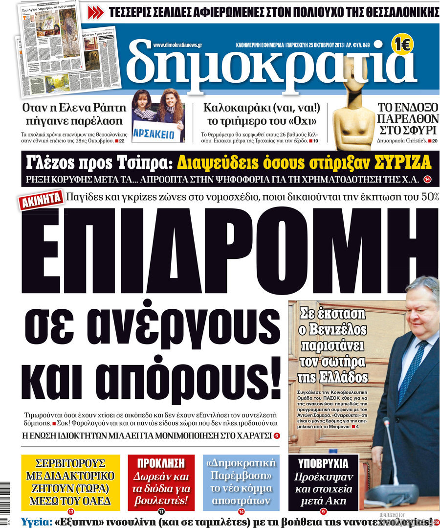Οι πολιτικές εφημερίδες Enikos Newsroom 08:43, Παρασκευή 25 Οκτωβρίου 2013 Media Οι πολιτικές εφημερίδες Διαβάστε τα πρωτοσέλιδα των πολιτικών εφημερίδων: ΕΦΗΜΕΡΙΔΕΣ ΠΟΛΙΤΙΚΕΣ ΕΦΗΜΕΡΙΔΕΣ ΠΡΩΤΟΣΕΛΙΔΑ Μοιράσου το: σχολίασε κι εσύ (0 σχόλια) Ακολουθήστε το enikos.gr στο Google News και μάθετε πρώτοι όλες τις ειδήσεις Δείτε όλες τις τελευταίες ειδήσεις από την Ελλάδα και τον Κόσμο στο enikos.gr Ειδήσεις Ροή Ειδήσεων 18 λεπτά πριν Χριστούγεννα στα μπλόκα οι αγρότες: Άνοιξαν στα διόδια και μοίρασαν προϊόντα στους πολίτες – Νέα σύσκεψη την Κυριακή στη Νίκαια 39 λεπτά πριν Κύκλωμα διακίνησης ναρκωτικών σε σχολεία: Τηλεφωνούσαν στους ανηλίκους την ώρα του μαθήματος – Οι διάλογοι-σοκ, τα «ψευδώνυμα» και τα βασανιστήρια 8 λεπτά πριν Αρχεία Επστάιν: Οι 500 σελίδες που λείπουν, τα αναπάντητα ερωτήματα και οι επώνυμοι – Τι έπεται 2 ώρες πριν Ζελένσκι: Μόνο οι ΗΠΑ και ο Τραμπ μπορούν να πιέσουν τη Ρωσία να βάλει τέλος στον πόλεμο 2 ώρες πριν Φοινικούντα: Προφυλακιστέος ο 30χρονος για συνέργεια στη διπλή δολοφονία – Και άλλα πρόσωπα στο «μικροσκόπιο» 2 ώρες πριν Αριθμολογία: Ο αριθμός του φύλακα αγγέλου σας, με βάση τον μήνα γέννησής σας – «Έτσι σας στέλνει σημάδια το σύμπαν» 3 ώρες πριν Πώς να απαλλαγείτε από τη μυρωδιά του τηγανητού φαγητού: Το μυστικό βρίσκεται στην κουζίνα σας 14 ώρες πριν Enerwave: Το νέο «ρεύμα» στη λιανική ενέργειας που αλλάζει την εμπειρία του καταναλωτή 1 ώρα πριν Ύπνος: Η διατροφή που μπορεί να σας βοηθήσει να κοιμάστε καλύτερα και να ζήσετε περισσότερο 4 λεπτά πριν Αποκαλύφθηκε το άγνωστο «GPS» της αρχαιότητας – Πώς οι ναοί «φώτιζαν» τον δρόμο των ναυτικών πριν από την εφεύρεση των φάρων 8 λεπτά πριν Αρχεία Επστάιν: Οι 500 σελίδες που λείπουν, τα αναπάντητα ερωτήματα και οι επώνυμοι – Τι έπεται 18 λεπτά πριν Χριστούγεννα στα μπλόκα οι αγρότες: Άνοιξαν στα διόδια και μοίρασαν προϊόντα στους πολίτες – Νέα σύσκεψη την Κυριακή στη Νίκαια 28 λεπτά πριν Ολυμπιακός – Κηφισιά 1-1: Δεύτερη σερί ισοπαλία για τους Ερυθρόλευκους – Υπό… αμφισβήτηση η κορυφή της Super League 39 λεπτά πριν Κύκλωμα διακίνησης ναρκωτικών σε σχολεία: Τηλεφωνούσαν στους ανηλίκους την ώρα του μαθήματος – Οι διάλογοι-σοκ, τα «ψευδώνυμα» και τα βασανιστήρια ENIKOS NETWORK Οι γυναίκες αποκαλύπτουν το πιο ελκυστικό πράγμα που μπορεί να κάνει ένας άνδρας Ομορφιά και αντιγήρανση: Ειδικοί μιλούν για συσκευές περιποίησης του δέρματος Ακύρωση ΑΦΜ για απάτες – Ποιους βάζει στο στόχαστρο η ΑΑΔΕ Ρεύμα: Πώς μπορείτε να αλλάξετε πάροχο γρήγορα και εύκολα – Τα βήματα της διαδικασίας Χαρτογραφώντας το «σημείο χωρίς επιστροφή»: Για πρώτη φορά αποκαλύπτεται με λεπτομέρεια το ακανθώδες όριο της ατμόσφαιρας τ... Η Google καταργεί τη λειτουργία «dark web report» – Πώς θα μπορούν οι χρήστες να διαγράφουν τα δεδομένα τους περισσότερα 20:30 , Σάββατο 20 Δεκεμβρίου 2025 Αυτή την Κυριακή με τη Realnews: Instyle, μαζί Drive και Realnews Geopolitics Αυτή την Κυριακή με τη Realnews: Instyle, μαζί Drive και Realnews Geopolitics Instyle Η Άννα Ρ... 20:28 , Σάββατο 20 Δεκεμβρίου 2025 Ο ΑΝΤ1 γεμίζει τις γιορτές με μουσική – Ποιους καλλιτέχνες θα απολαύσουμε Φέτος στον ΑΝΤ1 γιορτάζουμε τις νύχτες μας παρέα με αγαπημένους καλλιτέχνες και μεγάλες μουσι... 18:19 , Σάββατο 20 Δεκεμβρίου 2025 HOTΕΛ ΕΛVIRA: Η Ελβίρα μαθαίνει πως ο Χάρι μένει κρυφά στο ξενοδοχείο του Παντελή Συνεχίζονται οι εκλογές για πρόεδρο, στο νέο επεισόδιο της κωμικής σειράς του MEGA, HOTΕΛ ΕΛVI... 14:04 , Σάββατο 20 Δεκεμβρίου 2025 Η Realnews αυτής της Κυριακής (21/12/2025) 