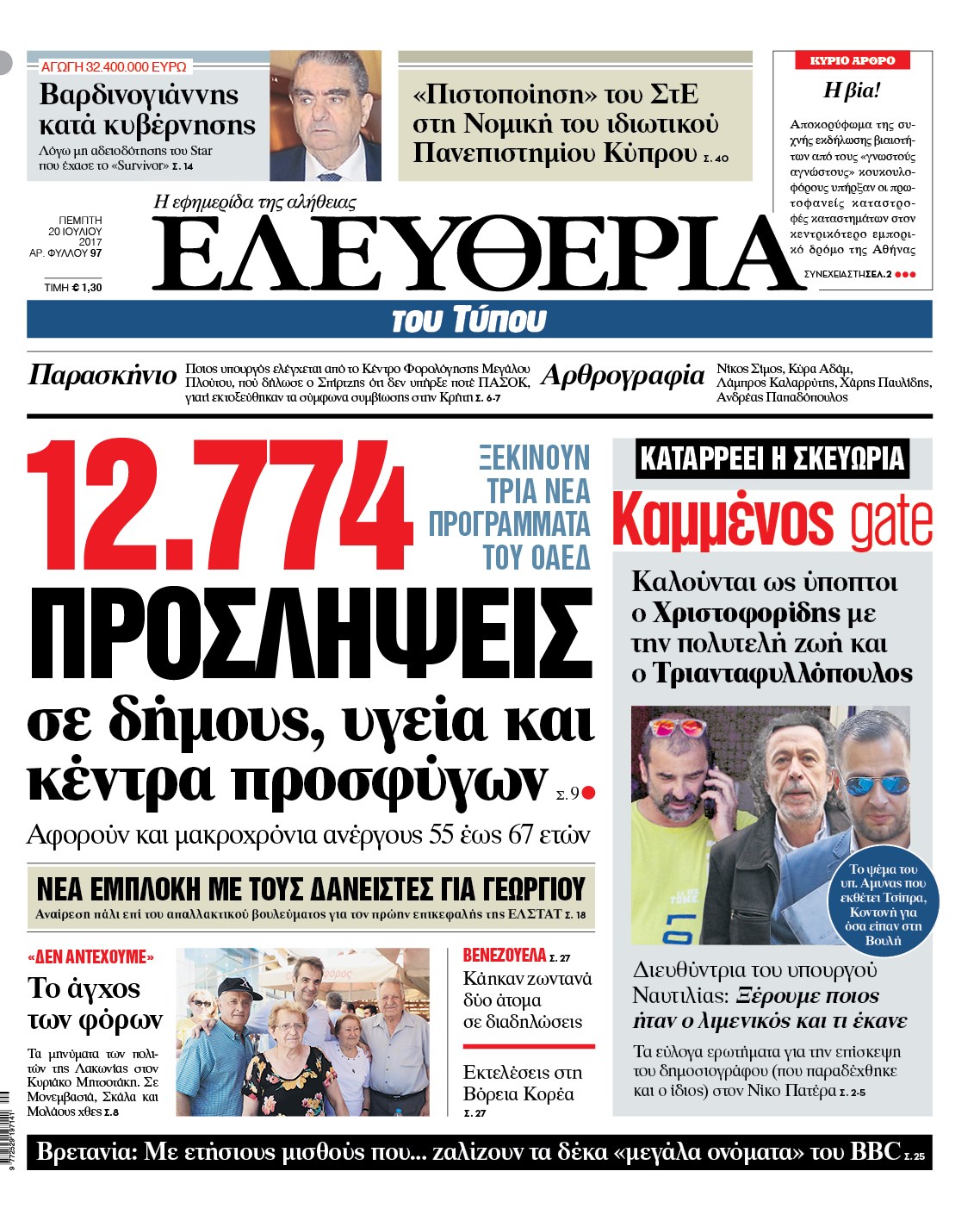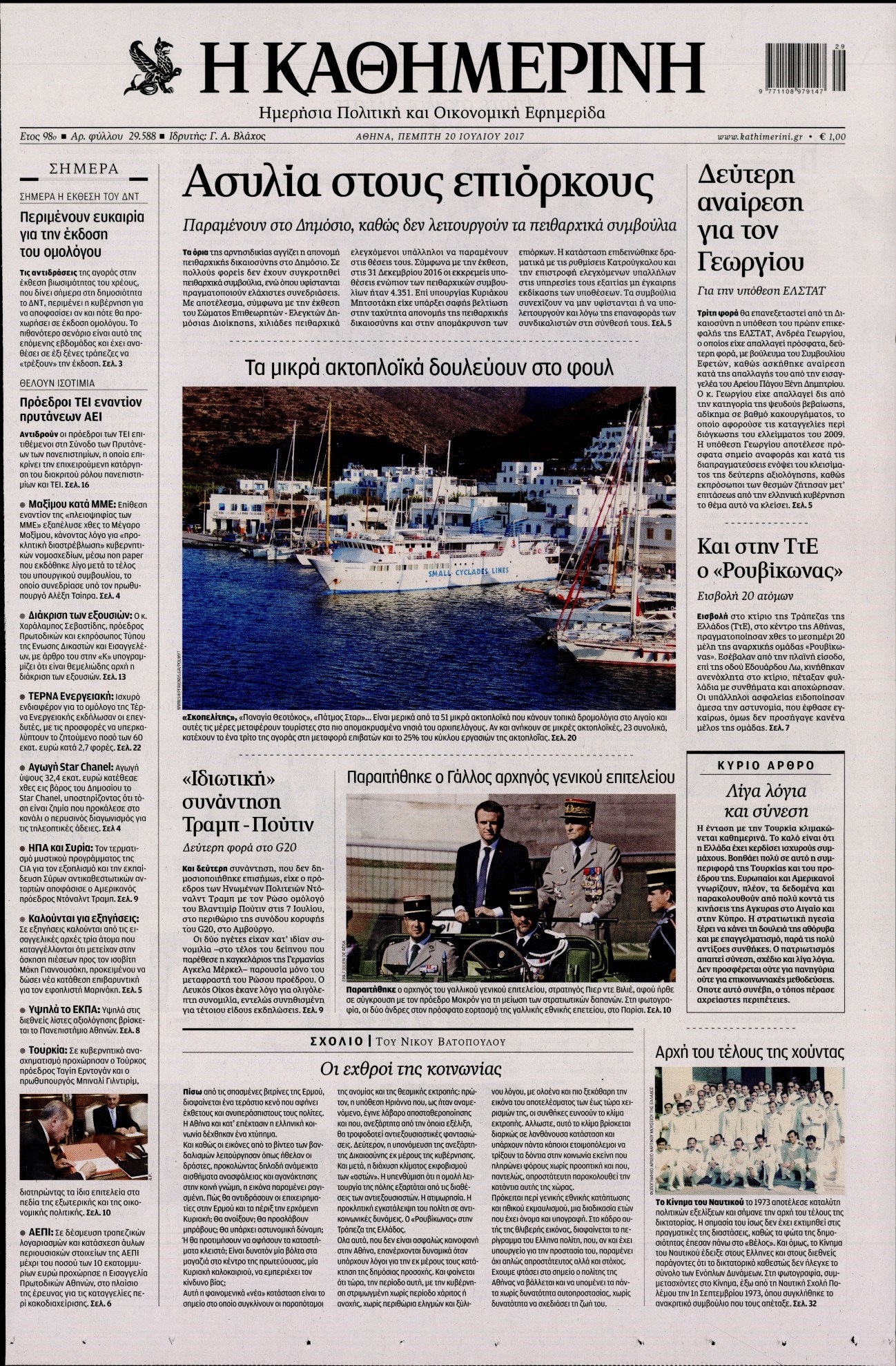 Οι πολιτικές εφημερίδες 20/7/2017 Enikos Newsroom 07:36, Πέμπτη 20 Ιουλίου 2017 Media Διαβάστε τα σημερινά πρωτοσέλιδα των πολιτικών εφημερίδων: ΠΟΛΙΤΙΚΕΣ ΕΦΗΜΕΡΙΔΕΣ ΠΡΩΤΟΣΕΛΙΔΑ Μοιράσου το: σχολίασε κι εσύ (0 σχόλια) Ακολουθήστε το enikos.gr στο Google News και μάθετε πρώτοι όλες τις ειδήσεις Δείτε όλες τις τελευταίες ειδήσεις από την Ελλάδα και τον Κόσμο στο enikos.gr Ειδήσεις Ροή Ειδήσεων 2 ώρες πριν Γιορτές με μπλόκα για τους αγρότες: Ανοίγουν διόδια και μοιράζουν προϊόντα στους ταξιδιώτες 2 ώρες πριν Τα αρχεία του Έπσταϊν αποκαλύπτουν φωτογραφία του έκπτωτου πρίγκιπα Άντριου – Είναι ξαπλωμένος στην αγκαλιά 5 γυναικών 1 ώρα πριν Νέες ταυτότητες: Μεγάλη αναμονή για ραντεβού στην Αττική – Τέλος τα ταξίδια εκτός Ελλάδος από τον Αύγουστο για όσους δεν έχουν αλλάξει 2 ώρες πριν Εξαφάνιση 33χρονου γιατρού στην Κρήτη: «Άναψα τα φώτα, τρόμαξε και άρχισε να τρέχει στα χωράφια» – Η τελευταία διαδρομή και η μαρτυρία «κλειδί» 31 λεπτά πριν Ινδία: Επτά ελέφαντες σκοτώθηκαν κατά τη σύγκρουση επιβατικού τρένου με κοπάδι 2 ώρες πριν Μία νέα «χρυσή» περίοδος αρχίζει για 3 ζώδια από σήμερα – «Μία αναπάντεχη ευκαιρία οδηγεί στην επιτυχία» 4 ώρες πριν Αρχαιολόγοι ανακάλυψαν σε χωράφι απεικόνιση 600 ετών ενός Αγίου – Τα στοιχεία που δείχνουν ότι μαρτύρησε 3 ώρες πριν Αγχώνεται για το χριστουγεννιάτικο δώρο που πήρε στην πλούσια σύντροφό του – «Φοβάμαι πως θα το βρει φθηνιάρικο, φοράει βραχιόλια Cartier» 29 λεπτά πριν Διαιτολόγος αποκαλύπτει 9 πρωινές συνήθειες που «λιώνουν» το κοιλιακό λίπος – «Υποστηρίζουν την υγιεινή απώλεια βάρους» 8 λεπτά πριν Χρήστος Μάντακας: «Θα μπορούσα να είχα φύγει από τη ζωή, δεν μπορούσα να περπατήσω…» 15 λεπτά πριν Εντυπωσιακό βίντεο από «τσουνάμι» πάγου στη Σιβηρία – Πώς προκαλείται το σπάνιο φαινόμενο 23 λεπτά πριν Μυλωνάκης κατά Τζάκρη: Την καλώ να ανασκευάσει το αδιανόητο ψέμα της. Η ανοχή έχει και τα όρια της» 29 λεπτά πριν Διαιτολόγος αποκαλύπτει 9 πρωινές συνήθειες που «λιώνουν» το κοιλιακό λίπος – «Υποστηρίζουν την υγιεινή απώλεια βάρους» 31 λεπτά πριν Ινδία: Επτά ελέφαντες σκοτώθηκαν κατά τη σύγκρουση επιβατικού τρένου με κοπάδι ENIKOS NETWORK Είστε μόνιμα απρόσεκτοι; 3 σημάδια που δείχνουν ότι μπορεί να είναι σύμπτωμα πάθησης Πόσα κιλά παίρνουμε πραγματικά τα Χριστούγεννα, σύμφωνα με την επιστήμη – Πώς να το αποτρέψουμε; Χριστούγεννα και Πρωτοχρονιά: Πώς αμείβονται όσοι εργαστούν e-ΕΦΚΑ και ΔΥΠΑ: Έρχονται νέες πληρωμές έως τις 24 Δεκεμβρίου – Ποιοι πάνε ταμείο Χαρτογραφώντας το «σημείο χωρίς επιστροφή»: Για πρώτη φορά αποκαλύπτεται με λεπτομέρεια το ακανθώδες όριο της ατμόσφαιρας τ... Η Google καταργεί τη λειτουργία «dark web report» – Πώς θα μπορούν οι χρήστες να διαγράφουν τα δεδομένα τους περισσότερα 11:41 , Σάββατο 20 Δεκεμβρίου 2025 «Η αγάπη δεν χάνεται ποτέ»: Η μικρού μήκους ταινία κινουμένων σχεδίων που θέτει ερωτήματα για τη ζωή και τον θάνατο Ο θάνατος είναι ένα από τα πιο σκληρά θέματα που καλείται να διαχειριστεί κάποιος στη διάρκεια... 09:30 , Σάββατο 20 Δεκεμβρίου 2025 «Porto Leone: Στη γειτονιά με τα κόκκινα φανάρια» – Ο Χρόνης αποκαλύπτει στην Αλεξάνδρα το μυστικό για το παιδί της Λένας Η μεγάλη δραματική σειρά του Apha «Porto Leone: Στη γειτονιά με τα κόκκινα φανάρια» μας μεταφέ... 08:14 , Σάββατο 20 Δεκεμβρίου 2025 Τρομεροί γονείς: Η Μαρία Καβογιάννη εισβάλλει στο σπίτι της οικογένειας Στεφανίδη Όσα θα δούμε στο νέο διπλό επεισόδιο της σειράς «Τρομεροί γονείς», σήμερα Σάββατο