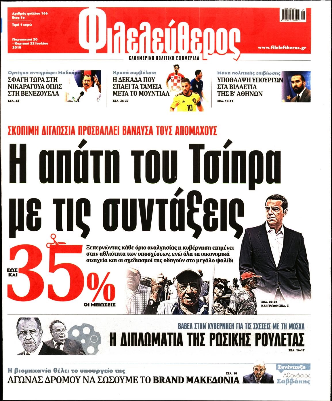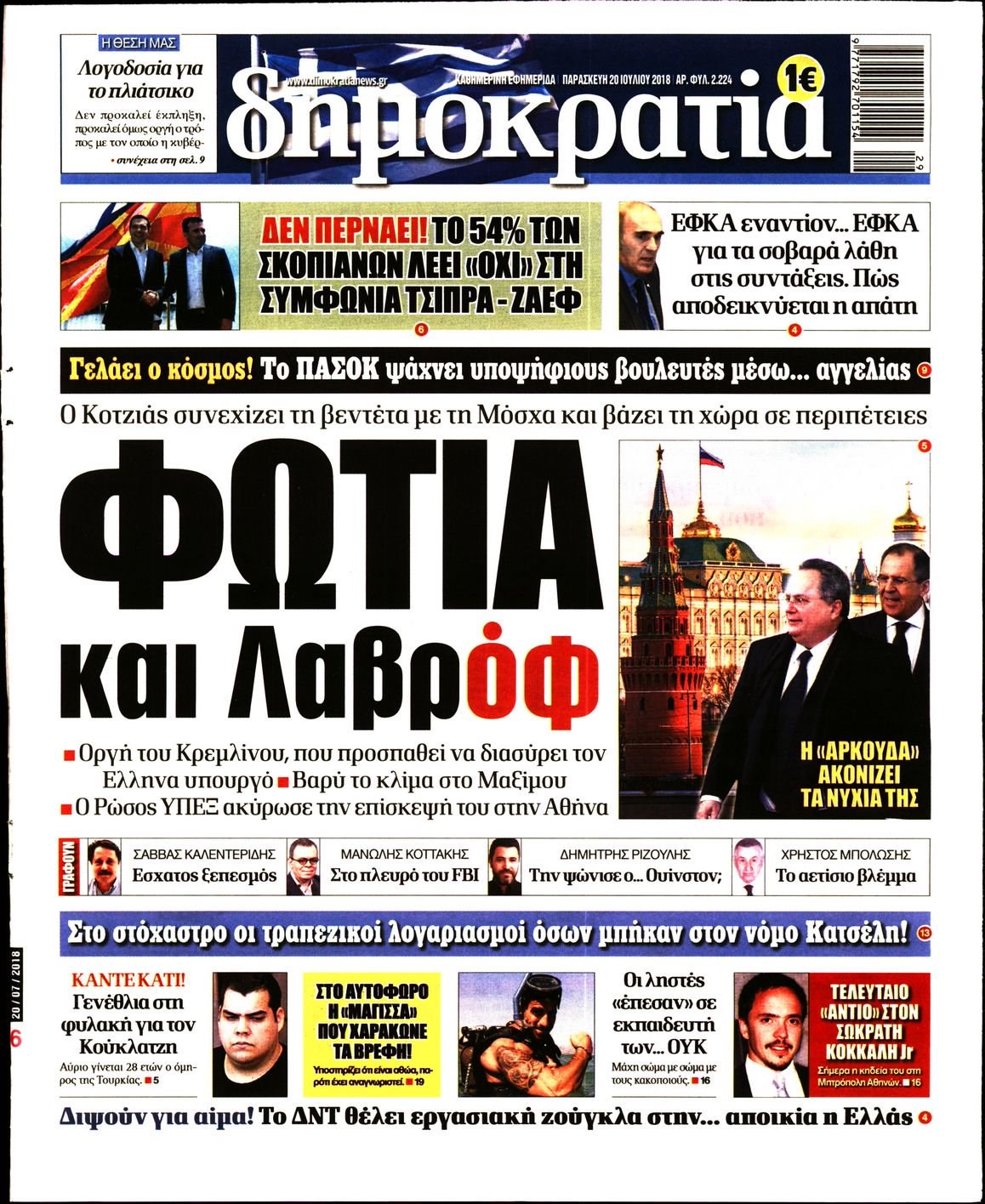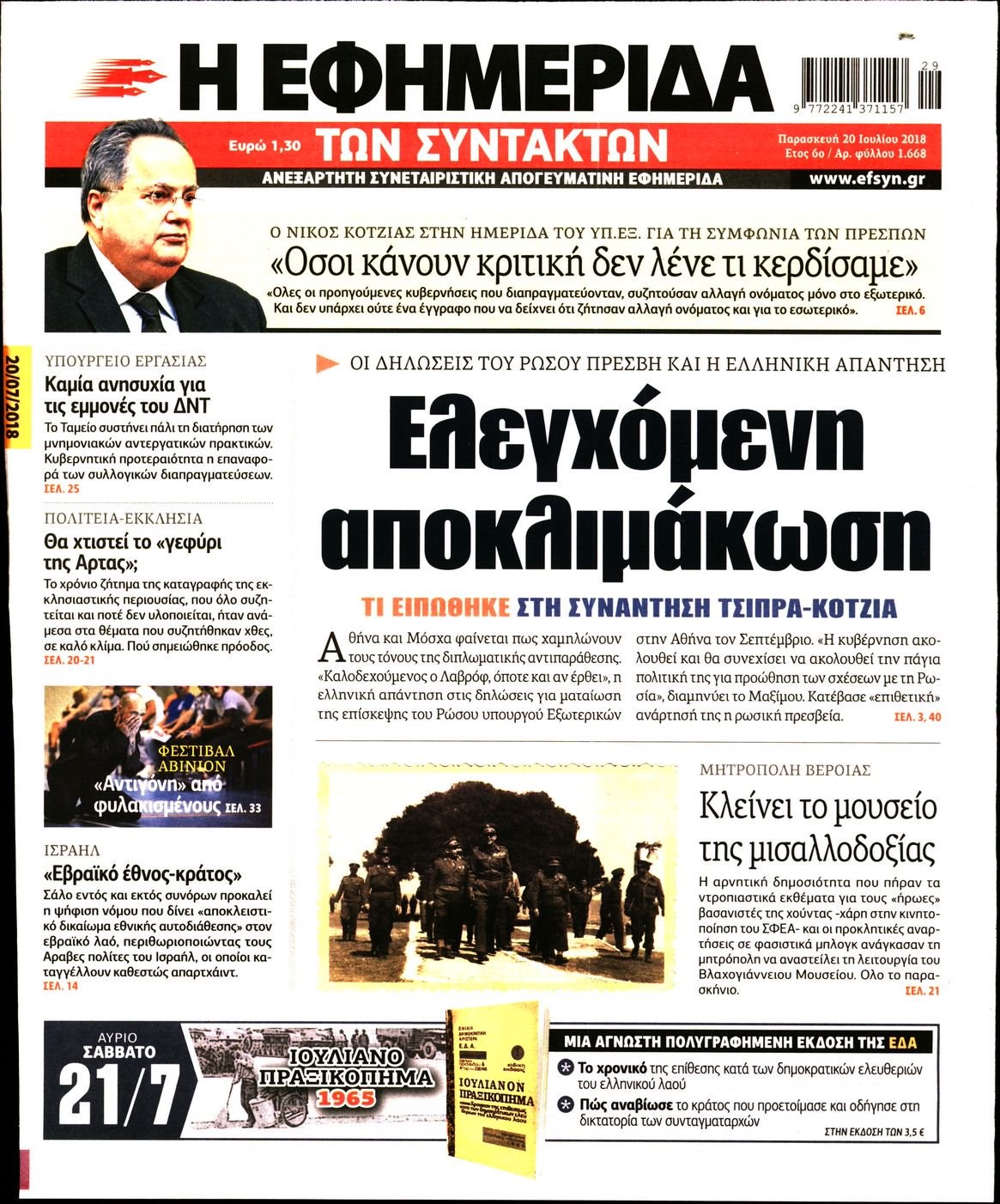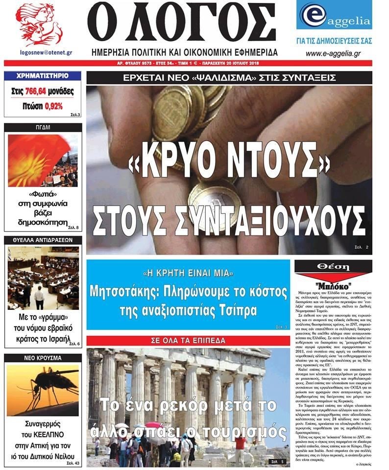 Οι πολιτικές εφημερίδες 20/7/2018 Enikos Newsroom 06:38, Παρασκευή 20 Ιουλίου 2018 Media Διαβάστε τα σημερινά πρωτοσέλιδα των πολιτικών εφημερίδων. ΠΟΛΙΤΙΚΕΣ ΕΦΗΜΕΡΙΔΕΣ ΠΡΩΤΟΣΕΛΙΔΑ Μοιράσου το: σχολίασε κι εσύ (0 σχόλια) Ακολουθήστε το enikos.gr στο Google News και μάθετε πρώτοι όλες τις ειδήσεις Δείτε όλες τις τελευταίες ειδήσεις από την Ελλάδα και τον Κόσμο στο enikos.gr Ειδήσεις Ροή Ειδήσεων 4 ώρες πριν Χριστούγεννα στα μπλόκα οι αγρότες: Άνοιξαν στα διόδια και μοίρασαν προϊόντα στους πολίτες – Νέα σύσκεψη την Κυριακή στη Νίκαια 4 ώρες πριν Κύκλωμα διακίνησης ναρκωτικών σε σχολεία: Τηλεφωνούσαν στους ανηλίκους την ώρα του μαθήματος – Οι διάλογοι-σοκ, τα «ψευδώνυμα» και τα βασανιστήρια 4 ώρες πριν Αρχεία Επστάιν: Οι 500 σελίδες που λείπουν, τα αναπάντητα ερωτήματα και οι επώνυμοι – Τι έπεται 5 ώρες πριν Ζελένσκι: Μόνο οι ΗΠΑ και ο Τραμπ μπορούν να πιέσουν τη Ρωσία να βάλει τέλος στον πόλεμο 6 ώρες πριν Φοινικούντα: Προφυλακιστέος ο 30χρονος για συνέργεια στη διπλή δολοφονία – Και άλλα πρόσωπα στο «μικροσκόπιο» 3 ώρες πριν Αποκαλύφθηκε το άγνωστο «GPS» της αρχαιότητας – Πώς οι ναοί «φώτιζαν» τον δρόμο των ναυτικών πριν από την εφεύρεση των φάρων 4 ώρες πριν Ύπνος: Η διατροφή που μπορεί να σας βοηθήσει να κοιμάστε καλύτερα και να ζήσετε περισσότερο 6 ώρες πριν Αριθμολογία: Ο αριθμός του φύλακα αγγέλου σας, με βάση τον μήνα γέννησής σας – «Έτσι σας στέλνει σημάδια το σύμπαν» 18 ώρες πριν Enerwave: Το νέο «ρεύμα» στη λιανική ενέργειας που αλλάζει την εμπειρία του καταναλωτή 14 λεπτά πριν Δυτική Όχθη: Δύο Παλαιστίνιοι νεκροί από σφαίρες του Ισραηλινού στρατού 30 λεπτά πριν Ένοχος ο 54χρονος «ερευνητής» που έταζε ότι θα εντοπίσει τον αγνοούμενο γιατρό από την Κρήτη – «Μας γέμισε φρούδες ελπίδες», λέει ο πατέρας του 33χρονου 45 λεπτά πριν Σεισμός 3,8 Ρίχτερ ανοιχτά της Αμοργού 60 λεπτά πριν Άννα Βίσση: Τα… Social Media «προσκύνησαν» την «απόλυτη» για την συναυλία της στο Καλλιμάρμαρο που προβλήθηκε από το Mega 1 ώρα πριν Φωτεινή Αθερίδου: «Προσπαθώ να είμαι κάθετη και αυστηρή σαν μαμά πια» ENIKOS NETWORK Οι γυναίκες αποκαλύπτουν το πιο ελκυστικό πράγμα που μπορεί να κάνει ένας άνδρας Ομορφιά και αντιγήρανση: Ειδικοί μιλούν για συσκευές περιποίησης του δέρματος «Πολεμική» προετοιμασία από την ευρωπαϊκή βιομηχανία ενέργειας – Η Eurelectric ζητεί «ομπρέλα» προστασίας για τις υποδομές Ακύρωση ΑΦΜ για απάτες – Ποιους βάζει στο στόχαστρο η ΑΑΔΕ Χαρτογραφώντας το «σημείο χωρίς επιστροφή»: Για πρώτη φορά αποκαλύπτεται με λεπτομέρεια το ακανθώδες όριο της ατμόσφαιρας τ... Η Google καταργεί τη λειτουργία «dark web report» – Πώς θα μπορούν οι χρήστες να διαγράφουν τα δεδομένα τους περισσότερα 01:30 , Κυριακή 21 Δεκεμβρίου 2025 Άννα Βίσση: Τα… Social Media «προσκύνησαν» την «απόλυτη» για την συναυλία της στο Καλλιμάρμαρο που προβλήθηκε από το Mega Την ημέρα των γενεθλίων της Άννας Βίσση, το MEGA τίμησε τη διαχρονική παρουσία της «απόλυτης Ε... 00:00 , Κυριακή 21 Δεκεμβρίου 2025 The Voice: Η επιστροφή της Έλενας Παπαρίζου και η ατάκα του Γιώργου Μαζωνάκη μετά τις καταγγελίες Στη φάση των Cross Battles Live μπήκε το The Voice, με την Έλενα Παπαρίζου να επιστρέφει στο π... 20:30 , Σάββατο 20 Δεκεμβρίου 2025 Αυτή την Κυριακή με τη Realnews: Instyle, μαζί Drive και Realnews Geopolitics Αυτή την Κυριακή με τη Realnews: Instyle, μαζί Drive και Realnews Geopolitics Instyle Η Άννα Ρ... 20:28 , Σάββατο 20 Δεκεμβρίου 2025 Ο ΑΝΤ1 γεμίζει τις γιορτές με μουσική – Ποιους καλλιτέχνες θα απολαύσουμε Φέτος στον ΑΝΤ1 γιορτάζουμε τις νύχτες 