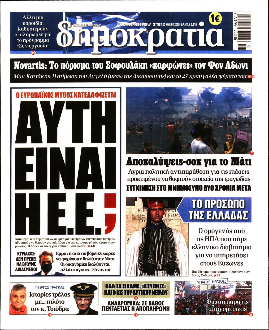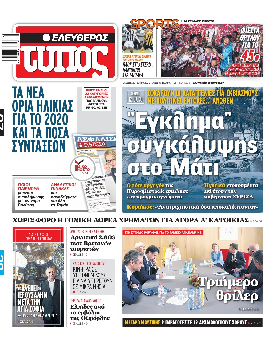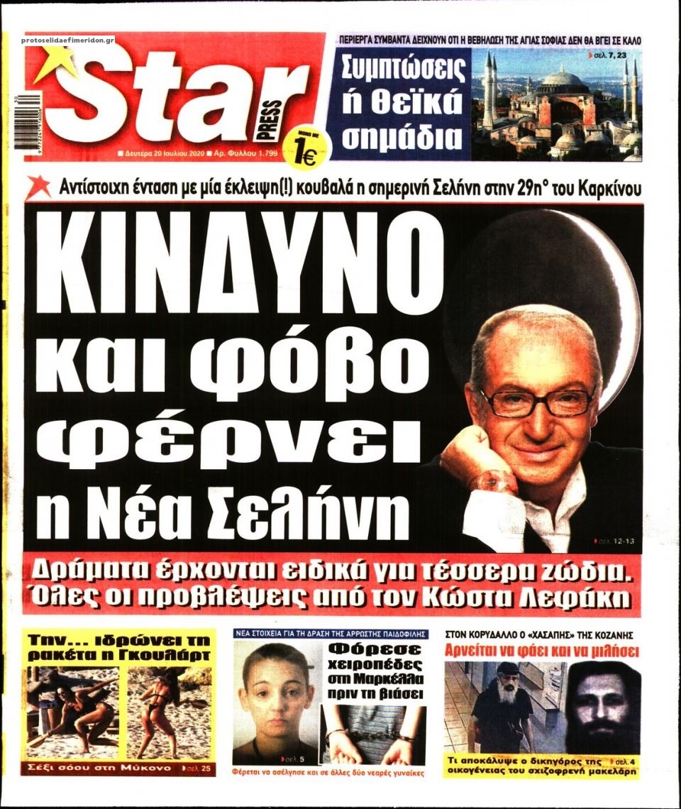Οι πολιτικές εφημερίδες 20/7/2020 Διονύσης Νίκκας 06:06, Δευτέρα 20 Ιουλίου 2020 Media Διαβάστε τα πρωτοσέλιδα των πολιτικών εφημερίδων… ΠΟΛΙΤΙΚΕΣ ΕΦΗΜΕΡΙΔΕΣ ΠΡΩΤΟΣΕΛΙΔΑ Μοιράσου το: σχολίασε κι εσύ (0 σχόλια) Ακολουθήστε το enikos.gr στο Google News και μάθετε πρώτοι όλες τις ειδήσεις Δείτε όλες τις τελευταίες ειδήσεις από την Ελλάδα και τον Κόσμο στο enikos.gr Ειδήσεις Ροή Ειδήσεων 4 ώρες πριν Χριστούγεννα στα μπλόκα: Επιμένουν στις κινητοποιήσεις τους οι αγρότες – Ανοίγουν τα διόδια το Σαββατοκύριακο 4 ώρες πριν Ουκρανία: Η άνευ προηγουμένου επίθεση σε ρωσικό τάνκερ στη Μεσόγειο και το μήνυμα προς στον Πούτιν – Το «μακρύ χέρι» του Κιέβου 3 ώρες πριν Πούτιν: Τα μηνύματα σε Ευρώπη και ΝΑΤΟ από το μαραθώνιο «σόου» του – Η απαίτηση για «σεβασμό» και η ειρήνη «με τους όρους» της Μόσχας 4 ώρες πριν Τραμπ: Δεν αποκλείει την πιθανότητα ενός πολέμου στη Βενεζουέλα – «Ο Μαδούρο ξέρει καλύτερα από τον καθένα τι ακριβώς θέλω» 5 ώρες πριν Συνεχίζει να προκαλεί ο Μίτσκοσκι: «Για μένα το όνομα Μακεδονία είναι ιερό» 3 ώρες πριν Ανακαλύφθηκαν αρχαία χρυσά νομίσματα 2.200 ετών που απεικονίζουν τον θεό Απόλλωνα – Η άγνωστη σύνδεση με τον Φίλιππο Β΄ της Μακεδονίας 4 ώρες πριν Ύπνος: Μια κρυφή κατάσταση του εγκεφάλου πριν από τον ύπνο μπορεί να είναι το “κλειδί” για υψηλή ευφυΐα και δημιουργικότητα 5 ώρες πριν Αριθμολογία: Οι άνθρωποι που έχουν γεννηθεί αυτές τις 4 ημερομηνίες, συχνά παρεξηγούνται – «Η καλοσύνη τους κρύβει τεράστια δύναμη» 6 ώρες πριν Ξεχάστε το καθάρισμα το Σαββατοκύριακο: Ο «κανόνας των 20 λεπτών» που θα σας λύσει τα χέρια 14 λεπτά πριν Εξάρχεια: Ένταση με μολότοφ, χημικά και κρότου λάμψης 30 λεπτά πριν ΗΠΑ: Τραγωδία στην Αλαμπάμα – Σκότωσε την δημοσιογράφο σύζυγό του και αυτοκτόνησε μπροστά στον 3χρονο γιο τους 44 λεπτά πριν Πρόταση γάμου στο ΣΕΦ κατά την διάρκεια του αγώνα Ολυμπιακός-Βιλερμπάν – Δείτε βίντεο 59 λεπτά πριν Euroleague: Επέστρεψε στις νίκες ο Ολυμπιακός, πήρε την ματσάρα της χρονιάς η Μπάρτσα – Τα αποτελέσματα και η βαθμολογία 1 ώρα πριν Συρία: Μαζικά πλήγματα των ΗΠΑ σε θέσεις του Ισλαμικού Κράτους – Χέγκσεθ: «Δεν είναι αρχή πολέμου, είναι μια δήλωση εκδίκησης» για το θάνατο των στρατιωτών μας ENIKOS NETWORK Το ΕΚΑΒ τιμήθηκε από την Ακαδημία Αθηνών για τα 40 χρόνια προσφοράς του Έχετε πραγματικά μεγάλη καρδιά; 10 χαρακτηριστικά όσων έχουν καλοσύνη Αναστολή μέτρων αναγκαστικής εκτέλεσης για κτηνοτρόφους που πλήττονται από την ευλογιά των αιγοπροβάτων Πλήρης επάρκεια προϊόντων στις λαϊκές της Αττικής, παρά τις αγροτικές κινητοποιήσεις – Τι απαντούν οι πωλητές Χαρτογραφώντας το «σημείο χωρίς επιστροφή»: Για πρώτη φορά αποκαλύπτεται με λεπτομέρεια το ακανθώδες όριο της ατμόσφαιρας τ... Η Google καταργεί τη λειτουργία «dark web report» – Πώς θα μπορούν οι χρήστες να διαγράφουν τα δεδομένα τους περισσότερα 22:42 , Παρασκευή 19 Δεκεμβρίου 2025 Γιώργος Γιαννόπουλος για “Το σόι σου”: “Είναι ευτυχία και ευλογία αυτή η σειρά” «Είναι ευτυχία και ευλογία η συγκυρία αυτής της σειράς», θα πει ο Γιώργος Γιαννόπουλος -ο αγαπ... 20:37 , Παρασκευή 19 Δεκεμβρίου 2025 Don’t Forget The Lyrics: Η Έλλη Κοκκίνου υποδέχεται 4 παίκτες που θα κάνουν τα πάντα για να μη χάσουν ούτε… μισή λέξη από τους στίχους Το «Don’t Forget The Lyrics» επιστρέφει απόψε, Παρασκευή 19 Δεκεμβρίου, στις 21:00 με νέο επει... 19:31 , Παρασκευή 19 Δεκεμβρίου 2025 GNTM: Απόψε ο μεγάλος τελικός για τους 4 φιναλίστ Έπειτα από μήνες γεμάτους μόδα, δημιουργία και έν