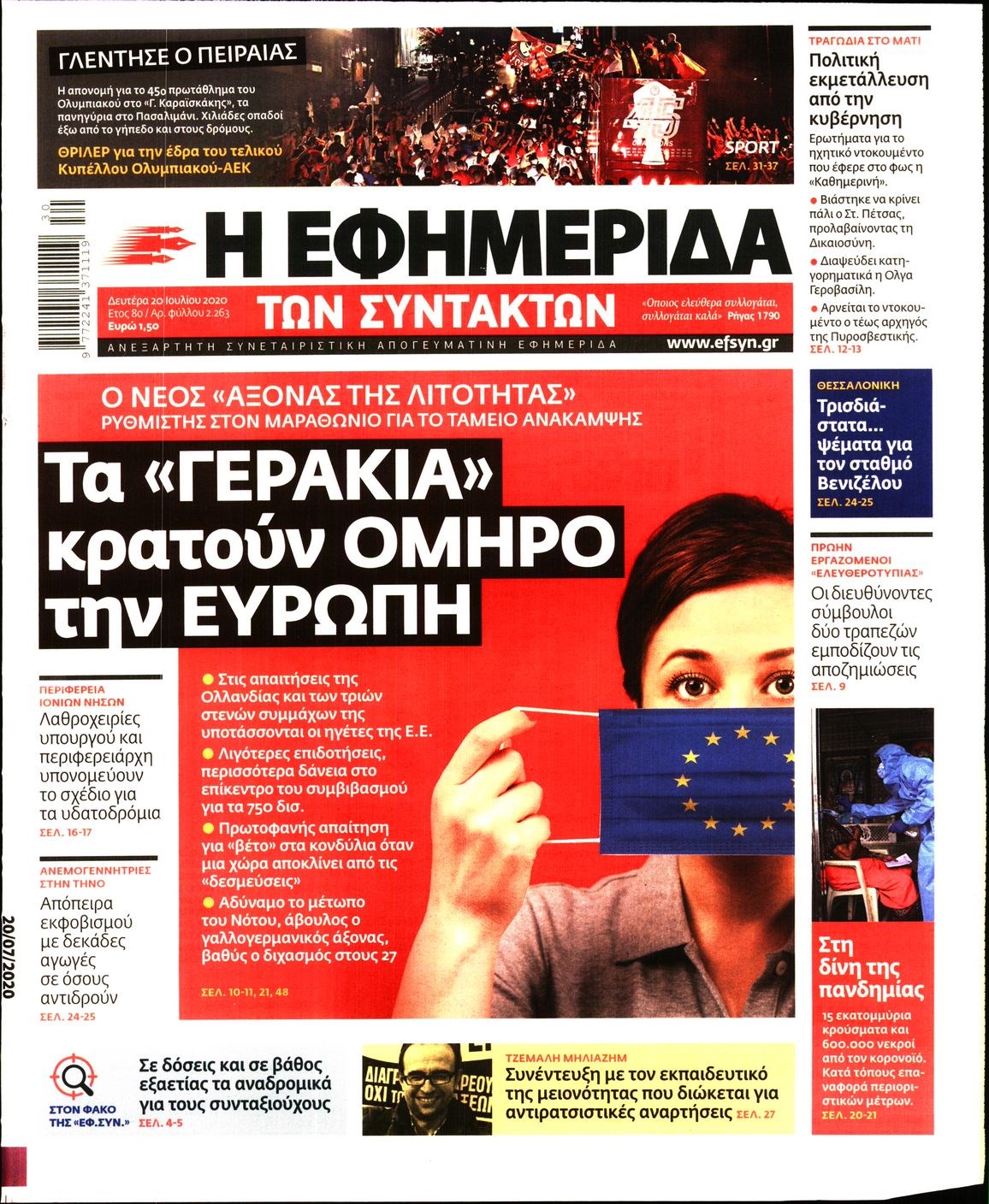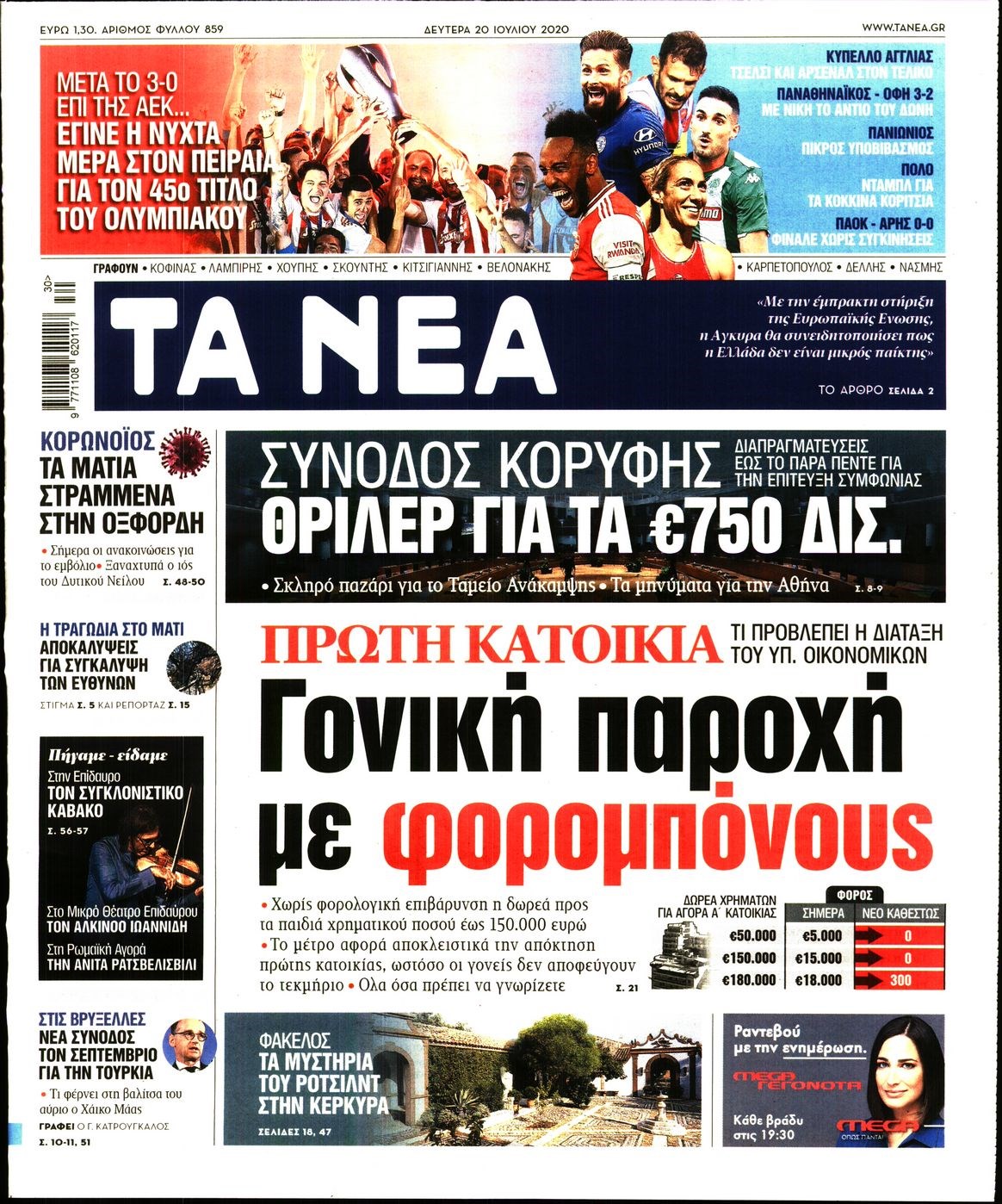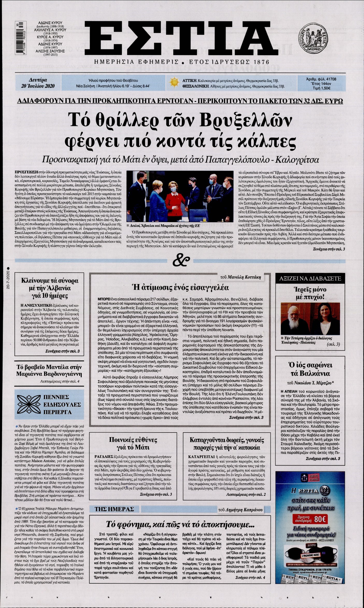 Οι πολιτικές εφημερίδες 20/7/2020 Διονύσης Νίκκας 06:06, Δευτέρα 20 Ιουλίου 2020 Media Διαβάστε τα πρωτοσέλιδα των πολιτικών εφημερίδων… ΠΟΛΙΤΙΚΕΣ ΕΦΗΜΕΡΙΔΕΣ ΠΡΩΤΟΣΕΛΙΔΑ Μοιράσου το: σχολίασε κι εσύ (0 σχόλια) Ακολουθήστε το enikos.gr στο Google News και μάθετε πρώτοι όλες τις ειδήσεις Δείτε όλες τις τελευταίες ειδήσεις από την Ελλάδα και τον Κόσμο στο enikos.gr Ειδήσεις Ροή Ειδήσεων 4 ώρες πριν Χριστούγεννα στα μπλόκα: Επιμένουν στις κινητοποιήσεις τους οι αγρότες – Ανοίγουν τα διόδια το Σαββατοκύριακο 4 ώρες πριν Ουκρανία: Η άνευ προηγουμένου επίθεση σε ρωσικό τάνκερ στη Μεσόγειο και το μήνυμα προς στον Πούτιν – Το «μακρύ χέρι» του Κιέβου 3 ώρες πριν Πούτιν: Τα μηνύματα σε Ευρώπη και ΝΑΤΟ από το μαραθώνιο «σόου» του – Η απαίτηση για «σεβασμό» και η ειρήνη «με τους όρους» της Μόσχας 4 ώρες πριν Τραμπ: Δεν αποκλείει την πιθανότητα ενός πολέμου στη Βενεζουέλα – «Ο Μαδούρο ξέρει καλύτερα από τον καθένα τι ακριβώς θέλω» 5 ώρες πριν Συνεχίζει να προκαλεί ο Μίτσκοσκι: «Για μένα το όνομα Μακεδονία είναι ιερό» 3 ώρες πριν Ανακαλύφθηκαν αρχαία χρυσά νομίσματα 2.200 ετών που απεικονίζουν τον θεό Απόλλωνα – Η άγνωστη σύνδεση με τον Φίλιππο Β΄ της Μακεδονίας 4 ώρες πριν Ύπνος: Μια κρυφή κατάσταση του εγκεφάλου πριν από τον ύπνο μπορεί να είναι το “κλειδί” για υψηλή ευφυΐα και δημιουργικότητα 5 ώρες πριν Αριθμολογία: Οι άνθρωποι που έχουν γεννηθεί αυτές τις 4 ημερομηνίες, συχνά παρεξηγούνται – «Η καλοσύνη τους κρύβει τεράστια δύναμη» 6 ώρες πριν Ξεχάστε το καθάρισμα το Σαββατοκύριακο: Ο «κανόνας των 20 λεπτών» που θα σας λύσει τα χέρια 14 λεπτά πριν Εξάρχεια: Ένταση με μολότοφ, χημικά και κρότου λάμψης 30 λεπτά πριν ΗΠΑ: Τραγωδία στην Αλαμπάμα – Σκότωσε την δημοσιογράφο σύζυγό του και αυτοκτόνησε μπροστά στον 3χρονο γιο τους 44 λεπτά πριν Πρόταση γάμου στο ΣΕΦ κατά την διάρκεια του αγώνα Ολυμπιακός-Βιλερμπάν – Δείτε βίντεο 59 λεπτά πριν Euroleague: Επέστρεψε στις νίκες ο Ολυμπιακός, πήρε την ματσάρα της χρονιάς η Μπάρτσα – Τα αποτελέσματα και η βαθμολογία 1 ώρα πριν Συρία: Μαζικά πλήγματα των ΗΠΑ σε θέσεις του Ισλαμικού Κράτους – Χέγκσεθ: «Δεν είναι αρχή πολέμου, είναι μια δήλωση εκδίκησης» για το θάνατο των στρατιωτών μας ENIKOS NETWORK Το ΕΚΑΒ τιμήθηκε από την Ακαδημία Αθηνών για τα 40 χρόνια προσφοράς του Έχετε πραγματικά μεγάλη καρδιά; 10 χαρακτηριστικά όσων έχουν καλοσύνη Αναστολή μέτρων αναγκαστικής εκτέλεσης για κτηνοτρόφους που πλήττονται από την ευλογιά των αιγοπροβάτων Πλήρης επάρκεια προϊόντων στις λαϊκές της Αττικής, παρά τις αγροτικές κινητοποιήσεις – Τι απαντούν οι πωλητές Χαρτογραφώντας το «σημείο χωρίς επιστροφή»: Για πρώτη φορά αποκαλύπτεται με λεπτομέρεια το ακανθώδες όριο της ατμόσφαιρας τ... Η Google καταργεί τη λειτουργία «dark web report» – Πώς θα μπορούν οι χρήστες να διαγράφουν τα δεδομένα τους περισσότερα 22:42 , Παρασκευή 19 Δεκεμβρίου 2025 Γιώργος Γιαννόπουλος για “Το σόι σου”: “Είναι ευτυχία και ευλογία αυτή η σειρά” «Είναι ευτυχία και ευλογία η συγκυρία αυτής της σειράς», θα πει ο Γιώργος Γιαννόπουλος -ο αγαπ... 20:37 , Παρασκευή 19 Δεκεμβρίου 2025 Don’t Forget The Lyrics: Η Έλλη Κοκκίνου υποδέχεται 4 παίκτες που θα κάνουν τα πάντα για να μη χάσουν ούτε… μισή λέξη από τους στίχους Το «Don’t Forget The Lyrics» επιστρέφει απόψε, Παρασκευή 19 Δεκεμβρίου, στις 21:00 με νέο επει... 19:31 , Παρασκευή 19 Δεκεμβρίου 2025 GNTM: Απόψε ο μεγάλος τελικός για τους 4 φιναλίστ Έπειτα από μήνες γεμάτους μόδα, δημιουργία και έν