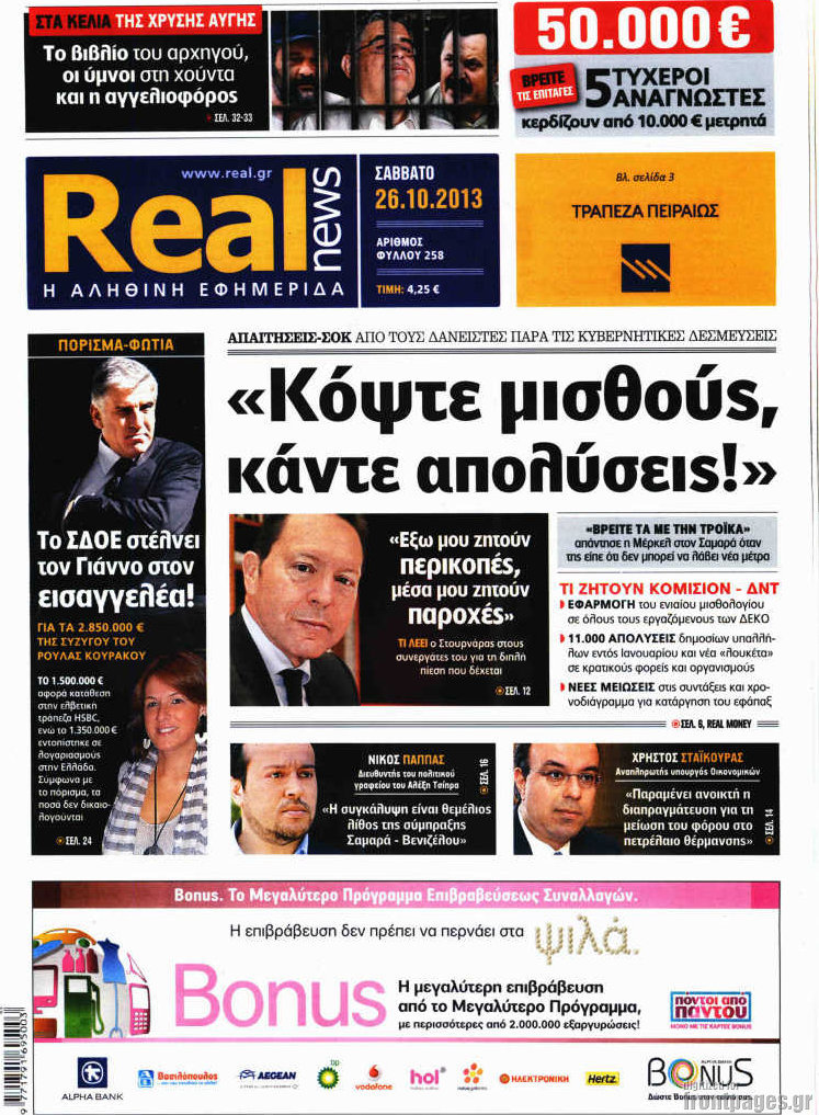 Οι πολιτικές εφημερίδες Enikos Newsroom 09:03, Σάββατο 26 Οκτωβρίου 2013 Media Οι πολιτικές εφημερίδες ΑΘΛΗΤΙΚΕΣ ΕΦΗΜΕΡΙΔΕΣ ΕΦΗΜΕΡΙΔΕΣ Μοιράσου το: σχολίασε κι εσύ (0 σχόλια) Ακολουθήστε το enikos.gr στο Google News και μάθετε πρώτοι όλες τις ειδήσεις Δείτε όλες τις τελευταίες ειδήσεις από την Ελλάδα και τον Κόσμο στο enikos.gr Ειδήσεις Ροή Ειδήσεων 3 ώρες πριν Ακίλα Σάλεχ: «Άκυρο» το τουρκολιβυκό μνημόνιο λέει ο πρόεδρος της λιβυκής Βουλής – Ανοίγει ο διάλογος με Ελλάδα, Αίγυπτο και Τουρκία 7 ώρες πριν Αγρότες: Την Τρίτη η απόφαση για διάλογο ή κλιμάκωση των κινητοποιήσεών τους – Πώς χαρακτηρίζουν τις ανακοινώσεις Τσιάρα και οι επόμενες κινήσεις 7 ώρες πριν Τραμπ για Ουκρανία: «Είμαστε πιο κοντά σε συμφωνία από ποτέ» – «Πολυεθνική δύναμη» προτείνουν οι Ευρωπαίοι 7 ώρες πριν Κυψέλη: Η 16χρονη που μαχαίρωσε την 14χρονη είχε συλληφθεί 3 φορές στο παρελθόν – Έβριζε καθηγητές, έβαζε φωτιές σε κάδους και εκβίαζε συμμαθητές της 7 ώρες πριν Τρομοκρατική επίθεση στο Σίδνεϊ: Θλίψη για τα 15 θύματα – Οργή στην εβραϊκή κοινότητα που προειδοποιούσε επί δύο χρόνια 7 ώρες πριν Επιστήμονες ίσως έλυσαν το μυστήριο γύρω από τα Χόμπιτ – Νέα έρευνα αποκαλύπτει πώς εξαφανίστηκαν 8 ώρες πριν Ύπνος: Η αρχαία μορφή άσκησης που αποδεικνύεται αποτελεσματική στην αντιμετώπιση της αϋπνίας, σύμφωνα με μελέτη 9 ώρες πριν Αριθμολογία: Ο τυχερός σας αριθμός, ανάλογα με τον μήνα γέννησής σας 10 ώρες πριν Πώς να μην μαραίνονται γρήγορα τα κομμένα λουλούδια: Το λάθος στην τοποθέτηση του βάζου που πρέπει να αποφεύγετε 7 λεπτά πριν Υψηλή χοληστερίνη: Γιατρός αποκαλύπτει δύο τρόπους για να την μειώσετε χωρίς φαρμακευτική αγωγή 15 λεπτά πριν Σαν σήμερα 16 Δεκεμβρίου: Τα σημαντικότερα γεγονότα της ημέρας 19 λεπτά πριν Οι οικονομικές εφημερίδες 16/12/2025 24 λεπτά πριν Οι αθλητικές εφημερίδες 16/12/2025 29 λεπτά πριν Οι πολιτικές εφημερίδες 16/12/2025 ENIKOS NETWORK Πότε το χρόνιο ροχαλητό να αποτελέσει ένδειξη κινδύνου για την καρδιά; Τι λένε οι ειδικοί Μάριος Θεμιστοκλέους: Το ΕΣΥ ενισχύεται, εκσυγχρονίζεται, αλλάζει ΕΒΕΠ για αγροτικές κινητοποιήσεις: Κάθε επιπλέον εβδομάδα προσθέτει περίπου 200 εκατ. ευρώ ζημιά Τι προβλέπει το νομοσχέδιο του υπουργείου Εθνικής Άμυνας – Oι αλλαγές στους μισθούς Σύγχρονος Νοστράδαμος: Προειδοποιεί για «μεγάλο γεγονός» τους επόμενους μήνες που θα συγκλονίσει τη Βρετανία και τον κόσμο Τεστ παρατηρητικότητας: Μπορείτε να βρείτε τις 3 διαφορές στις εικόνες με έναν πιγκουίνο σε 14 δευτερόλεπτα περισσότερα 05:48 , Τρίτη 16 Δεκεμβρίου 2025 Οι οικονομικές εφημερίδες 16/12/2025 Διαβάστε τα πρωτοσέλιδα από τις οικονομικές εφημερίδες, σήμερα 16/12/2025. 05:43 , Τρίτη 16 Δεκεμβρίου 2025 Οι αθλητικές εφημερίδες 16/12/2025 Διαβάστε τα πρωτοσέλιδα από τις αθλητικές εφημερίδες, σήμερα 16/12/2025. 05:38 , Τρίτη 16 Δεκεμβρίου 2025 Οι πολιτικές εφημερίδες 16/12/2025 Διαβάστε τα πρωτοσέλιδα από τις πολιτικές εφημερίδες, σήμερα 16/12/2025. 21:35 , Δευτέρα 15 Δεκεμβρίου 2025 Το Σπίτι Δίπλα Στο Ποτάμι: Η Ιουλία και ο Φωκάς μετακομίζουν στη Ρόδο – Δύο νέοι χαρακτήρες μπαίνουν στη σειρά Δύο νέοι, κομβικοί χαρακτήρες κάνουν την εμφάνισή τους αυτή την εβδομάδα στην αγαπημένη σειρά ... ΤΕΛΕΥΤΑΙΕΣ ΕΙΔΗΣΕΙΣ 7 λεπτά πριν Υψηλή χοληστερίνη: Γιατρός αποκαλύπτει δύο τρόπους... 15 λεπτά πριν Σαν σήμερα 16 Δεκεμβρίου: Τα σημαντικότερα γεγονότα... 19 λεπτά πριν Οι οικονομικές εφημερίδες 16/12/2025 24 λεπτά πριν Οι αθλητικές εφημερίδες 16/12/2025 29 λεπτά πριν Οι πολιτικές εφημερίδες 16/12/2025 37 λ