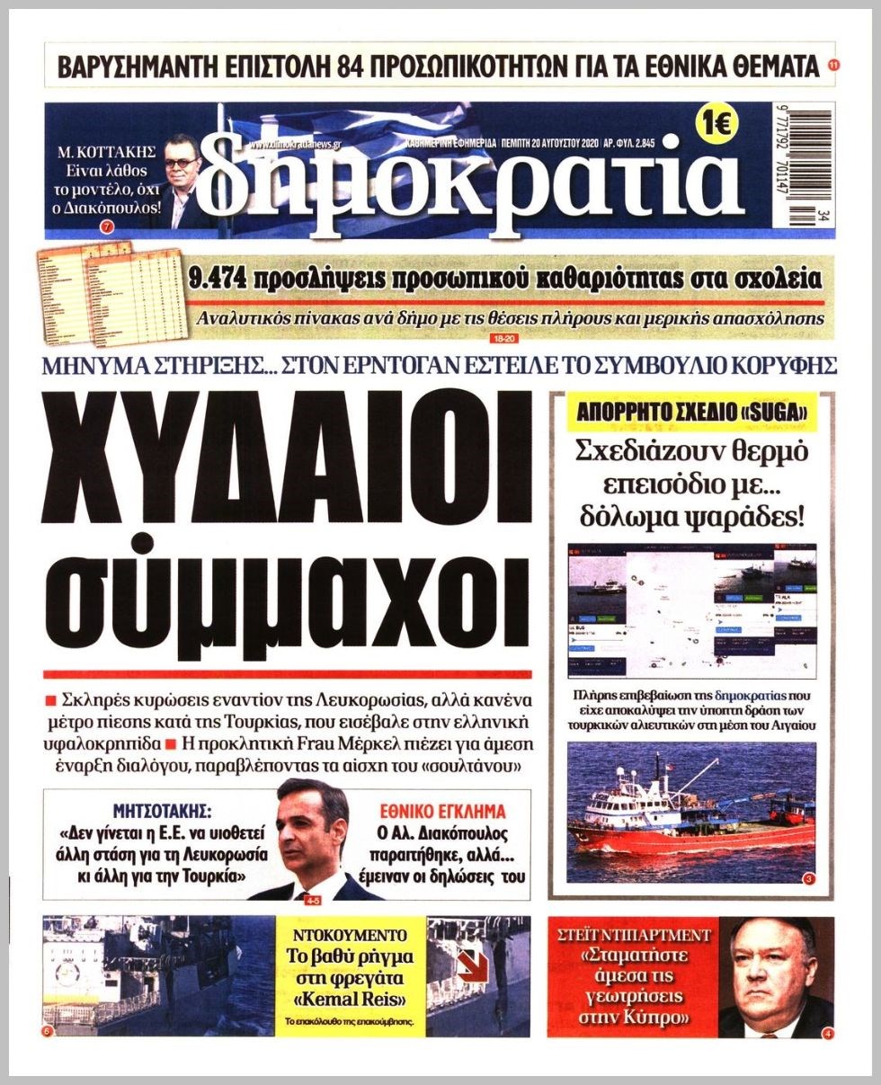 Οι πολιτικές εφημερίδες 20/8/2020 Διονύσης Νίκκας 06:15, Πέμπτη 20 Αυγούστου 2020 Media Διαβάστε τα πρωτοσέλιδα των πολιτικών εφημερίδων… ΠΟΛΙΤΙΚΕΣ ΕΦΗΜΕΡΙΔΕΣ ΠΡΩΤΟΣΕΛΙΔΑ Μοιράσου το: σχολίασε κι εσύ (0 σχόλια) Ακολουθήστε το enikos.gr στο Google News και μάθετε πρώτοι όλες τις ειδήσεις Δείτε όλες τις τελευταίες ειδήσεις από την Ελλάδα και τον Κόσμο στο enikos.gr Ειδήσεις Ροή Ειδήσεων 3 ώρες πριν Πώς δρούσε το κύκλωμα που διακινούσε ναρκωτικά σε σχολεία – Υπέβαλαν σε βασανιστήρια όσους δεν τηρούσαν τους «κανόνες πειθαρχίας» 4 ώρες πριν Αγρότες: Γιορτές στα μπλόκα με ανοιχτά διόδια – Δικογραφία στα Ιωάννινα για το σήκωμα των μπαρών 3 ώρες πριν Ζελένσκι: Οι Αμερικανοί πρότειναν συνάντηση Ουκρανίας, ΗΠΑ, Ρωσίας στο Μαϊάμι 2 ώρες πριν Τραμπ: Πώς περνάει τις γιορτές των Χριστουγέννων – Τα δώρα που κάνει στα εγγόνια του 2 ώρες πριν Μικαέλα Μπέντχαους: Ο πρώτος άνθρωπος σε αναπηρικό αμαξίδιο που ταξίδεψε στο διάστημα – ΒΙΝΤΕΟ 4 ώρες πριν Η τύχη χαμογελά σε 3 ζώδια έως τις 28 Δεκεμβρίου – «Προσέξτε τις επιλογές σας και η επιμονή σας θα ανταμειφθεί» 5 ώρες πριν Μία ανεκμετάλλευτη πηγή θα μπορούσε να προσφέρει ανεξάντλητη ενέργεια – Οι επιστήμονες ίσως γνωρίζουν πώς να την ξεκλειδώσουν 1 ώρα πριν Μήπως οι γιορτές σας δεν είναι τόσο τέλειες; 7 χριστουγεννιάτικες συνήθειες που μαρτυρούν ότι μια οικογένεια είναι δυσλειτουργική 11 ώρες πριν Enerwave: Το νέο «ρεύμα» στη λιανική ενέργειας που αλλάζει την εμπειρία του καταναλωτή 5 λεπτά πριν Πώς να απαλλαγείτε από τη μυρωδιά του τηγανητού φαγητού: Το μυστικό βρίσκεται στην κουζίνα σας 10 λεπτά πριν Βλαχοδήμος: «Νιώθω καλά που είμαι σημαντικός για τη Σεβίλλη» – Τι είπε για τη Ρεάλ Μαδρίτης και τον Μπαπέ 19 λεπτά πριν Πρίγκιπας Ουίλιαμ: Μαγείρεψε παρέα με τον πρίγκιπα Τζορτζ για τους αστέγους – ΦΩΤΟ και ΒΙΝΤΕΟ 28 λεπτά πριν Επιχείρηση της Τροχαίας κατά της παράνομης στάθμευσης στο Νέο Ψυχικό – Τέσσερις συλλήψεις 37 λεπτά πριν Κυριάκος Μητσοτάκης: Στην Ιερουσαλήμ την Τρίτη ο Πρωθυπουργός για την τριμερή Ελλάδας, Κύπρου, Ισραήλ – Θα συναντηθεί και με τον Αμπάς ENIKOS NETWORK Οι γυναίκες αποκαλύπτουν το πιο ελκυστικό πράγμα που μπορεί να κάνει ένας άνδρας Ομορφιά και αντιγήρανση: Ειδικοί μιλούν για συσκευές περιποίησης του δέρματος Θεοδωρικάκος: Εθνική στρατηγική για τους ημιαγωγούς – Πρώτο βήμα η χρηματοδότηση του πρώτου Κέντρου Ικανοτήτων, με 3,63 εκα... Επίδομα θέρμανσης: Μπαίνει η πρώτη δόση την Τρίτη – Οι επόμενες πληρωμές Χαρτογραφώντας το «σημείο χωρίς επιστροφή»: Για πρώτη φορά αποκαλύπτεται με λεπτομέρεια το ακανθώδες όριο της ατμόσφαιρας τ... Η Google καταργεί τη λειτουργία «dark web report» – Πώς θα μπορούν οι χρήστες να διαγράφουν τα δεδομένα τους περισσότερα 18:19 , Σάββατο 20 Δεκεμβρίου 2025 HOTΕΛ ΕΛVIRA: Η Ελβίρα μαθαίνει πως ο Χάρι μένει κρυφά στο ξενοδοχείο του Παντελή Συνεχίζονται οι εκλογές για πρόεδρο, στο νέο επεισόδιο της κωμικής σειράς του MEGA, HOTΕΛ ΕΛVI... 14:04 , Σάββατο 20 Δεκεμβρίου 2025 Η Realnews αυτής της Κυριακής (21/12/2025) Με τίτλο: «Ασπίδα προστασίας για την Ελλάδα» κυκλοφορεί, αυτήν την Κυριακή, η Realnews. Σημαντ... 12:53 , Σάββατο 20 Δεκεμβρίου 2025 Να μ’ αγαπάς: Το παρελθόν έρχεται στο φως – Καταιγιστικές εξελίξεις στα τελευταία επεισόδια του 2025 Ο Άγγελος αποκαλύπτεται, η Φωτεινή ανησυχεί για τον Λευτέρη και η Ζωή έρχεται αντιμέτωπη με το... 11:41 , Σάββατο 20 Δεκεμβρίου 2025 «Η αγάπη δεν χάνεται ποτέ»: Η μικρού μήκους ταινία κινουμένων σχεδίων που θέτει ερωτή