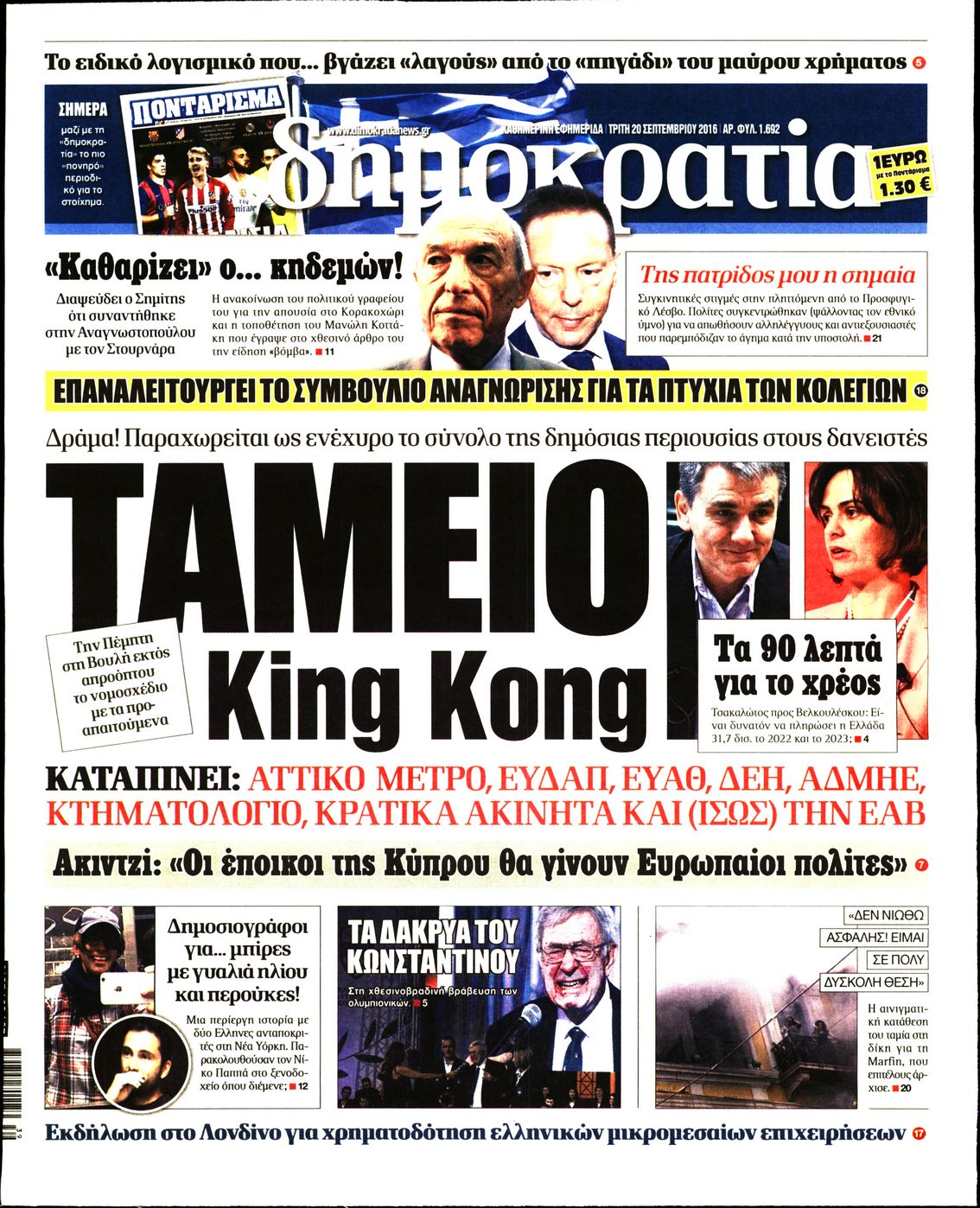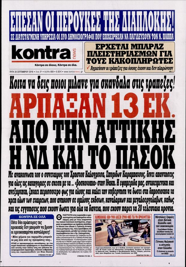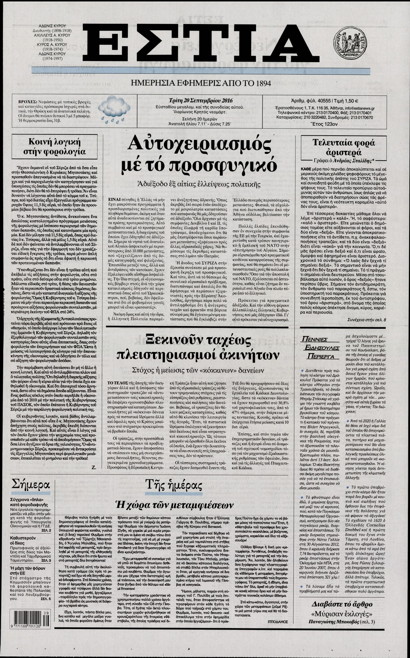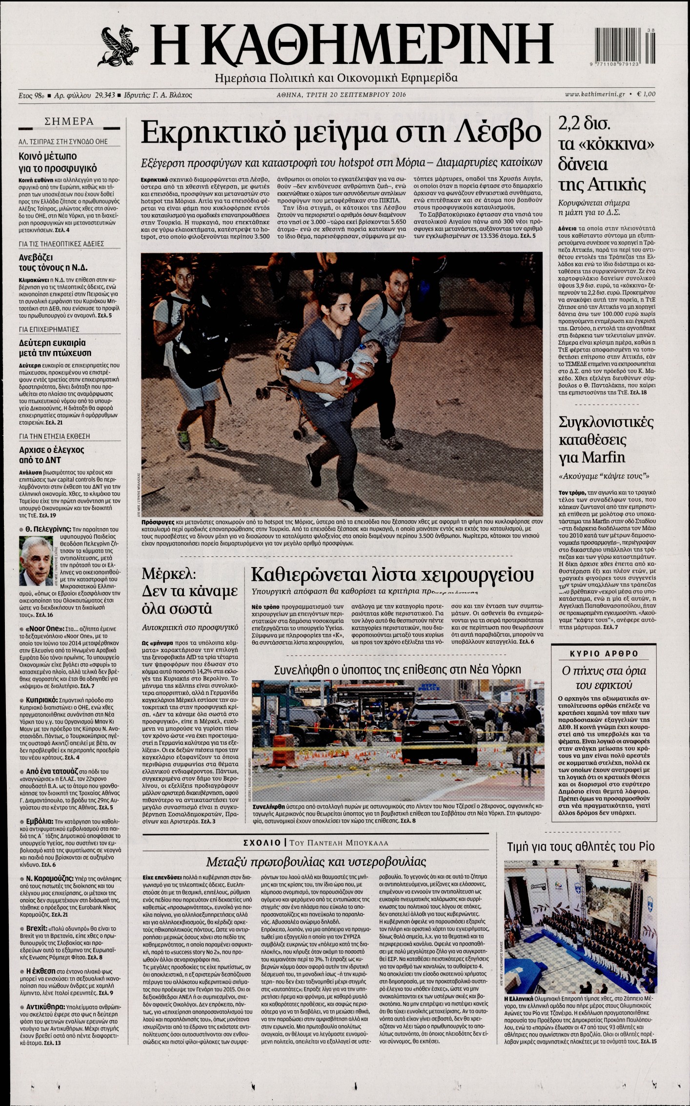 Oι πολιτικές εφημερίδες 20/9/2016 Enikos Newsroom 05:12, Τρίτη 20 Σεπτεμβρίου 2016 Media Διαβάστε τα σημερινά πρωτοσέλιδα των πολιτικών εφημερίδων: ΠΟΛΙΤΙΚΕΣ ΕΦΗΜΕΡΙΔΕΣ ΠΡΩΤΟΣΕΛΙΔΑ Μοιράσου το: σχολίασε κι εσύ (0 σχόλια) Ακολουθήστε το enikos.gr στο Google News και μάθετε πρώτοι όλες τις ειδήσεις Δείτε όλες τις τελευταίες ειδήσεις από την Ελλάδα και τον Κόσμο στο enikos.gr Ειδήσεις Ροή Ειδήσεων 1 ώρα πριν Αυξάνουν την πίεση προς την κυβέρνηση οι αγρότες: Κλείνουν παρακαμπτήριους και ανοίγουν διόδια – Τι θα γίνει τις γιορτές 57 λεπτά πριν Φοινικούντα: Το Σάββατο απολογείται ο 30χρονος γιος γνωστού επιχειρηματία της Πλάκας που παραδόθηκε – Όσα είπε στους αστυνομικούς και ο ρόλος του στο έγκλημα 39 λεπτά πριν Μπορεί ο Μαδούρο να αντέξει τον αποκλεισμό του Τραμπ; Τι θα χρειαστεί η Ουάσινγκτον για να τον ανατρέψει 3 ώρες πριν Δημοσκόπηση Metron Analysis: Στις 10 μονάδες η διαφορά ΝΔ-ΠΑΣΟΚ, στην 3η θέση η Πλεύση Ελευθερίας – 8 στους 10 στηρίζουν τον αγώνα των αγροτών 2 ώρες πριν Πρίγκιπας Ουίλιαμ – Κέιτ: Η νέα οικογενειακή φωτογραφία για τις Χριστουγεννιάτικες κάρτες του 2025 2 ώρες πριν Ύπνος: Η απλή βραδινή ρουτίνα για να προστατεύσετε τα μαλλιά σας από το κρύο κατά τη διάρκεια του χειμώνα 3 ώρες πριν Manifesting: Πώς να συναντήσετε τον σύντροφο της ζωής σας, ανάλογα με τον μήνα γέννησής σας 2 ημέρες πριν 20 χρόνια τα Χριστούγεννα ξεκινούν στα Public με μεγάλη ποικιλία σε δώρα! 42 λεπτά πριν Αρχαιολόγοι ανακάλυψαν ρωμαϊκά τεχνουργήματα από μια πόλη που δεν υπήρξε ποτέ – Τα τρία εντυπωσιακά κτίρια και ο αμφορέας με τις… σαρδέλες 8 λεπτά πριν Αθηνά Μαξίμου: Η τρυφερή ανάρτηση για τα γενέθλια του Αιμίλιου Χειλάκη – «Είναι η εκλεκτική συγγένειά μου, η επιλογή και η ευθύνη μου» 23 λεπτά πριν Παναθηναϊκός – Χάποελ Τελ Αβίβ 93-82: Με… φόρα από την Κωνσταντινούπολη 39 λεπτά πριν Μπορεί ο Μαδούρο να αντέξει τον αποκλεισμό του Τραμπ; Τι θα χρειαστεί η Ουάσινγκτον για να τον ανατρέψει 42 λεπτά πριν Αρχαιολόγοι ανακάλυψαν ρωμαϊκά τεχνουργήματα από μια πόλη που δεν υπήρξε ποτέ – Τα τρία εντυπωσιακά κτίρια και ο αμφορέας με τις… σαρδέλες 44 λεπτά πριν Στο ΟΑΚΑ για το «Παναθηναϊκός – Χάποελ» η Κίμπερλι Γκίλφοϊλ – ΦΩΤΟ ENIKOS NETWORK Σε περίοδο αυξημένης δραστηριότητας η γρίπη στην Ελλάδα-Μέτρα προστασίας από τον ΕΟΔΥ Σκέφτεστε συνέχεια συζητήσεις που έχετε κάνει; Τι σημαίνει αυτό, σύμφωνα με ειδικό Στεγαστικό: Τι λέει η ΠΟΜΙΔΑ για τα νέα μέτρα που ανακοίνωσε ο Κυριάκος Μητσοτάκης Λαγκάρντ: Αισιόδοξη για την ανάπτυξη της Ευρωζώνης, αβέβαιη για τον πληθωρισμό Χαρτογραφώντας το «σημείο χωρίς επιστροφή»: Για πρώτη φορά αποκαλύπτεται με λεπτομέρεια το ακανθώδες όριο της ατμόσφαιρας τ... Η Google καταργεί τη λειτουργία «dark web report» – Πώς θα μπορούν οι χρήστες να διαγράφουν τα δεδομένα τους περισσότερα 17:45 , Πέμπτη 18 Δεκεμβρίου 2025 ROUK ZOUK: Εορταστικό επεισόδιο με καλεσμένους τους πρωταγωνιστές του «Γιατί ρε πατέρα» Το Σάββατο 20 Δεκεμβρίου στις 21:00, η Ζέτα Μακρυπούλια υποδέχεται εκλεκτούς ηθοποιούς που όλο... 17:20 , Πέμπτη 18 Δεκεμβρίου 2025 Άγιος έρωτας: Η Χριστίνα εξομολογείται στον πατέρα Νικόλαο, απόψε στις 21:00 στον Alpha Η Νότα αποφασίζει να εκδικηθεί τον Πέτρο και τον Στέφανο, για χάρη του Λούη, όμως τα πράγματα ... 16:50 , Πέμπτη 18 Δεκεμβρίου 2025 Να μ’ αγαπάς: Ζωή και Φωτεινή συμφιλιώνονται ως μάνα με κόρη, απόψε στις 20:00 Η ταυτότητα του Άγγελου αποκαλύπτεται στο νέο επεισόδιο της σειράς “Να μ’ αγαπάς... 15:52 , Πέμπτη 18 Δεκεμβρίου 2025 Το Σπίτι Δίπλ