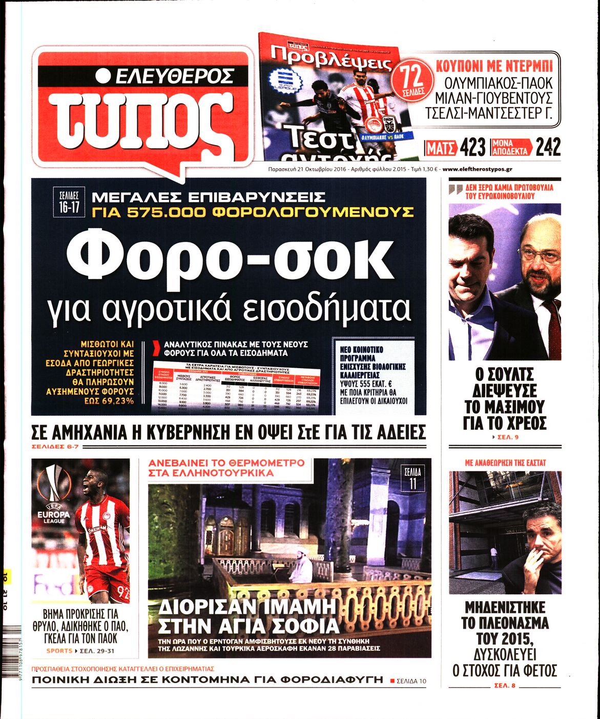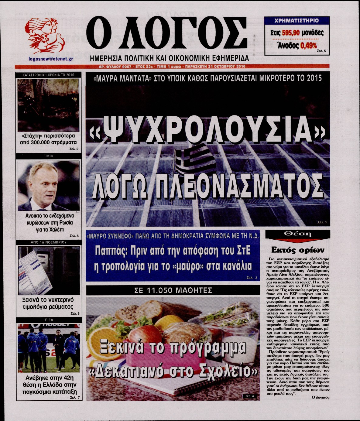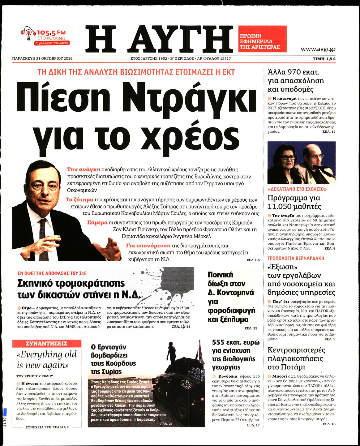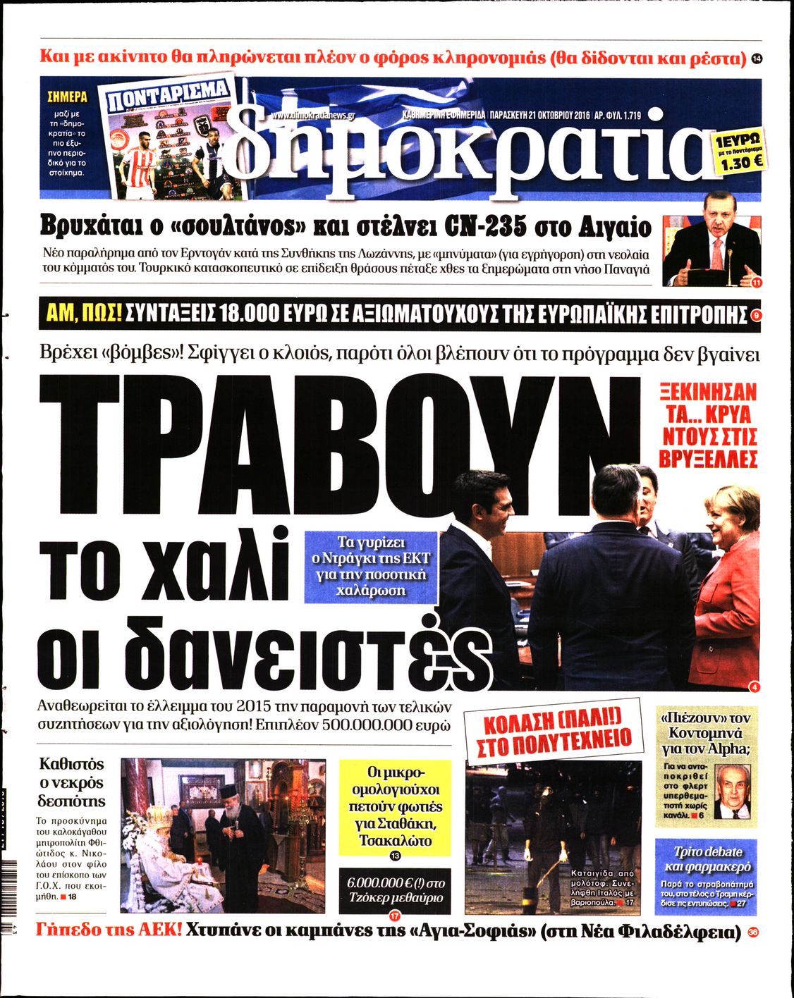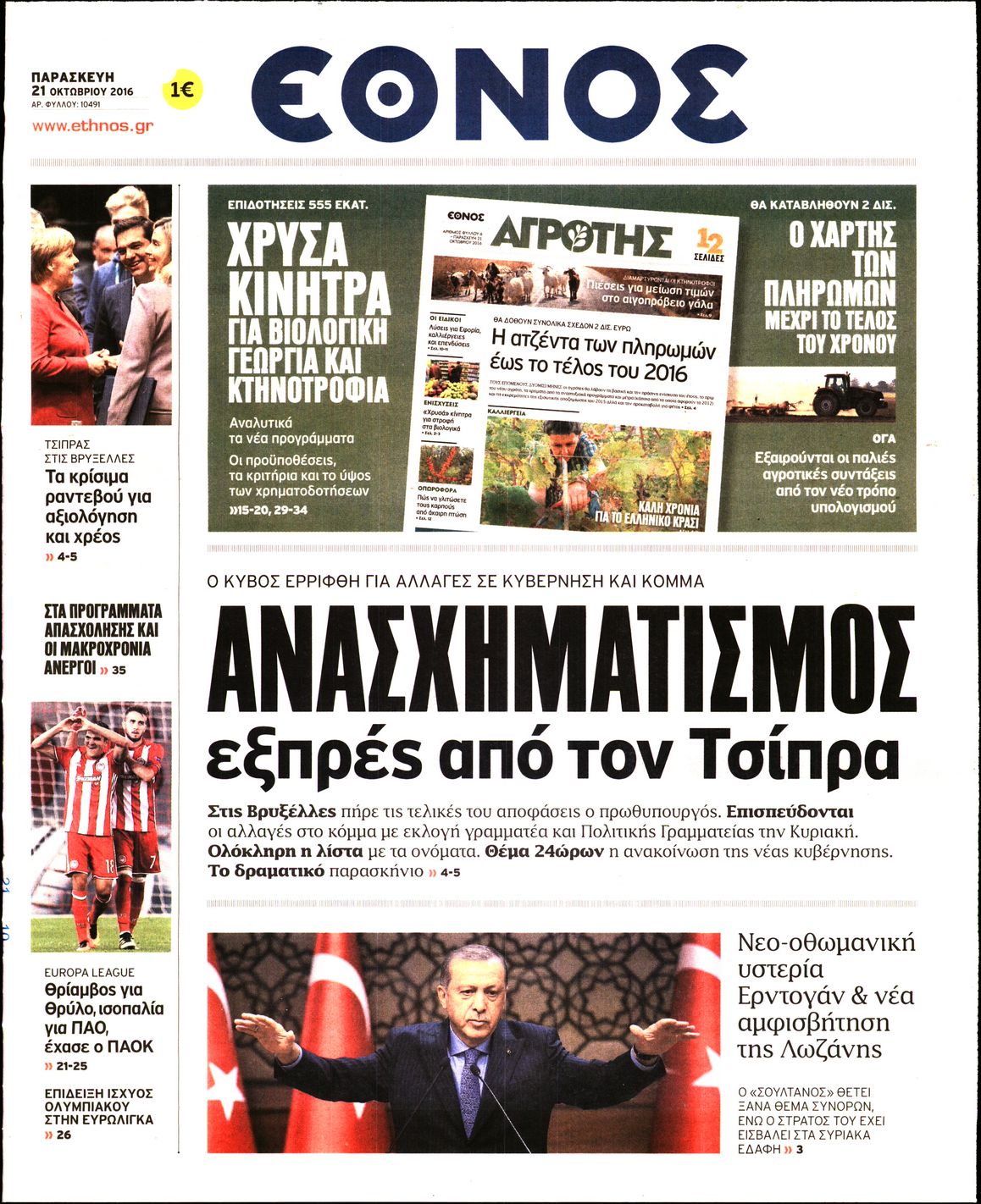 Οι πολιτικές εφημερίδες 21-10-2016 Enikos Newsroom 05:15, Παρασκευή 21 Οκτωβρίου 2016 Media Διαβάστε τα σημερινά πρωτοσέλιδα των πολιτικών εφημερίδων: ΠΟΛΙΤΙΚΕΣ ΕΦΗΜΕΡΙΔΕΣ ΠΡΩΤΟΣΕΛΙΔΑ Μοιράσου το: σχολίασε κι εσύ (0 σχόλια) Ακολουθήστε το enikos.gr στο Google News και μάθετε πρώτοι όλες τις ειδήσεις Δείτε όλες τις τελευταίες ειδήσεις από την Ελλάδα και τον Κόσμο στο enikos.gr Ειδήσεις Ροή Ειδήσεων 6 ώρες πριν Χριστούγεννα στα μπλόκα: Επιμένουν στις κινητοποιήσεις τους οι αγρότες – Ανοίγουν τα διόδια το Σαββατοκύριακο 7 ώρες πριν Ουκρανία: Η άνευ προηγουμένου επίθεση σε ρωσικό τάνκερ στη Μεσόγειο και το μήνυμα προς στον Πούτιν – Το «μακρύ χέρι» του Κιέβου 6 ώρες πριν Πούτιν: Τα μηνύματα σε Ευρώπη και ΝΑΤΟ από το μαραθώνιο «σόου» του – Η απαίτηση για «σεβασμό» και η ειρήνη «με τους όρους» της Μόσχας 7 ώρες πριν Τραμπ: Δεν αποκλείει την πιθανότητα ενός πολέμου στη Βενεζουέλα – «Ο Μαδούρο ξέρει καλύτερα από τον καθένα τι ακριβώς θέλω» 7 ώρες πριν Συνεχίζει να προκαλεί ο Μίτσκοσκι: «Για μένα το όνομα Μακεδονία είναι ιερό» 6 ώρες πριν Ανακαλύφθηκαν αρχαία χρυσά νομίσματα 2.200 ετών που απεικονίζουν τον θεό Απόλλωνα – Η άγνωστη σύνδεση με τον Φίλιππο Β΄ της Μακεδονίας 7 ώρες πριν Ύπνος: Μια κρυφή κατάσταση του εγκεφάλου πριν από τον ύπνο μπορεί να είναι το “κλειδί” για υψηλή ευφυΐα και δημιουργικότητα 8 ώρες πριν Αριθμολογία: Οι άνθρωποι που έχουν γεννηθεί αυτές τις 4 ημερομηνίες, συχνά παρεξηγούνται – «Η καλοσύνη τους κρύβει τεράστια δύναμη» 9 ώρες πριν Ξεχάστε το καθάρισμα το Σαββατοκύριακο: Ο «κανόνας των 20 λεπτών» που θα σας λύσει τα χέρια 22 λεπτά πριν Μάρκο Ρούμπιο: Ανθρωπιστική κατάπαυση του πυρός στο Σουδάν ζητά ο Αμερικανός υπουργός Εξωτερικών 36 λεπτά πριν Αγγελική Νικολούλη: Τα συλλυπητήρια για την απώλεια της Ειρήνης Μαρινάκη 51 λεπτά πριν Βολιβία: Μαζική διαδηλώσεις εναντίον της κατάργησης των επιδοτήσεων των τιμών των καυσίμων 1 ώρα πριν Φως στο Τούνελ: Έφτασε η ώρα της αλήθειας για την δολοφονία της χήρας του πρώην υπουργού στο Κολωνάκι 1 ώρα πριν Ντόναλντ Τραμπ: Προστέθηκε το όνομά του στην πρόσοψη του Κέντρου Κένεντι – Οργισμένη αντίδραση των συγγενών του JFK ENIKOS NETWORK Το ΕΚΑΒ τιμήθηκε από την Ακαδημία Αθηνών για τα 40 χρόνια προσφοράς του Έχετε πραγματικά μεγάλη καρδιά; 10 χαρακτηριστικά όσων έχουν καλοσύνη Αναστολή μέτρων αναγκαστικής εκτέλεσης για κτηνοτρόφους που πλήττονται από την ευλογιά των αιγοπροβάτων Πλήρης επάρκεια προϊόντων στις λαϊκές της Αττικής, παρά τις αγροτικές κινητοποιήσεις – Τι απαντούν οι πωλητές Χαρτογραφώντας το «σημείο χωρίς επιστροφή»: Για πρώτη φορά αποκαλύπτεται με λεπτομέρεια το ακανθώδες όριο της ατμόσφαιρας τ... Η Google καταργεί τη λειτουργία «dark web report» – Πώς θα μπορούν οι χρήστες να διαγράφουν τα δεδομένα τους περισσότερα 04:20 , Σάββατο 20 Δεκεμβρίου 2025 Αγγελική Νικολούλη: Τα συλλυπητήρια για την απώλεια της Ειρήνης Μαρινάκη Τα συλληπητήρια στον πρόεδρο του Mega, τον Βαγγέλη Μαρινάκη, για την απώλεια της μητέρας του Ε... 02:50 , Σάββατο 20 Δεκεμβρίου 2025 GNTM: Η Ξένια Τσίρκοβα αναδείχθηκε μεγάλη νικήτρια και πήρε τις 50.000 ευρώ – Ποιος βρέθηκε σε απόσταση αναπνοής; Με φαντασμαγορικό τρόπο ολοκληρώθηκε το βράδυ της Παρασκευής ο μεγάλος τελικός του GNTM, μέσα ... 22:42 , Παρασκευή 19 Δεκεμβρίου 2025 Γιώργος Γιαννόπουλος για “Το σόι σου”: “Είναι ευτυχία και ευλογία αυτή η σειρά” «Είναι ευτυχία και ευλογία η συγκυρία αυτής της σειράς», θα πει ο Γιώργος Γ