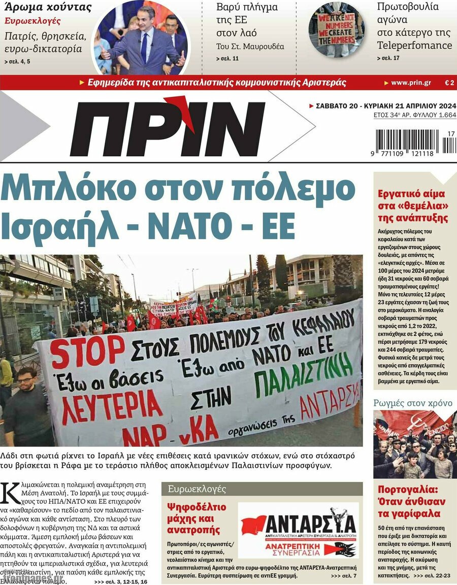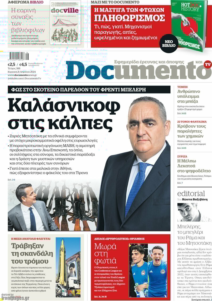 Οι πολιτικές εφημερίδες 21/4/2024 xrisikakif 06:55, Κυριακή 21 Απριλίου 2024 Media Διαβάστε τα πρωτοσέλιδα από τις πολιτικές εφημερίδες, σήμερα 21/4/2024. ΠΟΛΙΤΙΚΕΣ ΕΦΗΜΕΡΙΔΕΣ Μοιράσου το: σχολίασε κι εσύ (0 σχόλια) Ακολουθήστε το enikos.gr στο Google News και μάθετε πρώτοι όλες τις ειδήσεις Δείτε όλες τις τελευταίες ειδήσεις από την Ελλάδα και τον Κόσμο στο enikos.gr Ειδήσεις Ροή Ειδήσεων 1 ώρα πριν Live-Μετ’ εμποδίων η έξοδος: Ουρές χιλιομέτρων στη Ριτσώνα, εναλλακτικές από χωματόδρομους αναζητούν οι οδηγοί – Μποτιλιάρισμα και εντός της Αττικής 3 ώρες πριν Μπλόκα της Τροχαίας: «Λερναία Ύδρα» τα γκρουπ στο Viber που προειδοποιούν για ελέγχους – Το «γκρίζο» νομικό τοπίο και οι νόμιμες εφαρμογές 2 ώρες πριν Καλύβια: Είχε χάσει 30 κιλά το «πιστόλι» του Έντικ για να μην αναγνωρίζεται – Πώς εντόπισε τον 35χρονο το ελληνικό FBI 2 ώρες πριν Αλεξανδρούπολη: Προφυλακίστηκε η μητέρα του 3χρονου που πέθανε από ασιτία – Τι λέει η δικηγόρος της 2 ώρες πριν Έπσταϊν: Οι νέες αποκαλύψεις που «καίνε» τον πρώην πρίγκιπα Άντριου – Το email από το Μπαλμόραλ στη Μάξγουελ για να βρει «ακατάλληλους φίλους» 2 ώρες πριν Τα 4 ζώδια που θα λάβουν όλα όσα ζητήσουν από το σύμπαν το 2026 -«Οι ευχές σας γίνονται πραγματικότητα» 7 ώρες πριν Αν πίνετε τον καφέ σας σκέτο, πιθανότατα διαθέτετε αυτά τα 7 ισχυρά χαρακτηριστικά 3 ώρες πριν Μυστήριο στο Διάστημα: Επιστήμονες εντόπισαν ένα «πρωτοφανές φαινόμενο» γύρω από το «Μάτι του Σάουρον», μόλις 25 έτη φωτός από τη Γη 8 ώρες πριν Η Coca-Cola και ο Ελληνικός Ερυθρός Σταυρός μαζί αυτά τα Χριστούγεννα: Μια μεγάλη αγκαλιά για τους συνανθρώπους μας που έχουν ανάγκη 1 λεπτό πριν Hellenic Train: Ενισχύονται τα δρομολόγια ενόψει εορτών στον Οδοντωτό 7 λεπτά πριν Ίλιον: Χειροπέδες σε 12χρονο και 13χρονο που οδηγούσαν κλεμμένη μηχανή – Στη θέα των αστυνομικών την εγκατέλειψαν και προσπάθησαν να διαφύγουν 11 λεπτά πριν Άγιος έρωτας: Ο σεισμός σπέρνει το θάνατο στη Στέρνα 17 λεπτά πριν Το ΣΚΡΑΤΣ στον ρυθμό των Χριστουγέννων – Νέοι εορταστικοί λαχνοί με πολλές ευκαιρίες για κέρδη και ειδική περιοχή για ευχές 22 λεπτά πριν Πλατύκαμπος Λάρισας: «Σημειωτόν» τα οχήματα στην Παλαιά Εθνική Οδό – Δείτε φωτογραφίες ENIKOS NETWORK Συγκίνηση στα εγκαίνια του ανακαινισμένου Κέντρου Υγείας στο Αμύνταιο ΕΦΕΤ: Οδηγίες για το τραπέζι των Χριστουγέννων – Τι πρέπει να προσέξουν οι καταναλωτές Ρεβεγιόν στις μεγάλες πίστες: Πόσο κοστίζει ένα τραπέζι σε Αθήνα και Θεσσαλονίκη – Αναλυτικά οι τιμές και οι διαθεσιμότητες Ακρίβεια: Μεγάλη η «ψαλίδα» από το χωράφι στο ράφι – Σημαντικές ανατιμήσεις σε βασικά αγαθά Ο Google Assistant θα παραμείνει λίγο περισσότερο για ορισμένους χρήστες Android Τεστ προσωπικότητας: Το βάζο που θα επιλέξετε αποκαλύπτει πώς λύνετε προβλήματα στη ζωή σας περισσότερα 17:38 , Τρίτη 23 Δεκεμβρίου 2025 Άγιος έρωτας: Ο σεισμός σπέρνει το θάνατο στη Στέρνα Μετά τον καταστροφικό σεισμό που χτυπά τη Στέρνα, τίποτα δεν θα είναι πια το ίδιο στη σειρά ... 14:03 , Τρίτη 23 Δεκεμβρίου 2025 Έξοδος εκδρομέων για τα Χριστούγεννα: Στείλε βίντεο ή φωτογραφίες στο enikos.gr – Αποθήκευσε τον αριθμό 6944 05 05 05 Πολλοί έχουν επιλέξει να περάσουν τις γιορτές εκτός πόλης, ωστόσο και φέτος η μαζική έξοδος απ... 10:34 , Τρίτη 23 Δεκεμβρίου 2025 Την Κυριακή με τη Realnews: Ό,τι και αν αγοράσεις, σκανάρεις και κερδίζεις! Την Κυριακή με τη Realnews: Ό,τι και αν αγοράσεις, σκανάρεις και κερδίζεις! Με το PADU app, το... 07:01 , Τρίτη 23 Δεκεμβρίου 2025 Την Κυριακή με τη Realnews: Δωροεπιταγή 10