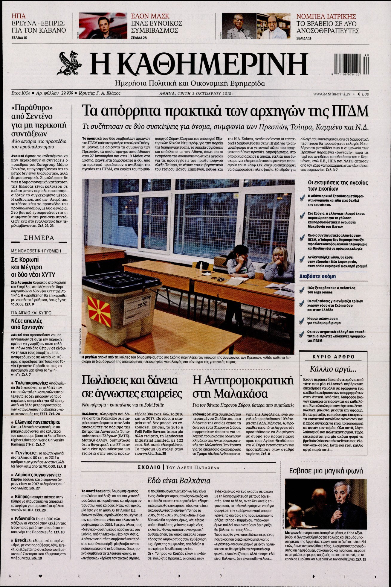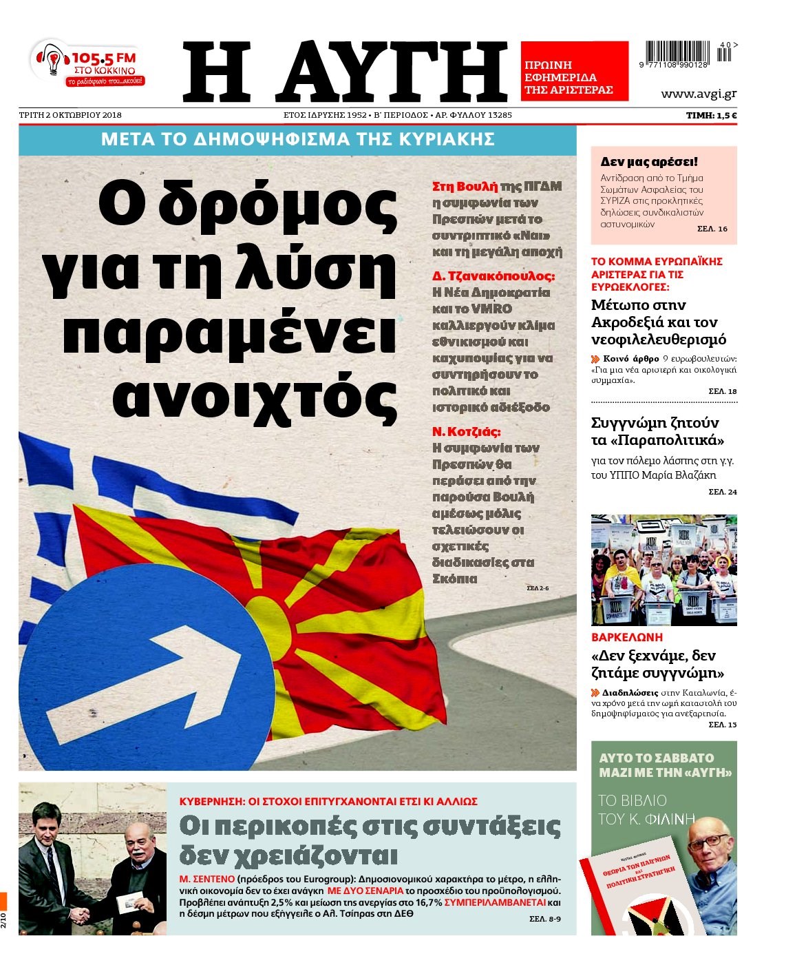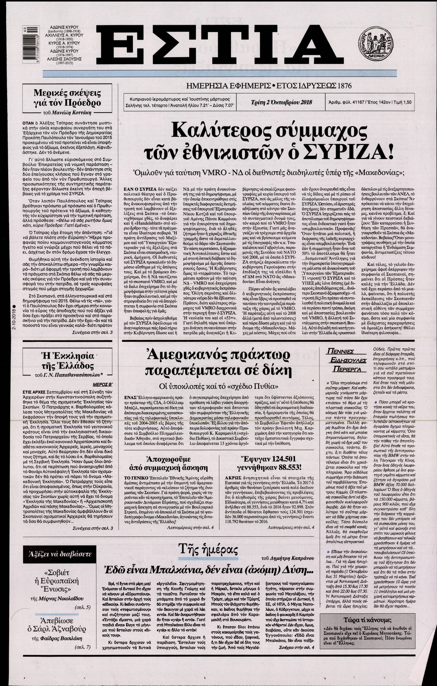 Οι πολιτικές εφημερίδες 2/10/18 Enikos Newsroom 06:27, Τρίτη 02 Οκτωβρίου 2018 Media Διαβάστε τα πρωτοσέλιδα: ΠΟΛΙΤΙΚΕΣ ΕΦΗΜΕΡΙΔΕΣ ΠΡΩΤΟΣΕΛΙΔΑ Μοιράσου το: σχολίασε κι εσύ (0 σχόλια) Ακολουθήστε το enikos.gr στο Google News και μάθετε πρώτοι όλες τις ειδήσεις Δείτε όλες τις τελευταίες ειδήσεις από την Ελλάδα και τον Κόσμο στο enikos.gr Ειδήσεις Ροή Ειδήσεων 3 ώρες πριν Χριστούγεννα στα μπλόκα οι αγρότες: Άνοιξαν στα διόδια και μοίρασαν προϊόντα στους πολίτες – Νέα σύσκεψη την Κυριακή στη Νίκαια 4 ώρες πριν Κύκλωμα διακίνησης ναρκωτικών σε σχολεία: Τηλεφωνούσαν στους ανηλίκους την ώρα του μαθήματος – Οι διάλογοι-σοκ, τα «ψευδώνυμα» και τα βασανιστήρια 3 ώρες πριν Αρχεία Επστάιν: Οι 500 σελίδες που λείπουν, τα αναπάντητα ερωτήματα και οι επώνυμοι – Τι έπεται 5 ώρες πριν Ζελένσκι: Μόνο οι ΗΠΑ και ο Τραμπ μπορούν να πιέσουν τη Ρωσία να βάλει τέλος στον πόλεμο 5 ώρες πριν Φοινικούντα: Προφυλακιστέος ο 30χρονος για συνέργεια στη διπλή δολοφονία – Και άλλα πρόσωπα στο «μικροσκόπιο» 3 ώρες πριν Αποκαλύφθηκε το άγνωστο «GPS» της αρχαιότητας – Πώς οι ναοί «φώτιζαν» τον δρόμο των ναυτικών πριν από την εφεύρεση των φάρων 4 ώρες πριν Ύπνος: Η διατροφή που μπορεί να σας βοηθήσει να κοιμάστε καλύτερα και να ζήσετε περισσότερο 5 ώρες πριν Αριθμολογία: Ο αριθμός του φύλακα αγγέλου σας, με βάση τον μήνα γέννησής σας – «Έτσι σας στέλνει σημάδια το σύμπαν» 17 ώρες πριν Enerwave: Το νέο «ρεύμα» στη λιανική ενέργειας που αλλάζει την εμπειρία του καταναλωτή 18 λεπτά πριν Σεισμός 3,8 Ρίχτερ ανοιχτά της Αμοργού 33 λεπτά πριν Άννα Βίσση: Τα… Social Media «προσκύνησαν» την «απόλυτη» για την συναυλία της στο Καλλιμάρμαρο που προβλήθηκε από το Mega 48 λεπτά πριν Φωτεινή Αθερίδου: «Προσπαθώ να είμαι κάθετη και αυστηρή σαν μαμά πια» 1 ώρα πριν ΗΠΑ, Αίγυπτος, Κατάρ και Τουρκία συζήτησαν τη δεύτερη φάση του ειρηνευτικού σχεδίου για τη Γάζα 1 ώρα πριν Γιάννης Αντετοκούνμπο: Έμεινε στην 6η θέση της ψηφοφορίας του ESPN για το βραβείο του MVP του NBA ENIKOS NETWORK Οι γυναίκες αποκαλύπτουν το πιο ελκυστικό πράγμα που μπορεί να κάνει ένας άνδρας Ομορφιά και αντιγήρανση: Ειδικοί μιλούν για συσκευές περιποίησης του δέρματος «Πολεμική» προετοιμασία από την ευρωπαϊκή βιομηχανία ενέργειας – Η Eurelectric ζητεί «ομπρέλα» προστασίας για τις υποδομές Ακύρωση ΑΦΜ για απάτες – Ποιους βάζει στο στόχαστρο η ΑΑΔΕ Χαρτογραφώντας το «σημείο χωρίς επιστροφή»: Για πρώτη φορά αποκαλύπτεται με λεπτομέρεια το ακανθώδες όριο της ατμόσφαιρας τ... Η Google καταργεί τη λειτουργία «dark web report» – Πώς θα μπορούν οι χρήστες να διαγράφουν τα δεδομένα τους περισσότερα 01:30 , Κυριακή 21 Δεκεμβρίου 2025 Άννα Βίσση: Τα… Social Media «προσκύνησαν» την «απόλυτη» για την συναυλία της στο Καλλιμάρμαρο που προβλήθηκε από το Mega Την ημέρα των γενεθλίων της Άννας Βίσση, το MEGA τίμησε τη διαχρονική παρουσία της «απόλυτης Ε... 00:00 , Κυριακή 21 Δεκεμβρίου 2025 The Voice: Η επιστροφή της Έλενας Παπαρίζου και η ατάκα του Γιώργου Μαζωνάκη μετά τις καταγγελίες Στη φάση των Cross Battles Live μπήκε το The Voice, με την Έλενα Παπαρίζου να επιστρέφει στο π... 20:30 , Σάββατο 20 Δεκεμβρίου 2025 Αυτή την Κυριακή με τη Realnews: Instyle, μαζί Drive και Realnews Geopolitics Αυτή την Κυριακή με τη Realnews: Instyle, μαζί Drive και Realnews Geopolitics Instyle Η Άννα Ρ... 20:28 , Σάββατο 20 Δεκεμβρίου 2025 Ο ΑΝΤ1 γεμίζει τις γιορτές με μουσική – Ποιους καλλιτέχνες θα απολαύσουμε Φέτος στον ΑΝΤ1 γιορτάζουμε τις νύχτες μας παρέα με αγαπημένους καλλιτέχνες και μεγάλες μουσι... ΤΕΛΕΥΤΑΙΕΣ ΕΙΔΗΣΕΙΣ 1
