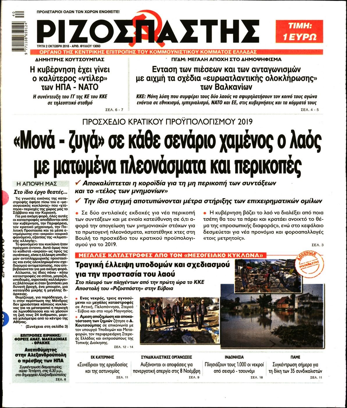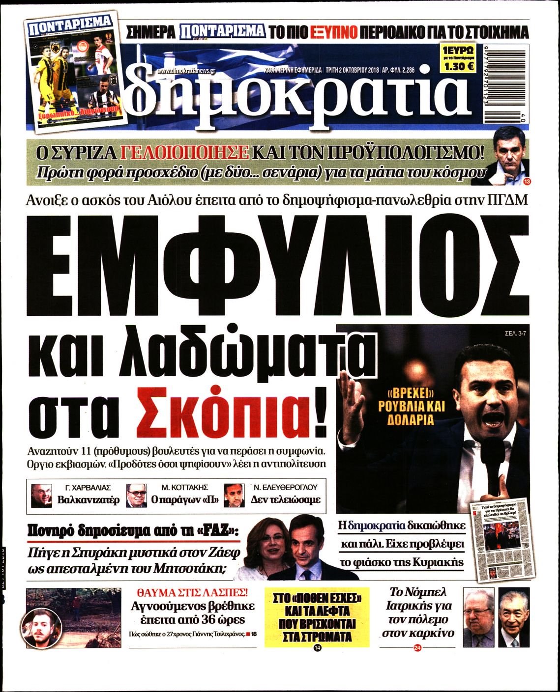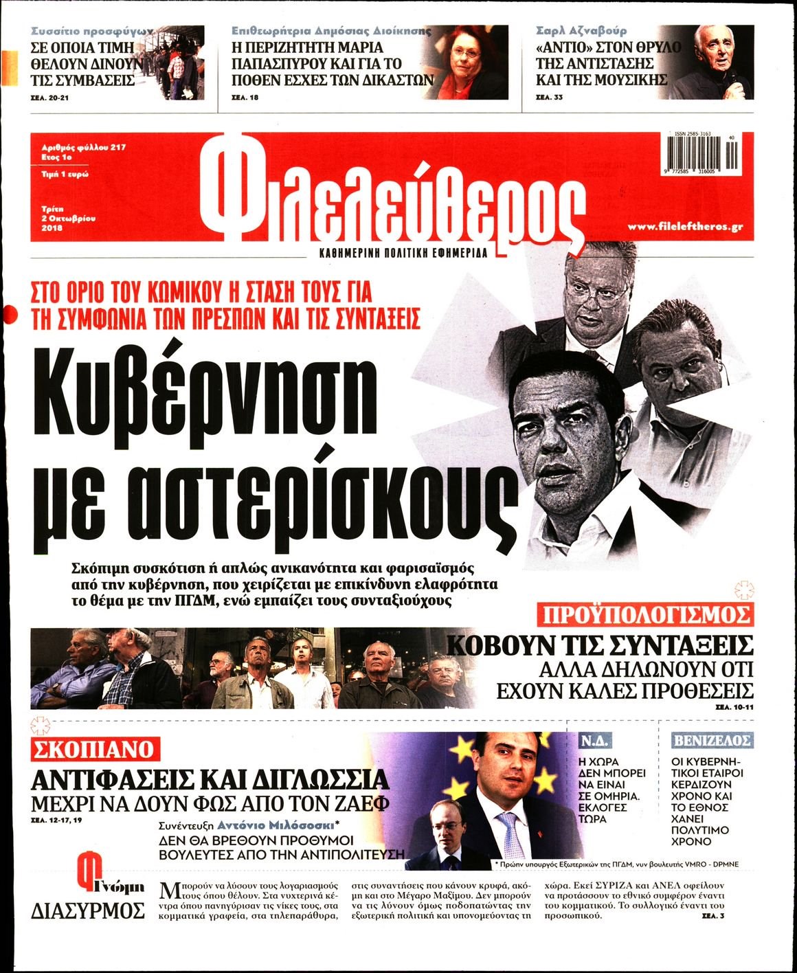 Οι πολιτικές εφημερίδες 2/10/18 Enikos Newsroom 06:27, Τρίτη 02 Οκτωβρίου 2018 Media Διαβάστε τα πρωτοσέλιδα: ΠΟΛΙΤΙΚΕΣ ΕΦΗΜΕΡΙΔΕΣ ΠΡΩΤΟΣΕΛΙΔΑ Μοιράσου το: σχολίασε κι εσύ (0 σχόλια) Ακολουθήστε το enikos.gr στο Google News και μάθετε πρώτοι όλες τις ειδήσεις Δείτε όλες τις τελευταίες ειδήσεις από την Ελλάδα και τον Κόσμο στο enikos.gr Ειδήσεις Ροή Ειδήσεων 3 ώρες πριν Χριστούγεννα στα μπλόκα οι αγρότες: Άνοιξαν στα διόδια και μοίρασαν προϊόντα στους πολίτες – Νέα σύσκεψη την Κυριακή στη Νίκαια 4 ώρες πριν Κύκλωμα διακίνησης ναρκωτικών σε σχολεία: Τηλεφωνούσαν στους ανηλίκους την ώρα του μαθήματος – Οι διάλογοι-σοκ, τα «ψευδώνυμα» και τα βασανιστήρια 3 ώρες πριν Αρχεία Επστάιν: Οι 500 σελίδες που λείπουν, τα αναπάντητα ερωτήματα και οι επώνυμοι – Τι έπεται 5 ώρες πριν Ζελένσκι: Μόνο οι ΗΠΑ και ο Τραμπ μπορούν να πιέσουν τη Ρωσία να βάλει τέλος στον πόλεμο 5 ώρες πριν Φοινικούντα: Προφυλακιστέος ο 30χρονος για συνέργεια στη διπλή δολοφονία – Και άλλα πρόσωπα στο «μικροσκόπιο» 3 ώρες πριν Αποκαλύφθηκε το άγνωστο «GPS» της αρχαιότητας – Πώς οι ναοί «φώτιζαν» τον δρόμο των ναυτικών πριν από την εφεύρεση των φάρων 4 ώρες πριν Ύπνος: Η διατροφή που μπορεί να σας βοηθήσει να κοιμάστε καλύτερα και να ζήσετε περισσότερο 5 ώρες πριν Αριθμολογία: Ο αριθμός του φύλακα αγγέλου σας, με βάση τον μήνα γέννησής σας – «Έτσι σας στέλνει σημάδια το σύμπαν» 17 ώρες πριν Enerwave: Το νέο «ρεύμα» στη λιανική ενέργειας που αλλάζει την εμπειρία του καταναλωτή 18 λεπτά πριν Σεισμός 3,8 Ρίχτερ ανοιχτά της Αμοργού 33 λεπτά πριν Άννα Βίσση: Τα… Social Media «προσκύνησαν» την «απόλυτη» για την συναυλία της στο Καλλιμάρμαρο που προβλήθηκε από το Mega 48 λεπτά πριν Φωτεινή Αθερίδου: «Προσπαθώ να είμαι κάθετη και αυστηρή σαν μαμά πια» 1 ώρα πριν ΗΠΑ, Αίγυπτος, Κατάρ και Τουρκία συζήτησαν τη δεύτερη φάση του ειρηνευτικού σχεδίου για τη Γάζα 1 ώρα πριν Γιάννης Αντετοκούνμπο: Έμεινε στην 6η θέση της ψηφοφορίας του ESPN για το βραβείο του MVP του NBA ENIKOS NETWORK Οι γυναίκες αποκαλύπτουν το πιο ελκυστικό πράγμα που μπορεί να κάνει ένας άνδρας Ομορφιά και αντιγήρανση: Ειδικοί μιλούν για συσκευές περιποίησης του δέρματος «Πολεμική» προετοιμασία από την ευρωπαϊκή βιομηχανία ενέργειας – Η Eurelectric ζητεί «ομπρέλα» προστασίας για τις υποδομές Ακύρωση ΑΦΜ για απάτες – Ποιους βάζει στο στόχαστρο η ΑΑΔΕ Χαρτογραφώντας το «σημείο χωρίς επιστροφή»: Για πρώτη φορά αποκαλύπτεται με λεπτομέρεια το ακανθώδες όριο της ατμόσφαιρας τ... Η Google καταργεί τη λειτουργία «dark web report» – Πώς θα μπορούν οι χρήστες να διαγράφουν τα δεδομένα τους περισσότερα 01:30 , Κυριακή 21 Δεκεμβρίου 2025 Άννα Βίσση: Τα… Social Media «προσκύνησαν» την «απόλυτη» για την συναυλία της στο Καλλιμάρμαρο που προβλήθηκε από το Mega Την ημέρα των γενεθλίων της Άννας Βίσση, το MEGA τίμησε τη διαχρονική παρουσία της «απόλυτης Ε... 00:00 , Κυριακή 21 Δεκεμβρίου 2025 The Voice: Η επιστροφή της Έλενας Παπαρίζου και η ατάκα του Γιώργου Μαζωνάκη μετά τις καταγγελίες Στη φάση των Cross Battles Live μπήκε το The Voice, με την Έλενα Παπαρίζου να επιστρέφει στο π... 20:30 , Σάββατο 20 Δεκεμβρίου 2025 Αυτή την Κυριακή με τη Realnews: Instyle, μαζί Drive και Realnews Geopolitics Αυτή την Κυριακή με τη Realnews: Instyle, μαζί Drive και Realnews Geopolitics Instyle Η Άννα Ρ... 20:28 , Σάββατο 20 Δεκεμβρίου 2025 Ο ΑΝΤ1 γεμίζει τις γιορτές με μουσική – Ποιους καλλιτέχνες θα απολαύσουμε Φέτος στον ΑΝΤ1 γιορτάζουμε τις νύχτες μας παρέα με αγαπημένους καλλιτέχνες και μεγάλες μουσι... ΤΕΛΕΥΤΑΙΕΣ ΕΙΔΗΣΕΙΣ 1