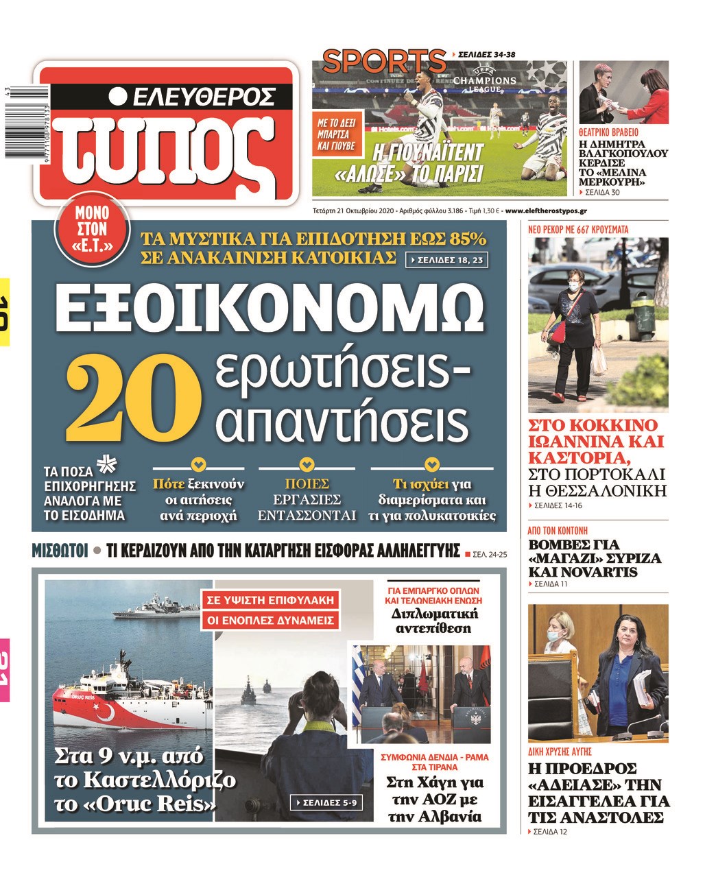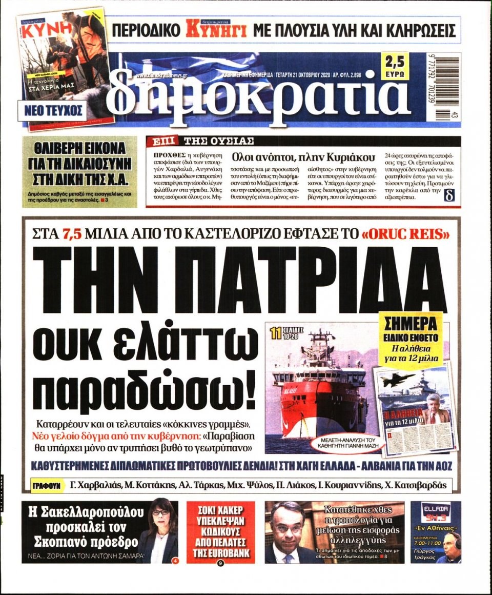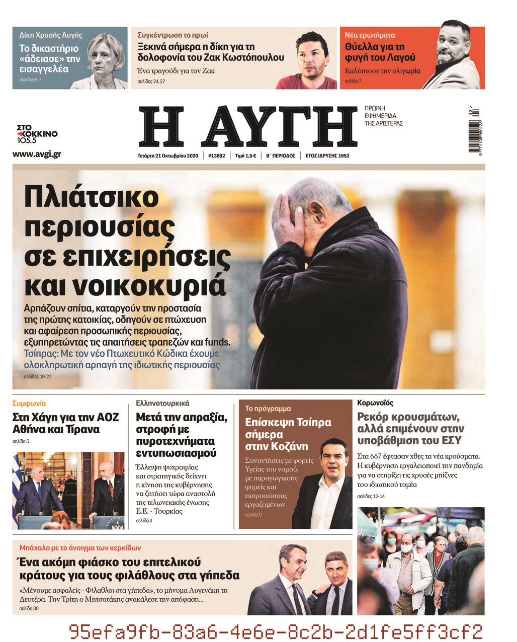 Οι πολιτικές εφημερίδες 21/10/2020 Σήφης Γαρυφαλάκης 06:32, Τετάρτη 21 Οκτωβρίου 2020 Media Διαβάστε τα πρωτοσέλιδα των πολιτικών εφημερίδων… ΕΦΗΜΕΡΙΔΕΣ ΠΟΛΙΤΙΚΕΣ ΕΦΗΜΕΡΙΔΕΣ ΠΡΩΤΟΣΕΛΙΔΑ ΠΡΩΤΟΣΕΛΙΔΑ ΕΦΗΜΕΡΙΔΩΝ Μοιράσου το: σχολίασε κι εσύ (0 σχόλια) Ακολουθήστε το enikos.gr στο Google News και μάθετε πρώτοι όλες τις ειδήσεις Δείτε όλες τις τελευταίες ειδήσεις από την Ελλάδα και τον Κόσμο στο enikos.gr Ειδήσεις Ροή Ειδήσεων 31 λεπτά πριν Νίκος Παππάς: Το παρασκήνιο της αποπομπής του – Οι μπουνιές, τα μηνύματα μετά την επίθεση και η διαγραφή από τον ΣΥΡΙΖΑ 2 ώρες πριν Φοροδιαφυγή: Ποιοι φορολογούμενοι κινδυνεύουν να πληρώσουν «τσουχτερά» πρόστιμα 57 λεπτά πριν Φοινικούντα: Παραδόθηκε 30χρονος στην Καλαμάτα για τη διπλή δολοφονία 1 ώρα πριν Αγρότες: Ανυποχώρητοι στα μπλόκα – Στις Σέρρες σήμερα η κρίσιμη συνεδρίαση της Πανελλαδικής Επιτροπής 1 ώρα πριν Τα επίσημα χρονοδιαγράμματα που η Τουρκία θα παραλάβει τα Eurofighter 3 ώρες πριν Καούρα: Το μπαχαρικό που είναι «εξίσου αποτελεσματικό» με την ομεπραζόλη, σύμφωνα με ειδικούς 3 ώρες πριν Τα ζώδια σήμερα, Πέμπτη 18 Δεκεμβρίου: Λέοντες, η καρδιά σας θέλει να εκφραστεί 3 ώρες πριν Οπτική ψευδαίσθηση: Μόνο οι πιο έξυπνοι άνθρωποι θα βρουν 7 ξωτικά 15 δευτερόλεπτα 24 ώρες πριν 20 χρόνια τα Χριστούγεννα ξεκινούν στα Public με μεγάλη ποικιλία σε δώρα! 2 λεπτά πριν Άστατος ο καιρός τα Χριστούγεννα: Βαρομετρικό χαμηλό από τον κόλπο της Σύρτης «ξεκλειδώνει» κακοκαιρίες – Πώς θα εξελιχθεί έως την Πρωτοχρονιά 6 λεπτά πριν Γρίπη: Η υπουργός Υγείας της Γαλλίας καλεί τους πολίτες να ξαναφορέσουν τις μάσκες τους 14 λεπτά πριν Μαρία Αλιφέρη: «Καλή σου ξεκούραση ακριβέ μου φίλε και αδελφέ» – Η συγκινητική ανάρτηση για τον Αλμπέρτο Εσκενάζυ 18 λεπτά πριν Οφειλές προς το Δημόσιο: Τι απαντά το υπουργείο στα σενάρια για νέα ρύθμιση 24 λεπτά πριν Συνταγή του Gordon Ramsay για σπιτικές πατάτες φούρνου ENIKOS NETWORK Ουρική αρθρίτιδα: Μεγάλη μελέτη αποκαλύπτει τι μπορεί να προκαλεί τη νόσο Τι σημαίνει όταν ο σκύλος σας σάς φέρνει τυχαία αντικείμενα, σύμφωνα με εκπαιδεύτρια Οφειλές προς το Δημόσιο: «Φρένο» στα σενάρια για νέα ρύθμιση – Τι απαντά το υπουργείο Εθνικής Οικονομίας και Οικονομικών Φοροδιαφυγή: Ποιοι φορολογούμενοι κινδυνεύουν να πληρώσουν «τσουχτερά» πρόστιμα Χαρτογραφώντας το «σημείο χωρίς επιστροφή»: Για πρώτη φορά αποκαλύπτεται με λεπτομέρεια το ακανθώδες όριο της ατμόσφαιρας τ... Η Google καταργεί τη λειτουργία «dark web report» – Πώς θα μπορούν οι χρήστες να διαγράφουν τα δεδομένα τους περισσότερα 08:00 , Πέμπτη 18 Δεκεμβρίου 2025 Την Κυριακή με τη Realnews: Δωροεπιταγή 10€ Δωροεπιταγή αξίας 10€ για αγορές άνω των 60€ από τα πολυκαταστήματα FactoryOutlet H προσφορά ι... 07:50 , Πέμπτη 18 Δεκεμβρίου 2025 «Το σόι σου»: Backstage στα γυρίσματα για το εορταστικό επεισόδιο «Το σόι σου» φορά τα γιορτινά του για τα Χριστούγεννα και η Όλγα Λαφαζάνη, με την κάμερα του «... 07:36 , Πέμπτη 18 Δεκεμβρίου 2025 Οι αθλητικές μεταδόσεις 18/12/2025 – Πού θα δείτε τον αγώνα της ΑΕΚ με την Κραϊόβα για το Conference League Τα ματς ΑΕΚ – Ουνιβερσιτάτεα Κραϊόβα για το Conference League και Παναθηναϊκός – Χάποελ Τελ Αβ... 05:48 , Πέμπτη 18 Δεκεμβρίου 2025 Οι οικονομικές εφημερίδες 18/12/2025 Διαβάστε τα πρωτοσέλιδα από τις οικονομικές εφημερίδες, σήμερα 18/12/2025. ΤΕΛΕΥΤΑΙΕΣ ΕΙΔΗΣΕΙΣ 6 λεπτά πριν Γρίπη: Η υπουργός Υγείας της Γαλλίας καλεί τους... 14 λεπτά πριν Μαρία Αλιφέρη: «Καλή σου ξεκούραση ακριβέ μου φίλε και... 18 λεπτά πριν Οφειλές προς το Δημόσιο: Τι