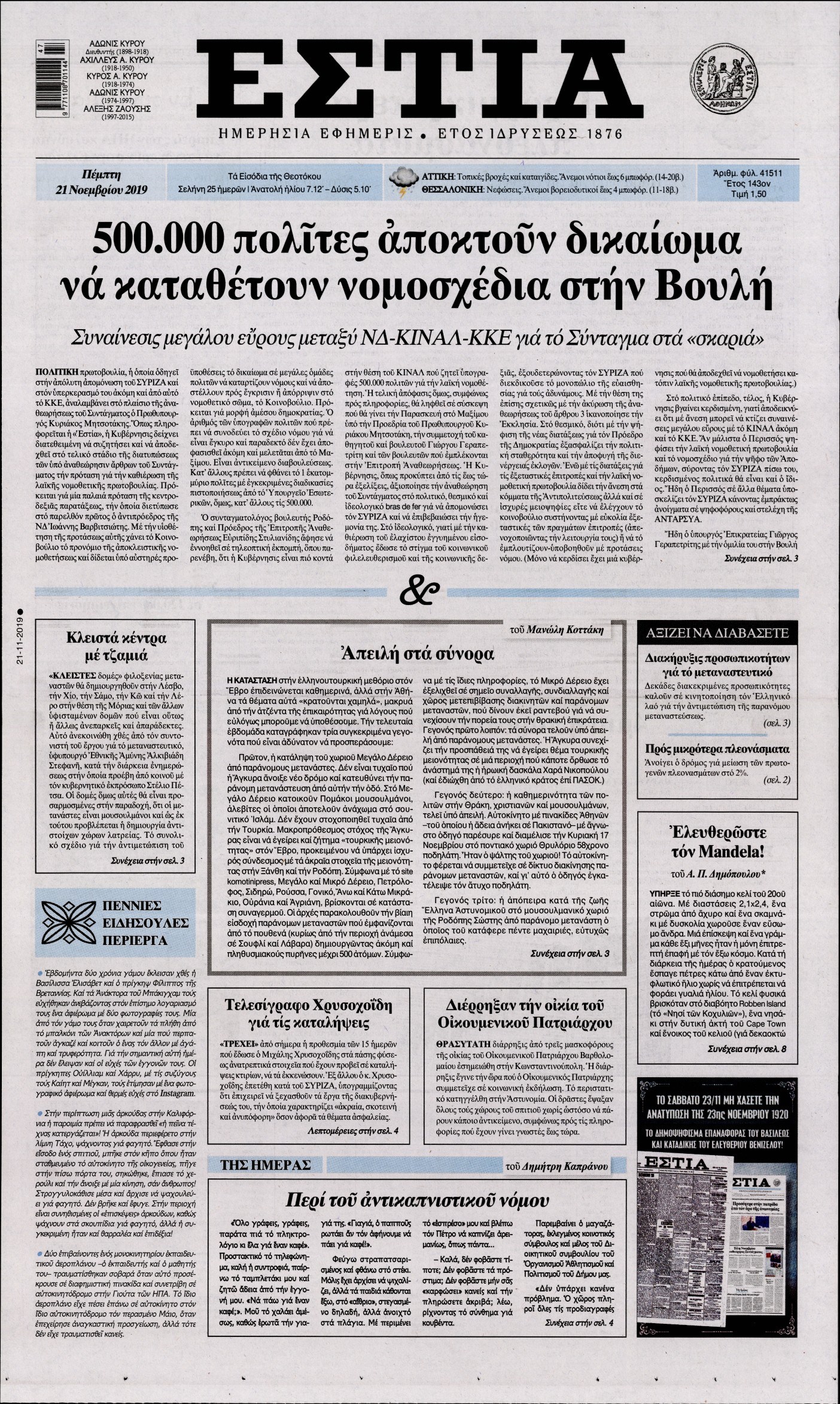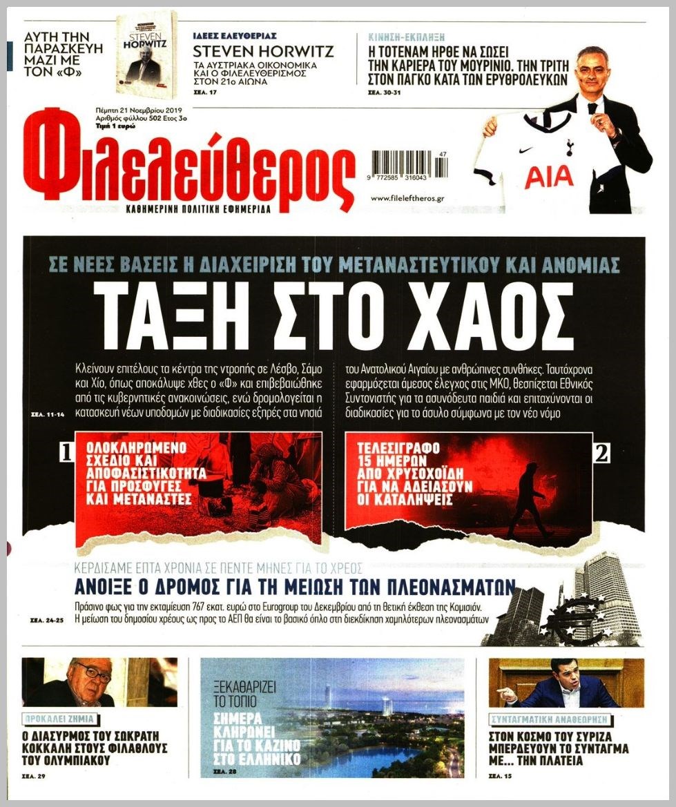 Οι πολιτικές εφημερίδες 21/11/19 Διονύσης Νίκκας 06:30, Πέμπτη 21 Νοεμβρίου 2019 Media Διαβάστε τα πρωτοσέλιδα των πολιτικών εφημερίδων… ΕΦΗΜΕΡΙΔΕΣ ΠΟΛΙΤΙΚΕΣ Μοιράσου το: σχολίασε κι εσύ (0 σχόλια) Ακολουθήστε το enikos.gr στο Google News και μάθετε πρώτοι όλες τις ειδήσεις Δείτε όλες τις τελευταίες ειδήσεις από την Ελλάδα και τον Κόσμο στο enikos.gr Ειδήσεις Ροή Ειδήσεων 3 ώρες πριν Εκτός ευρωομάδας ΣΥΡΙΖΑ ο Νίκος Παππάς μετά την επίθεση στον δημοσιογράφο Νίκο Γιαννόπουλο – Η μήνυση και οι νέες δηλώσεις 4 ώρες πριν «Αγριεύουν» οι αγρότες: «Δεν συντρέχει λόγος συνάντησης με τον πρωθυπουργό» – Ώρα αποφάσεων στη σύσκεψη της Πέμπτης 4 ώρες πριν Κυψέλη: Χωρίς την οικογένειά της δίπλα της απολογήθηκε η 16χρονη – «Της είχε επιτεθεί κάποιος για να την βιάσει, φοβήθηκε και κυκλοφορούσε με μαχαίρι» 3 ώρες πριν Politico: Το πρόβλημα της Ευρώπης δεν είναι το Βέλγιο αλλά ο Ντόναλντ Τραμπ 5 ώρες πριν Αλεξανδρούπολη: Πολυοργανική ανεπάρκεια λόγω υποσιτισμού η αιτία θανάτου του 3χρονου αγοριού 4 ώρες πριν Μυστήριο με τεράστιες κυκλικές πέτρες 200 κιλών – Ανακαλύφθηκαν τυχαία κατά τη διάρκεια οδικών έργων και κανείς δεν ξέρει από πού προέρχονται 5 ώρες πριν Ύπνος: Ειδικός εξηγεί τον πραγματικό λόγο που ξυπνάτε στις 4 τα ξημερώματα – Ο ρόλος των ορμονών και του κιρκάδιου ρυθμού 6 ώρες πριν Αριθμολογία: Οι άνθρωποι που έχουν γεννηθεί αυτές τις 4 ημερομηνίες, είναι τρυφεροί και αγαπούν ανιδιοτελώς 17 ώρες πριν 20 χρόνια τα Χριστούγεννα ξεκινούν στα Public με μεγάλη ποικιλία σε δώρα! 13 λεπτά πριν Αλ Τσαντίρι Νιουζ: Η κόρη της Πάολα στο κοινό – Η ατάκα Λαζόπουλου που την έκανε να «κοκκινήσει» 27 λεπτά πριν Ρωσία: Ουκρανικές δυνάμεις έπληξαν πλοίο στο λιμάνι του Ροστόφ – Αναφορές για θύματα 43 λεπτά πριν Βρυξέλλες: Νυχτερινό… μπλόκο αγροτών μπροστά από το κτίριο της Ευρωπαϊκής Επιτροπής – Πάνω από 100 τρακτέρ απέκλεισαν την λεωφόρο 58 λεπτά πριν Euroleague: Απρόσμενη ήττα για την Μονακό του Βασίλη Σπανούλη – Η βαθμολογία μετά το τέλος της 16ης αγωνιστικής 1 ώρα πριν Μουντιάλ 2026: Η νέα ταξιδιωτική απαγόρευση του Ντόναλντ Τραμπ πλήττει (και) τους οπαδούς Σενεγάλης – Ακτής Ελεφαντοστού ENIKOS NETWORK Αϋπνία: Το κόλπο που θα σας βοηθήσει να κοιμηθείτε απόψε – Είναι απλό και έχει αποτέλεσμα 2,6 εκατομμύρια πολίτες έχουν ήδη εμβολιαστεί κατά της γρίπης ΕΛΣΤΑΤ: Τι δείχνουν τα νέα στοιχεία για τις ηλεκτρονικές παραγγελίες των επιχειρήσεων ΚΕΠΕ: Οι 3 διακριτές συμβολές των ΜμΕ και της μεταποίησης στην ελληνική οικονομία Χαρτογραφώντας το «σημείο χωρίς επιστροφή»: Για πρώτη φορά αποκαλύπτεται με λεπτομέρεια το ακανθώδες όριο της ατμόσφαιρας τ... Η Google καταργεί τη λειτουργία «dark web report» – Πώς θα μπορούν οι χρήστες να διαγράφουν τα δεδομένα τους περισσότερα 02:30 , Πέμπτη 18 Δεκεμβρίου 2025 Αλ Τσαντίρι Νιουζ: Η κόρη της Πάολα στο κοινό – Η ατάκα Λαζόπουλου που την έκανε να «κοκκινήσει» Γιορτινή διάθεση και ευχάριστες στιγμές γέμισε η αποψινή, τελευταία για το 2025, εκπομπή του «... 22:24 , Τετάρτη 17 Δεκεμβρίου 2025 Το Σπίτι Δίπλα Στο Ποτάμι: Σε κίνδυνο η υγεία του Απόστολου – Τι θα δούμε απόψε “Το Σπίτι Δίπλα στο Ποτάμι” ξετυλίγει το νήμα της ζωής των πέντε αδελφών με καταισ... 21:14 , Τετάρτη 17 Δεκεμβρίου 2025 Παιχνίδια Εκδίκησης: Θα καταφέρει ο Χρήστος να κλονίσει την εμπιστοσύνη της Μάγιας απέναντι στον Άγη; Τα «Παιχνίδια Εκδίκησης» έρχονται απόψε στις 22:30, στον Αντ1, με το τελευταίο επεισόδιο της χ... 20:57 , Τετάρτη 17 Δεκεμβρίου 2025 Άγιος 