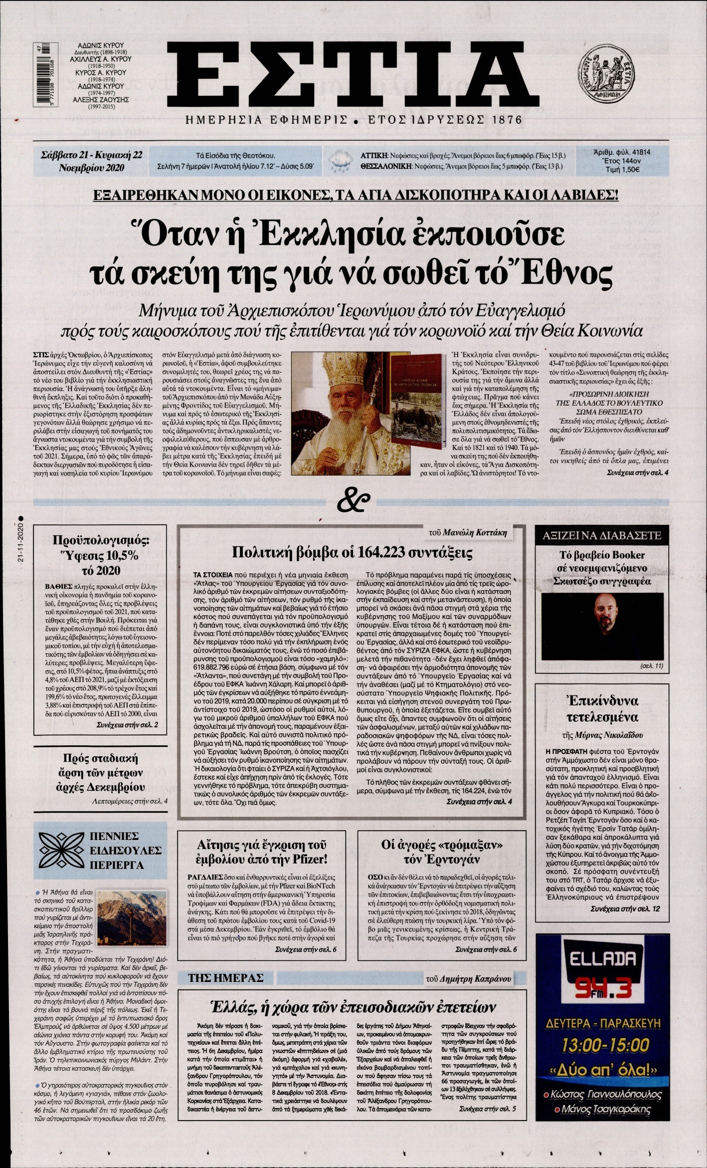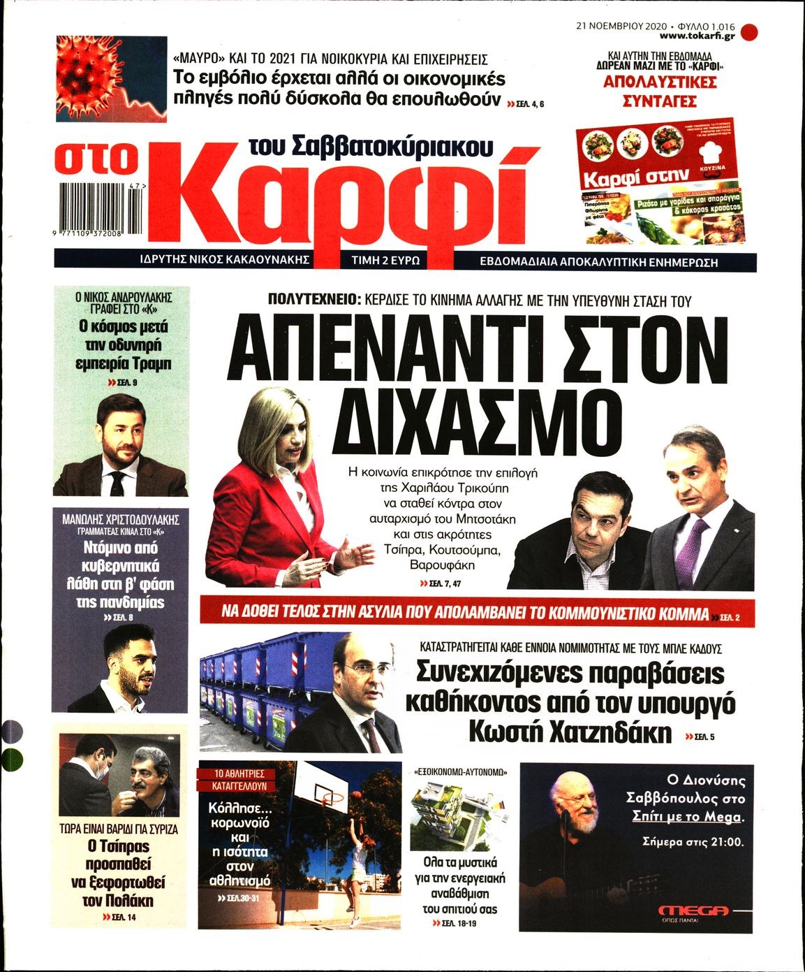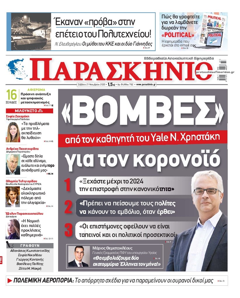 Οι πολιτικές εφημερίδες 21/11/2020 Διονύσης Νίκκας 07:15, Σάββατο 21 Νοεμβρίου 2020 Media Διαβάστε τα πρωτοσέλιδα των πολιτικών εφημερίδων… ΕΦΗΜΕΡΙΔΕΣ ΠΟΛΙΤΙΚΕΣ ΕΦΗΜΕΡΙΔΕΣ ΠΡΩΤΟΣΕΛΙΔΑ Μοιράσου το: σχολίασε κι εσύ (0 σχόλια) Ακολουθήστε το enikos.gr στο Google News και μάθετε πρώτοι όλες τις ειδήσεις Δείτε όλες τις τελευταίες ειδήσεις από την Ελλάδα και τον Κόσμο στο enikos.gr Ειδήσεις Ροή Ειδήσεων 1 ώρα πριν Γιορτές με μπλόκα για τους αγρότες: Ανοίγουν διόδια και μοιράζουν προϊόντα στους ταξιδιώτες 2 ώρες πριν Τα αρχεία του Έπσταϊν αποκαλύπτουν φωτογραφία του έκπτωτου πρίγκιπα Άντριου – Είναι ξαπλωμένος στην αγκαλιά 5 γυναικών 47 λεπτά πριν Νέες ταυτότητες: Μεγάλη αναμονή για ραντεβού στην Αττική – Τέλος τα ταξίδια εκτός Ελλάδος από τον Αύγουστο για όσους δεν έχουν αλλάξει 2 ώρες πριν Εξαφάνιση 33χρονου γιατρού στην Κρήτη: «Άναψα τα φώτα, τρόμαξε και άρχισε να τρέχει στα χωράφια» – Η τελευταία διαδρομή και η μαρτυρία «κλειδί» 3 ώρες πριν Ο «χάρτης» με τις αυξήσεις και τις φοροελαφρύνσεις του 2026 – Ποιοι και πόσα κερδίζουν 2 ώρες πριν Μία νέα «χρυσή» περίοδος αρχίζει για 3 ζώδια από σήμερα – «Μία αναπάντεχη ευκαιρία οδηγεί στην επιτυχία» 6 ώρες πριν Αυγά: Πόσα μπορείτε να τρώτε την ημέρα με ασφάλεια για μέγιστη πρόσληψη πρωτεΐνης 4 ώρες πριν Αρχαιολόγοι ανακάλυψαν σε χωράφι απεικόνιση 600 ετών ενός Αγίου – Τα στοιχεία που δείχνουν ότι μαρτύρησε 3 ώρες πριν Αγχώνεται για το χριστουγεννιάτικο δώρο που πήρε στην πλούσια σύντροφό του – «Φοβάμαι πως θα το βρει φθηνιάρικο, φοράει βραχιόλια Cartier» 8 λεπτά πριν Βούλα: Συνελήφθη 24χρονος με 69 κιλά ακατέργαστης κάνναβης – Κυκλοφορούσε με κλεμμένο αυτοκίνητο 16 λεπτά πριν «Η αγάπη δεν χάνεται ποτέ»: Η μικρού μήκους ταινία κινουμένων σχεδίων που θέτει ερωτήματα για τη ζωή και τον θάνατο 24 λεπτά πριν Στέφανος Παπαδόπουλος: Η συνέντευξη μετά τη μήνυση στον Γιώργο Μαζωνάκη – «Δεν θέλω να τα βρούμε εξωδικαστικά» 32 λεπτά πριν Τραγωδία στην άσφαλτο στα Χανιά: Νεκρός 37χρονος οδηγός ΙΧ – Τον βρήκαν ώρες μετά το τροχαίο 40 λεπτά πριν Τα Labubu «μετακομίζουν» στο Χόλιγουντ: Η Sony Pictures ετοιμάζει live-action ταινία με τον σκηνοθέτη του «Wonka» ENIKOS NETWORK Είστε μόνιμα απρόσεκτοι; 3 σημάδια που δείχνουν ότι μπορεί να είναι σύμπτωμα πάθησης Πόσα κιλά παίρνουμε πραγματικά τα Χριστούγεννα, σύμφωνα με την επιστήμη – Πώς να το αποτρέψουμε; e-ΕΦΚΑ και ΔΥΠΑ: Έρχονται νέες πληρωμές έως τις 24 Δεκεμβρίου – Ποιοι πάνε ταμείο Επίδομα παιδιού: Τι αλλάζει από το 2026 – Το όφελος από τις φορολογικές ελαφρύνσεις Χαρτογραφώντας το «σημείο χωρίς επιστροφή»: Για πρώτη φορά αποκαλύπτεται με λεπτομέρεια το ακανθώδες όριο της ατμόσφαιρας τ... Η Google καταργεί τη λειτουργία «dark web report» – Πώς θα μπορούν οι χρήστες να διαγράφουν τα δεδομένα τους περισσότερα 11:41 , Σάββατο 20 Δεκεμβρίου 2025 «Η αγάπη δεν χάνεται ποτέ»: Η μικρού μήκους ταινία κινουμένων σχεδίων που θέτει ερωτήματα για τη ζωή και τον θάνατο Ο θάνατος είναι ένα από τα πιο σκληρά θέματα που καλείται να διαχειριστεί κάποιος στη διάρκεια... 09:30 , Σάββατο 20 Δεκεμβρίου 2025 «Porto Leone: Στη γειτονιά με τα κόκκινα φανάρια» – Ο Χρόνης αποκαλύπτει στην Αλεξάνδρα το μυστικό για το παιδί της Λένας Η μεγάλη δραματική σειρά του Apha «Porto Leone: Στη γειτονιά με τα κόκκινα φανάρια» μας μεταφέ... 08:14 , Σάββατο 20 Δεκεμβρίου 2025 Τρομεροί γονείς: Η Μαρία Καβογιάννη εισβάλλει στο σπίτι της οικογένειας Στεφανίδη Όσα θα δούμε στο νέο διπλό επεισόδιο της σειράς